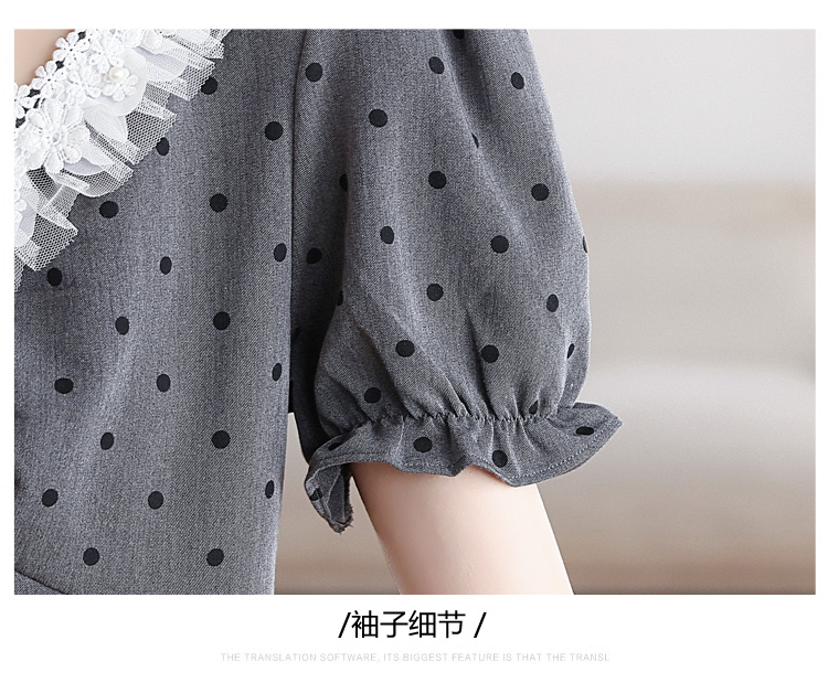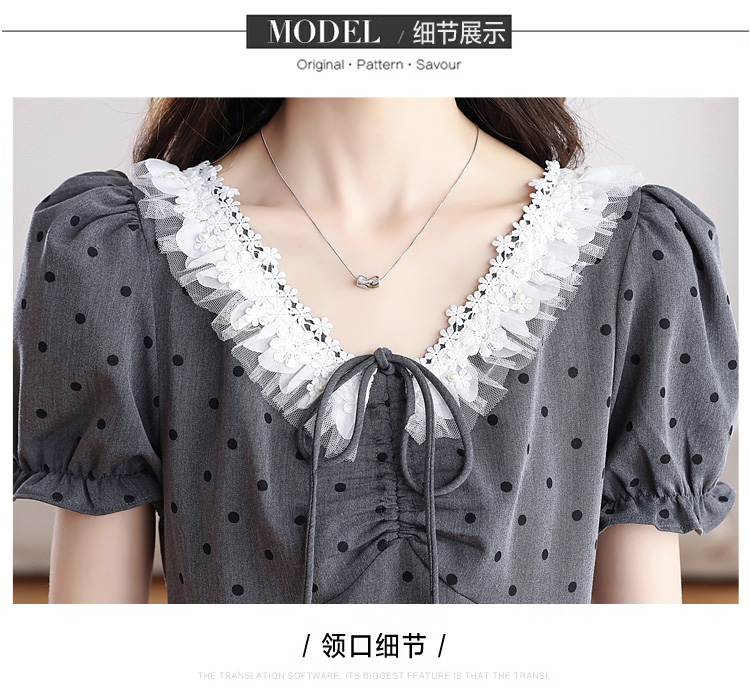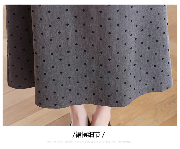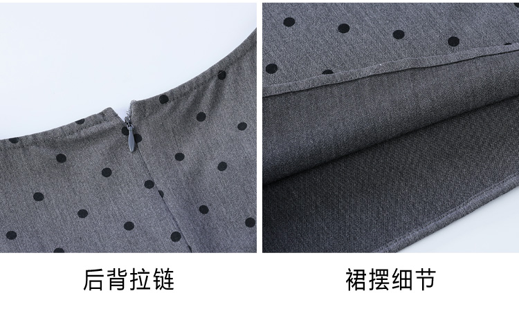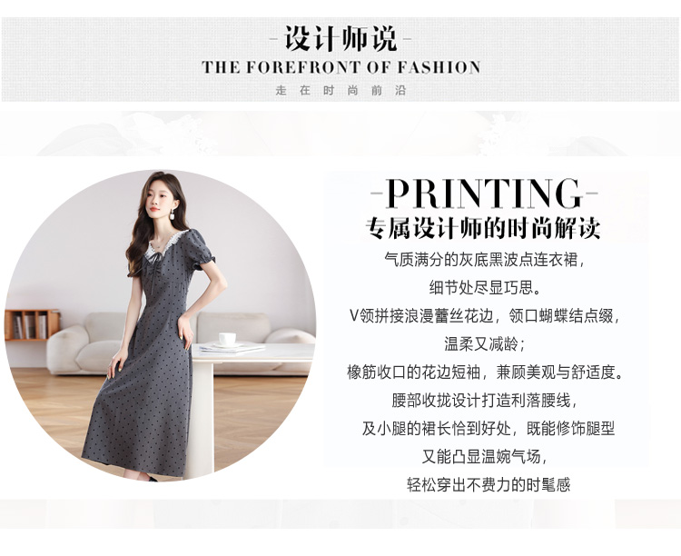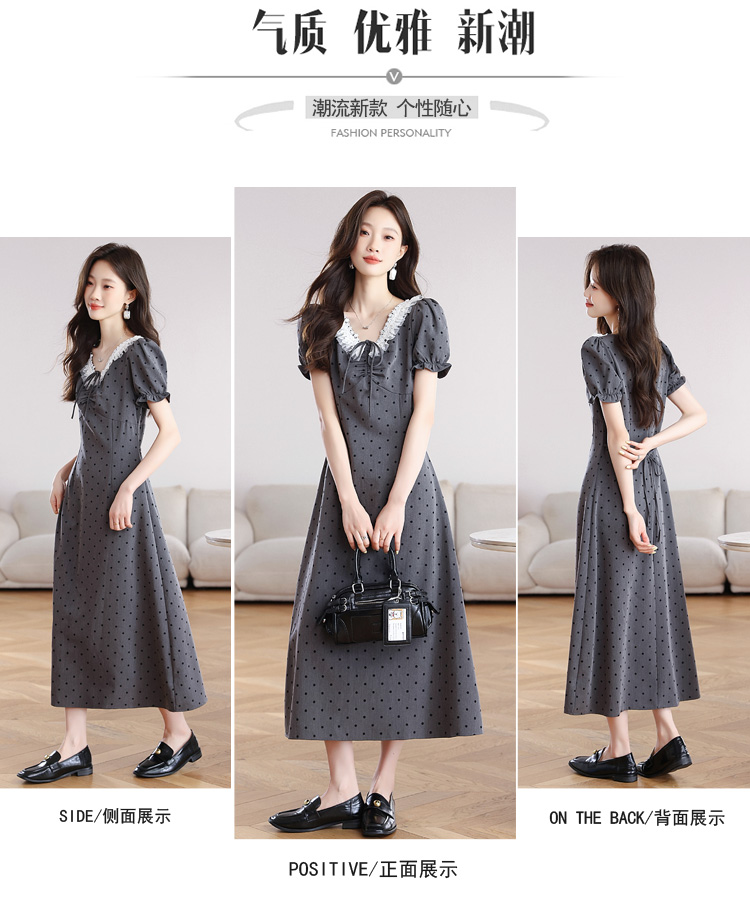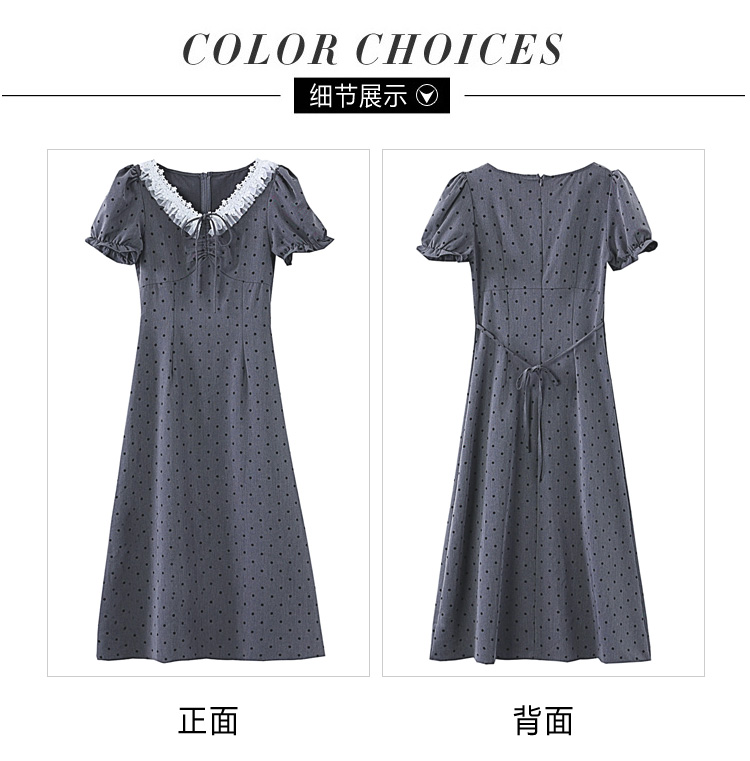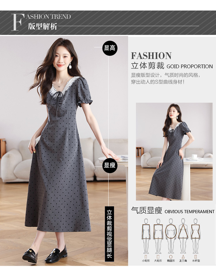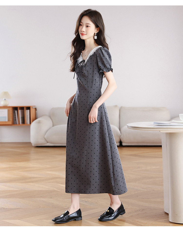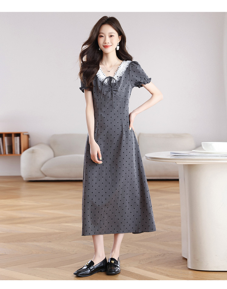 RY3403# 实拍 盐系少女2026灰色连衣裙女夏季梨形收腰设计感波点裙