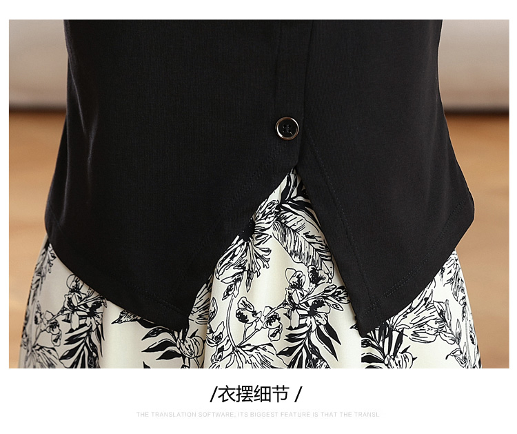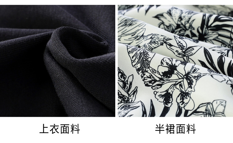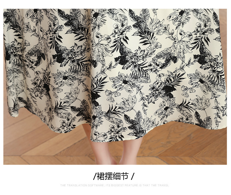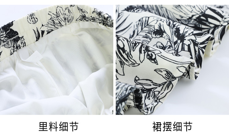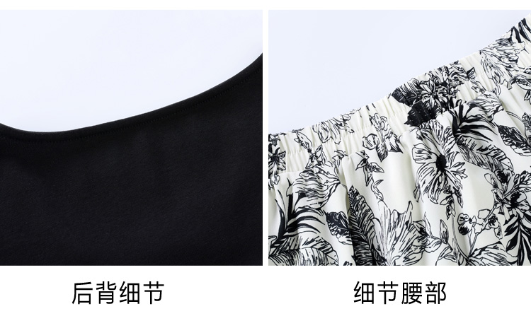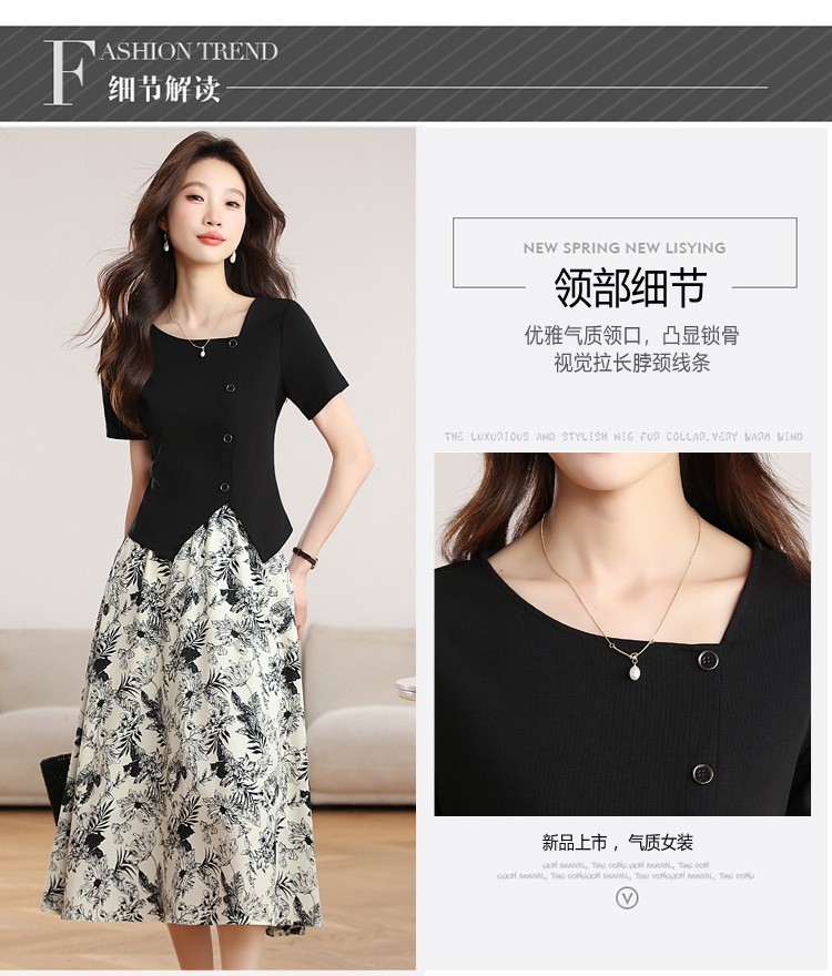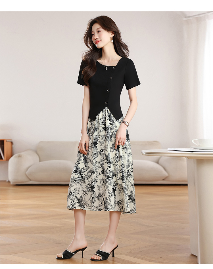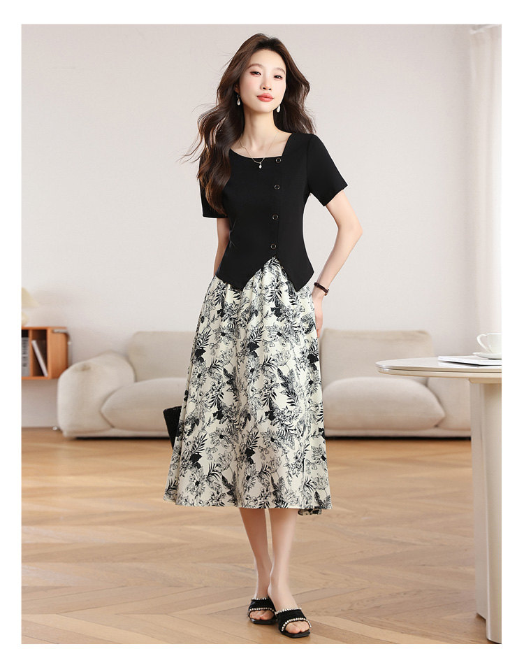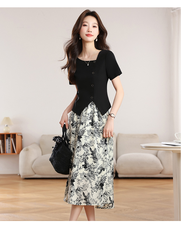 RY3408# 实拍 气质国风水墨印花套装女士夏装新款方领T恤半身裙子两件套