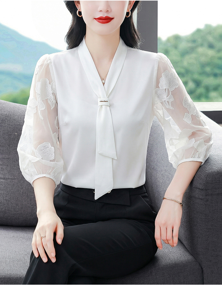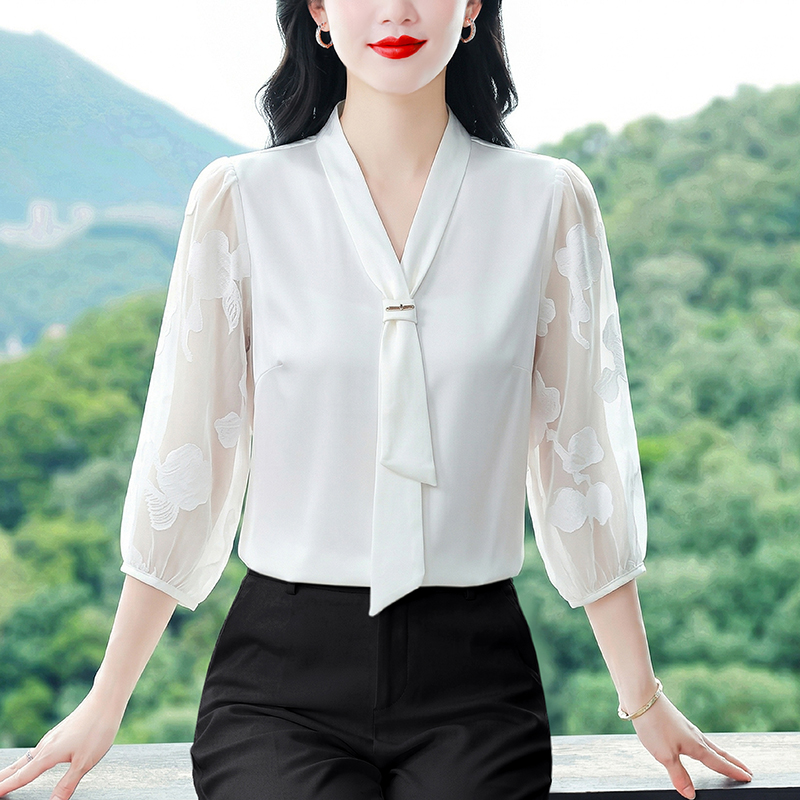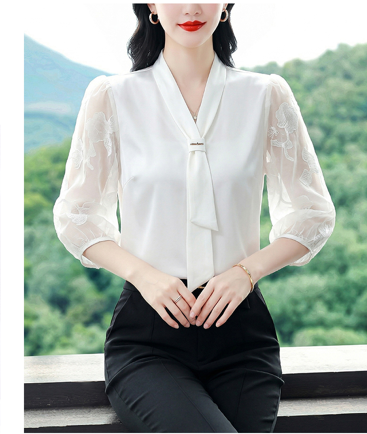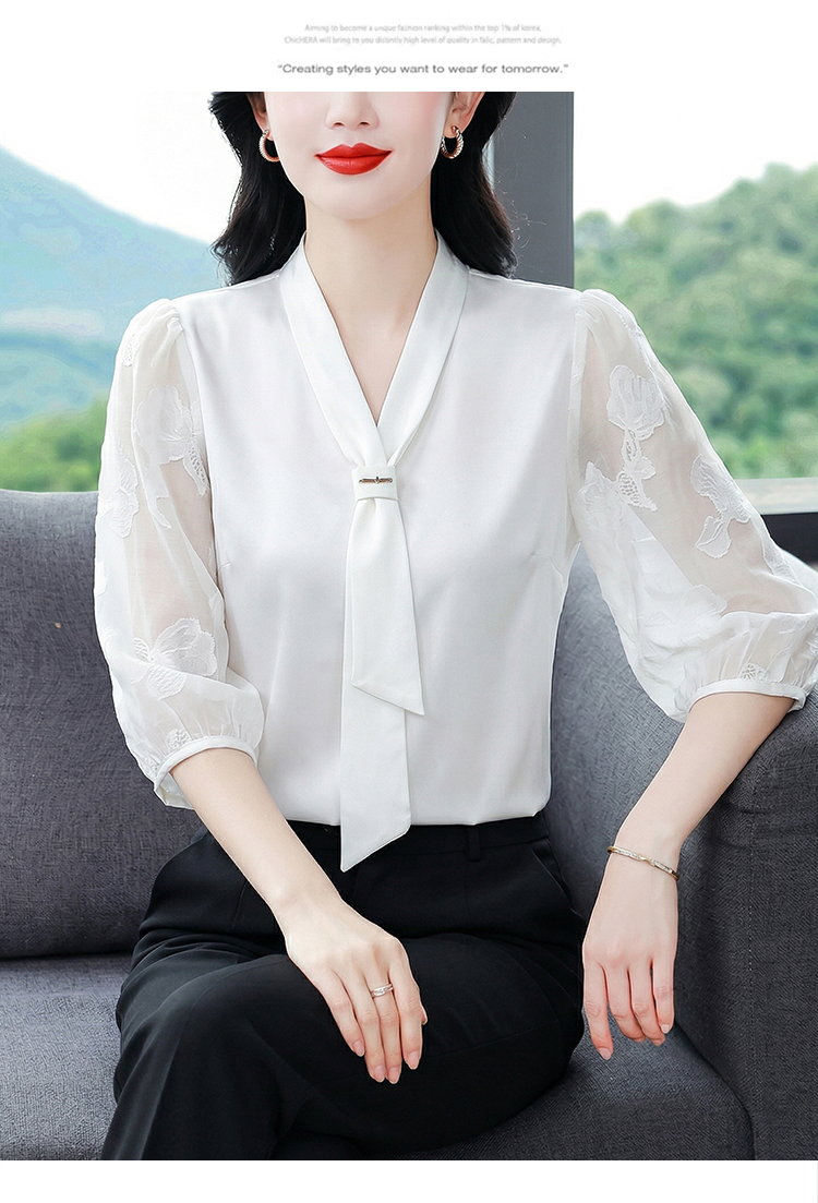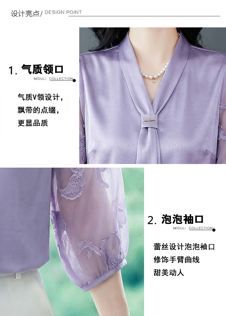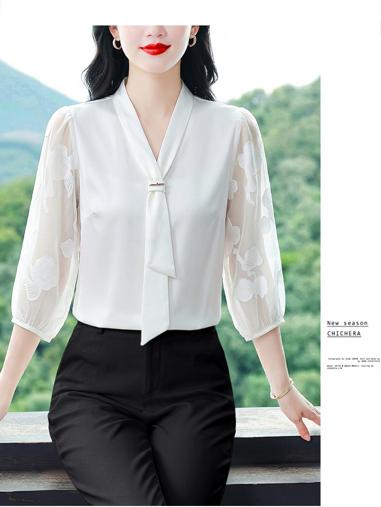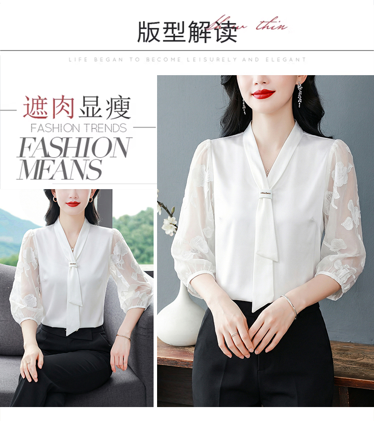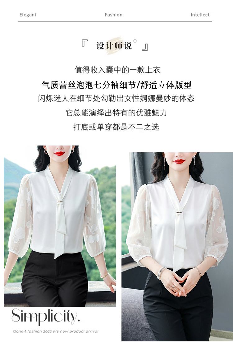 RY3411# 2026春夏新款蕾丝泡泡七分袖纯色款气质百搭衬衫
