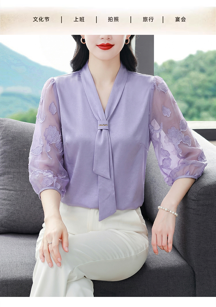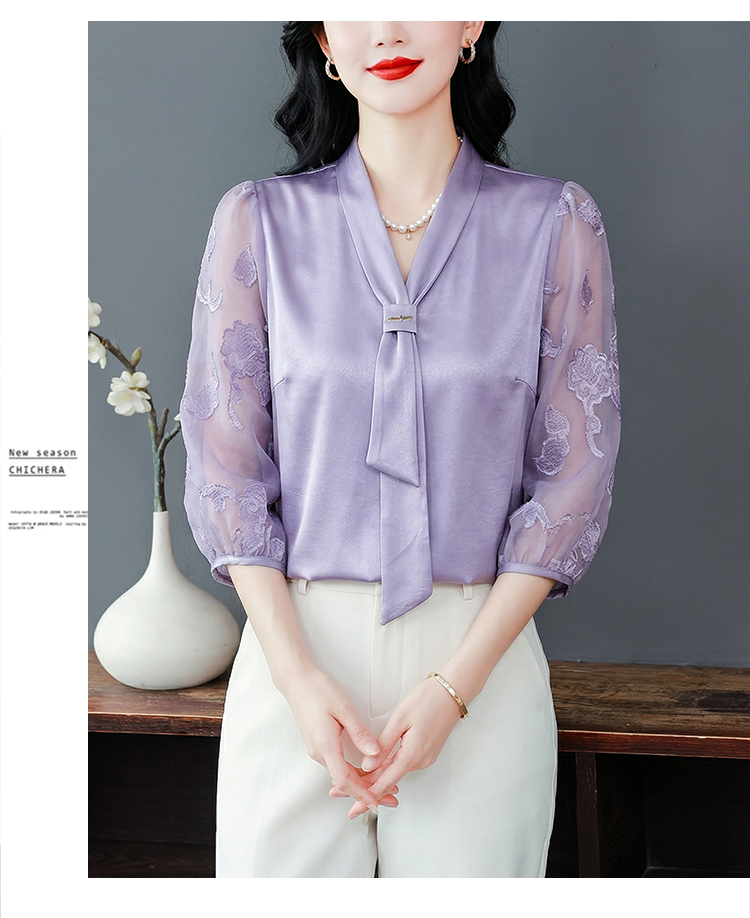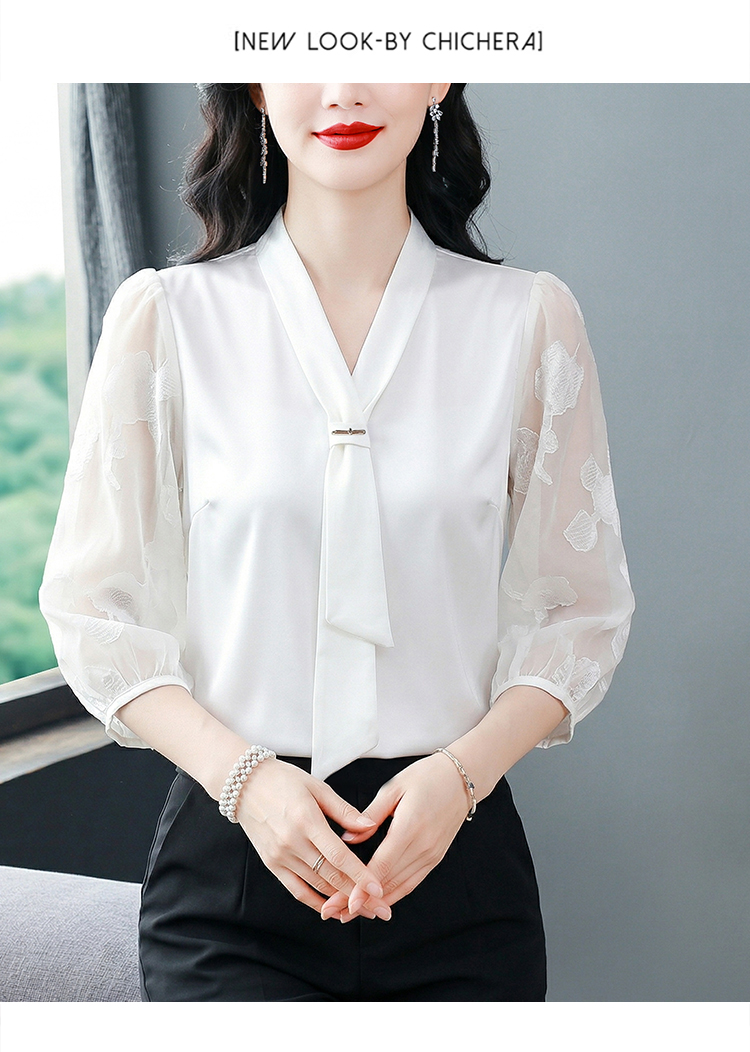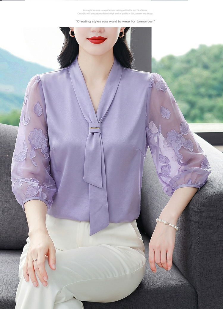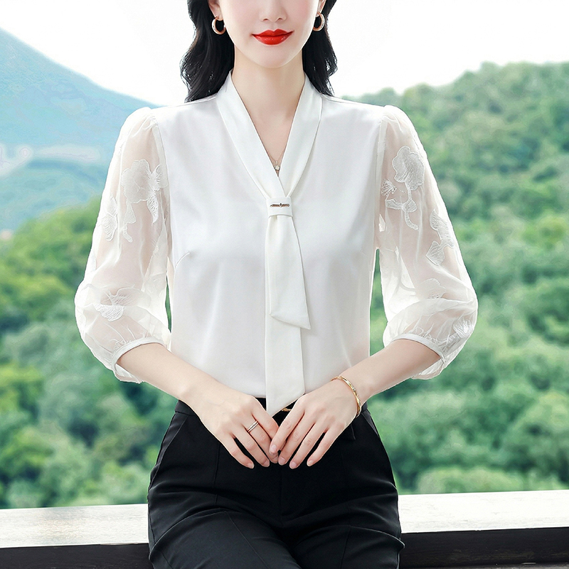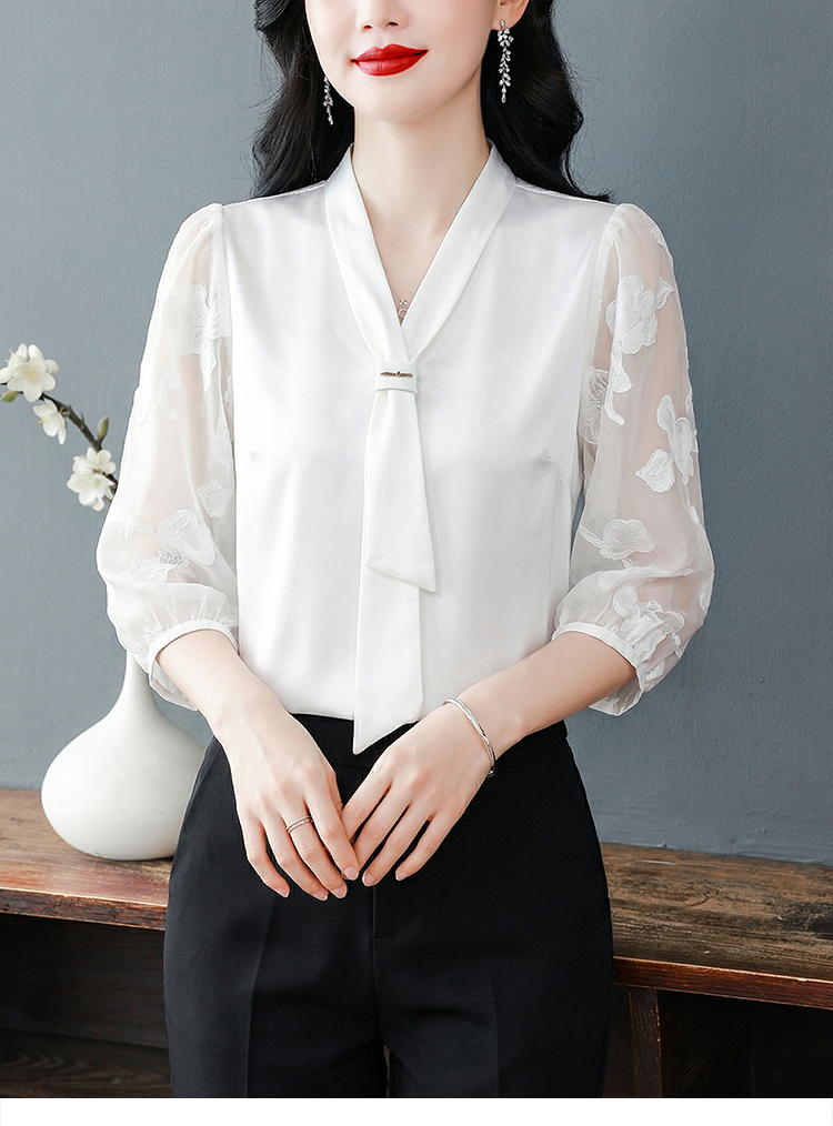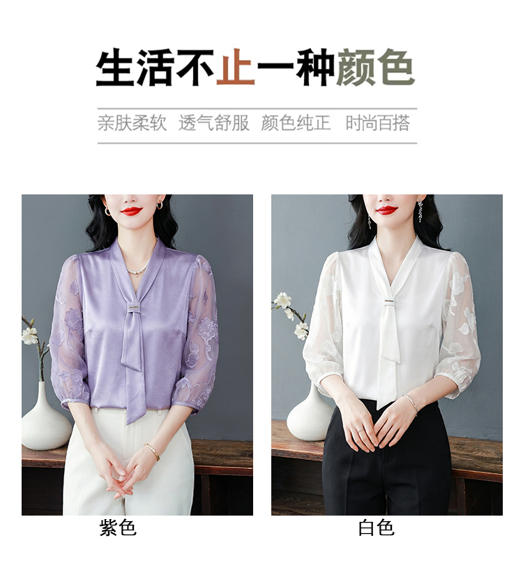 RY3411# 2026春夏新款蕾丝泡泡七分袖纯色款气质百搭衬衫