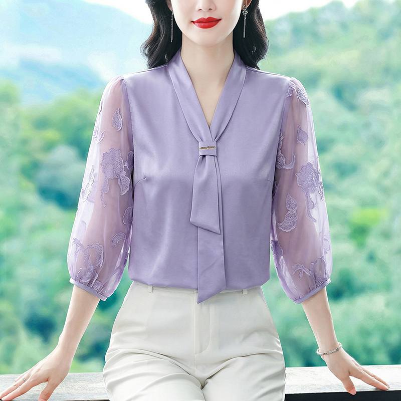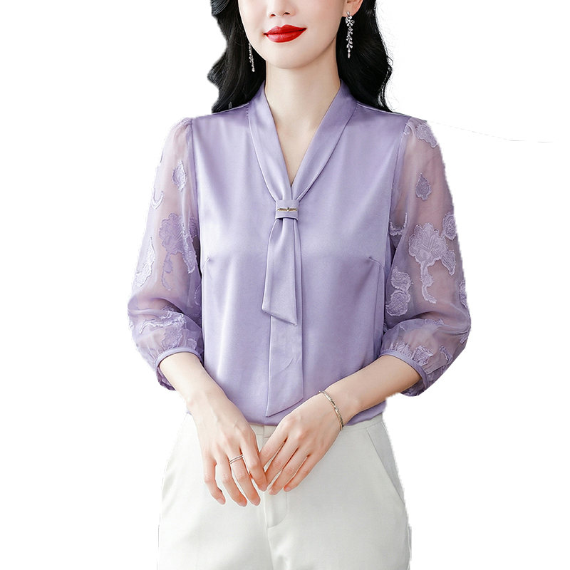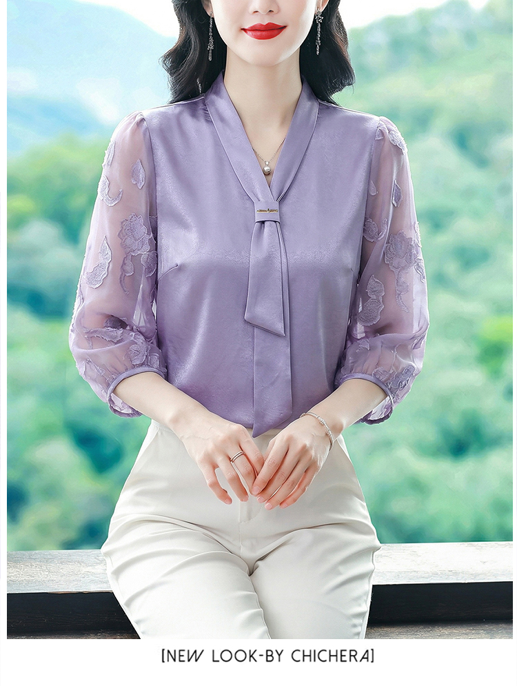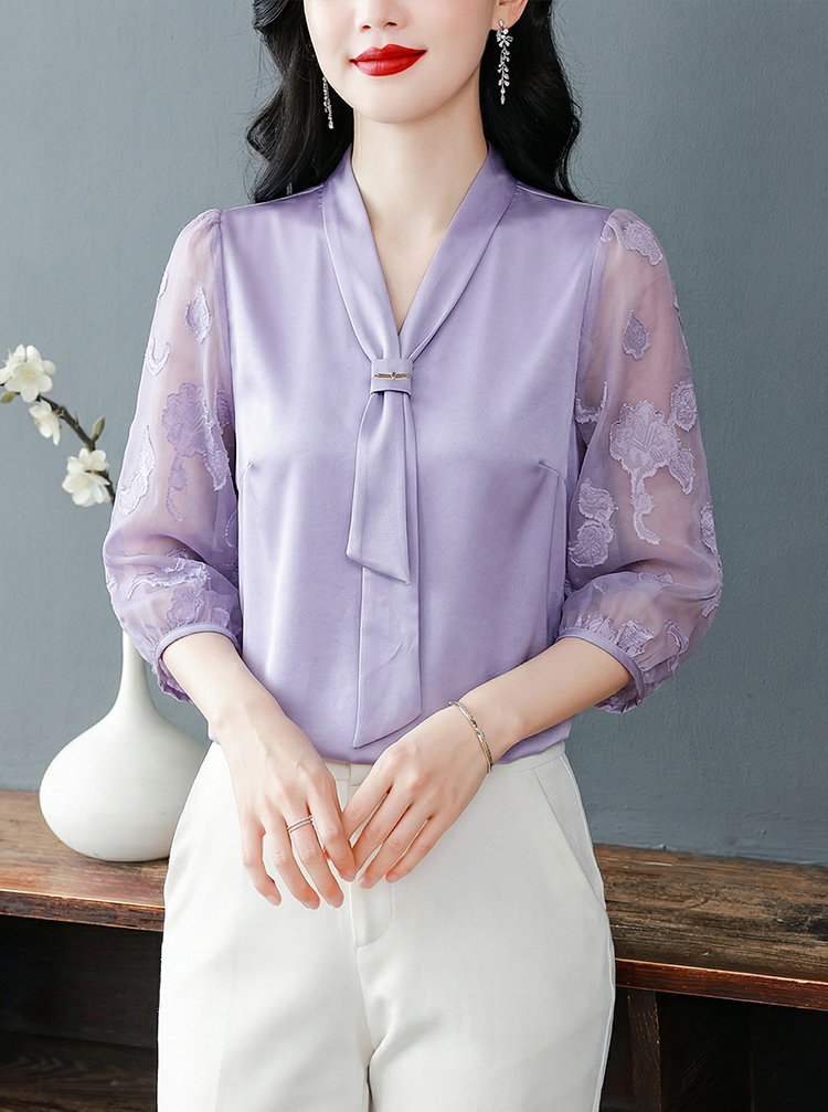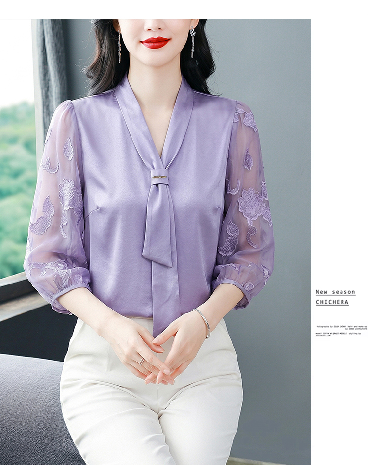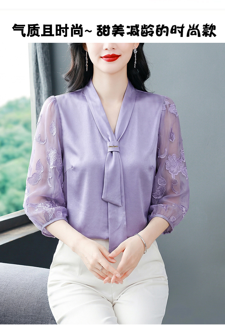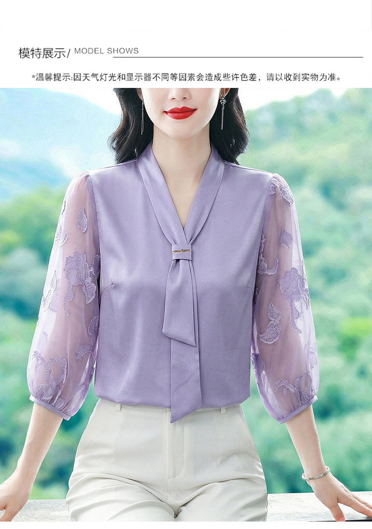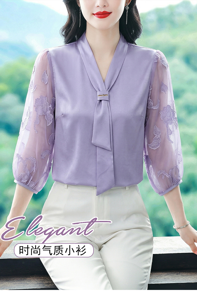 RY3411# 2026春夏新款蕾丝泡泡七分袖纯色款气质百搭衬衫
