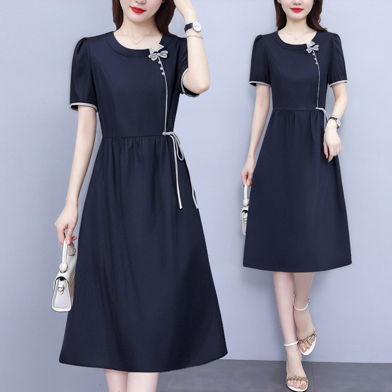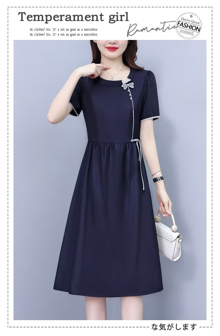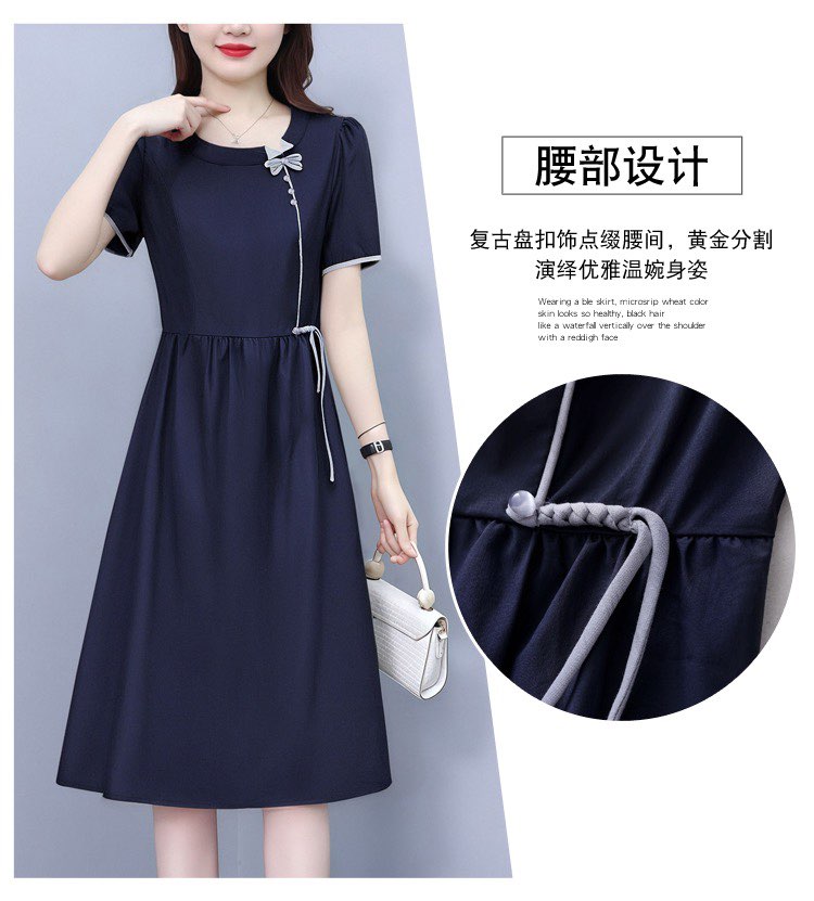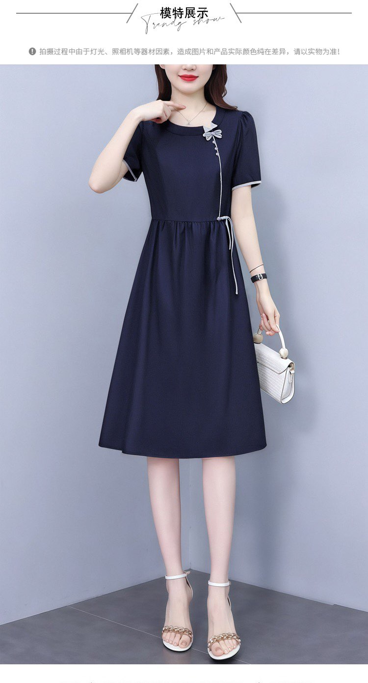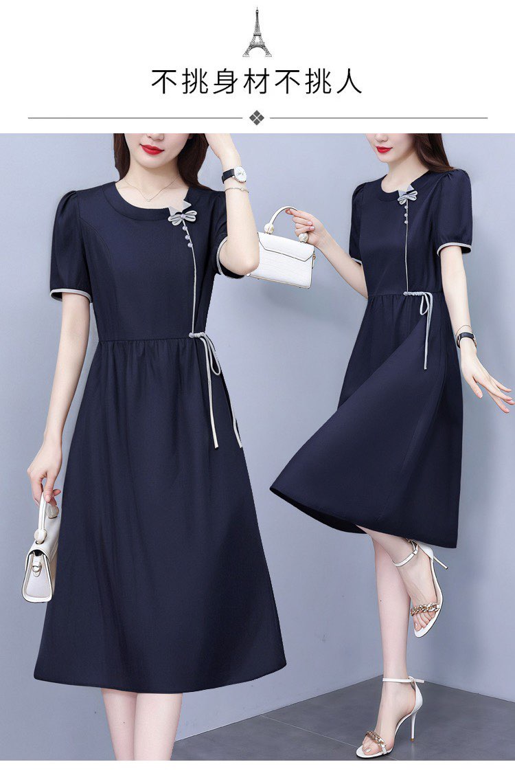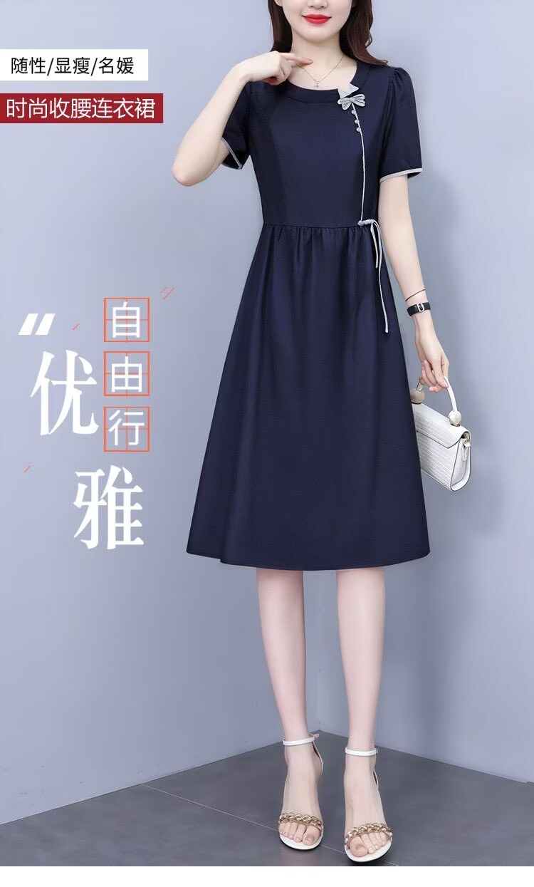 RY3485# 实拍有货 2026夏季新款大码短袖连衣裙纯色腰带妈妈收腰显...