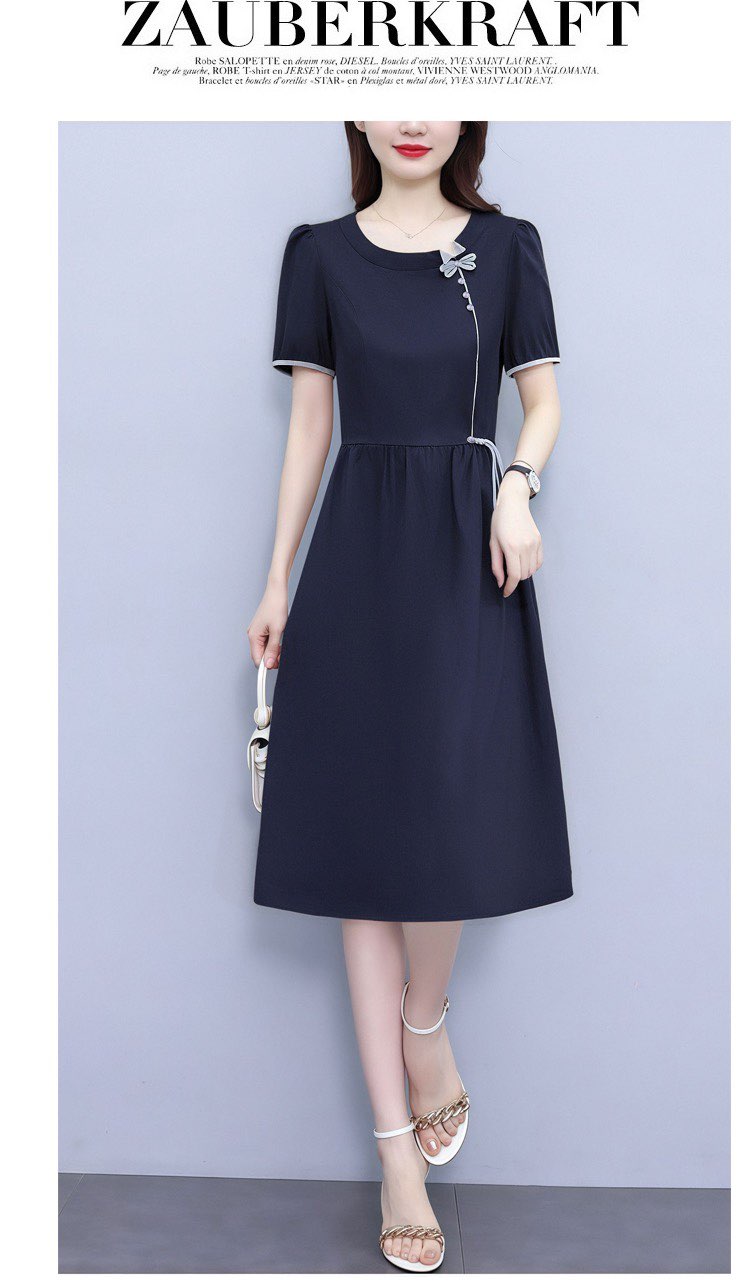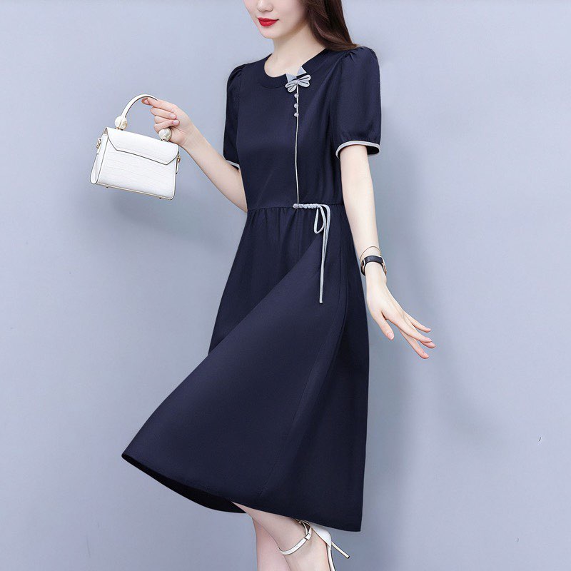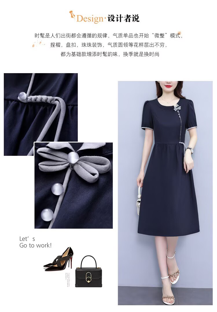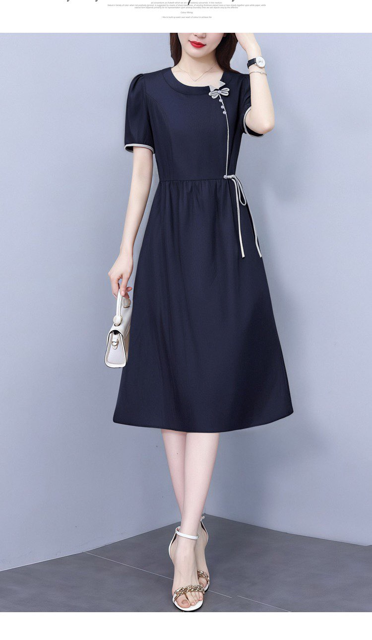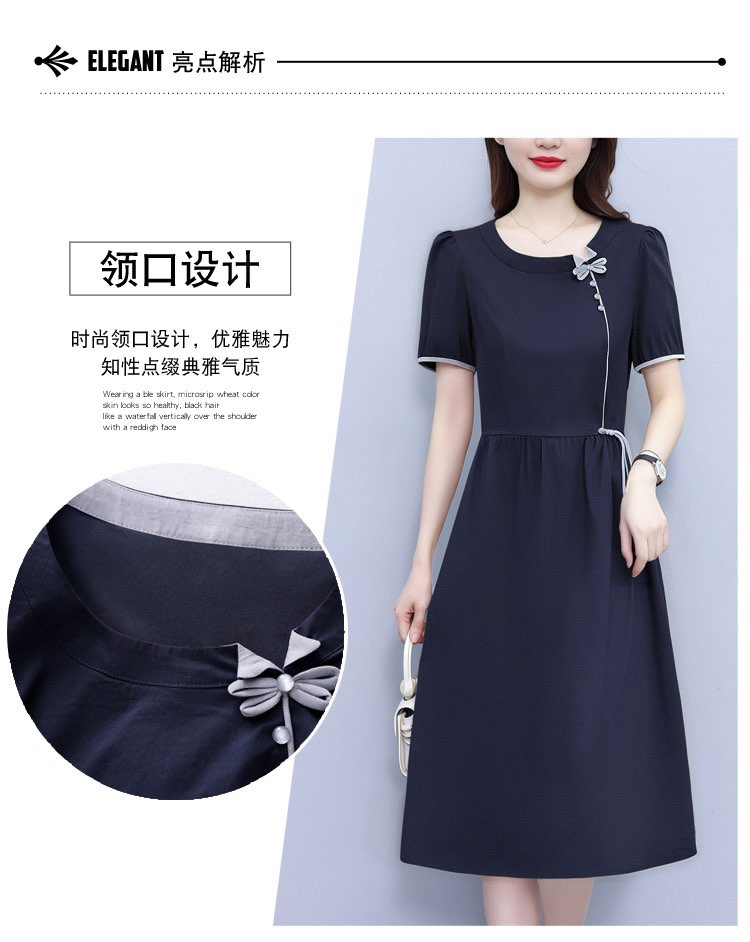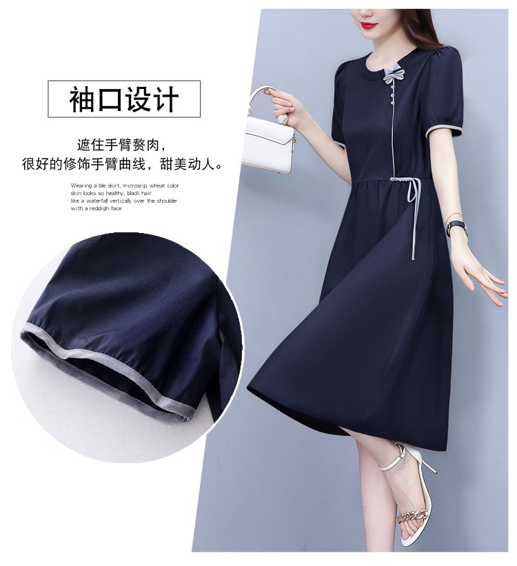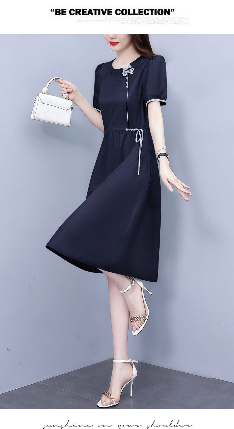RY3418# PLYC藏蓝夏季新品连衣裙气质显瘦修身女装时尚打底收腰洋气