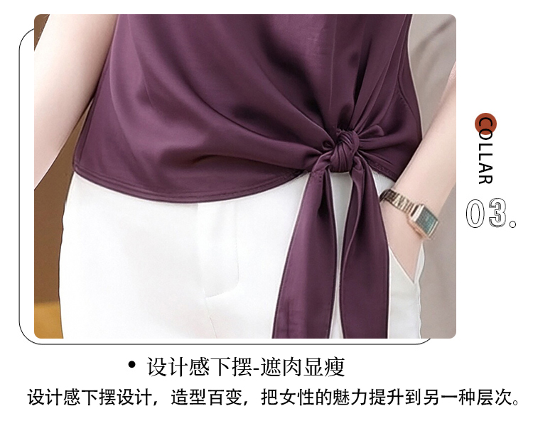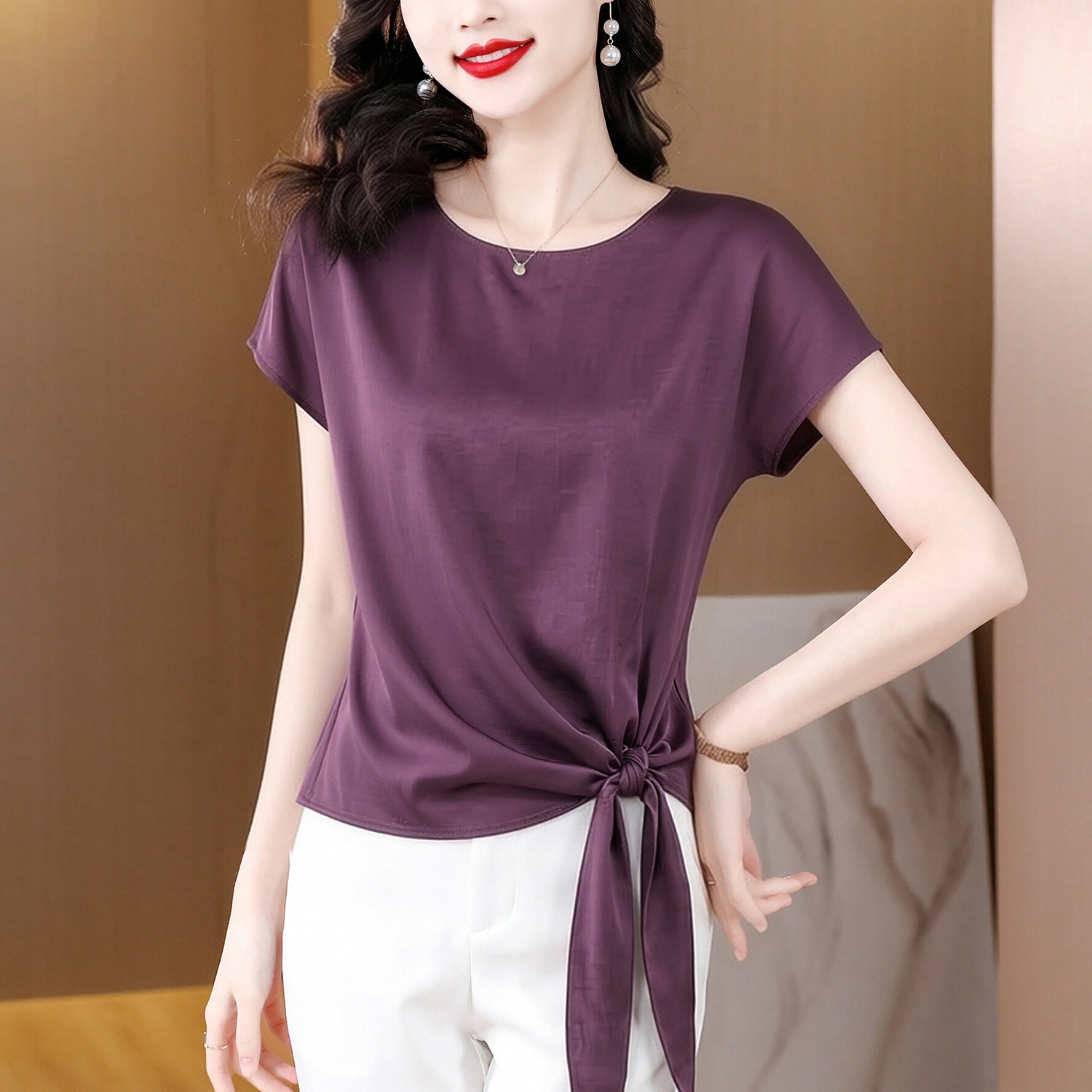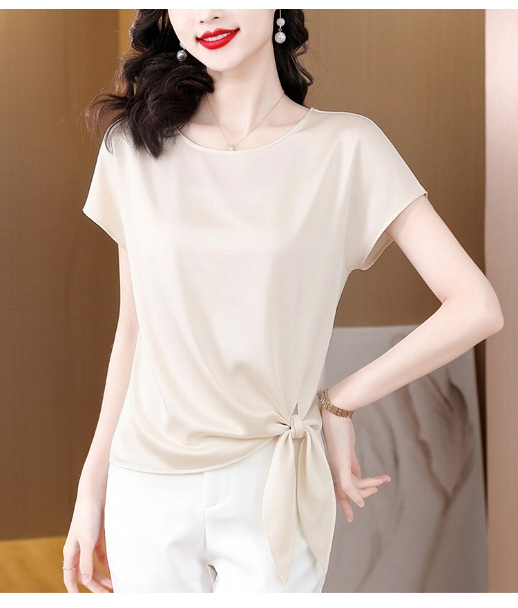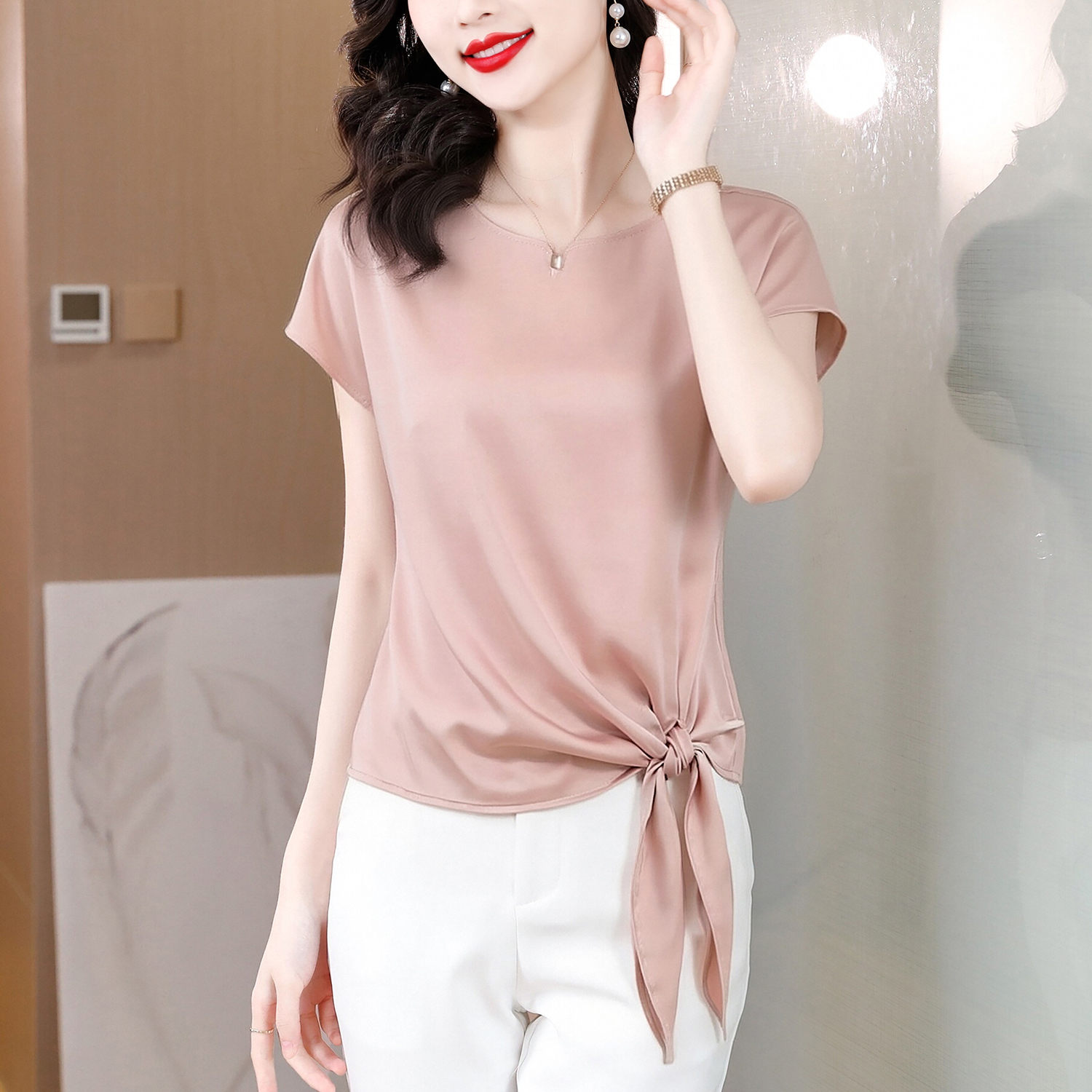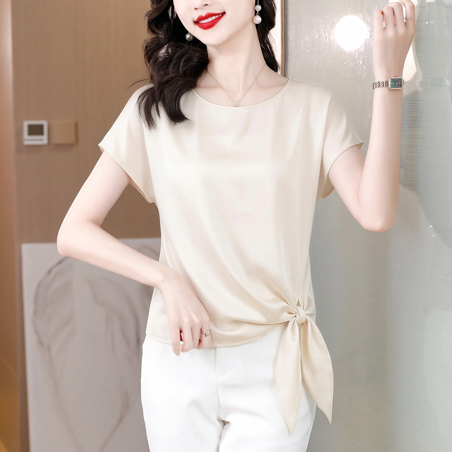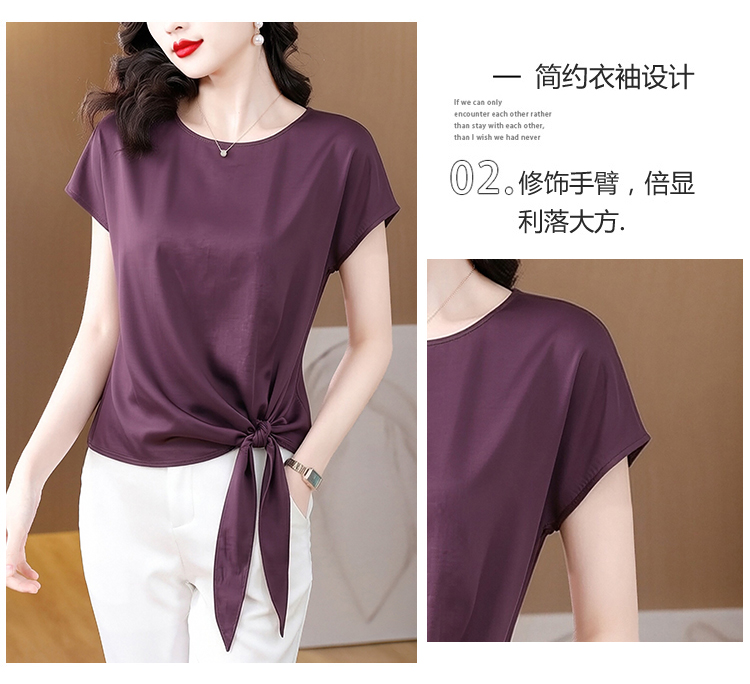 RY3429# 实拍夏季新款韩版时尚简约圆领设计纯色软糯系带收腰短袖上衣女
