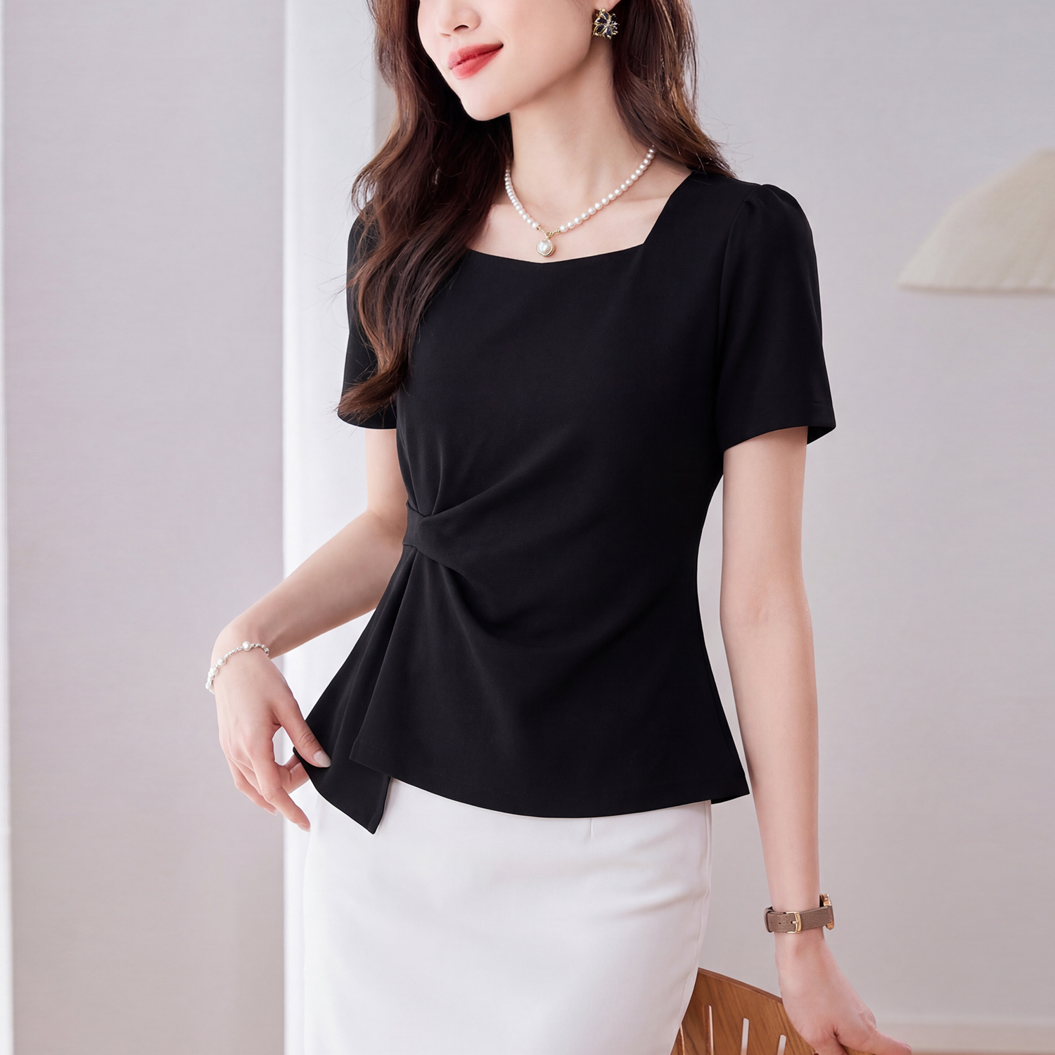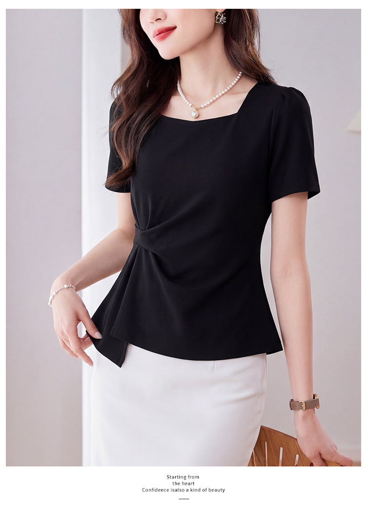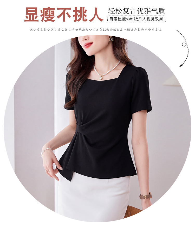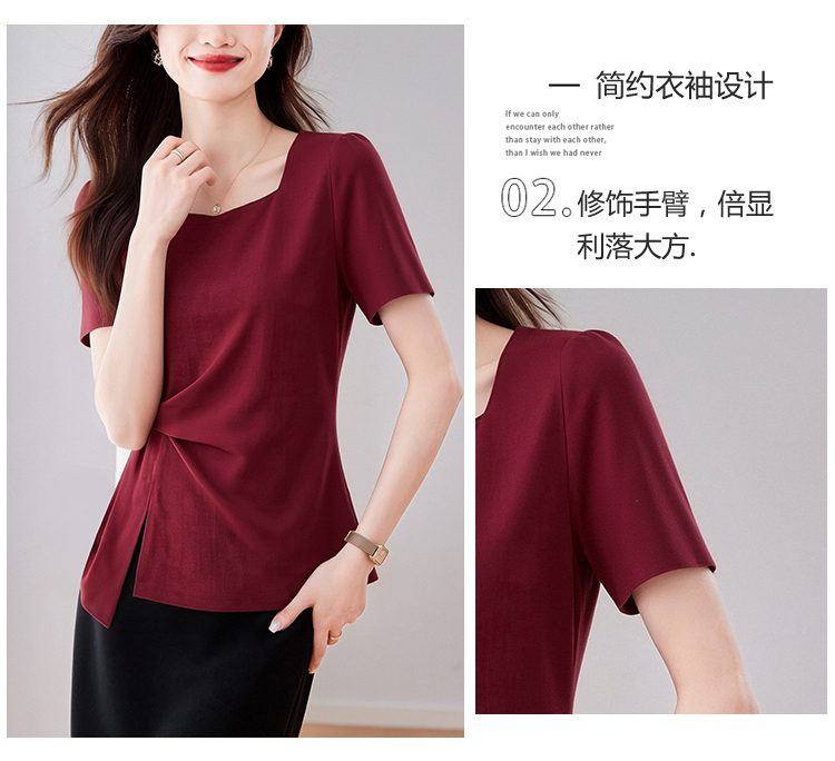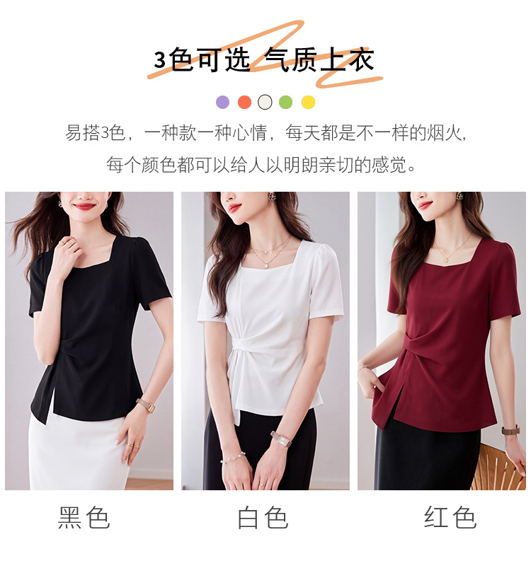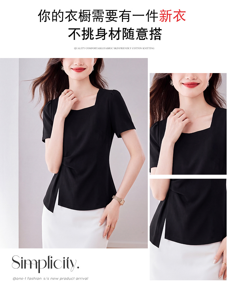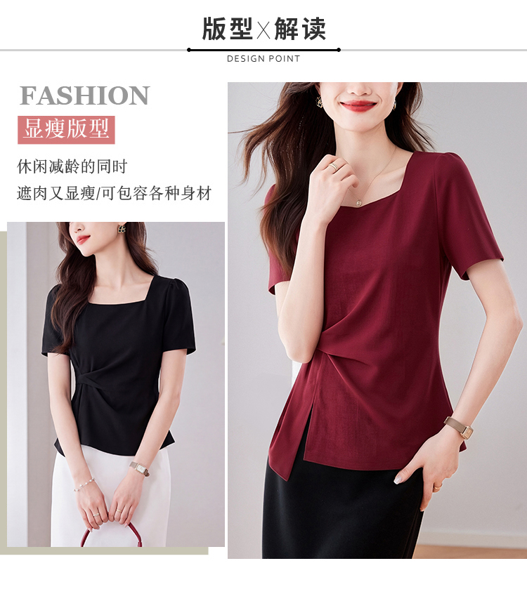 RY3431# 实拍 时尚方领短袖夏季新款不规则设计感显瘦百搭亲肤纯棉T恤上衣