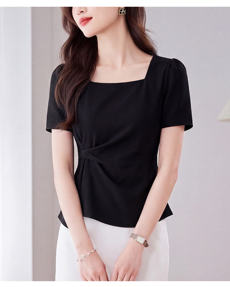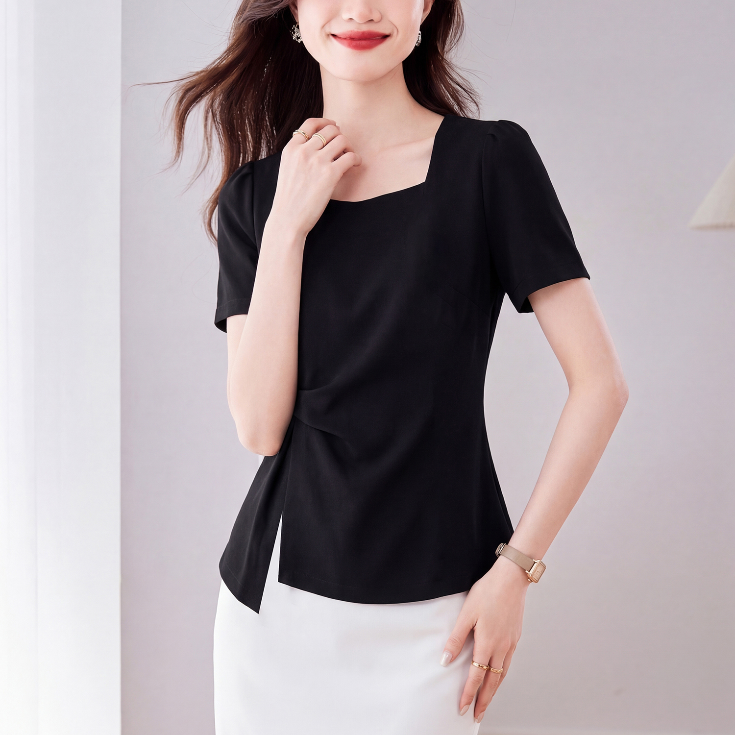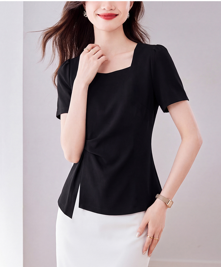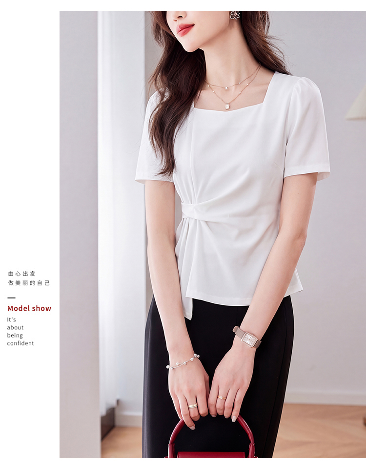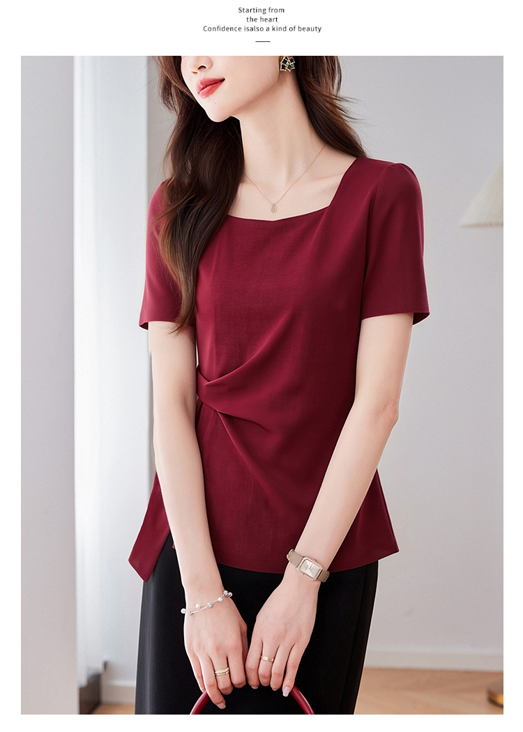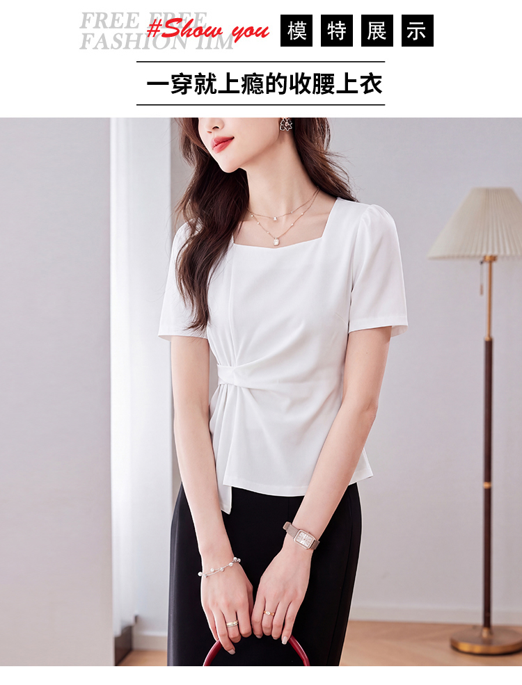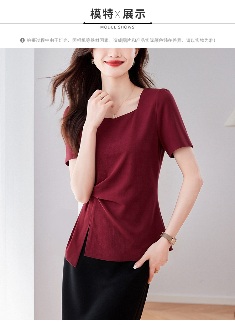 RY3431# 实拍 时尚方领短袖夏季新款不规则设计感显瘦百搭亲肤纯棉T恤上衣
