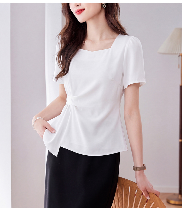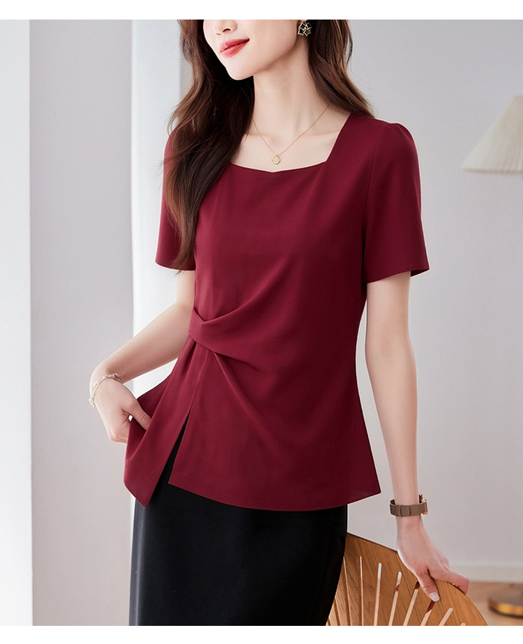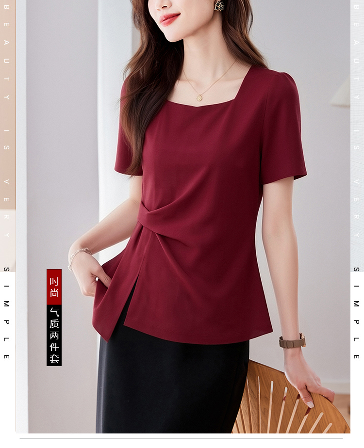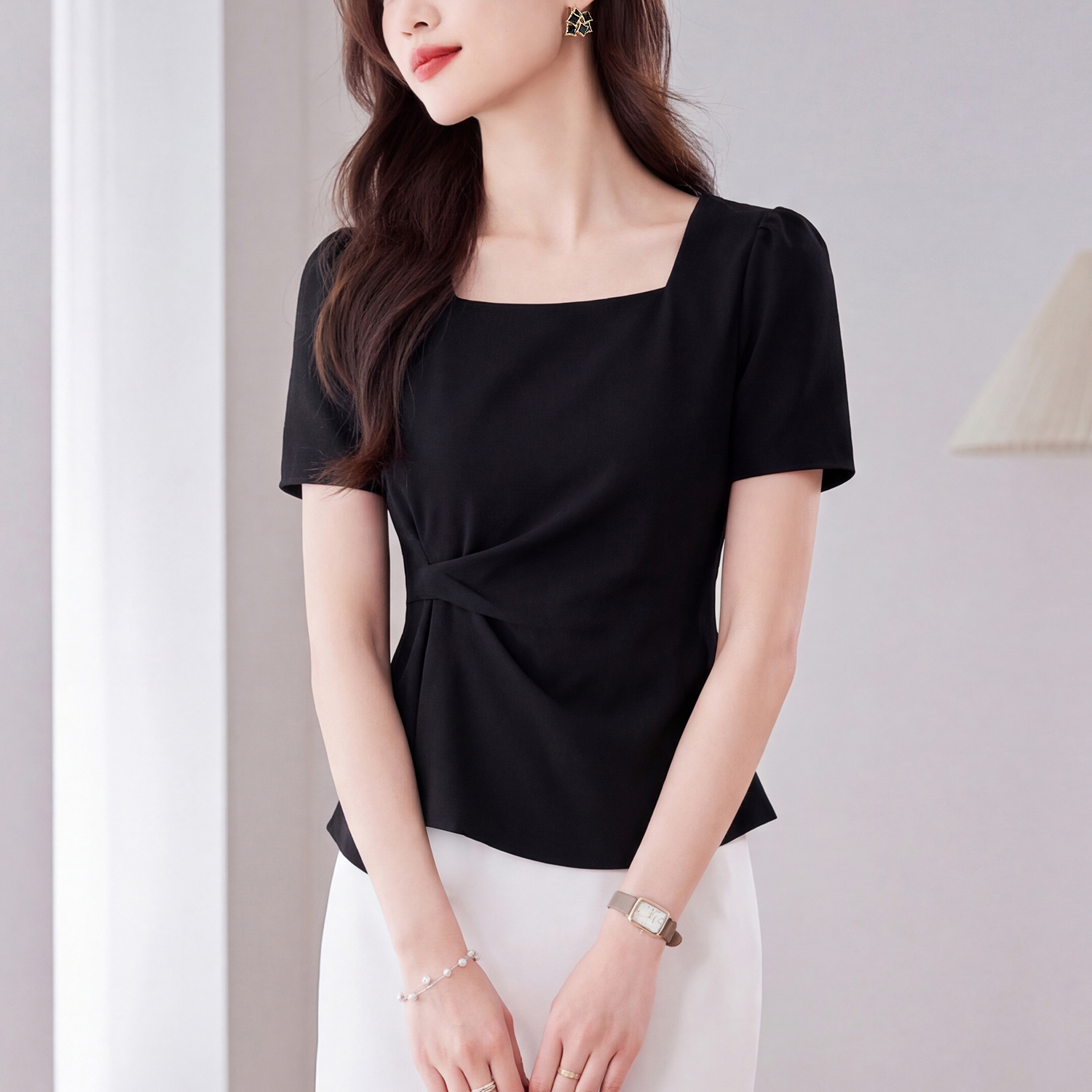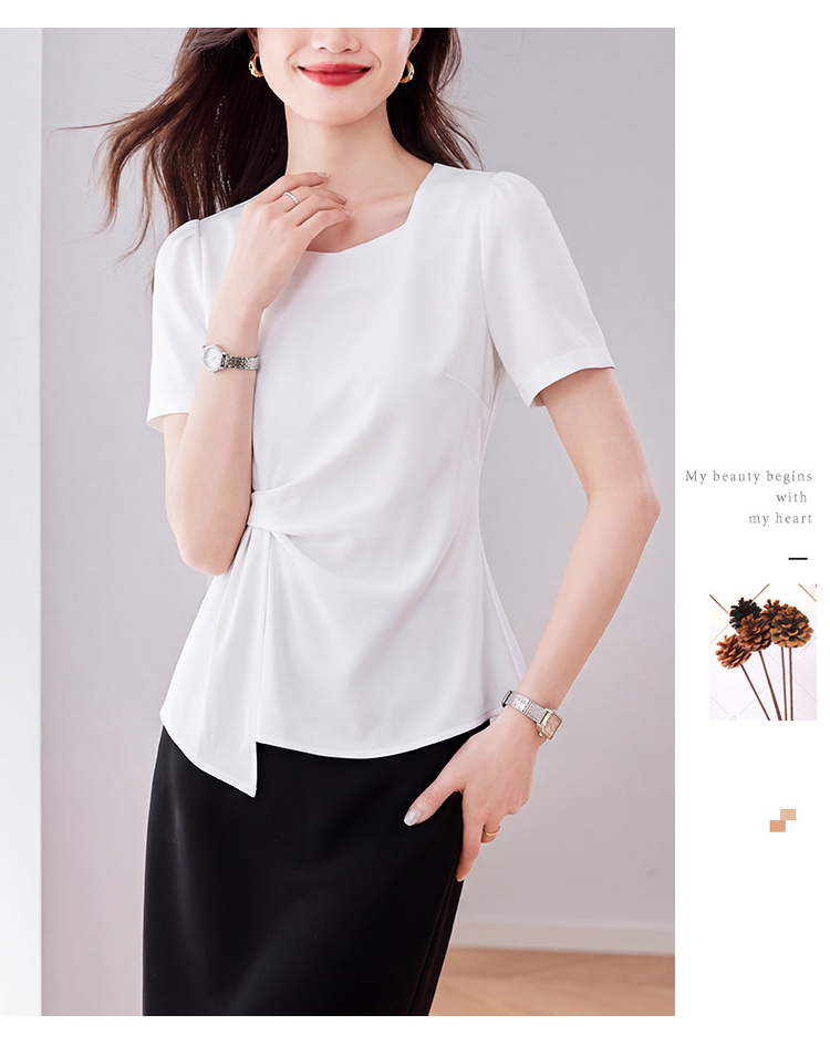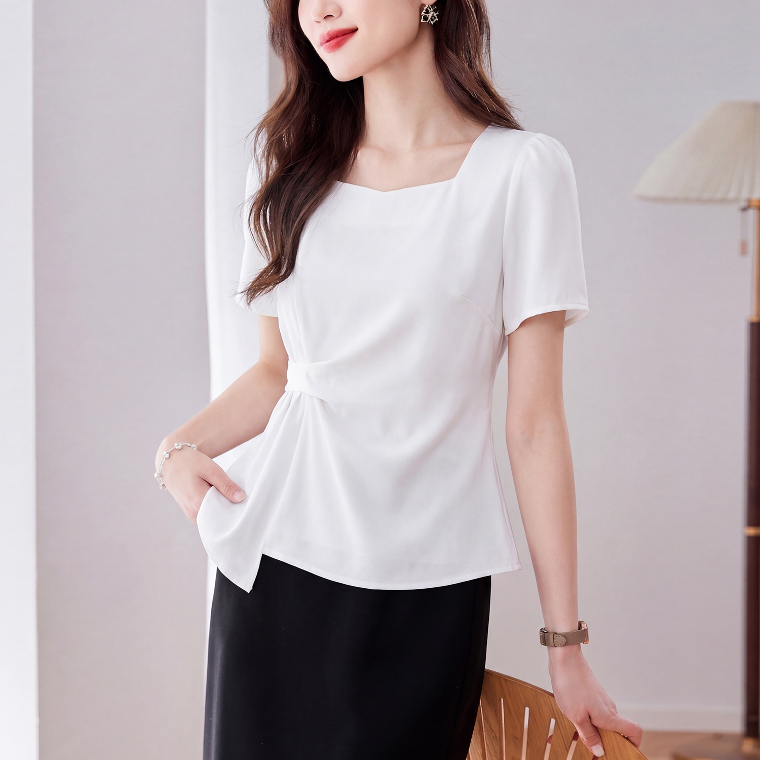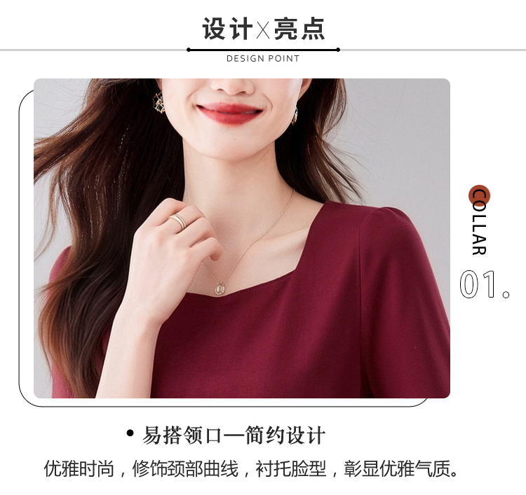 RY3431# 实拍 时尚方领短袖夏季新款不规则设计感显瘦百搭亲肤纯棉T恤上衣