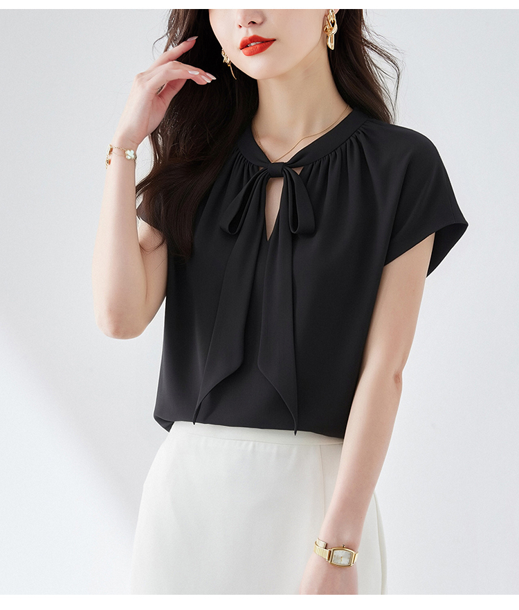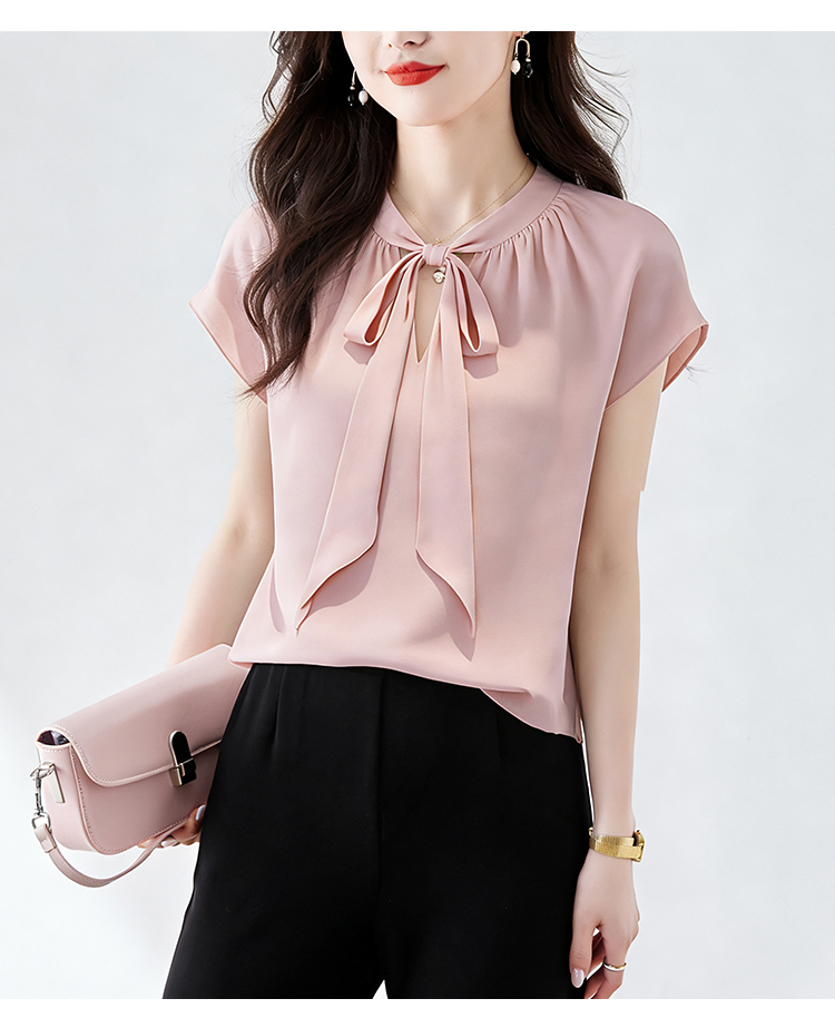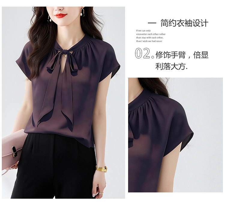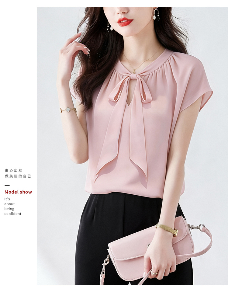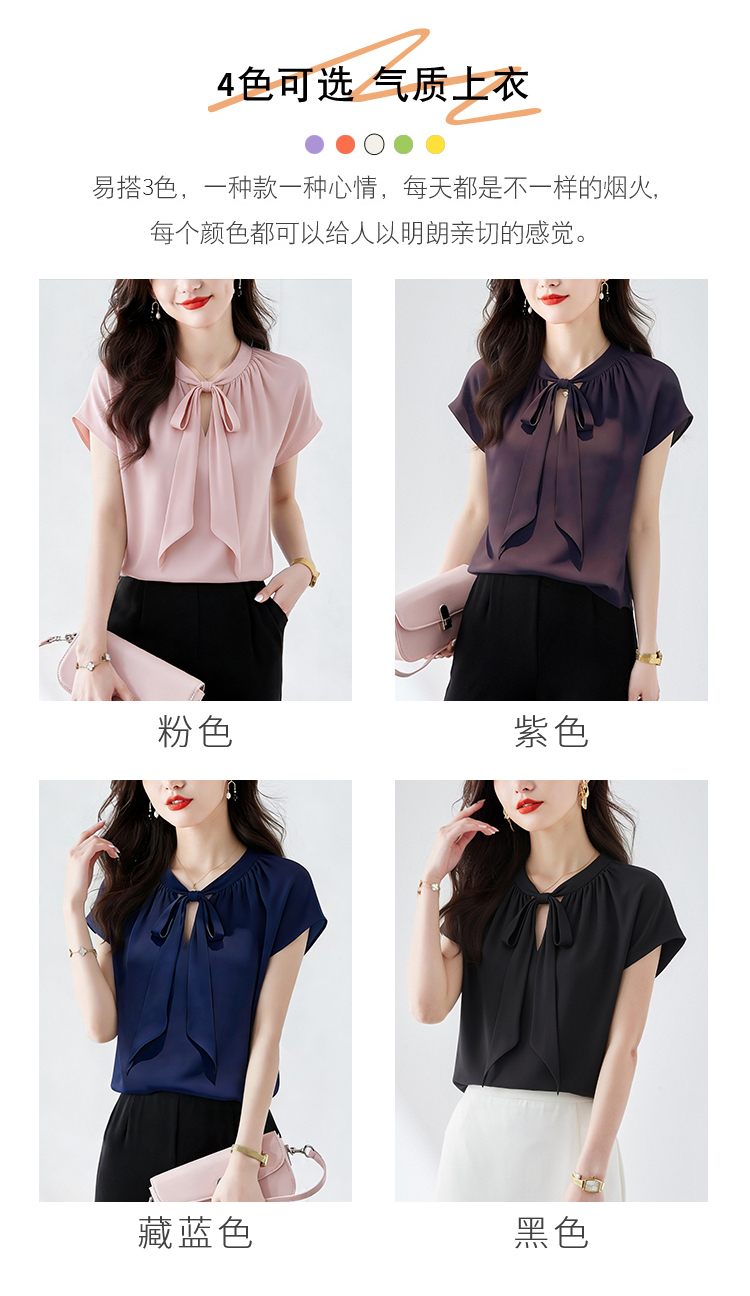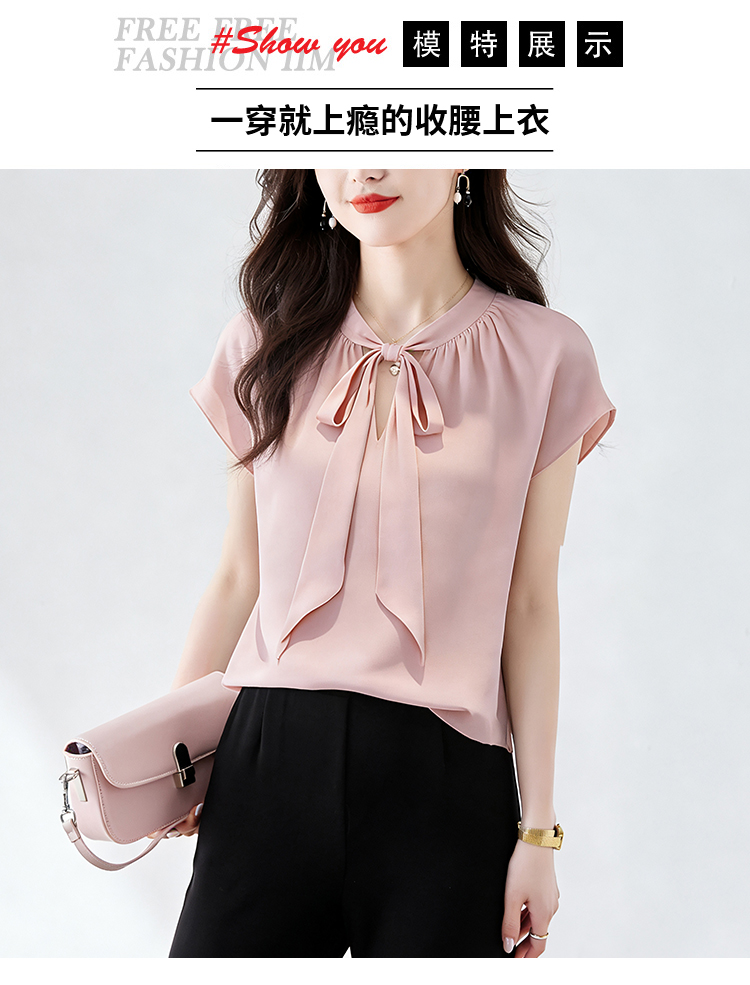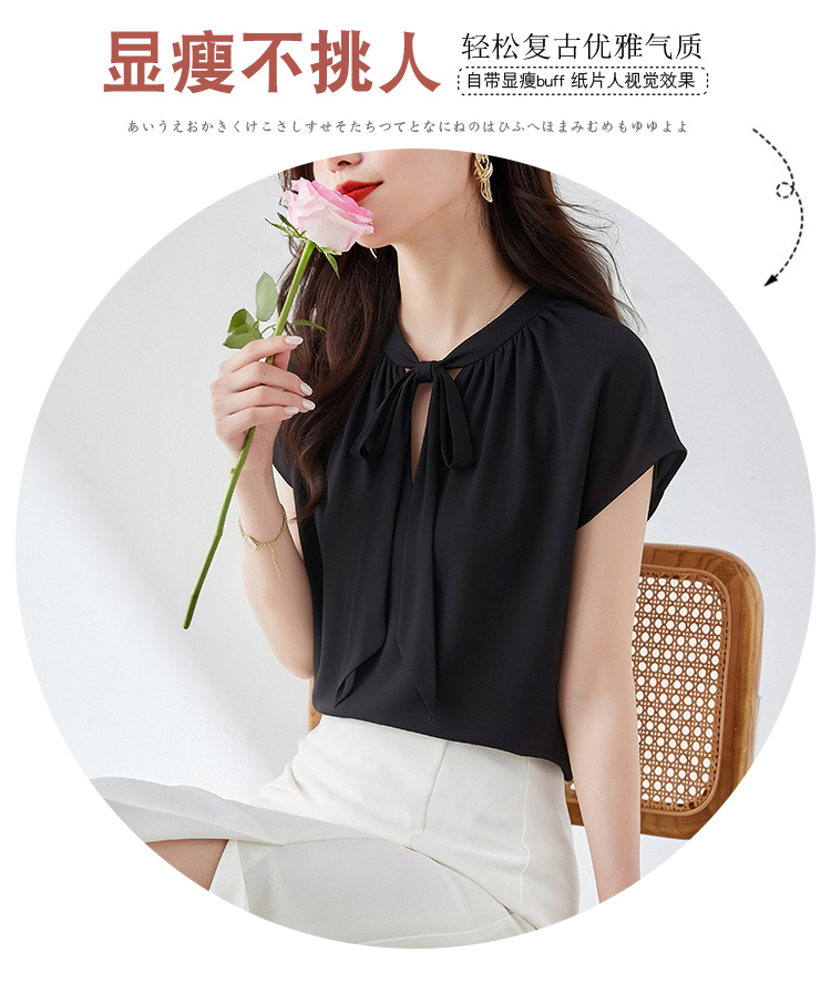 RY3432# 实拍优雅风显白系带雪纺衬衫时髦通勤气质百搭小衫女2026夏季新款