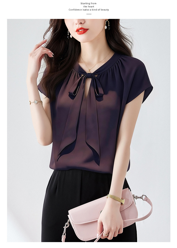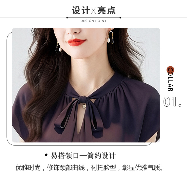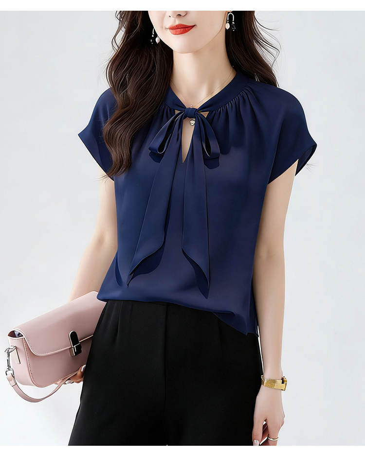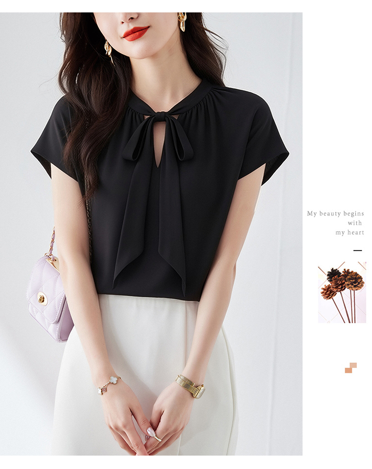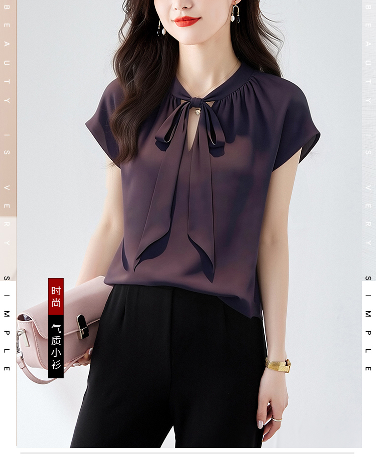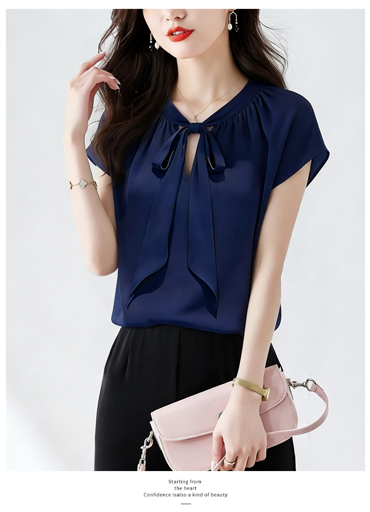 RY3432# 实拍优雅风显白系带雪纺衬衫时髦通勤气质百搭小衫女2026夏季新款