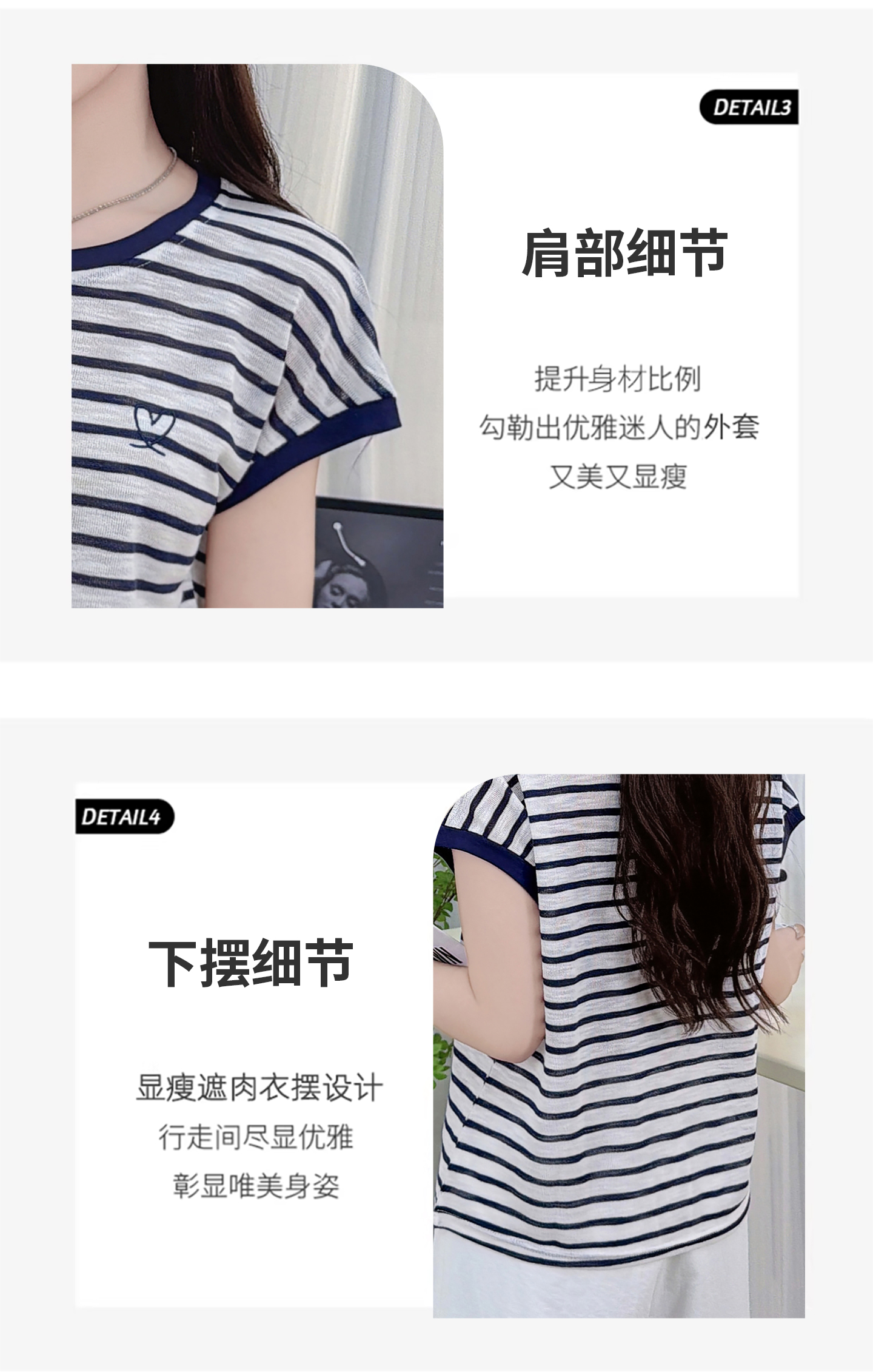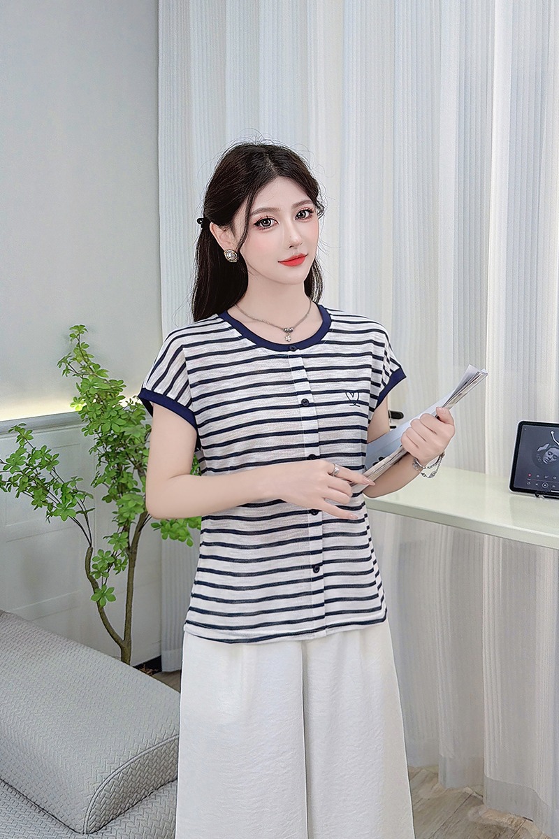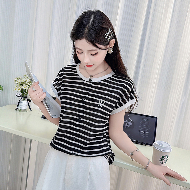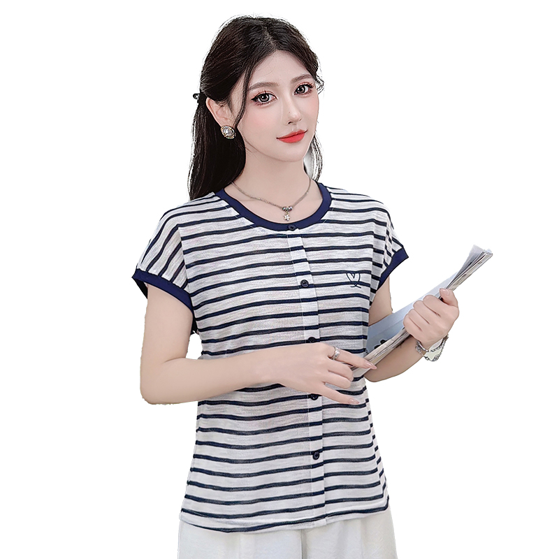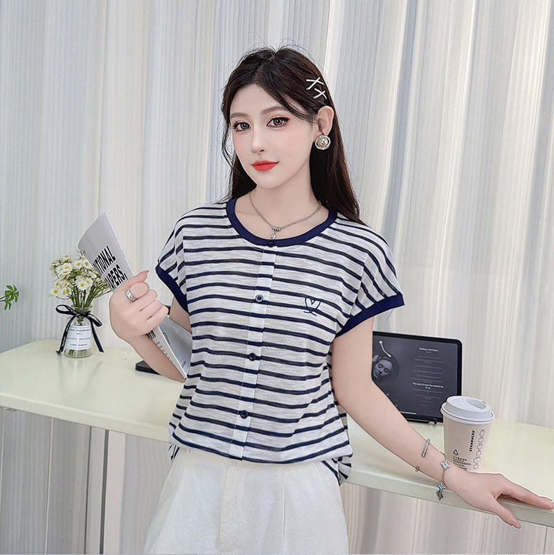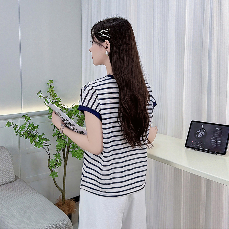 RY3436# 2026夏季新款条纹上衣女设计感小众休闲百搭宽松显瘦短袖T恤上衣