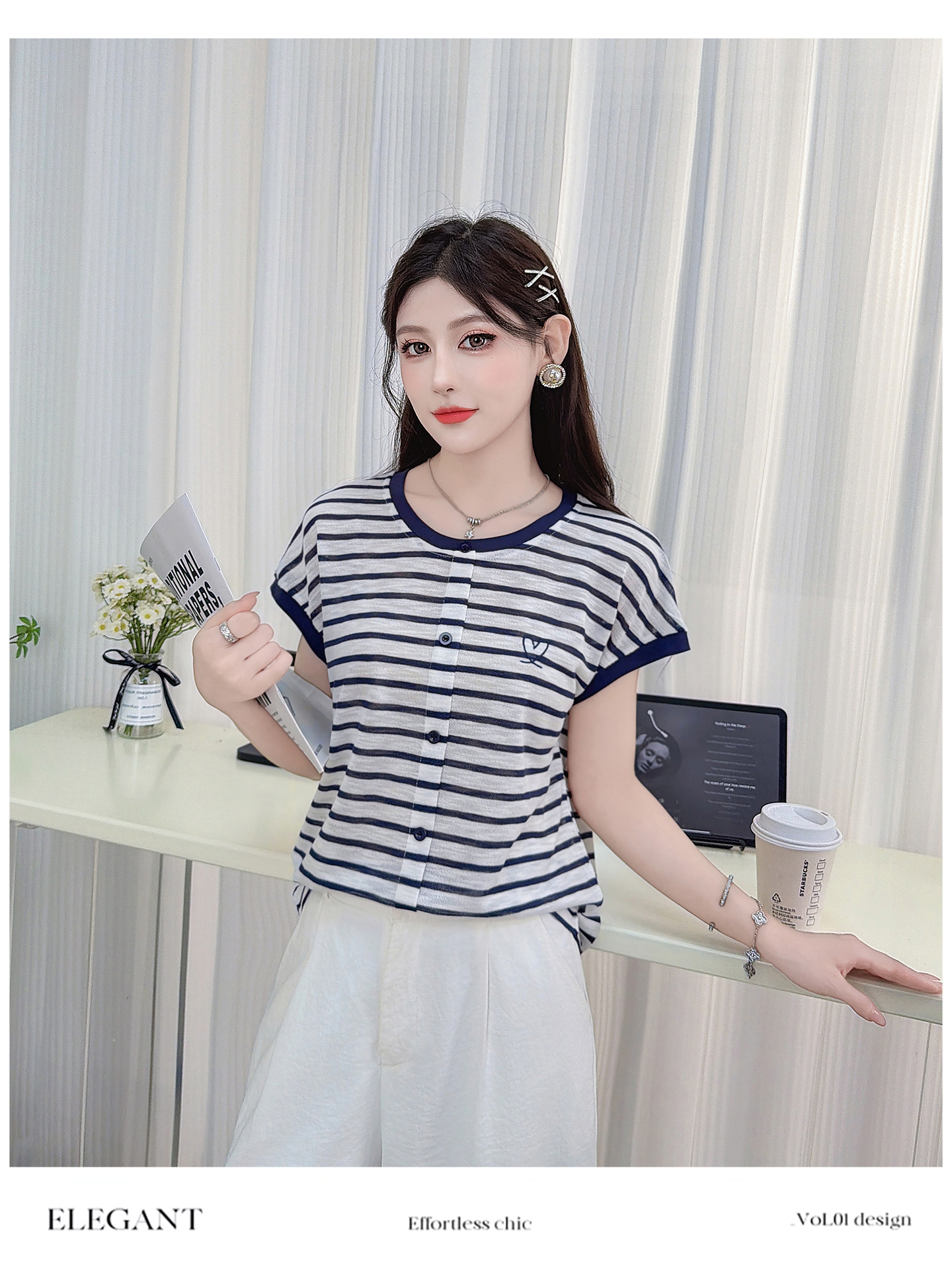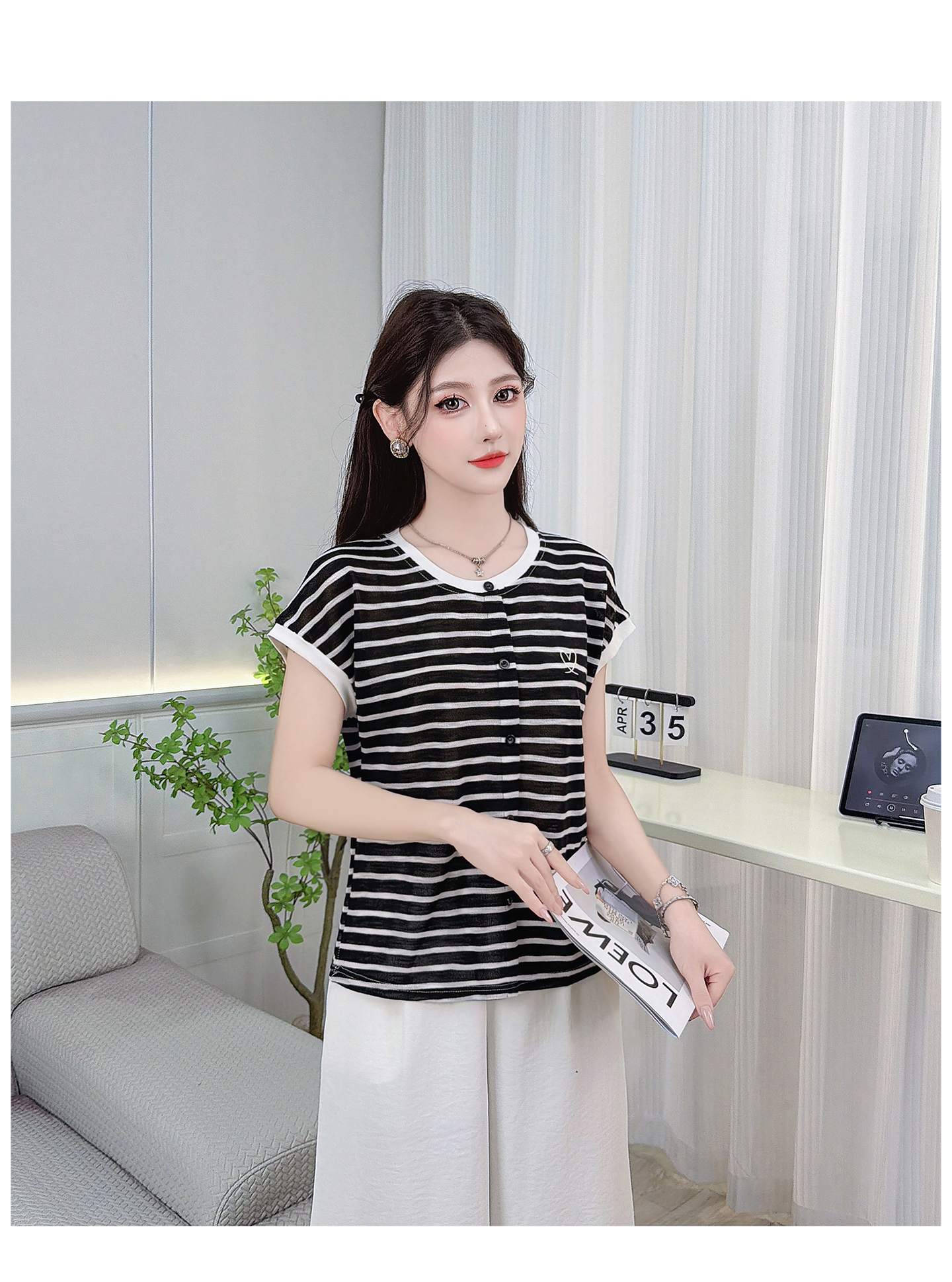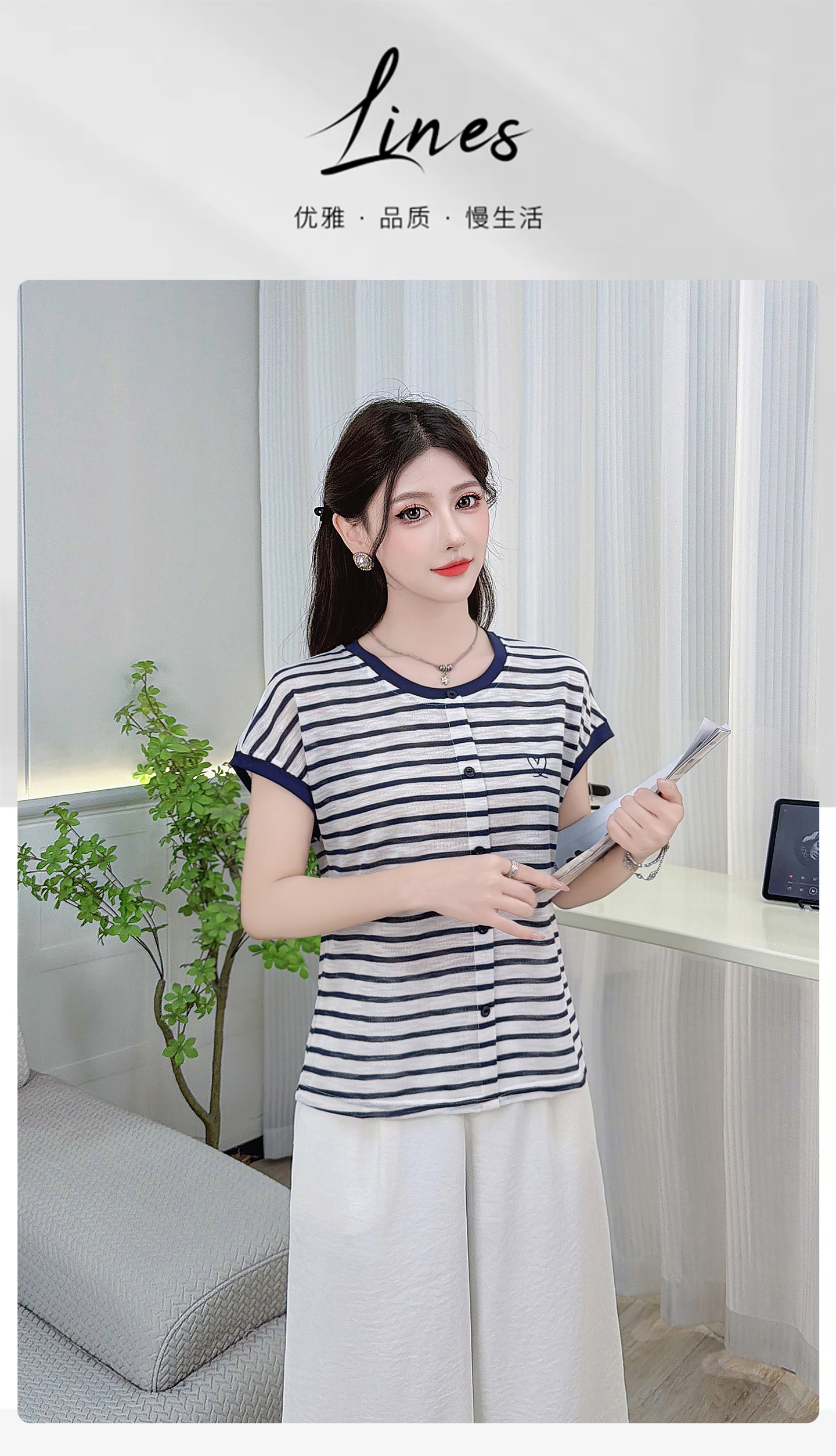 RY3436# 2026夏季新款条纹上衣女设计感小众休闲百搭宽松显瘦短袖T恤上衣