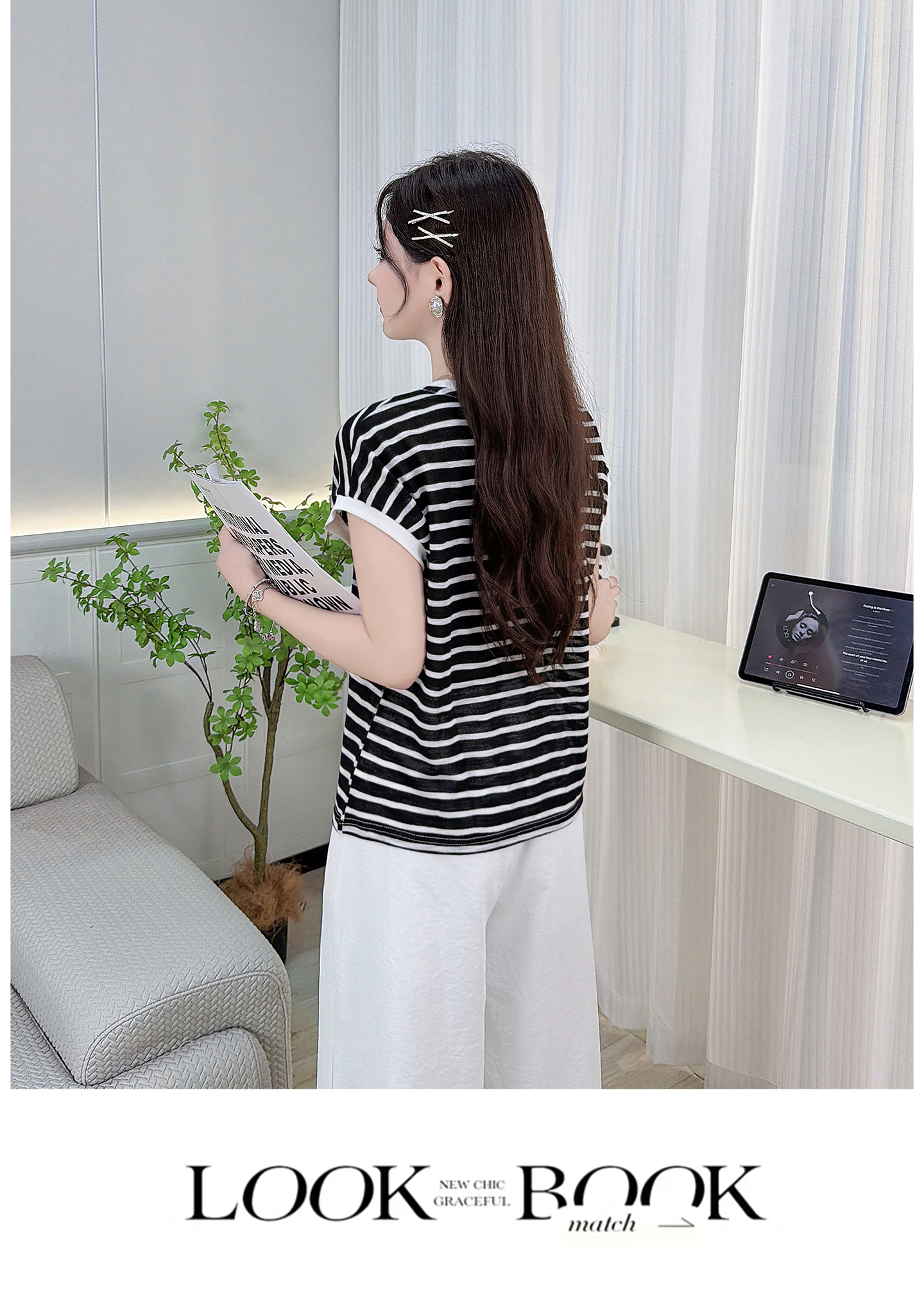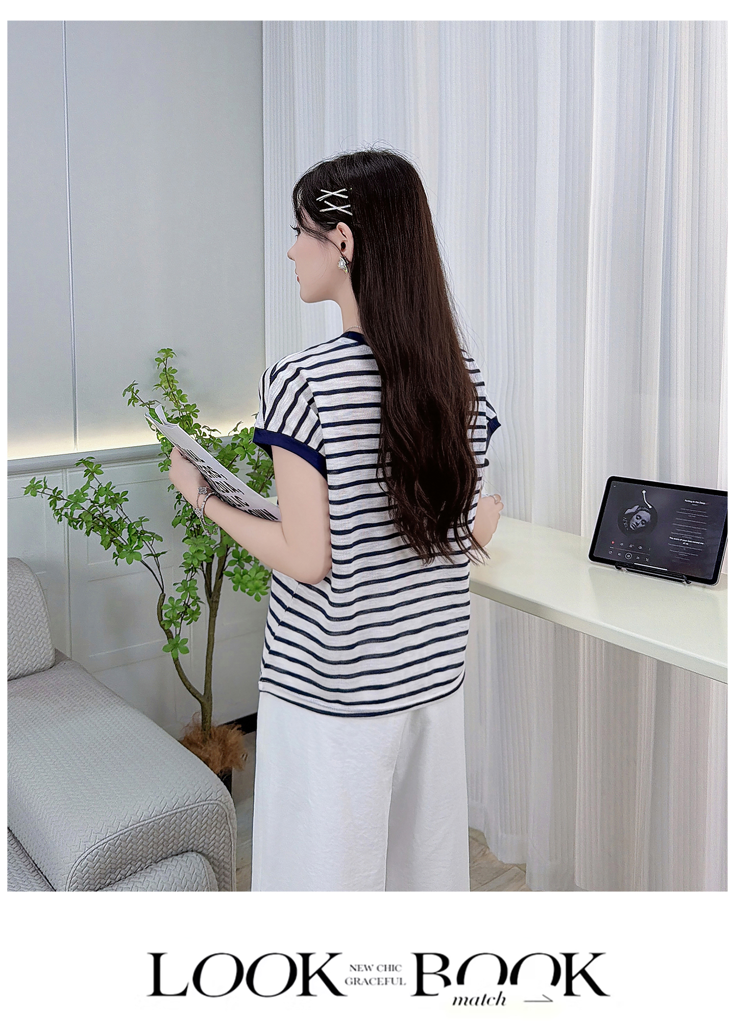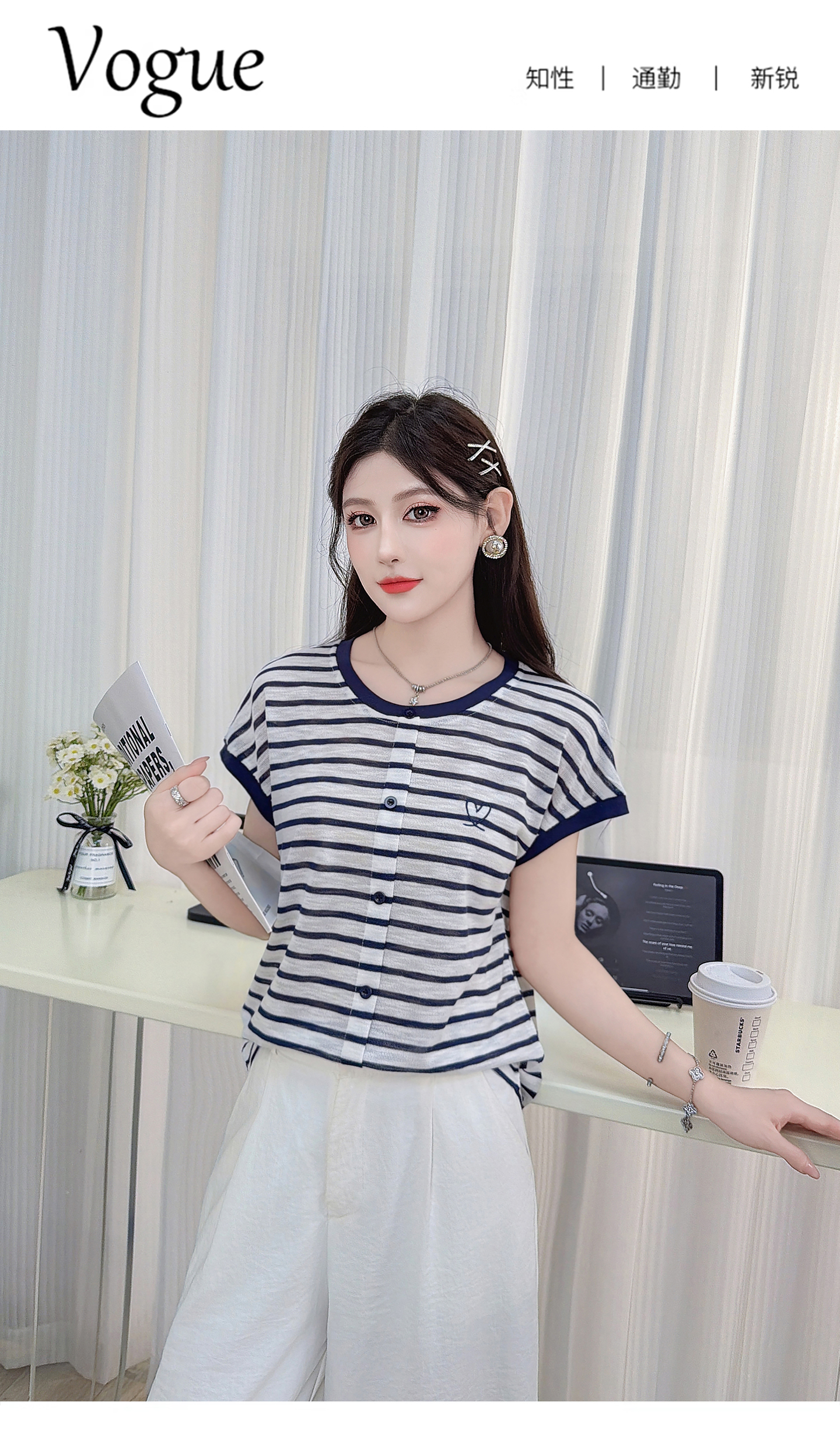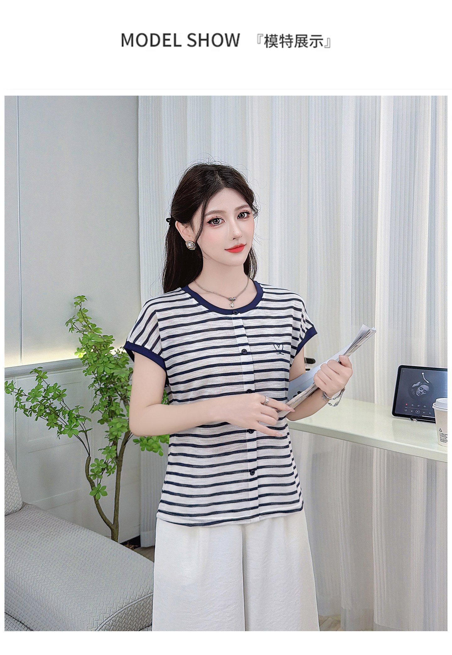 RY3436# 2026夏季新款条纹上衣女设计感小众休闲百搭宽松显瘦短袖T恤上衣