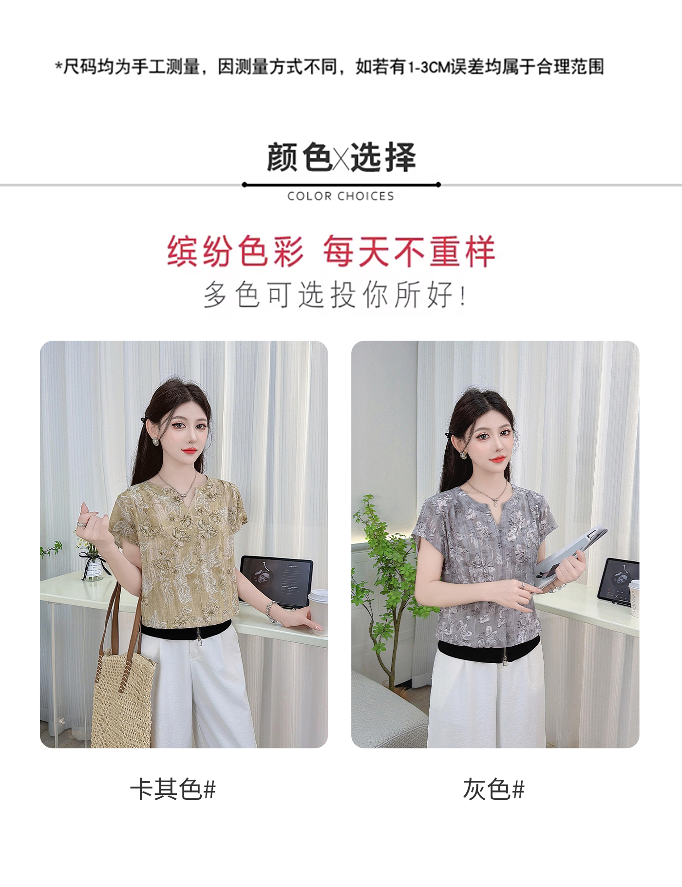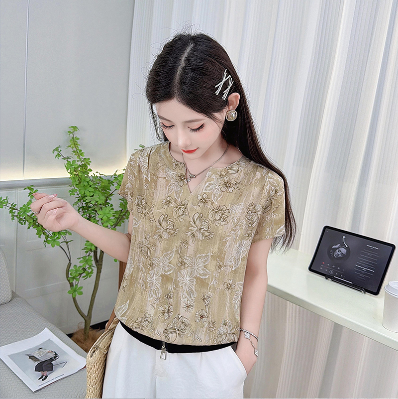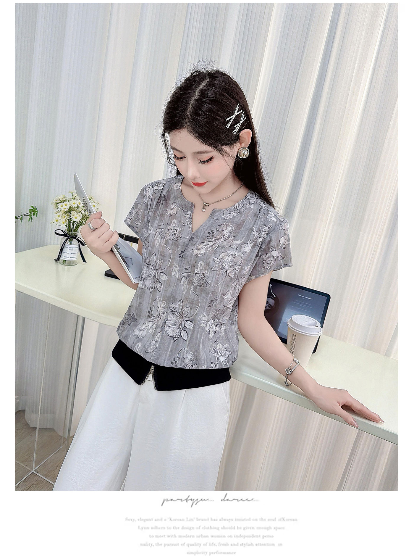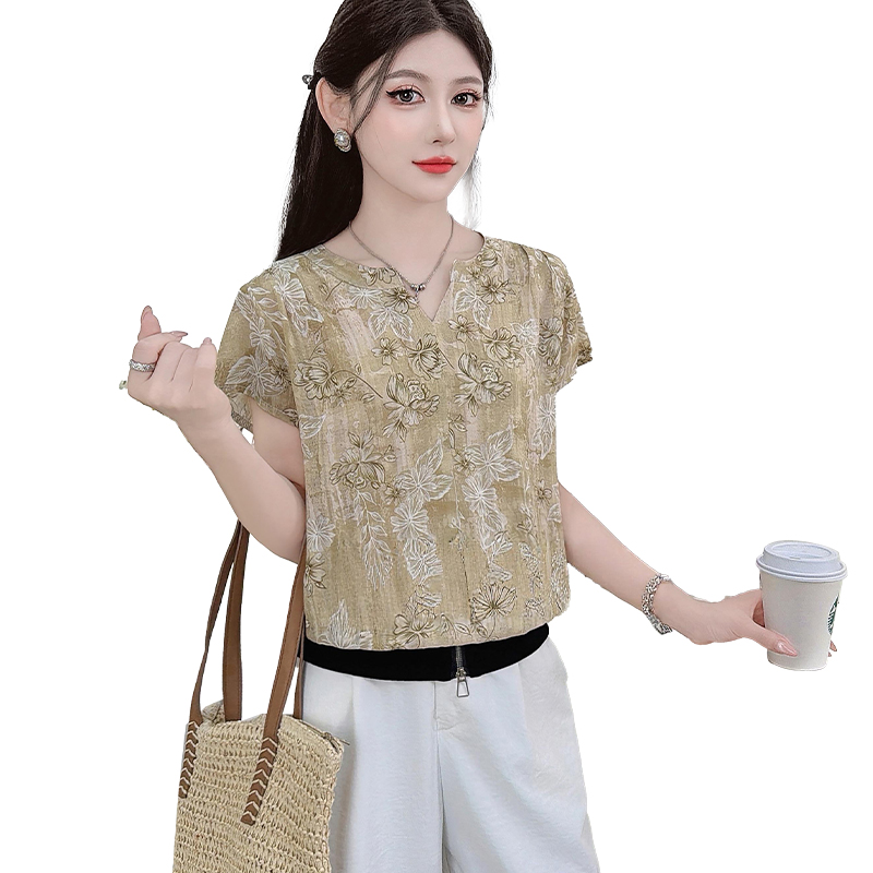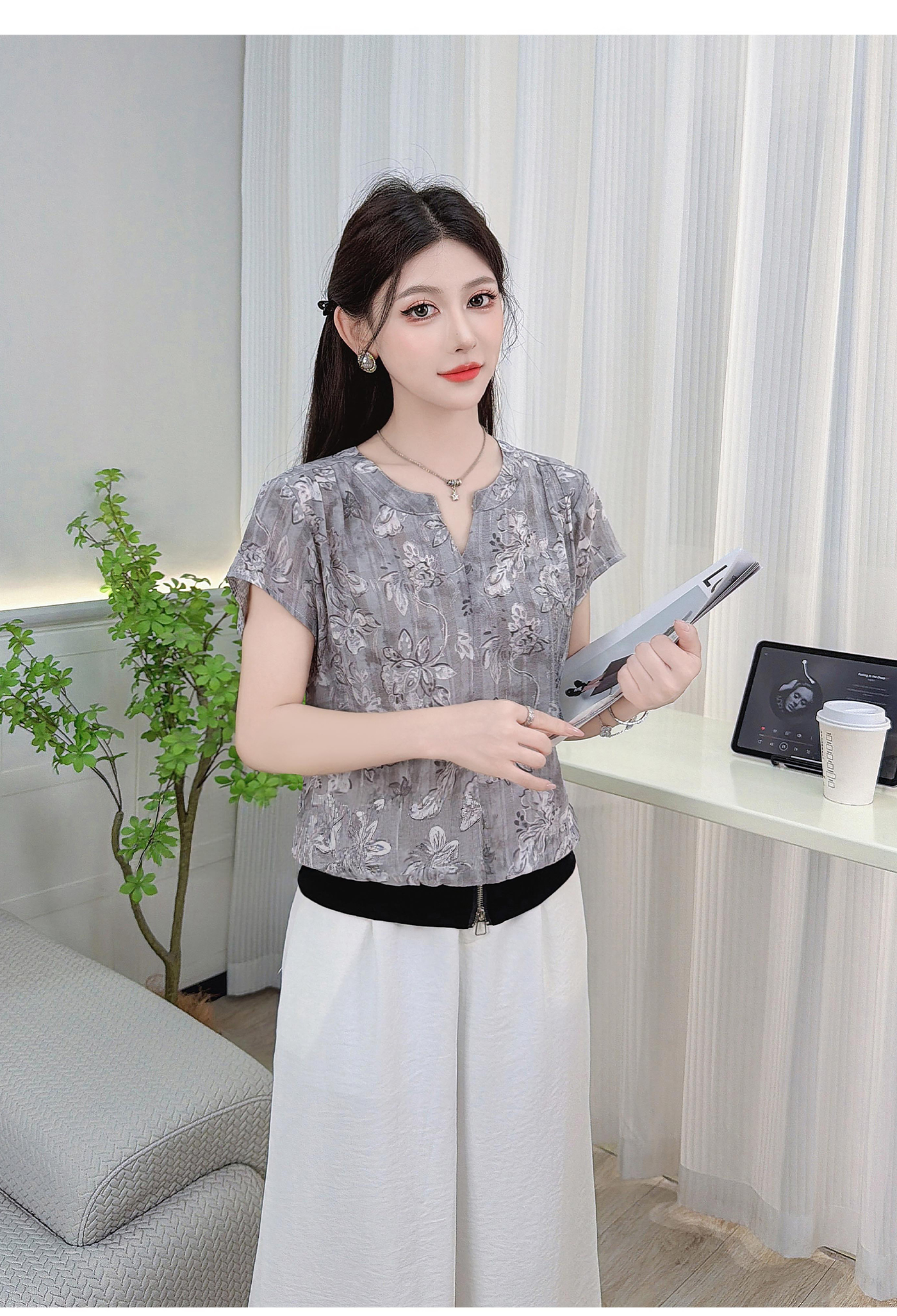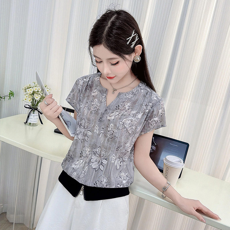 RY3438# 时尚V领下摆拉链雪纺衫2026夏季新款宽松显瘦百搭短袖女薄款上衣