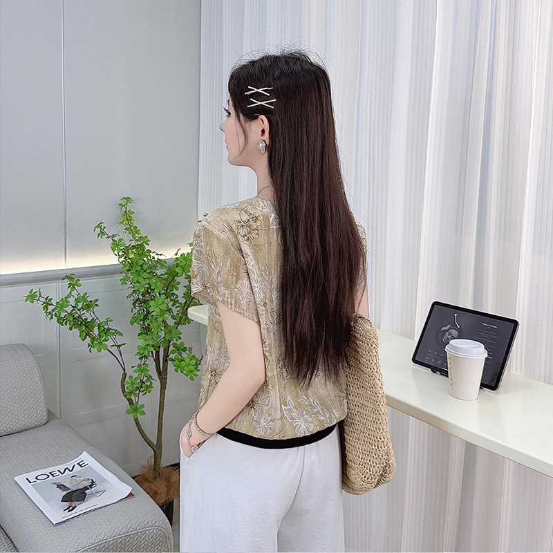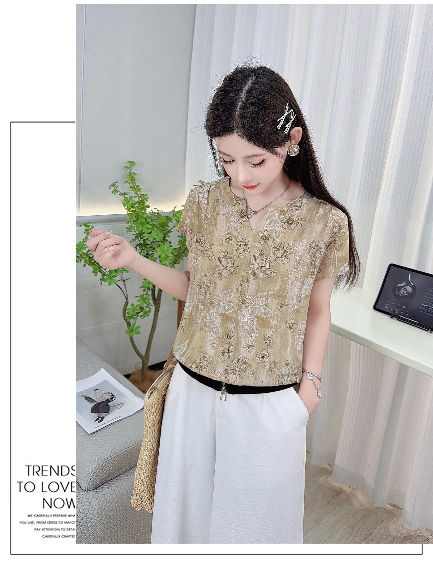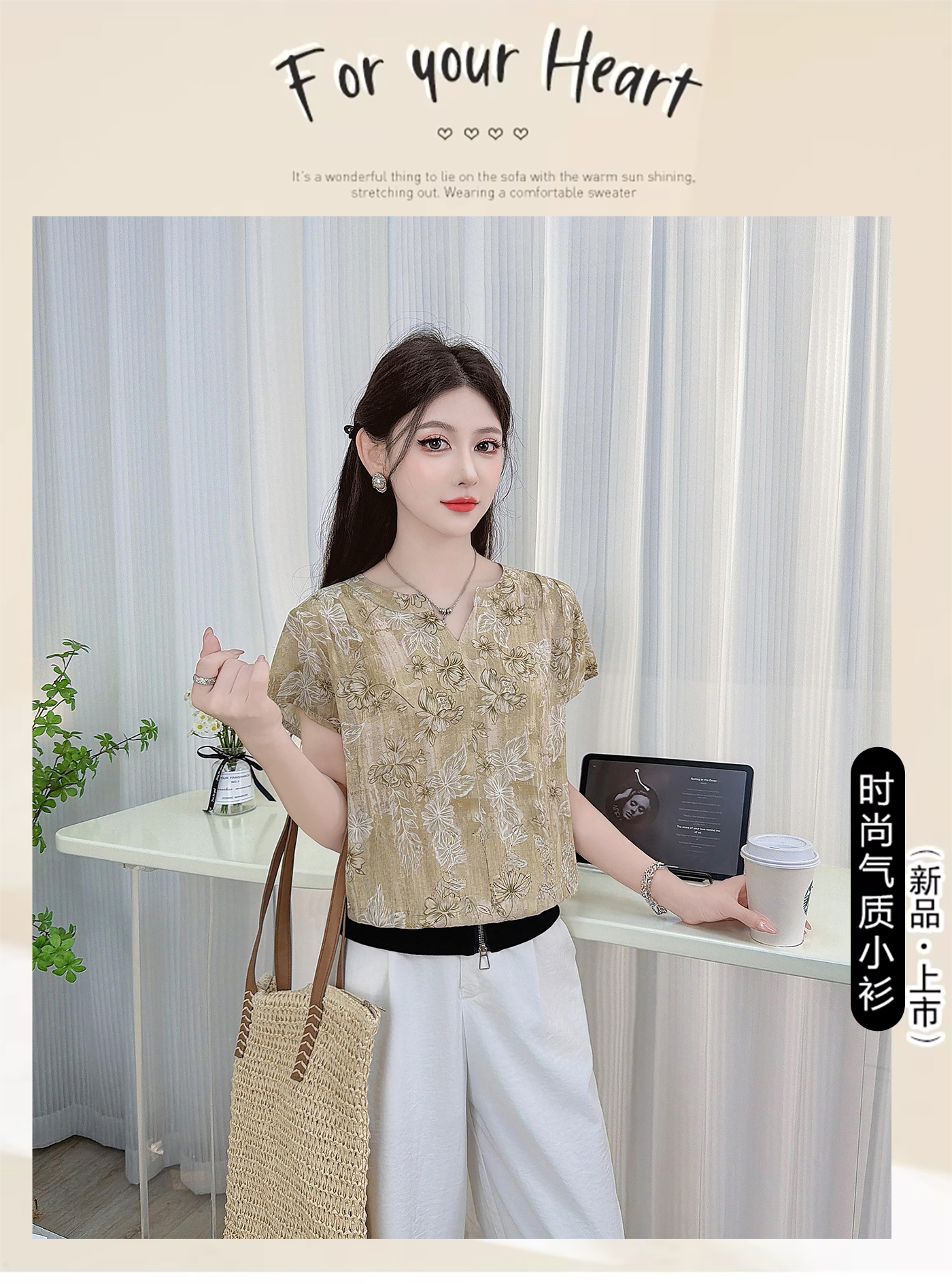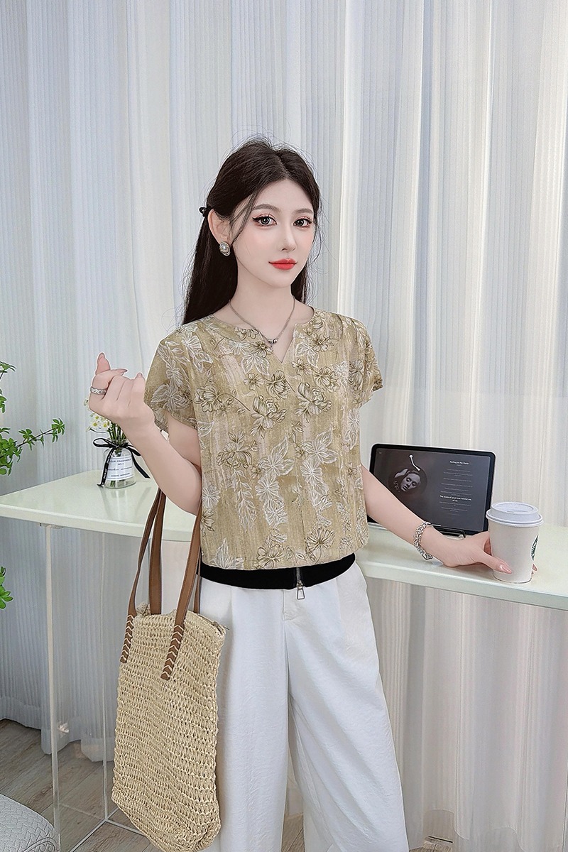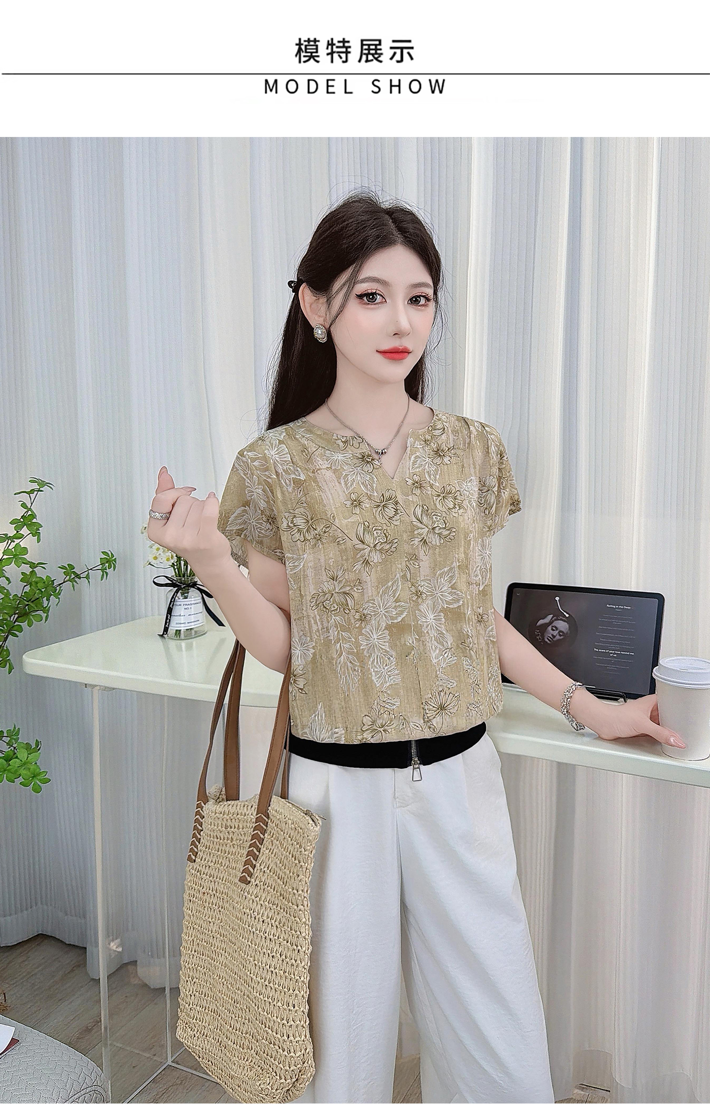 RY3438# 时尚V领下摆拉链雪纺衫2026夏季新款宽松显瘦百搭短袖女薄款上衣