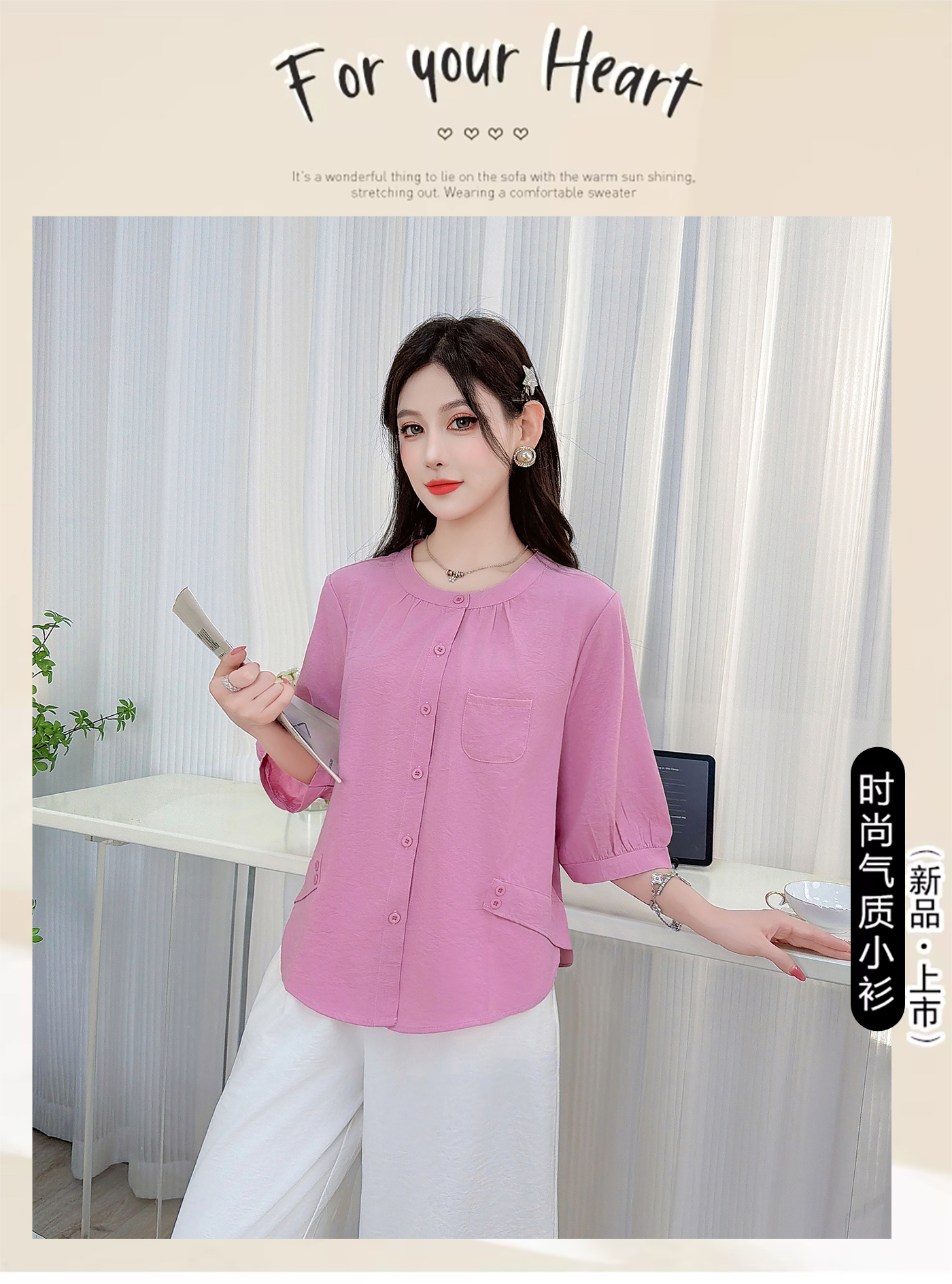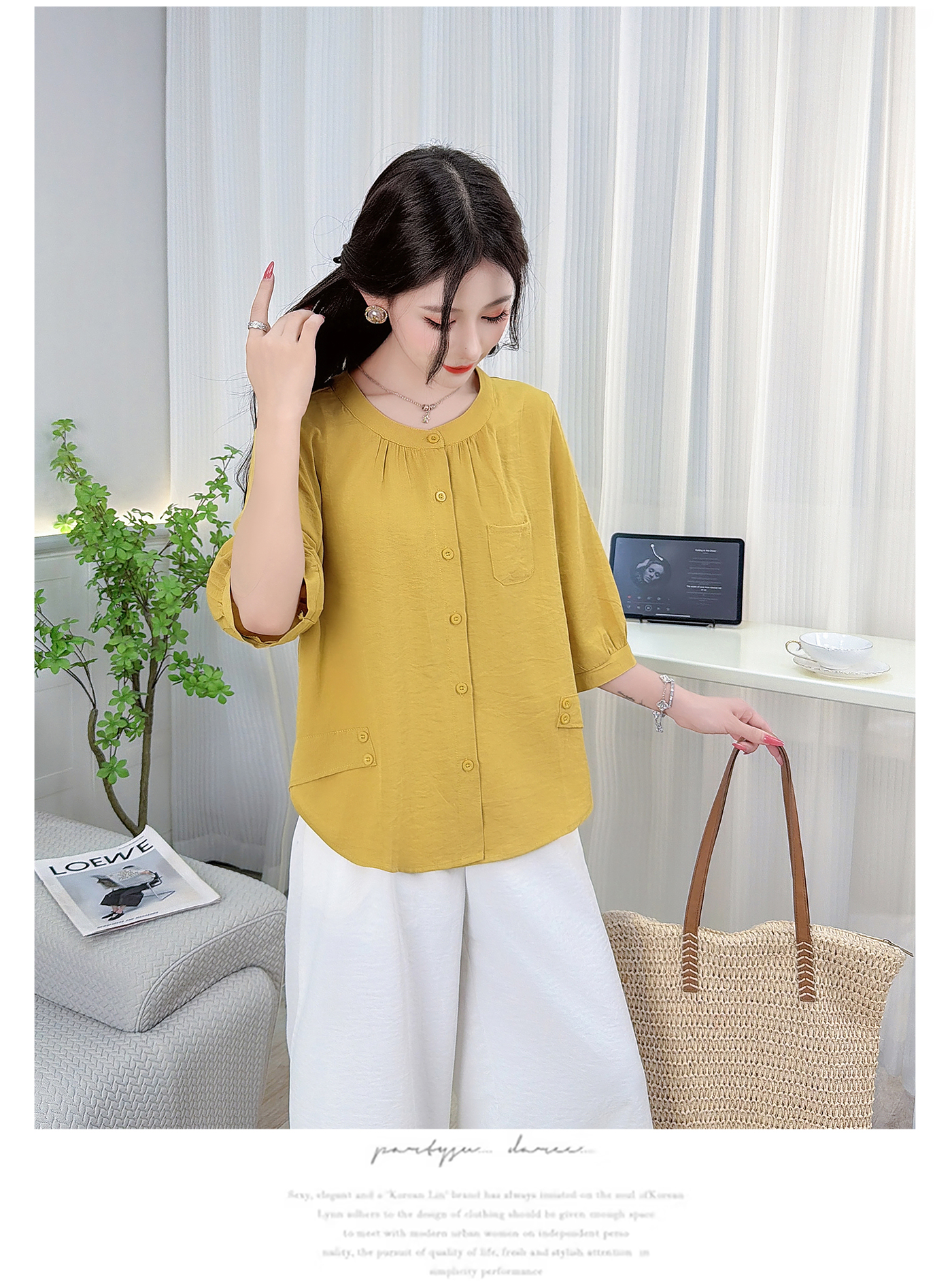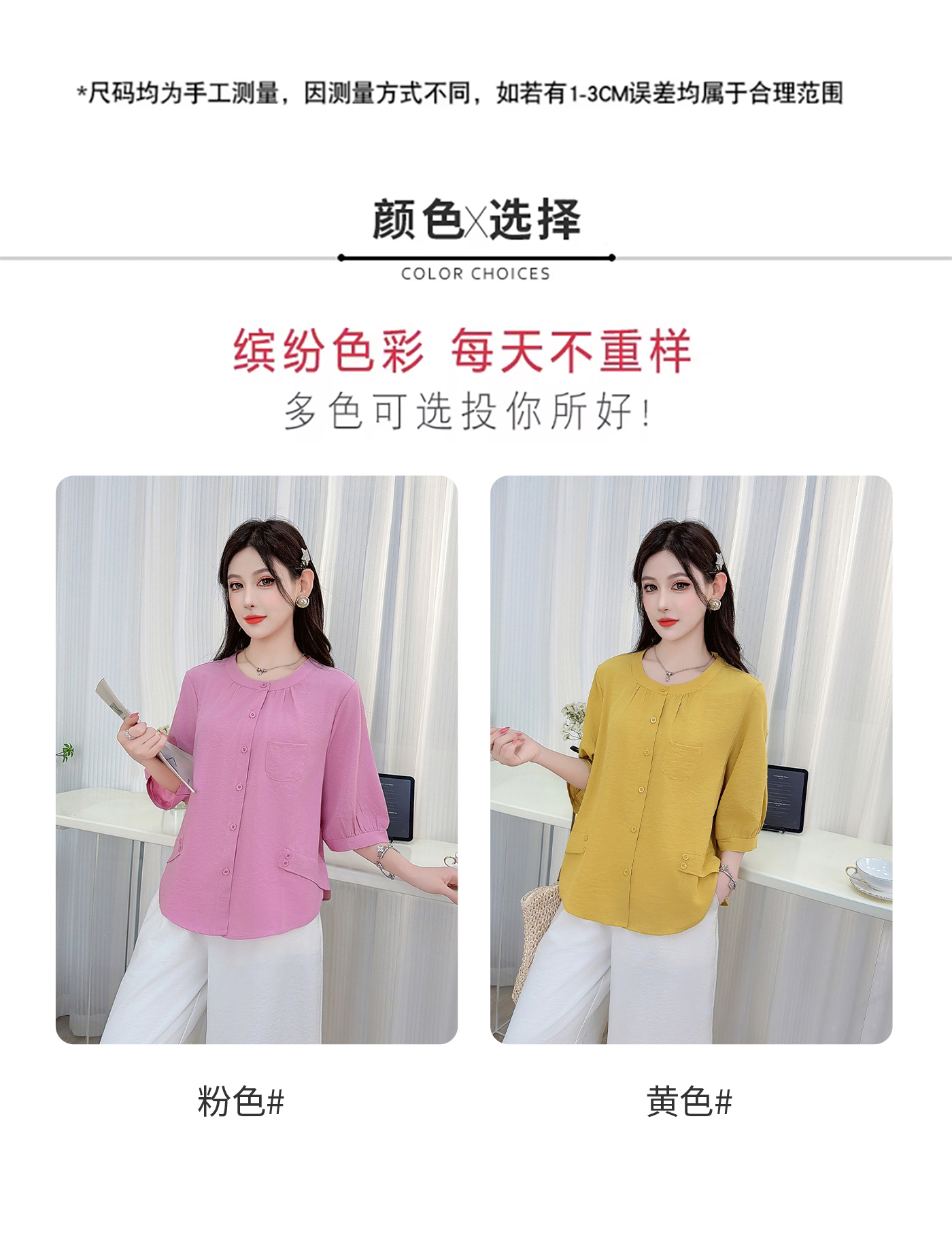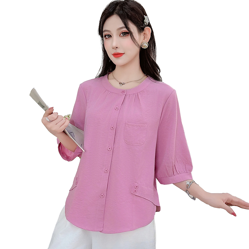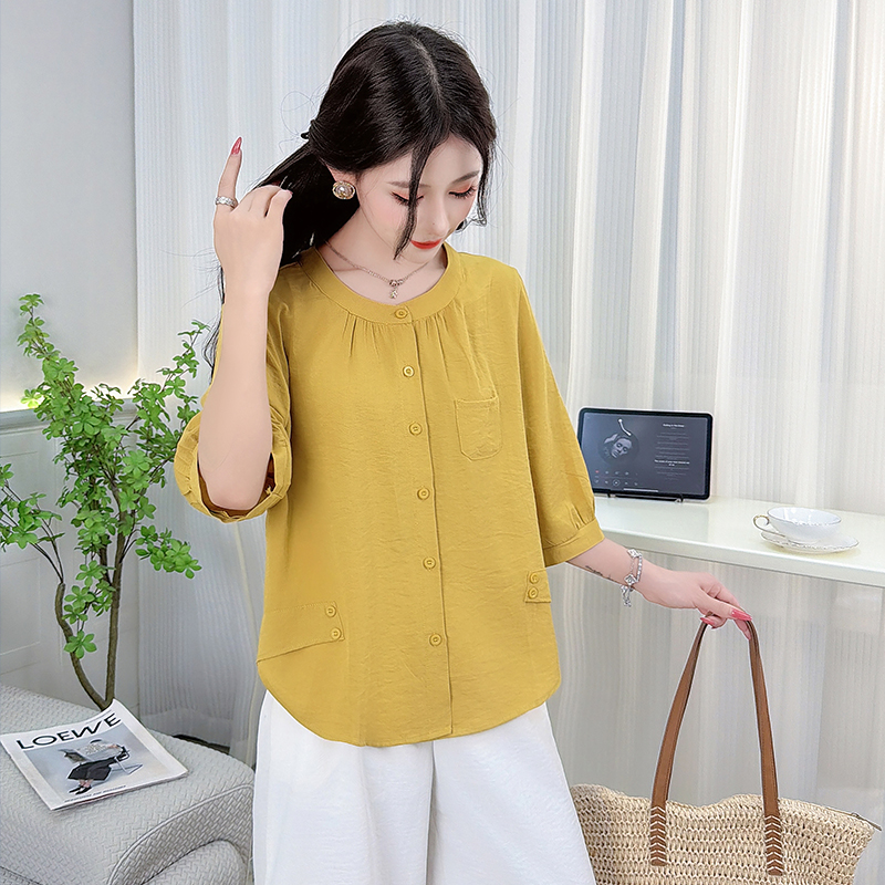 RY3448# 实拍时尚圆领大码棉麻衬衫2026夏季新款遮肉显瘦宽松百搭上衣小衫