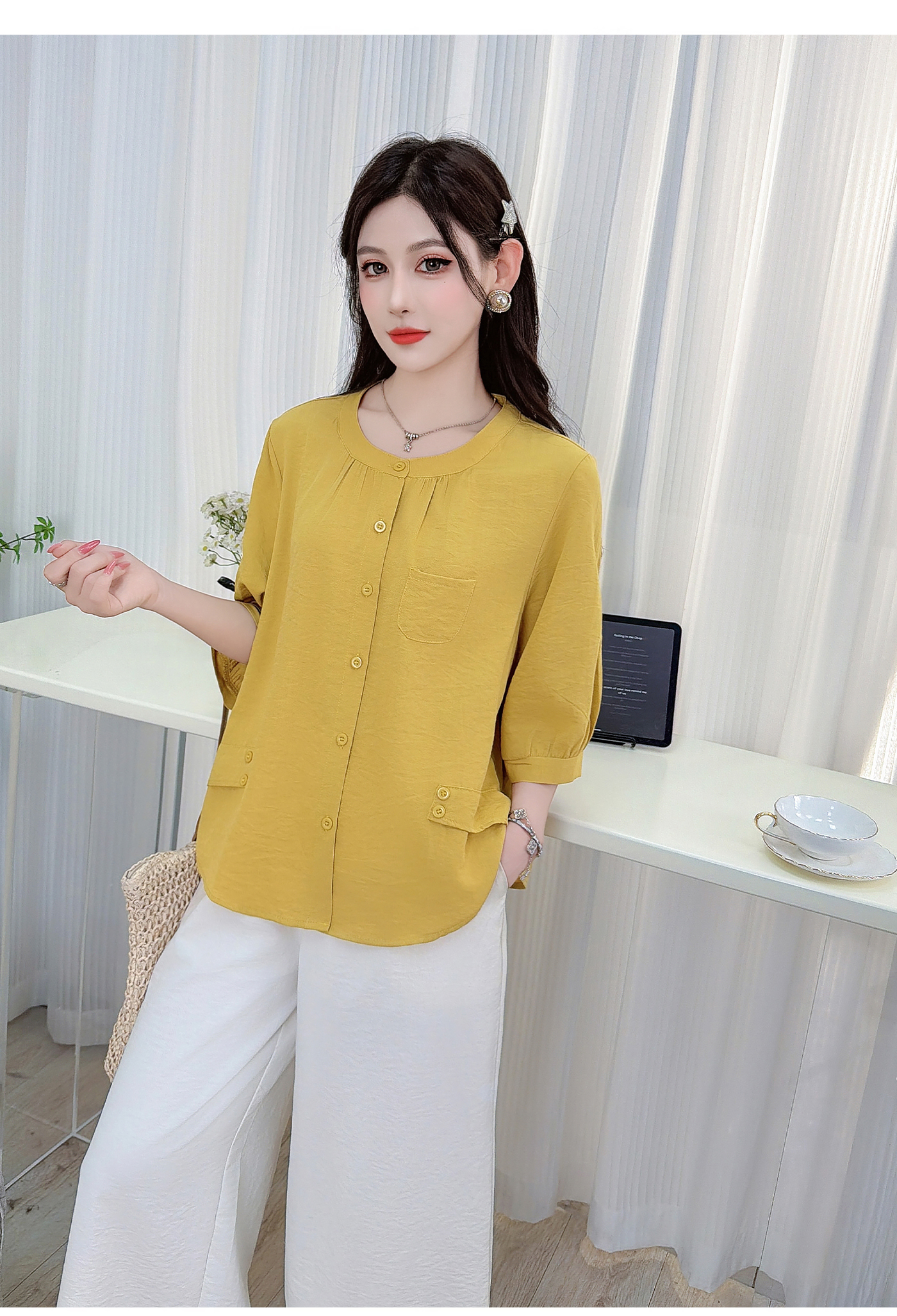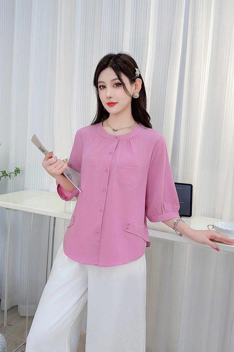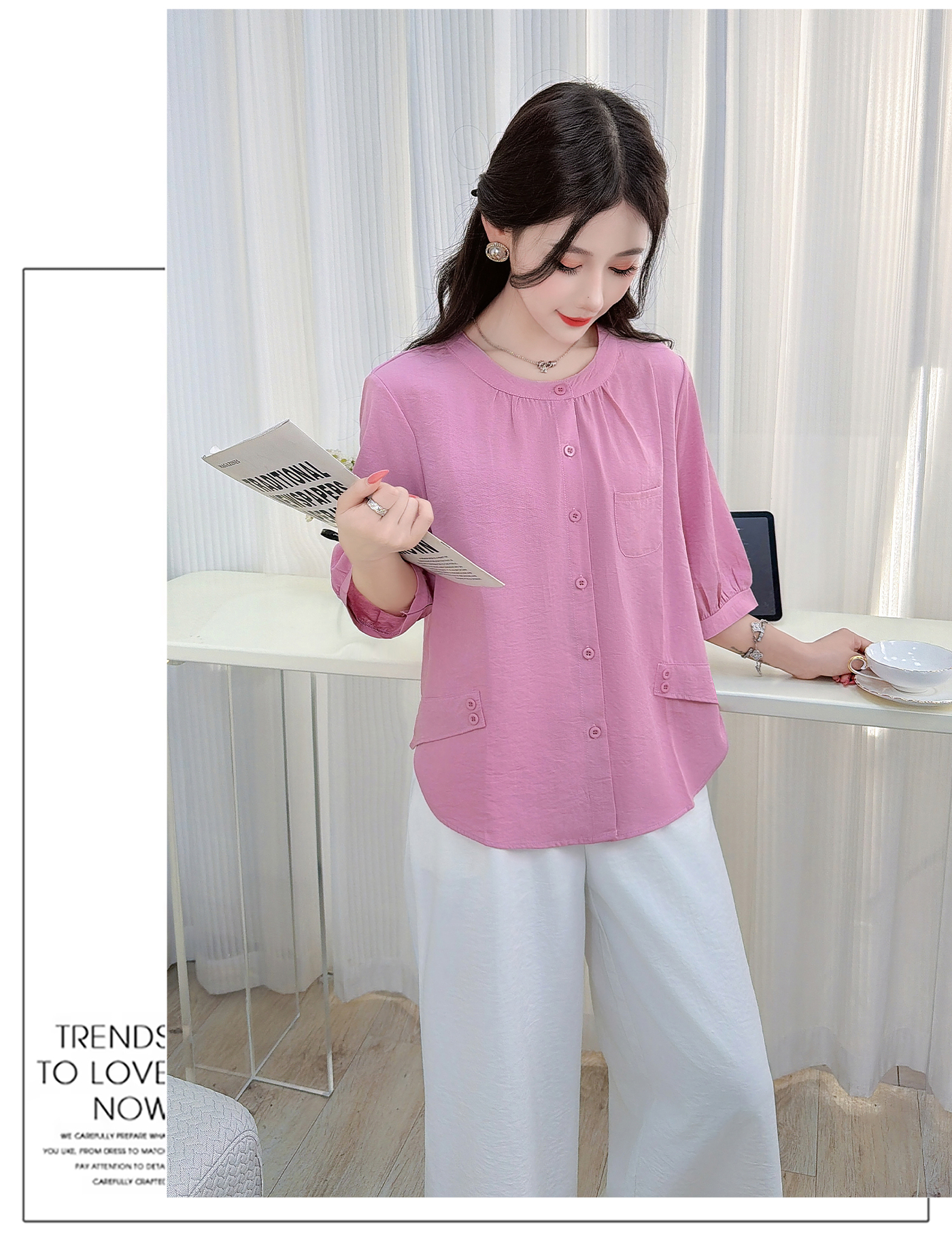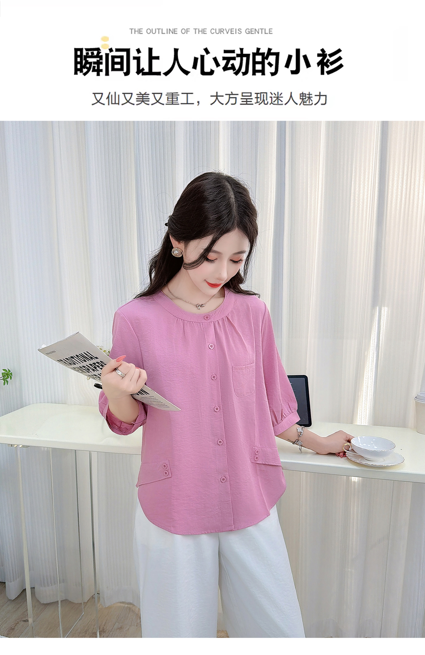 RY3448# 实拍时尚圆领大码棉麻衬衫2026夏季新款遮肉显瘦宽松百搭上衣小衫