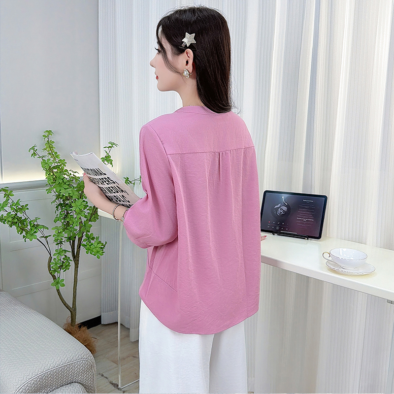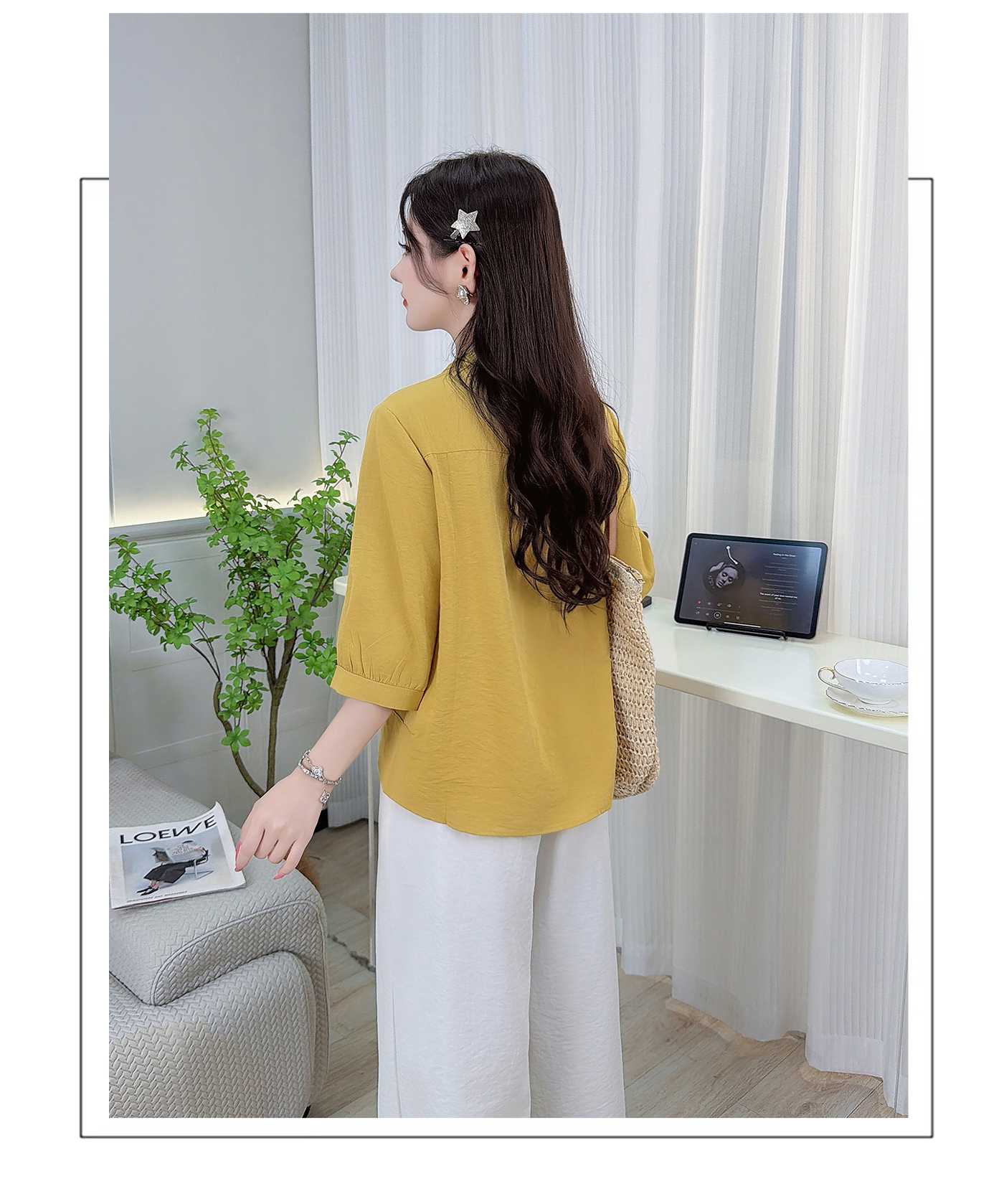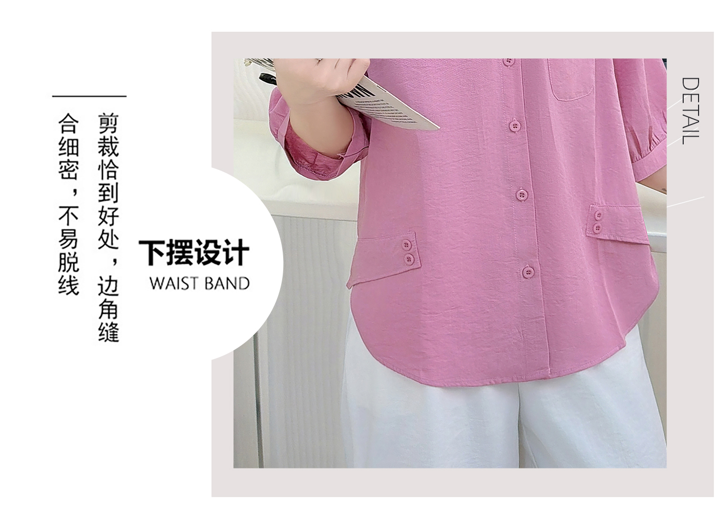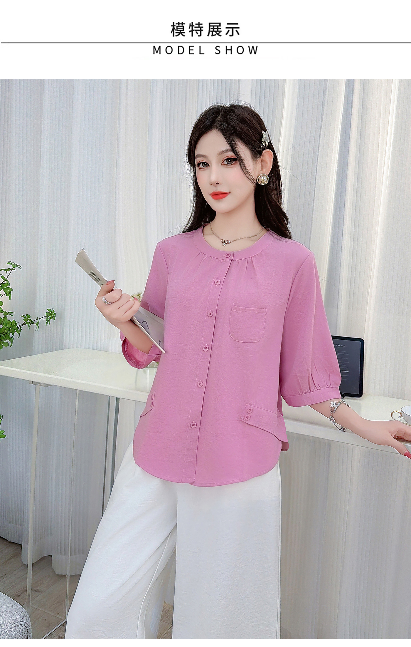 RY3448# 实拍时尚圆领大码棉麻衬衫2026夏季新款遮肉显瘦宽松百搭上衣小衫