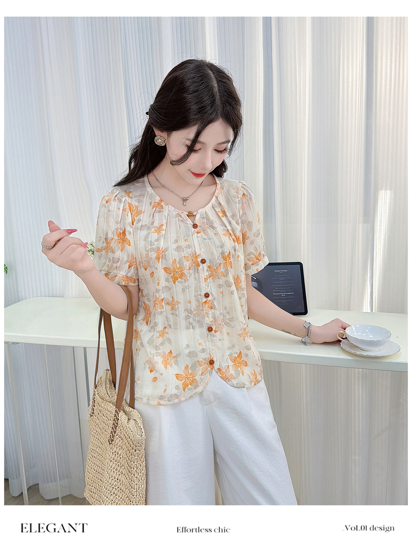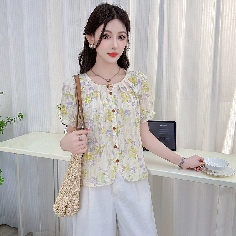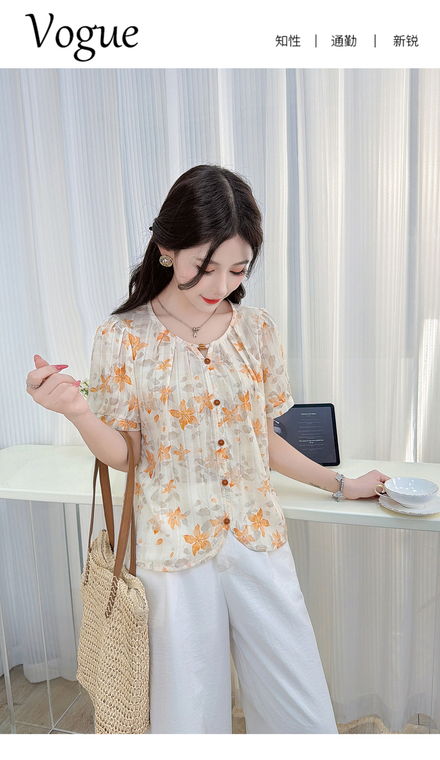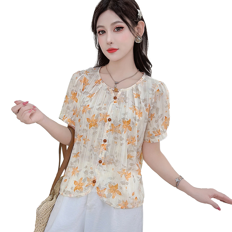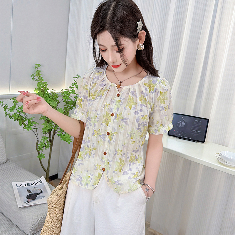 RY3456# 实拍法式碎花雪纺衬衫女装短袖2026夏季新款宽松短款上衣气质小衫