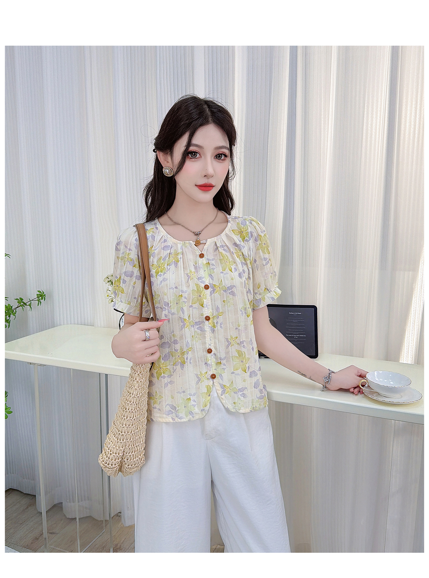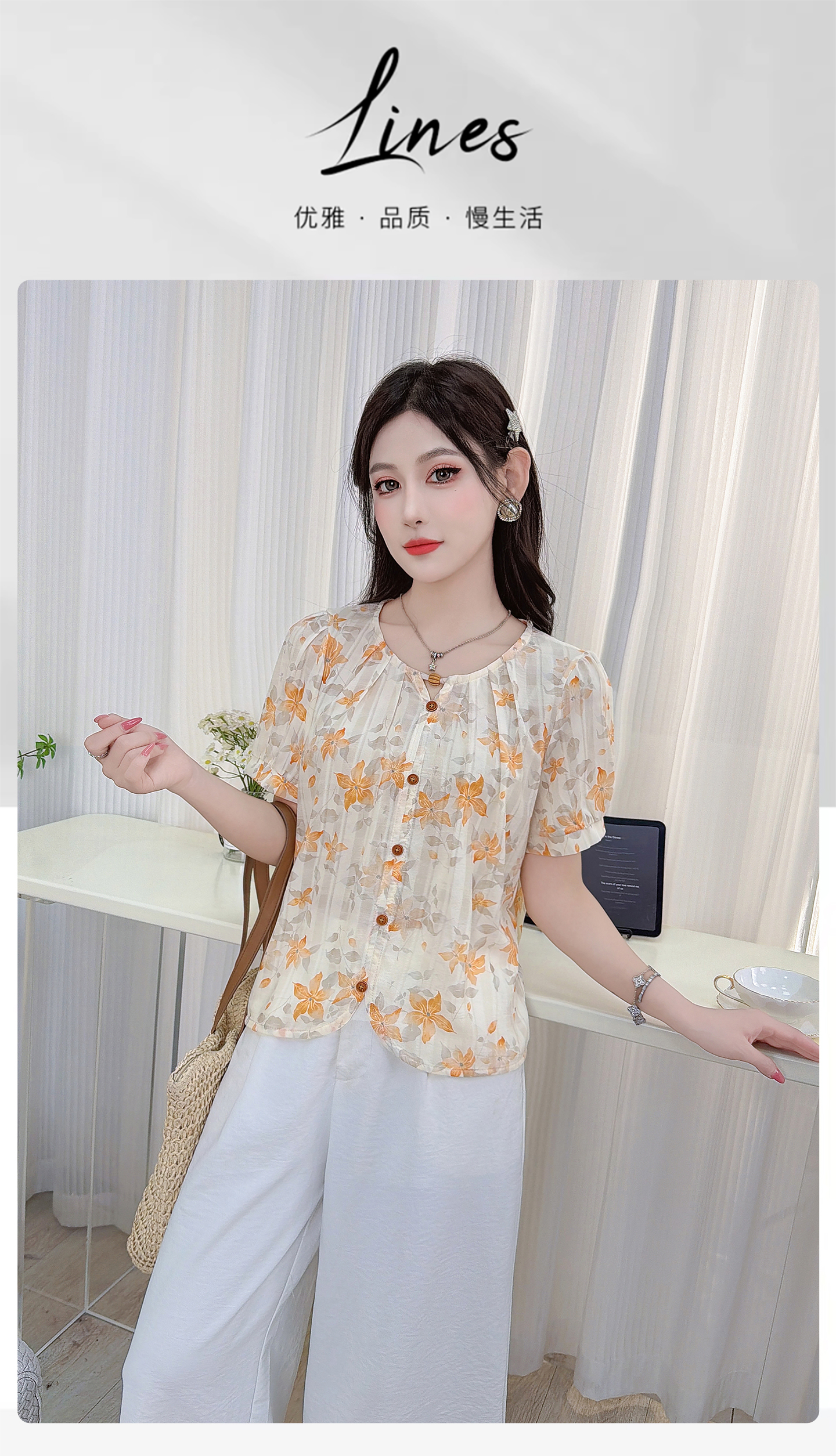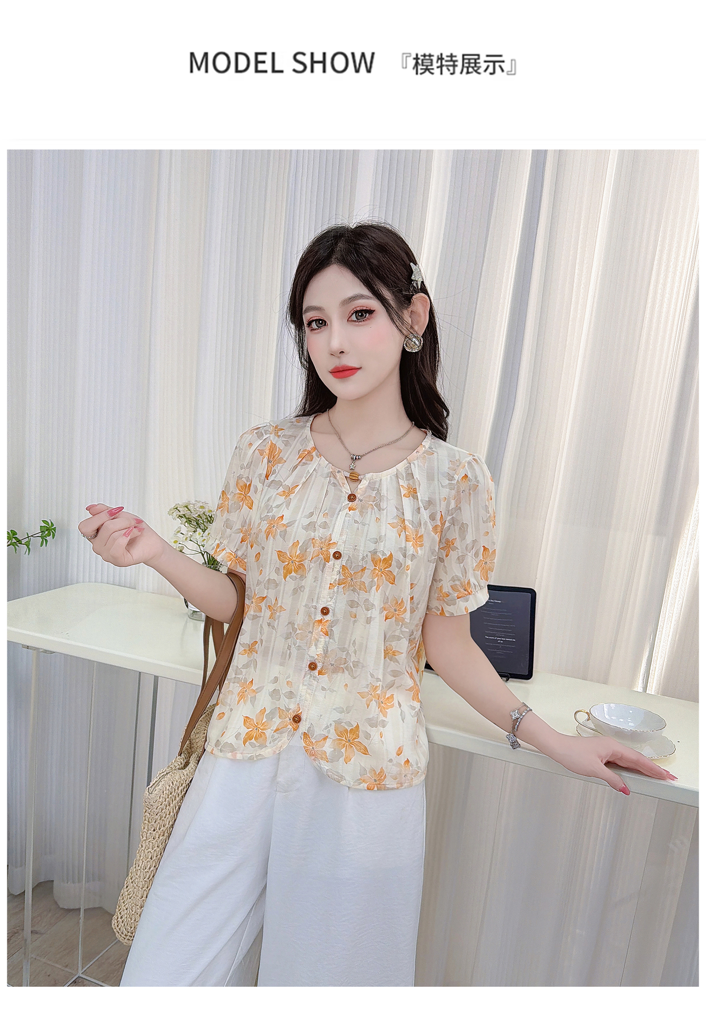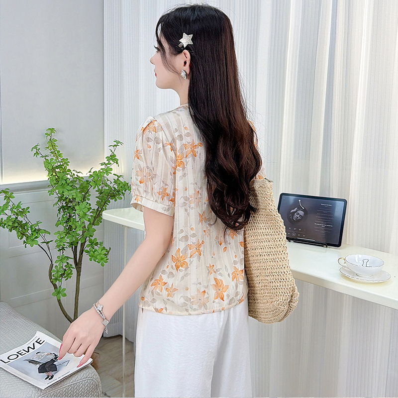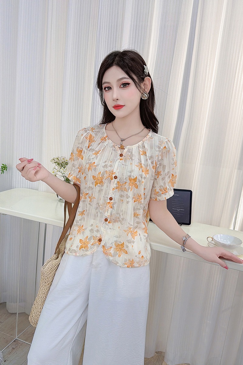 RY3456# 实拍法式碎花雪纺衬衫女装短袖2026夏季新款宽松短款上衣气质小衫