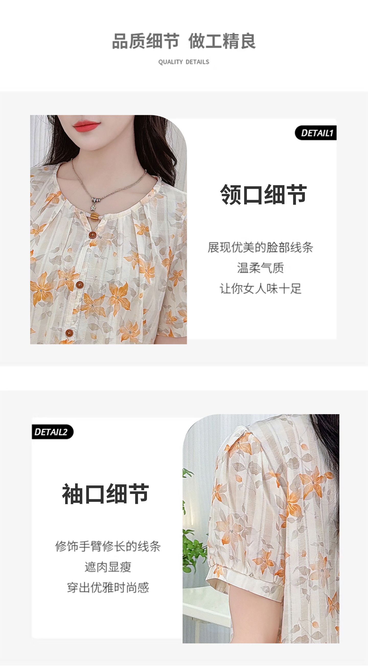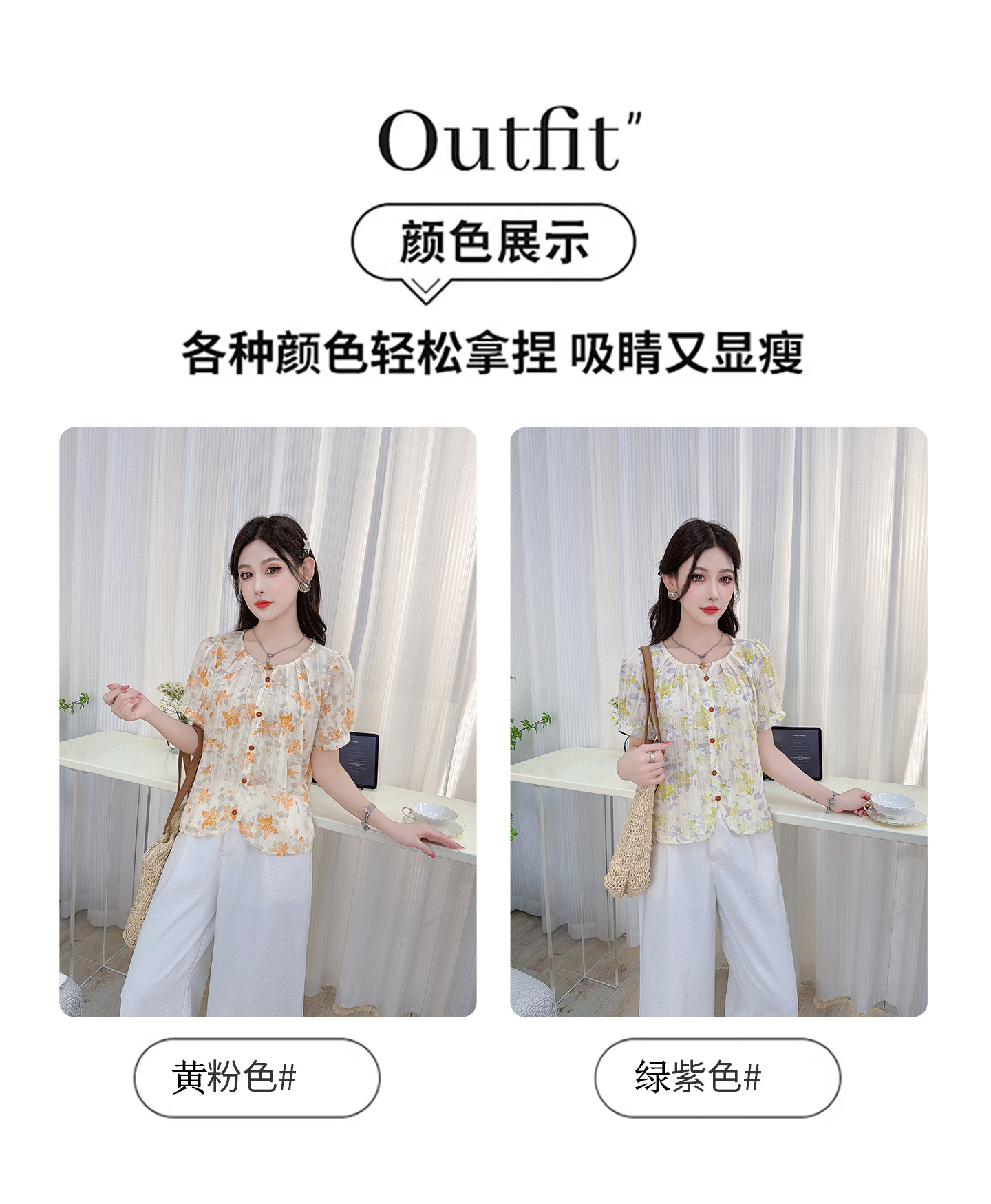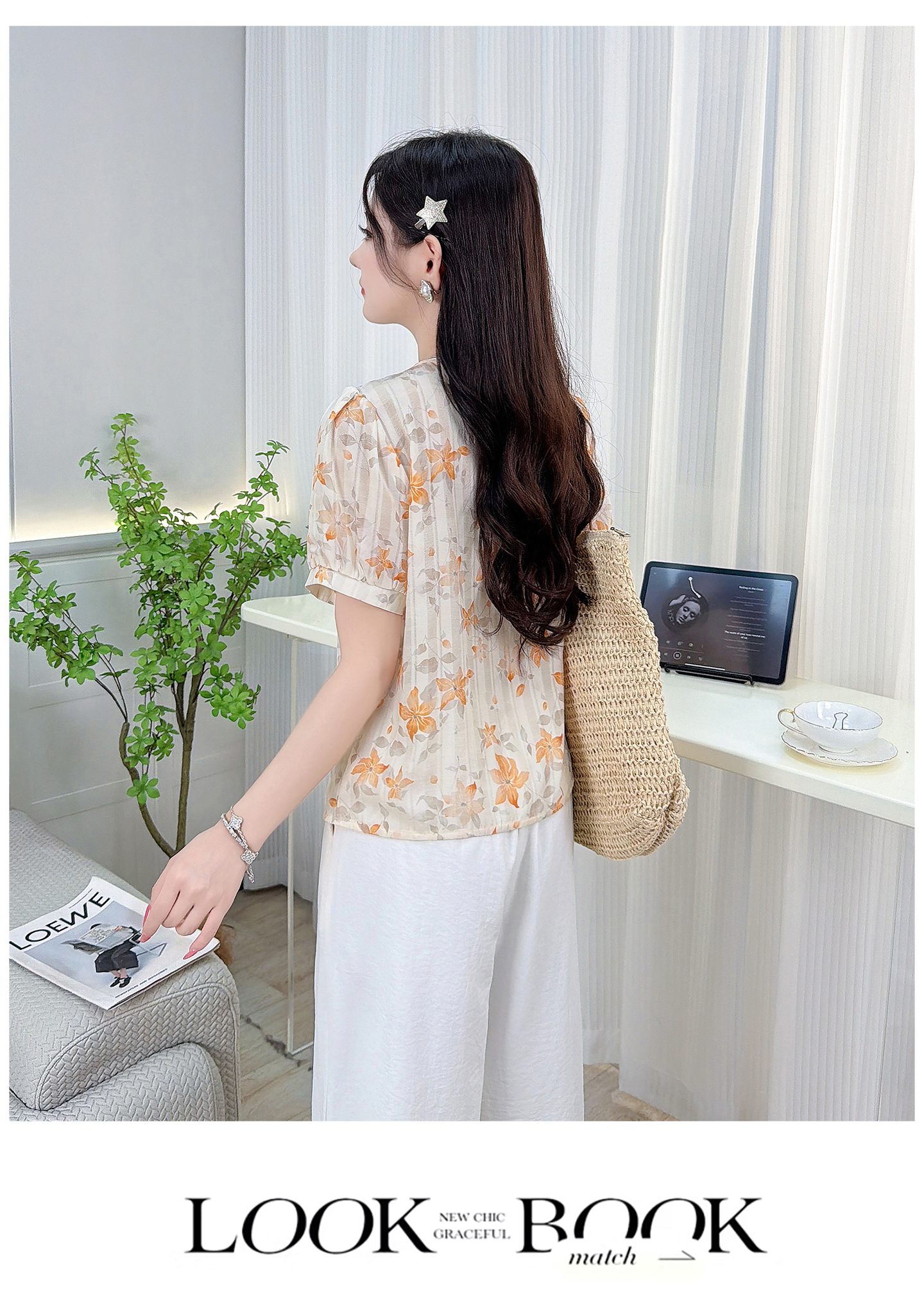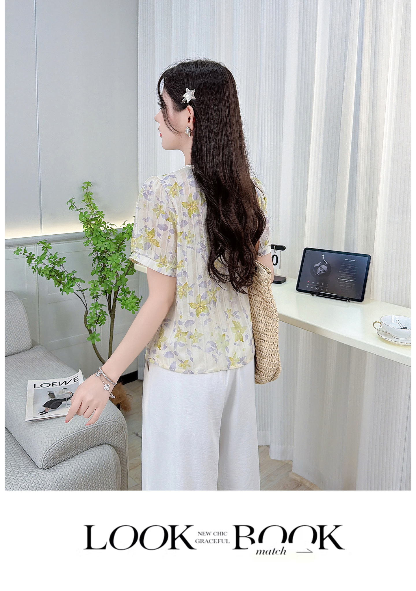RY3456# 实拍法式碎花雪纺衬衫女装短袖2026夏季新款宽松短款上衣气质小衫