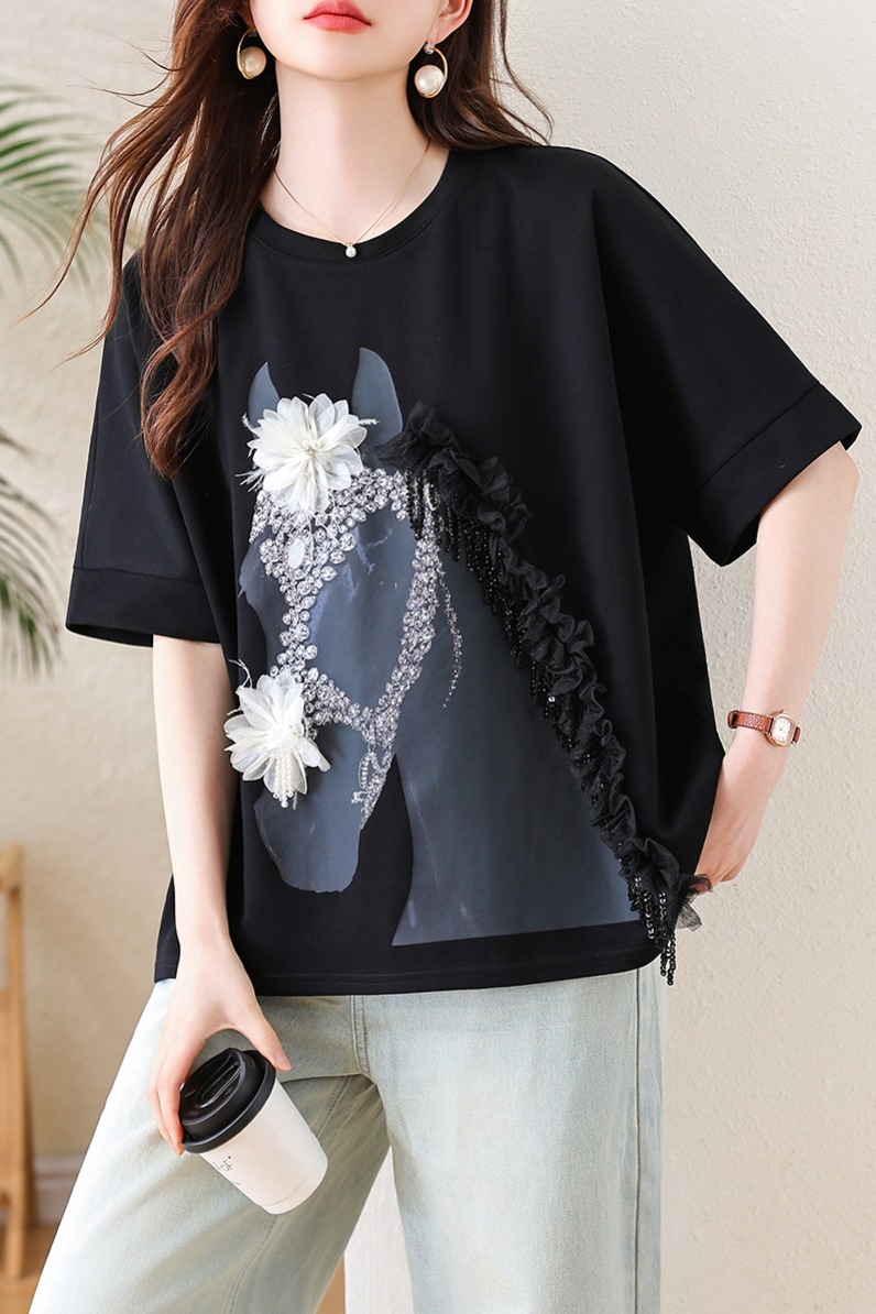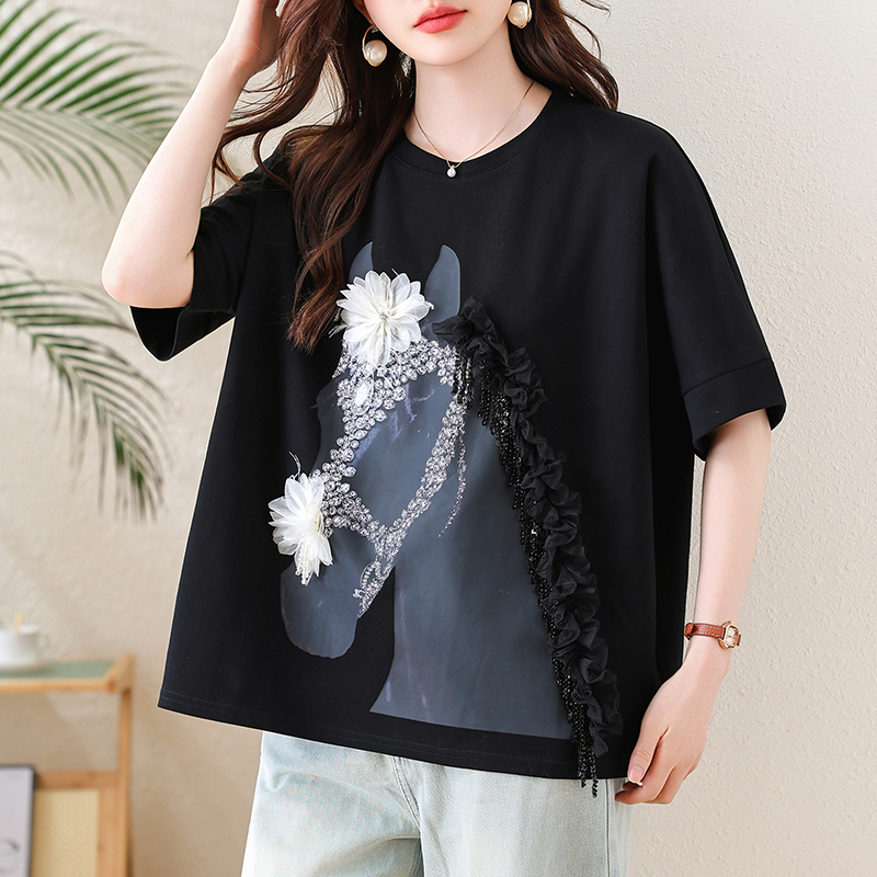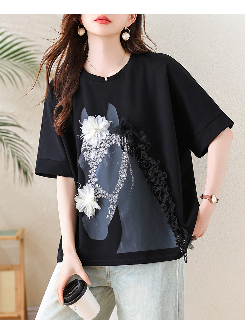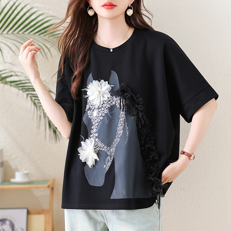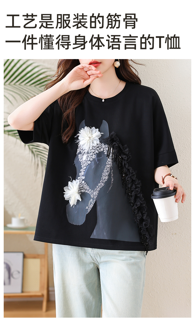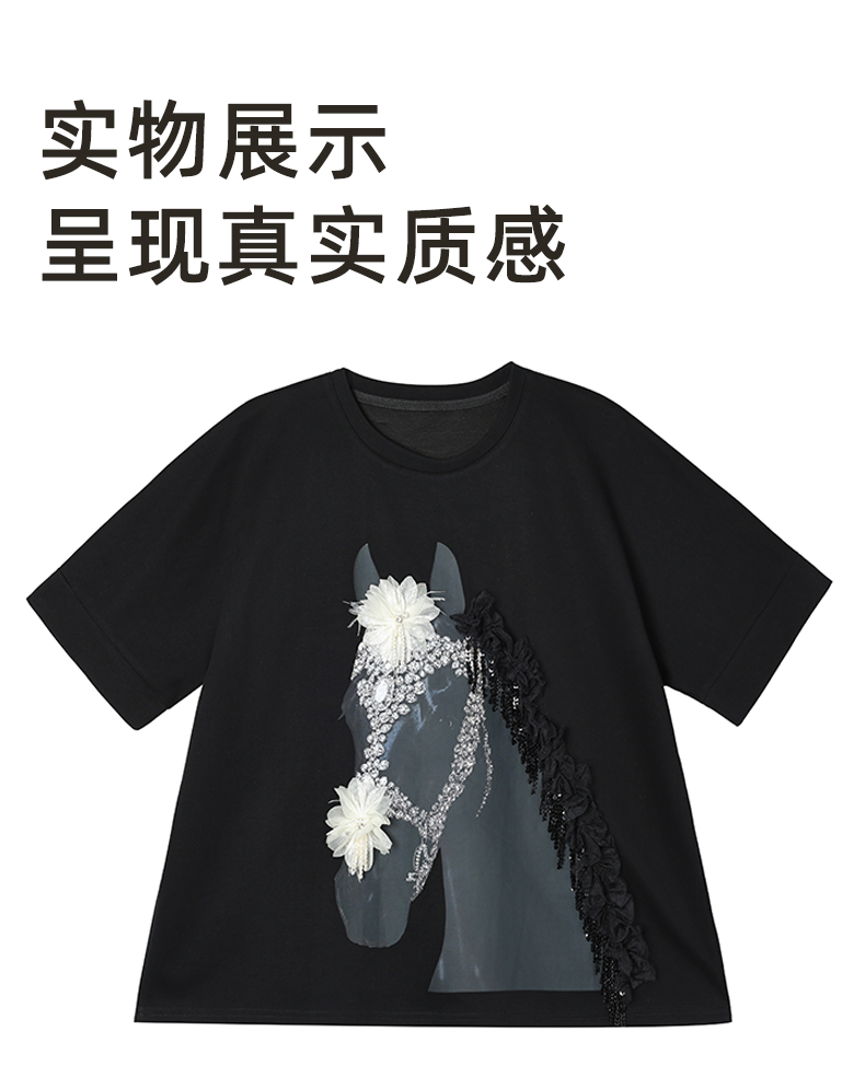 RY3461# 实拍 蝙蝠袖流苏印花T恤2026夏季慵懒休闲百搭宽松时尚大码女装