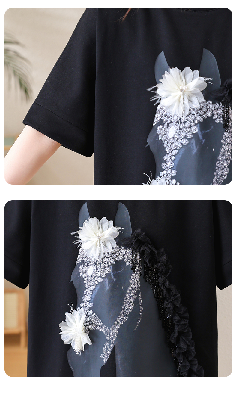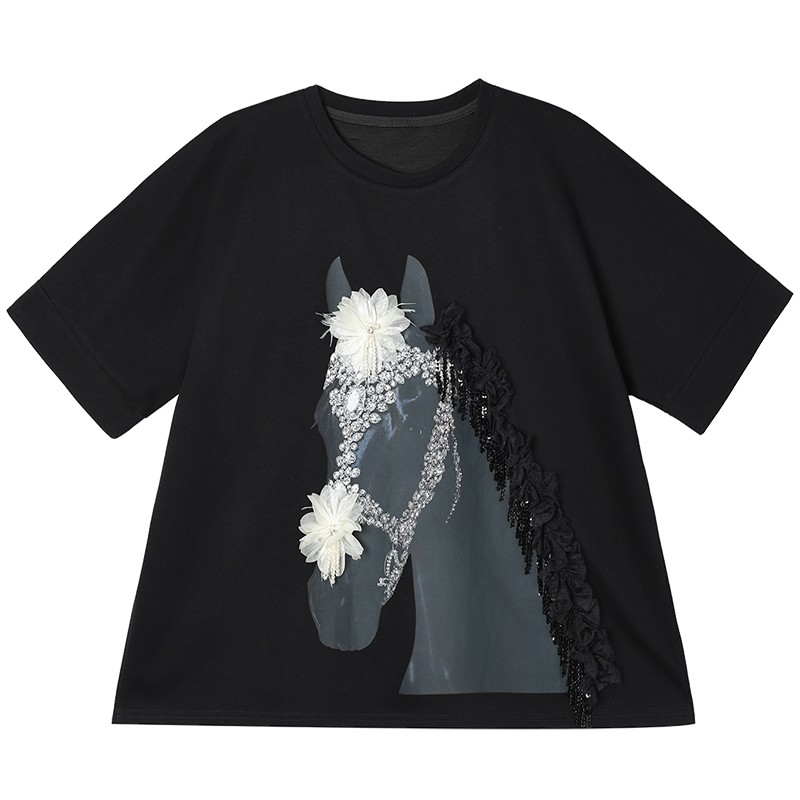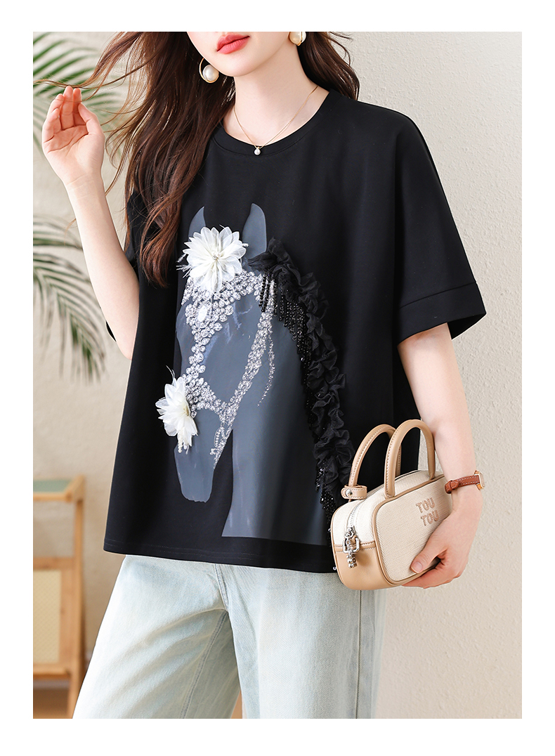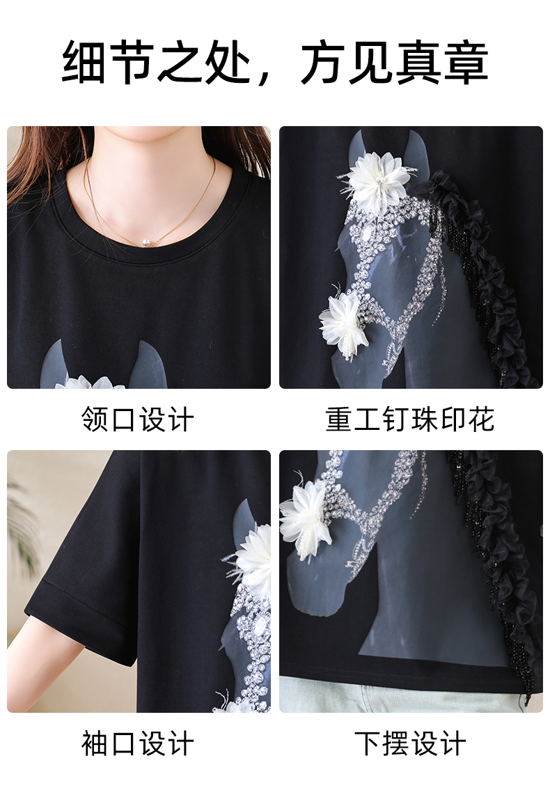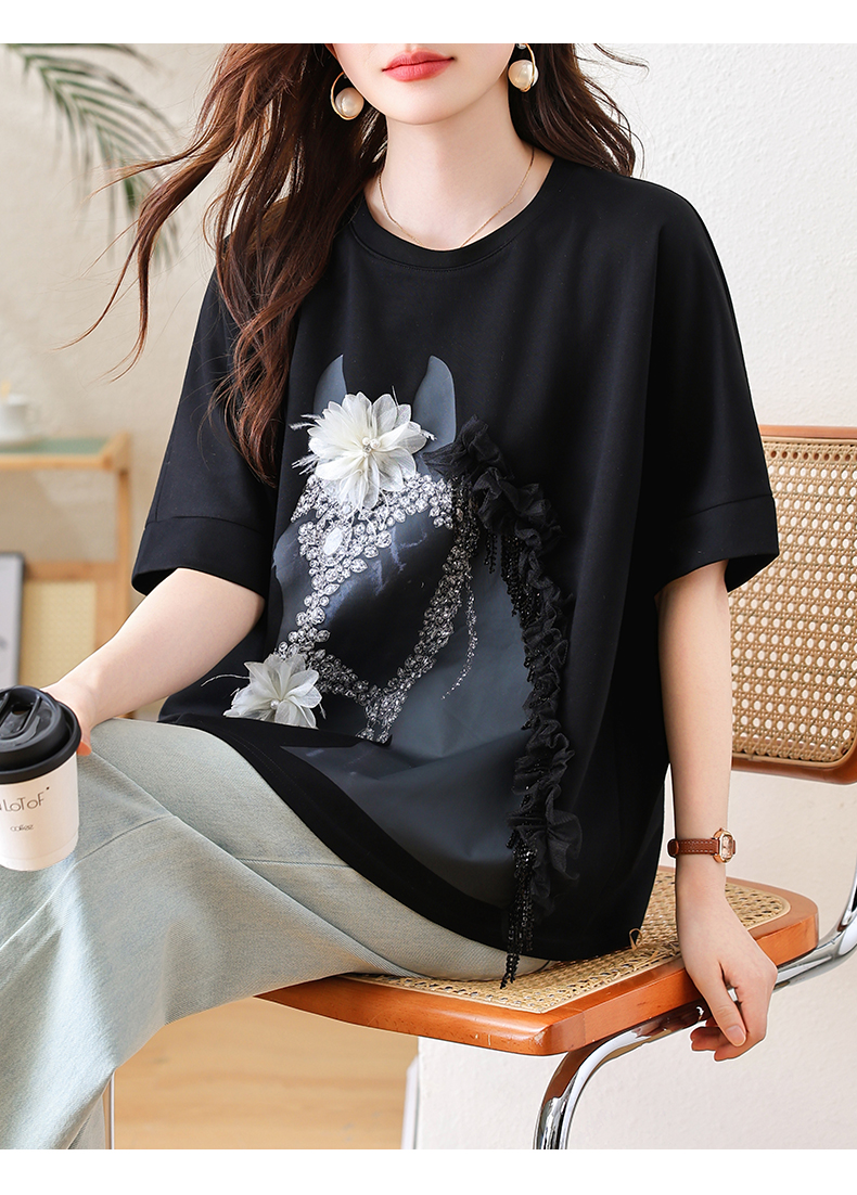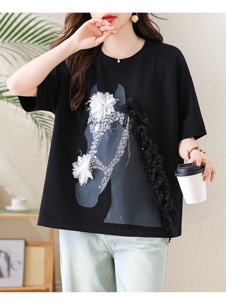 RY3461# 实拍 蝙蝠袖流苏印花T恤2026夏季慵懒休闲百搭宽松时尚大码女装
