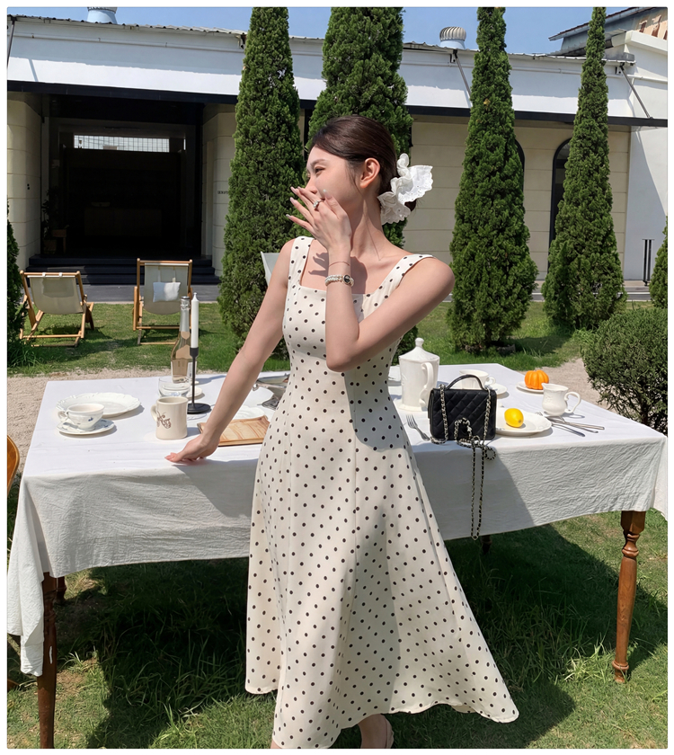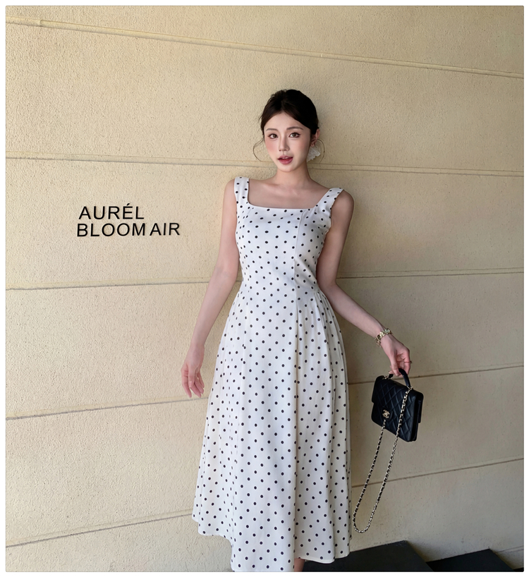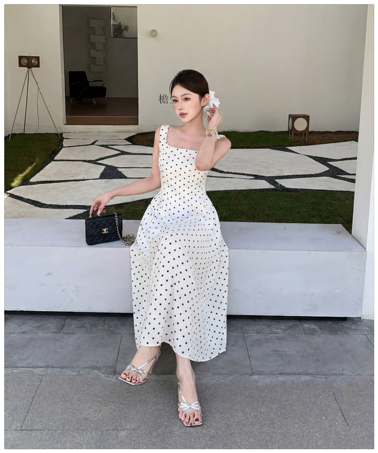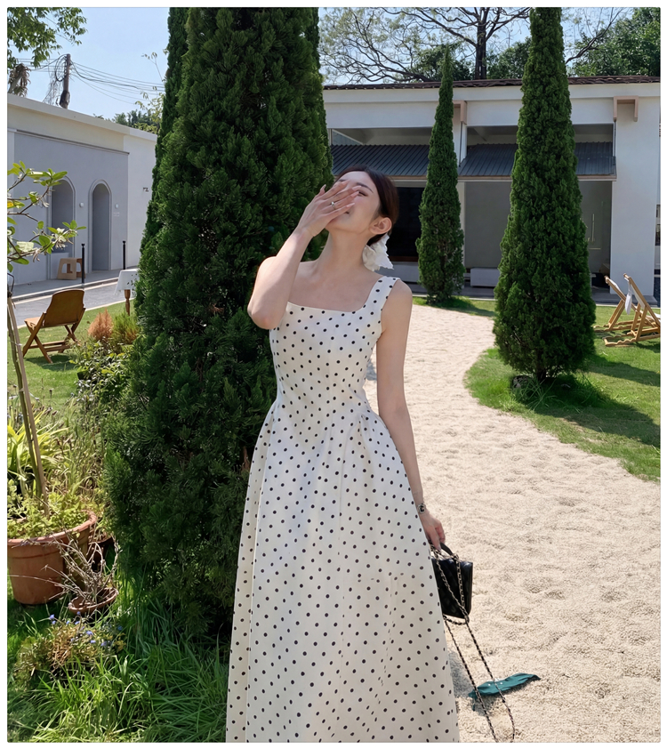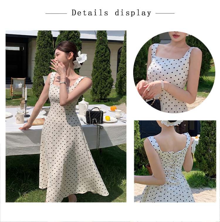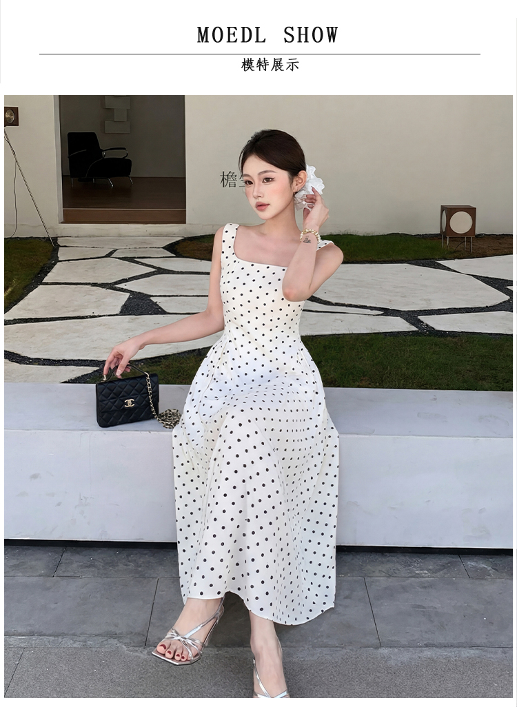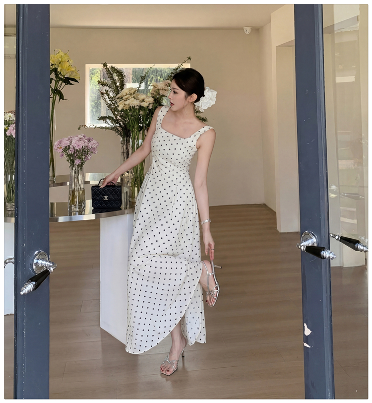 RY3469# 实拍复古赫本连衣裙波点白色气质收腰显瘦长裙子高级掐腰礼服