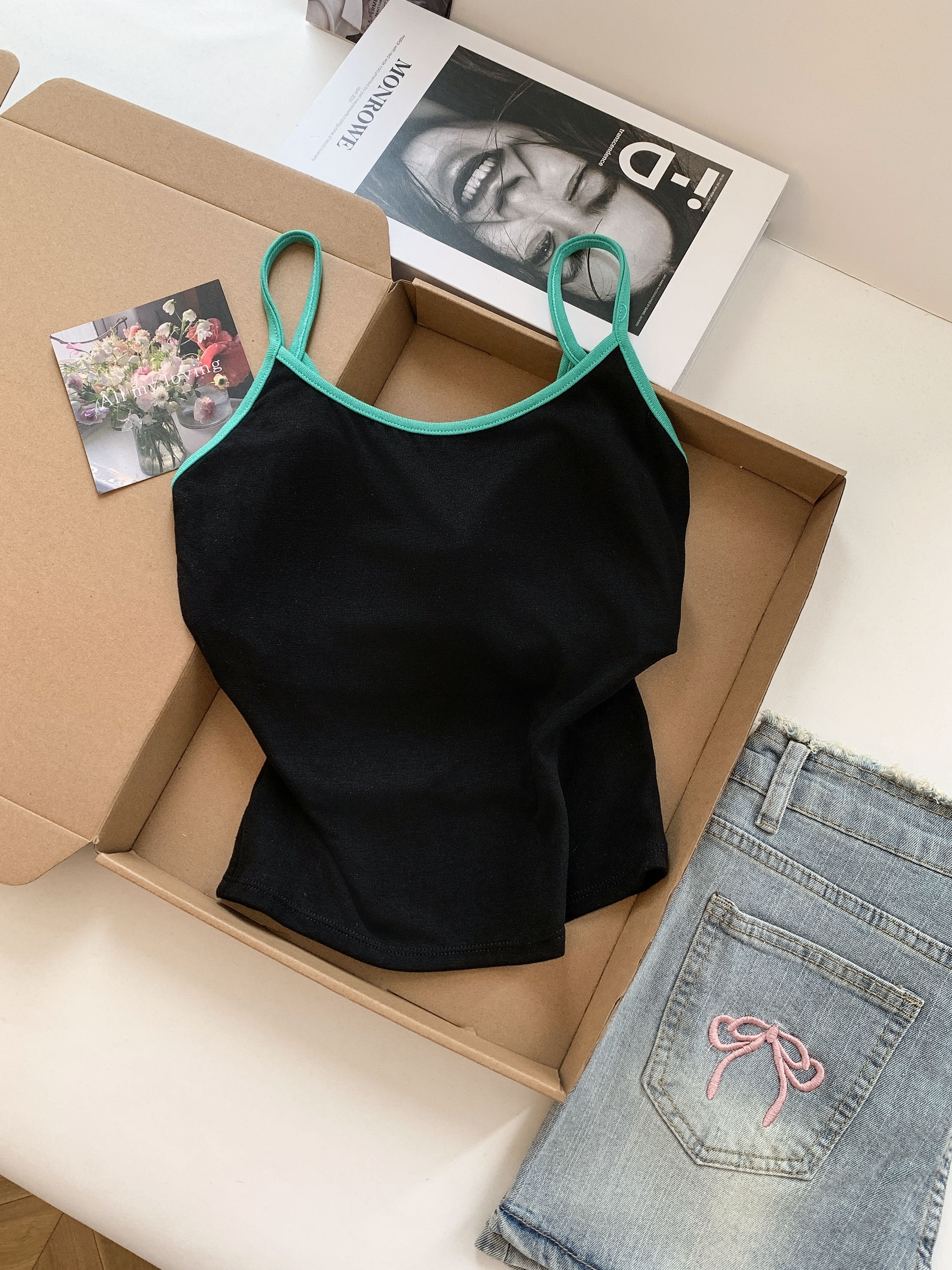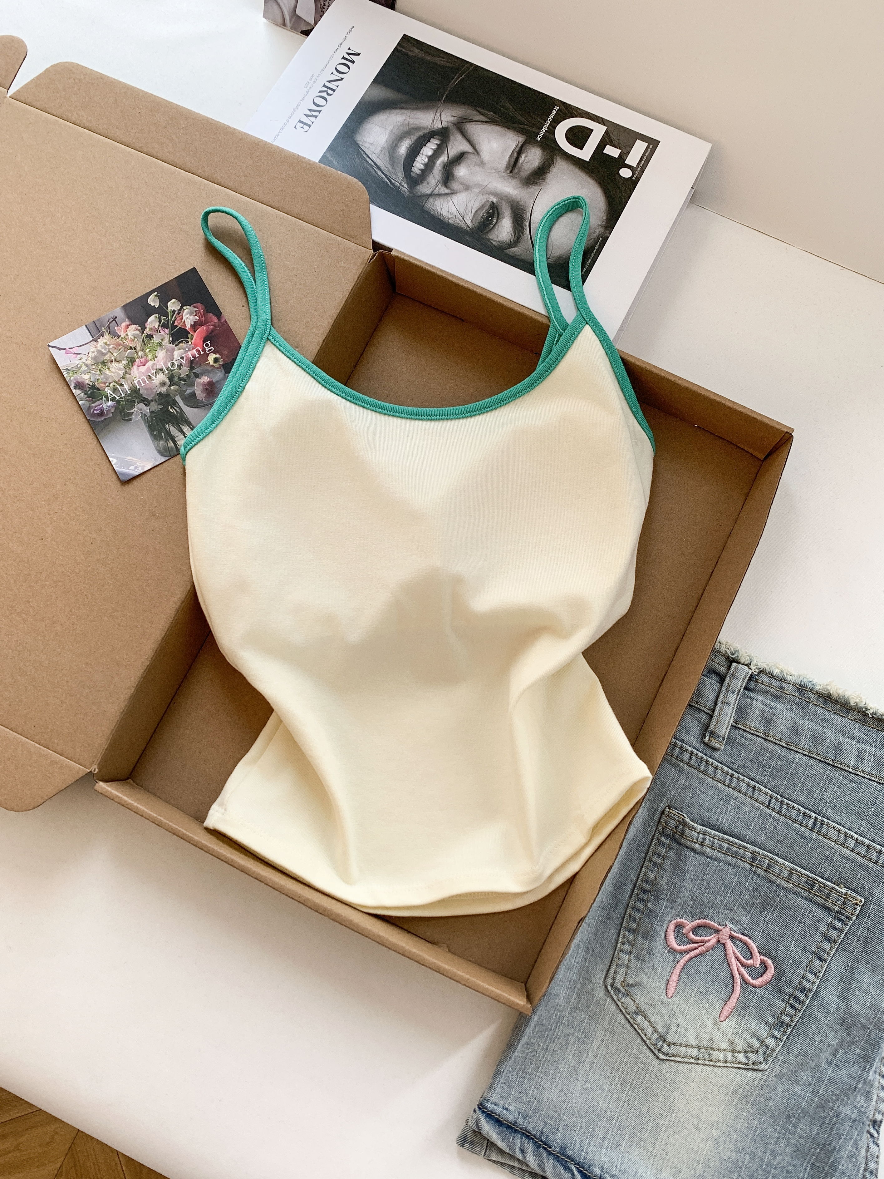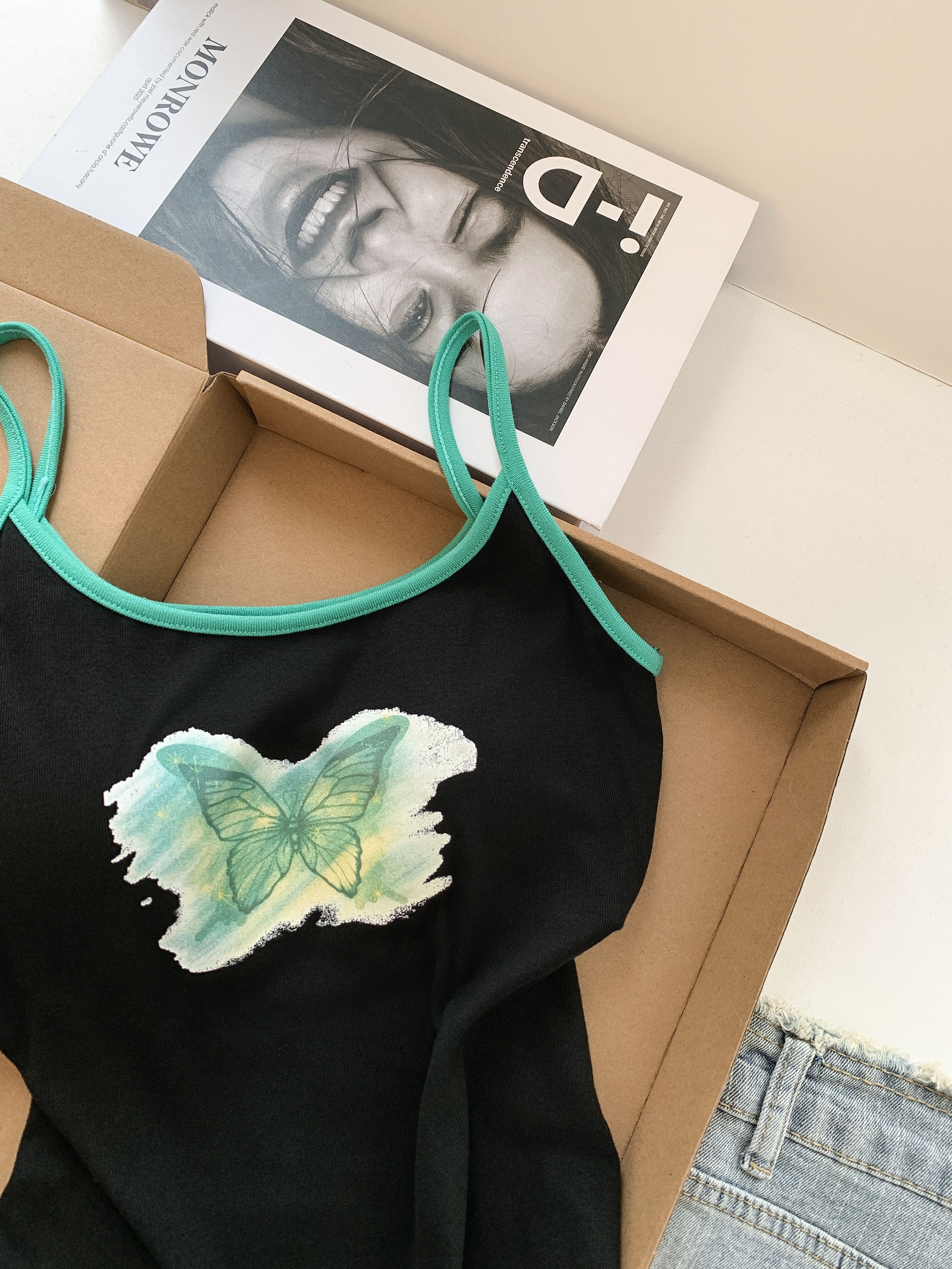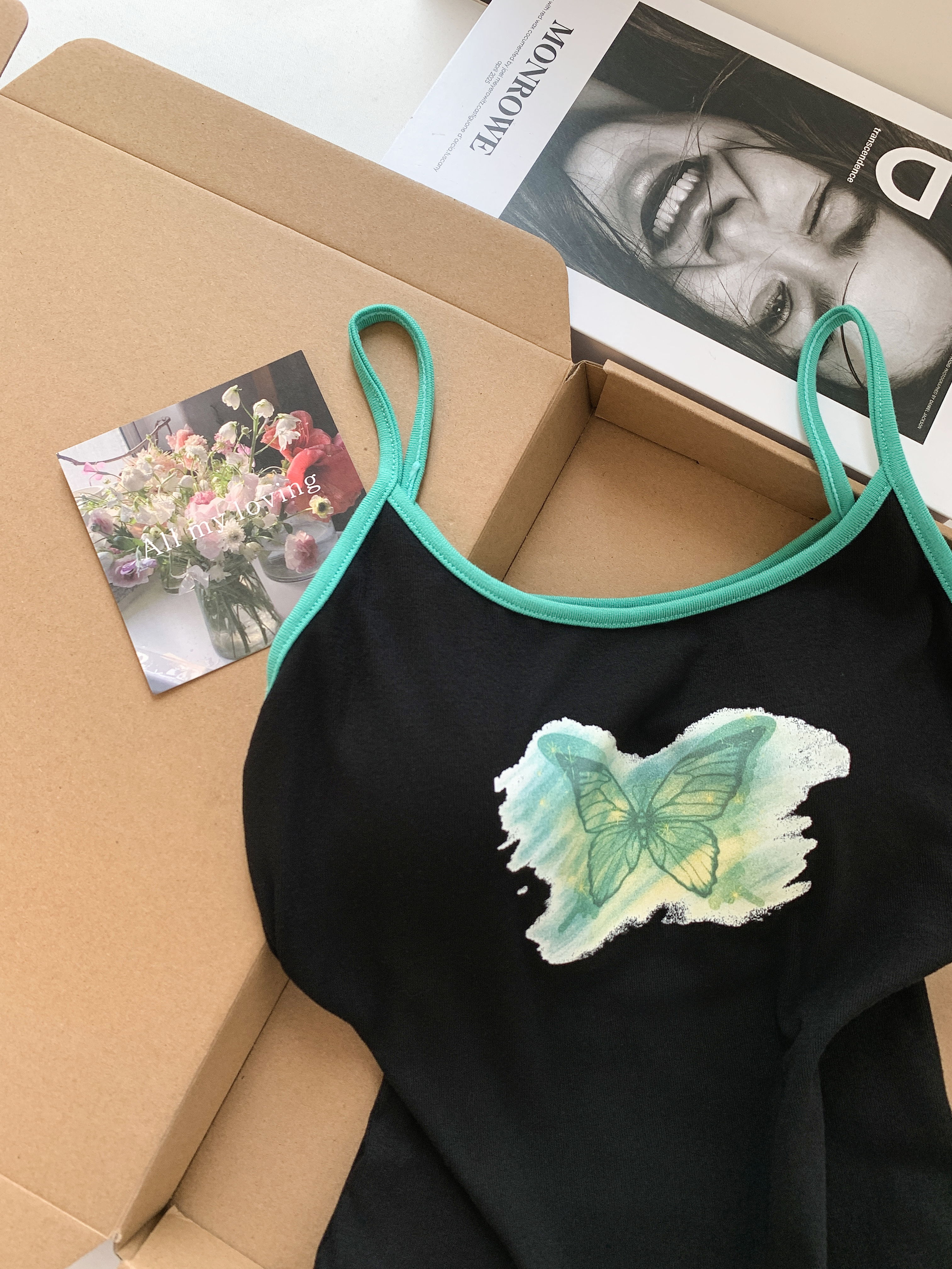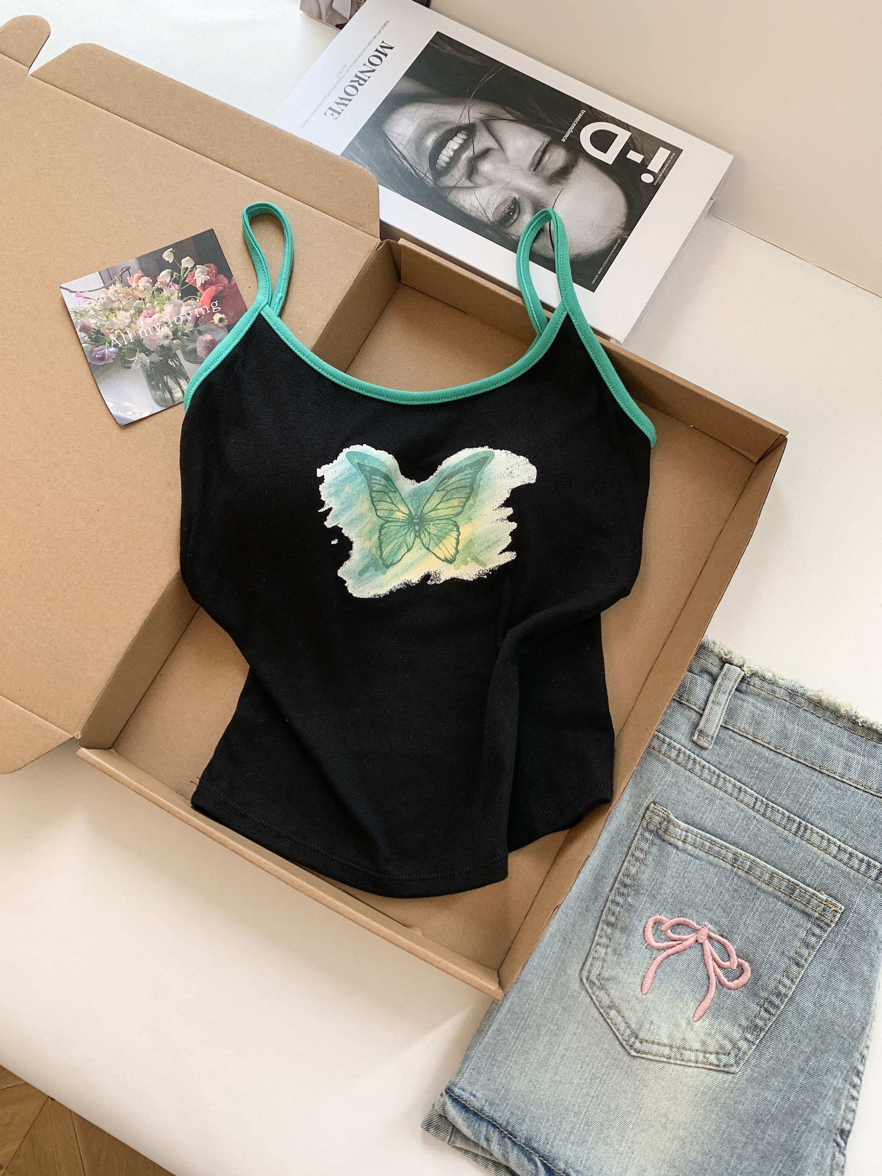RY3473# 实拍~设计感甜辣妹蝴蝶印花背心女内搭夏季外穿带胸垫短款上衣