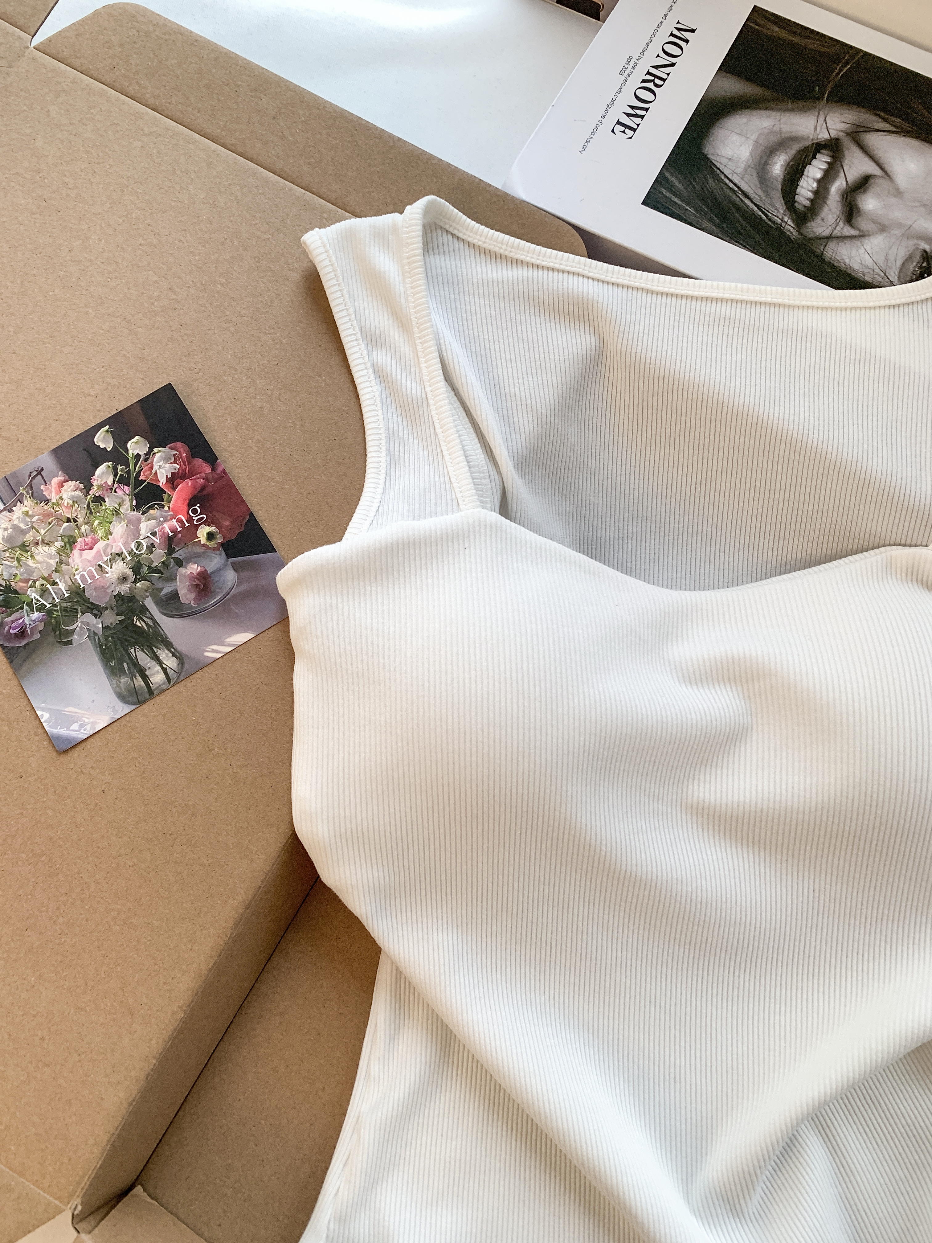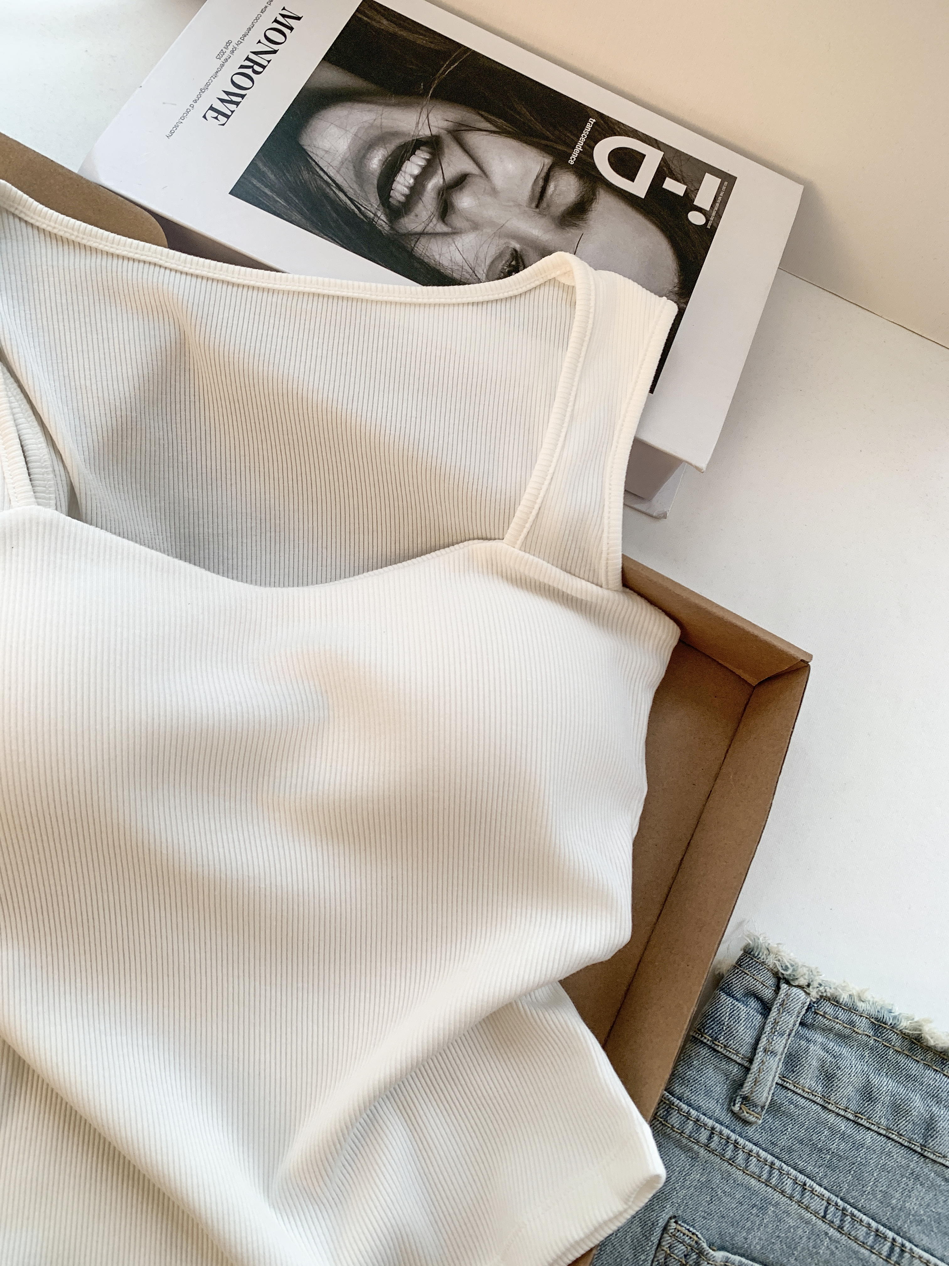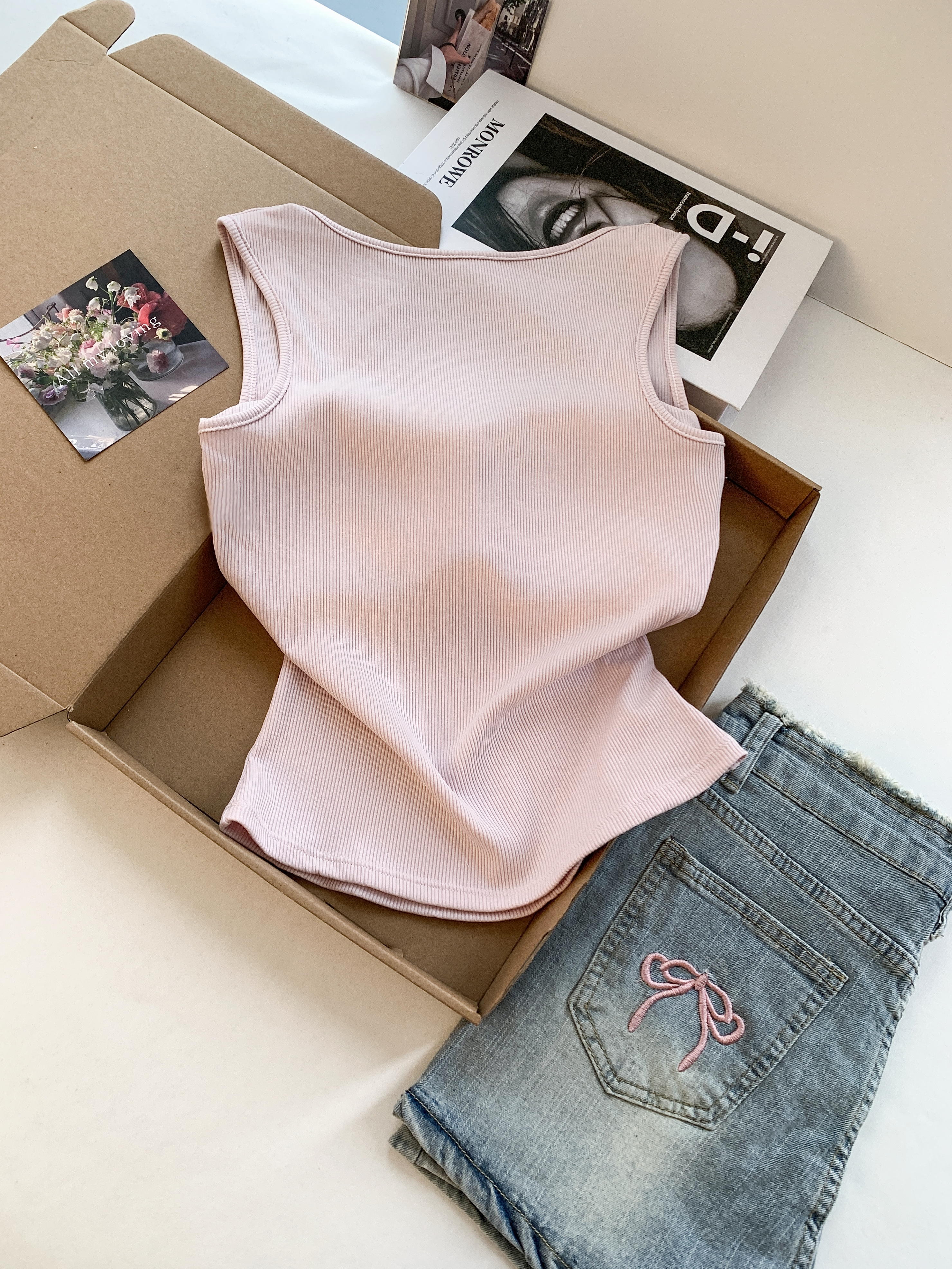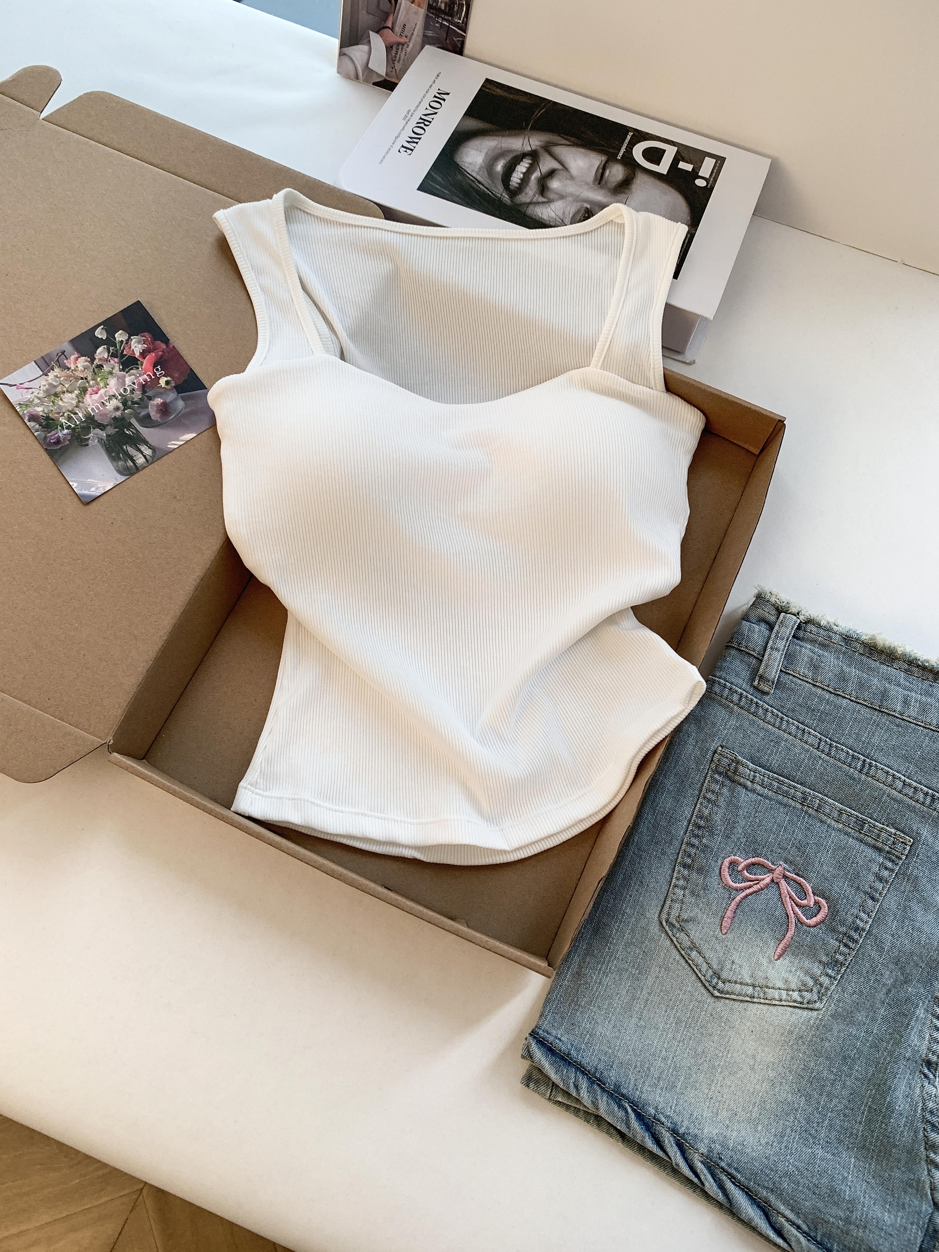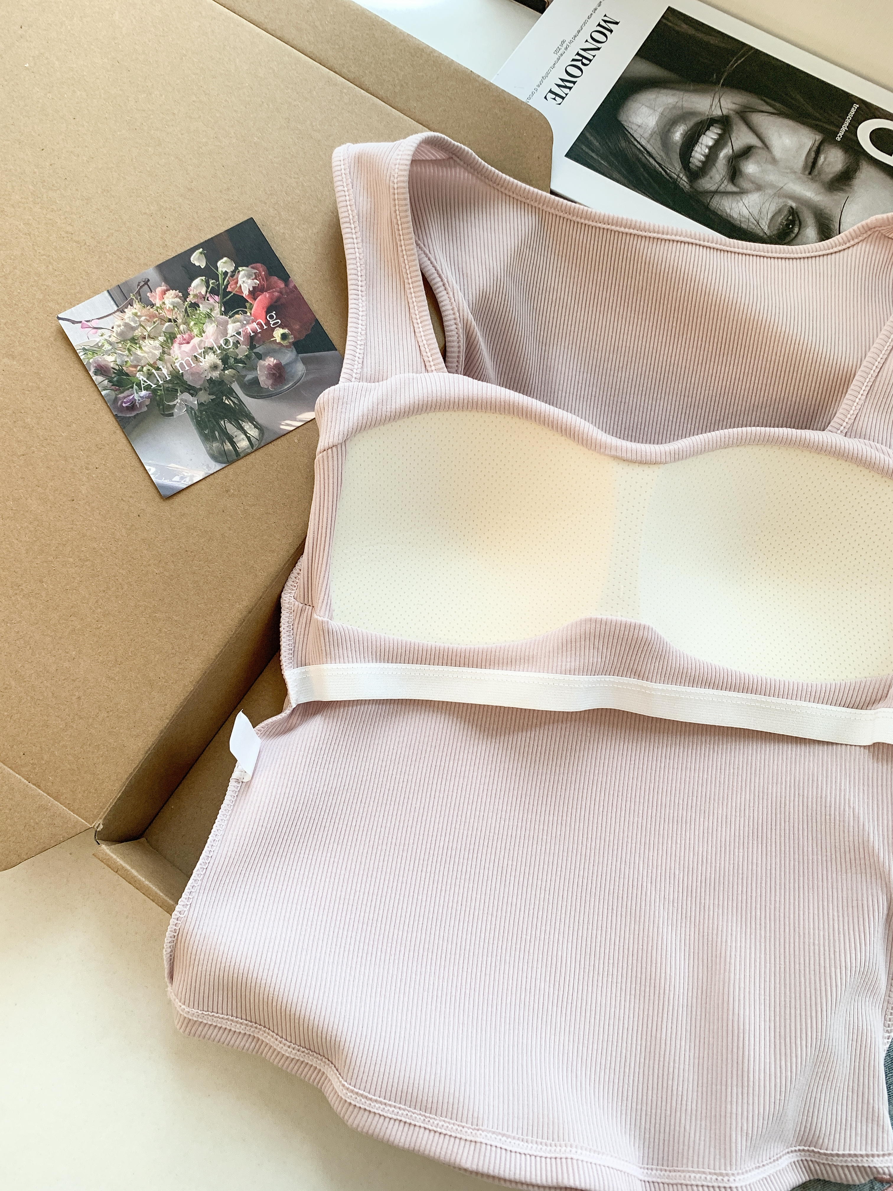 RY3476# 实拍 韩系方领 吊带背心女 夏季外穿带胸垫内搭显瘦抹胸 无袖上衣