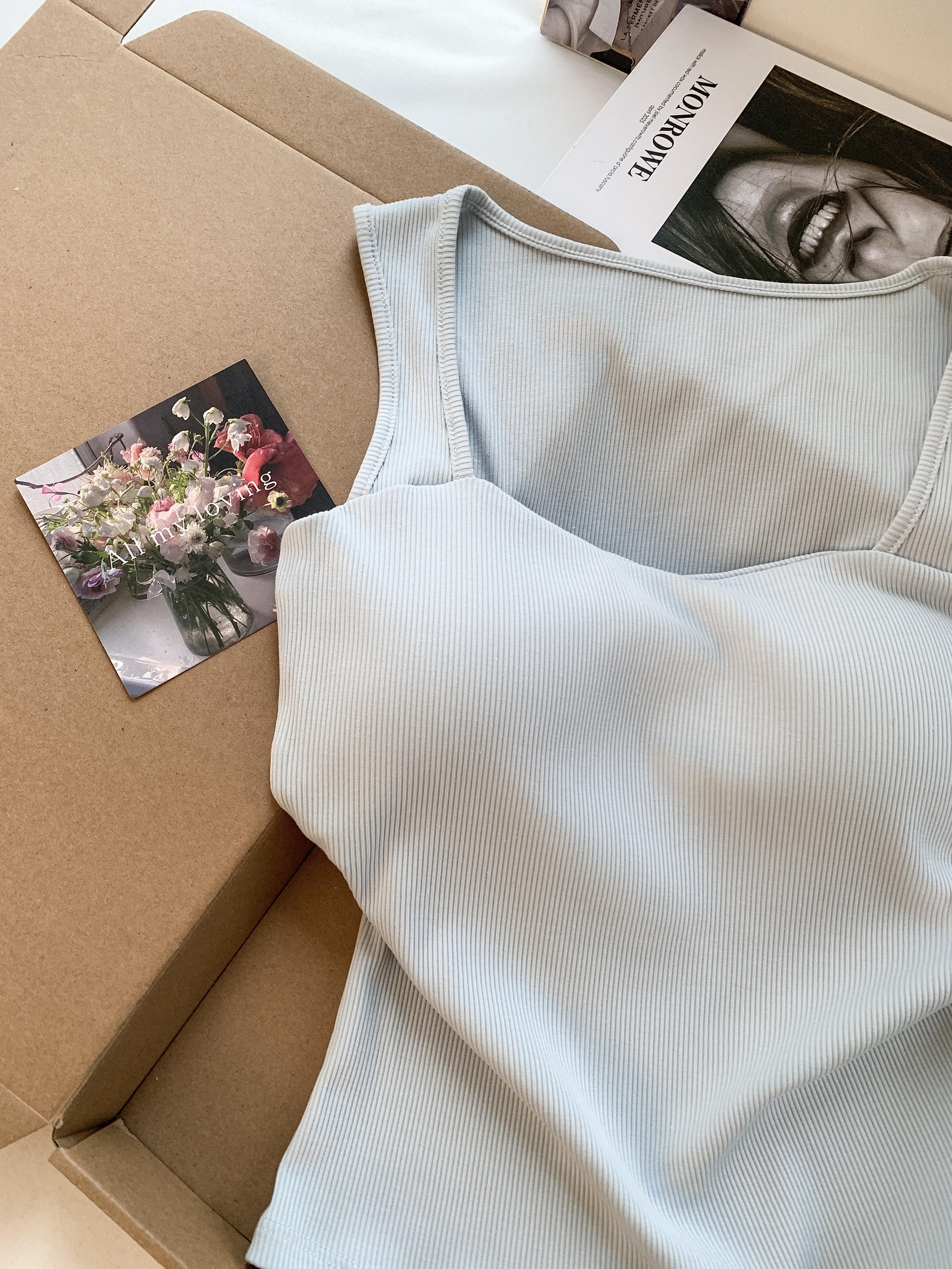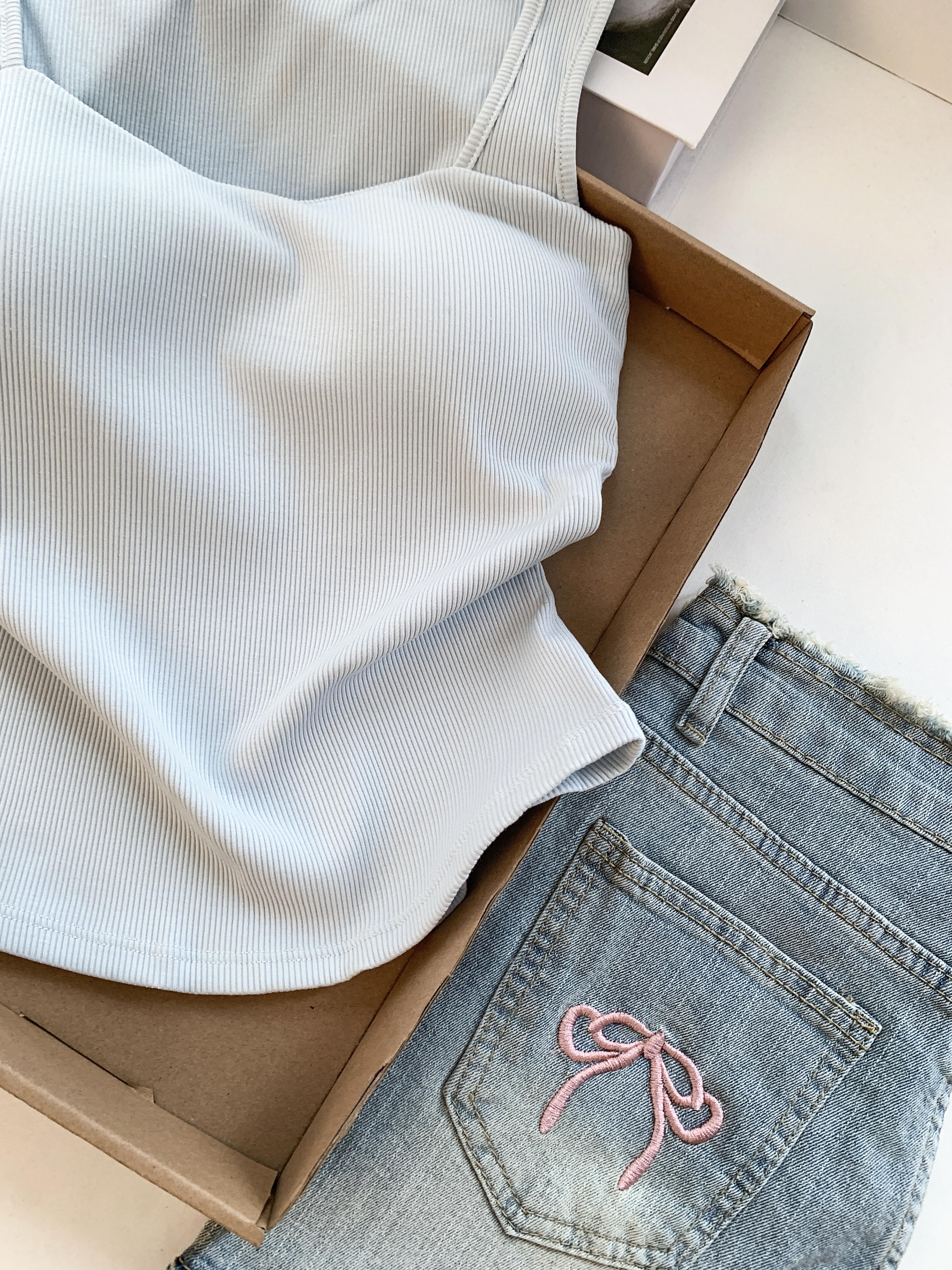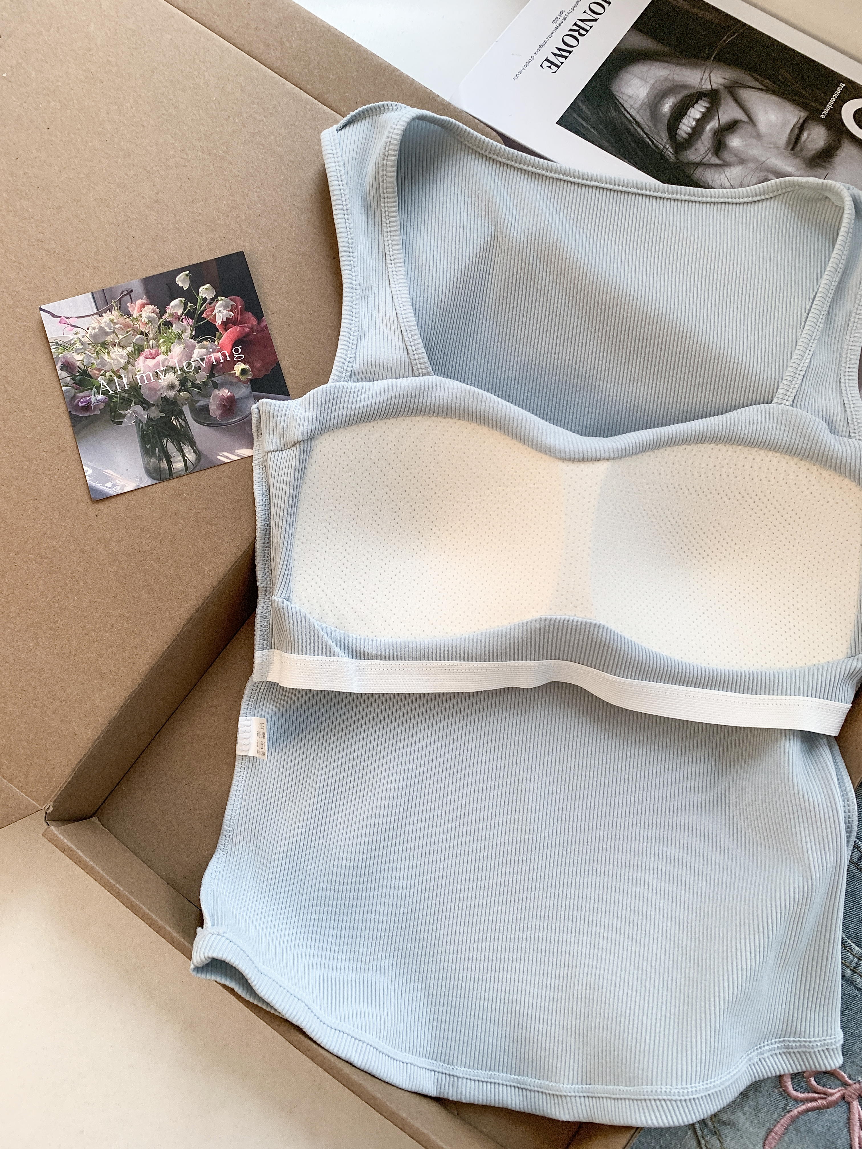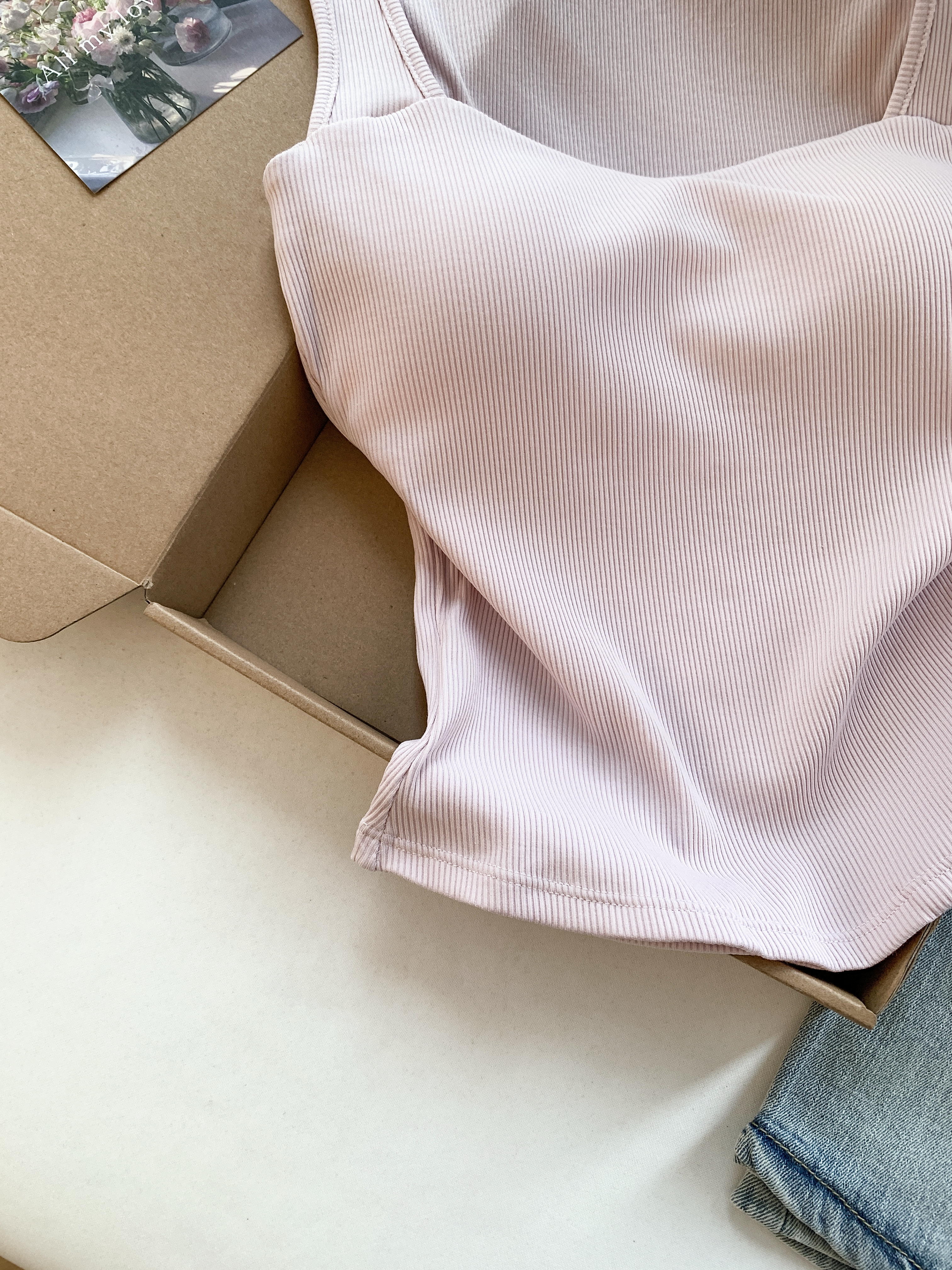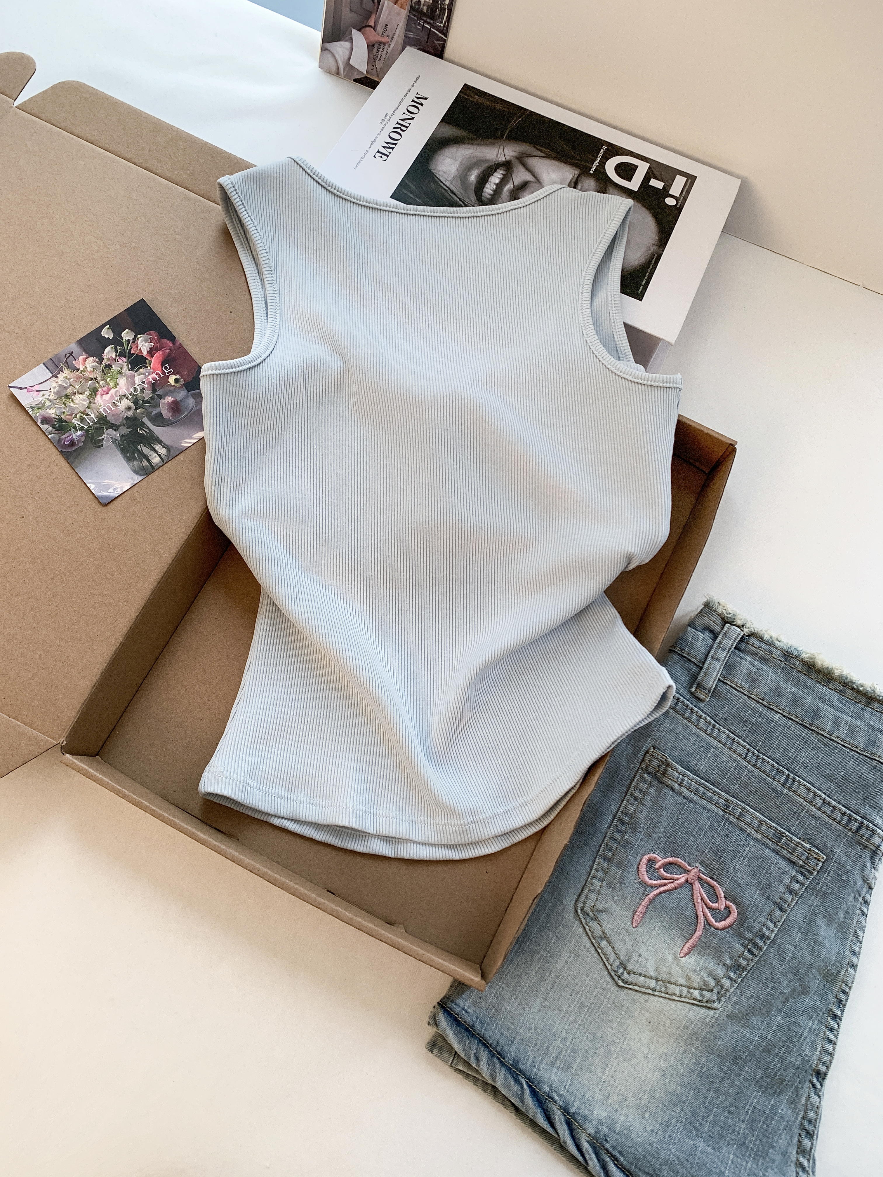 RY3476# 实拍 韩系方领 吊带背心女 夏季外穿带胸垫内搭显瘦抹胸 无袖上衣