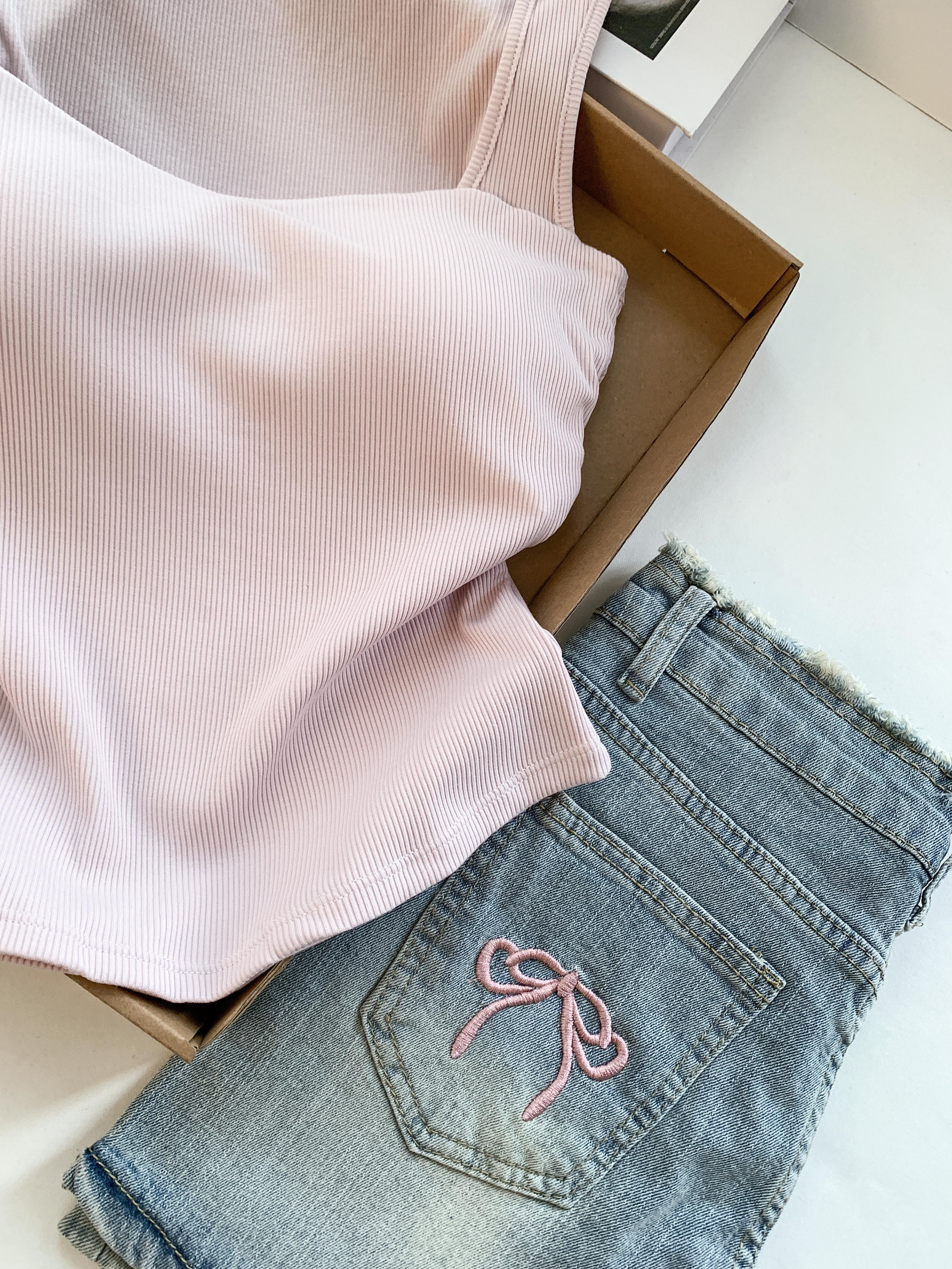 RY3473# 实拍~设计感甜辣妹蝴蝶印花背心女内搭夏季外穿带胸垫短款上衣