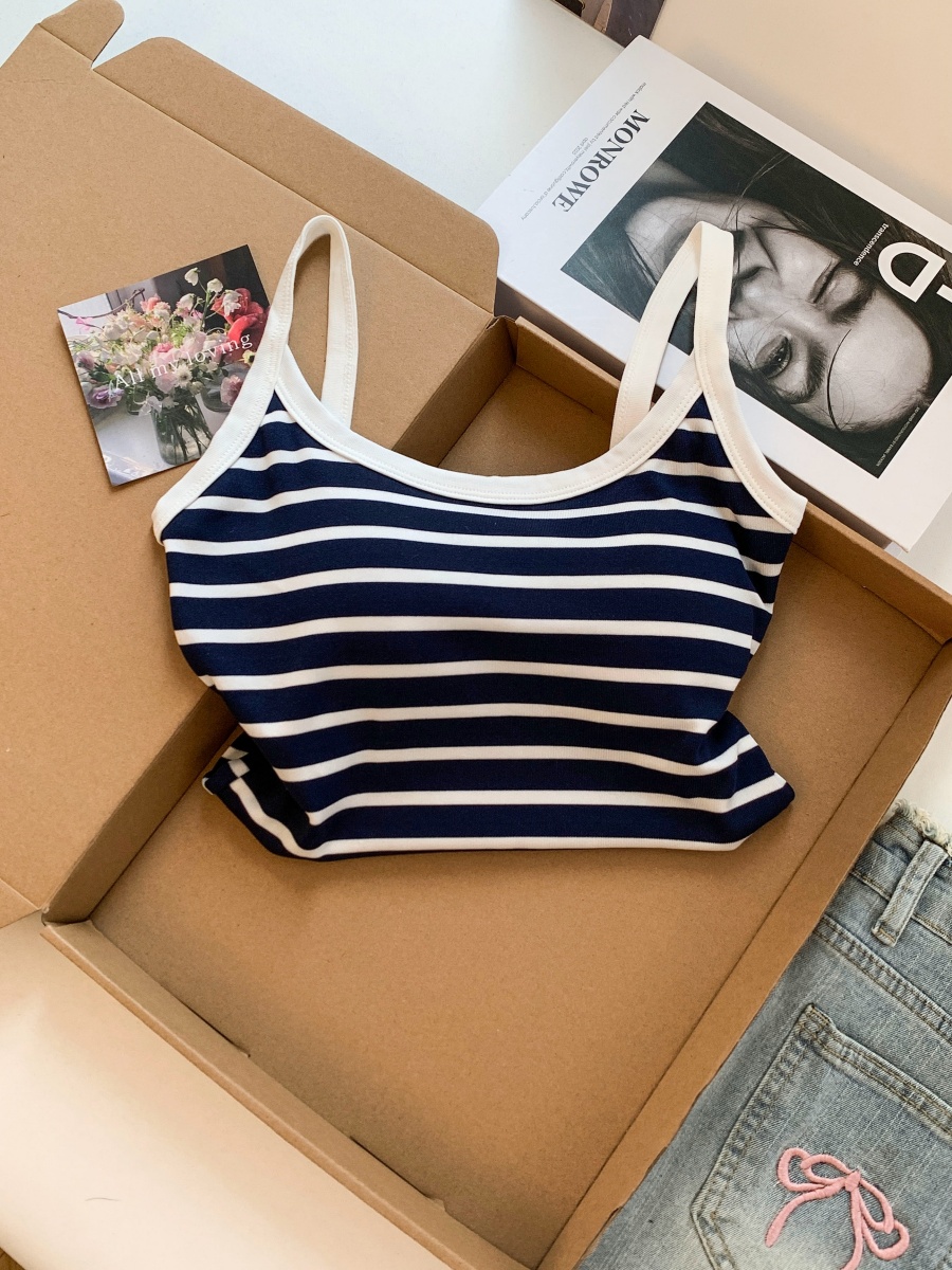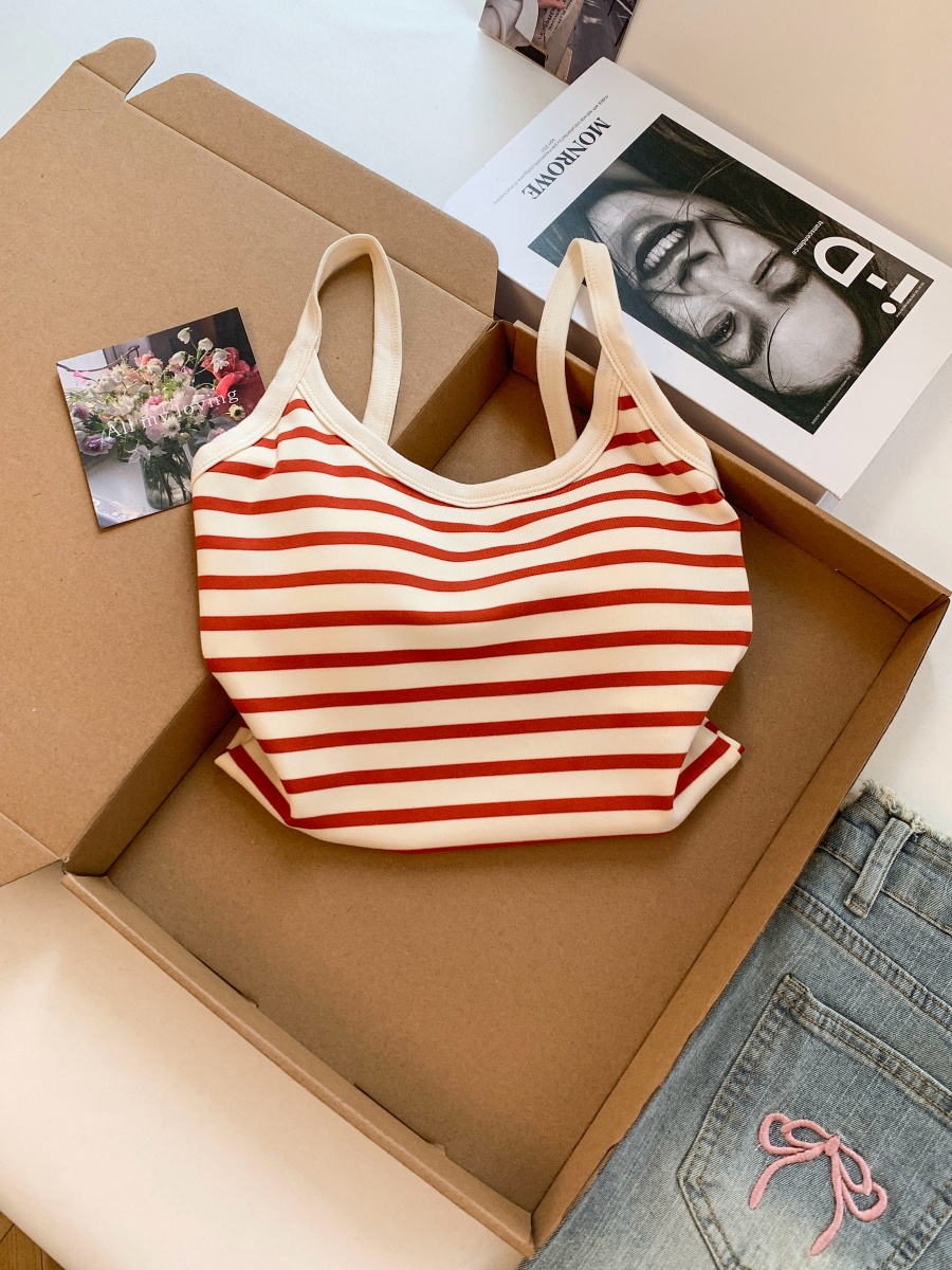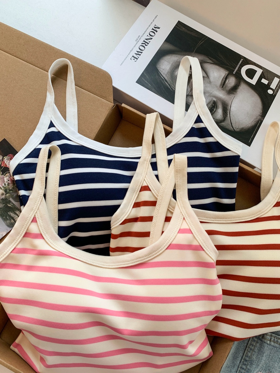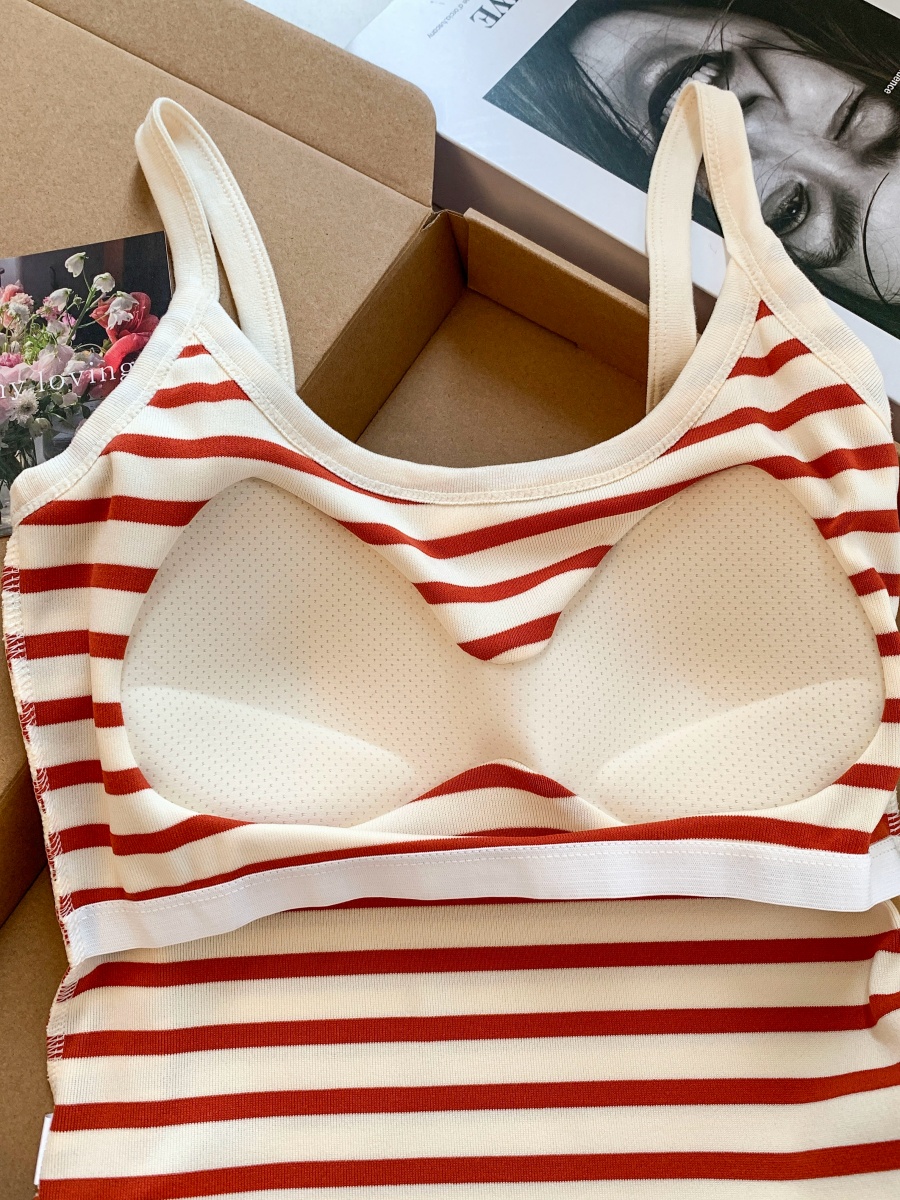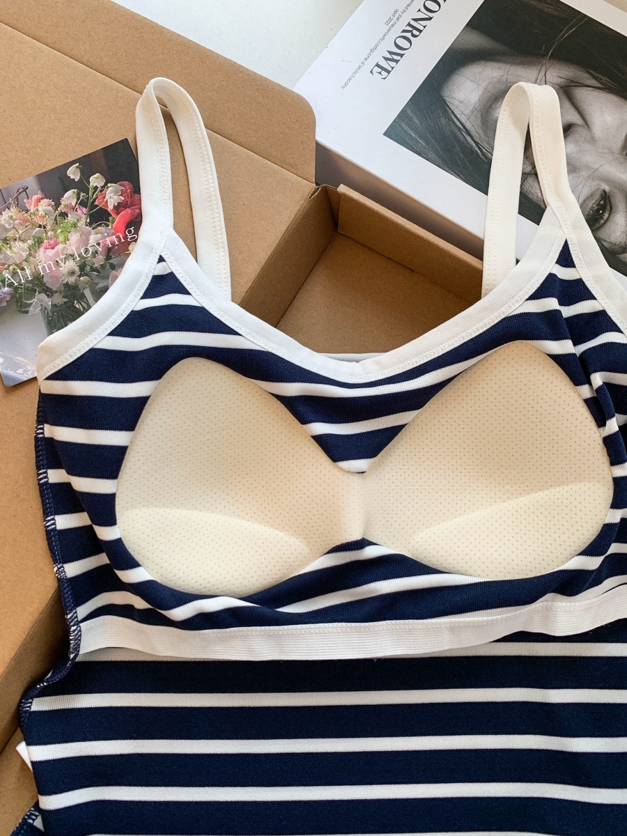 RY3477# 实拍~夏季条纹吊带背心女夏外穿无袖美背文胸一体内衣抹胸上衣