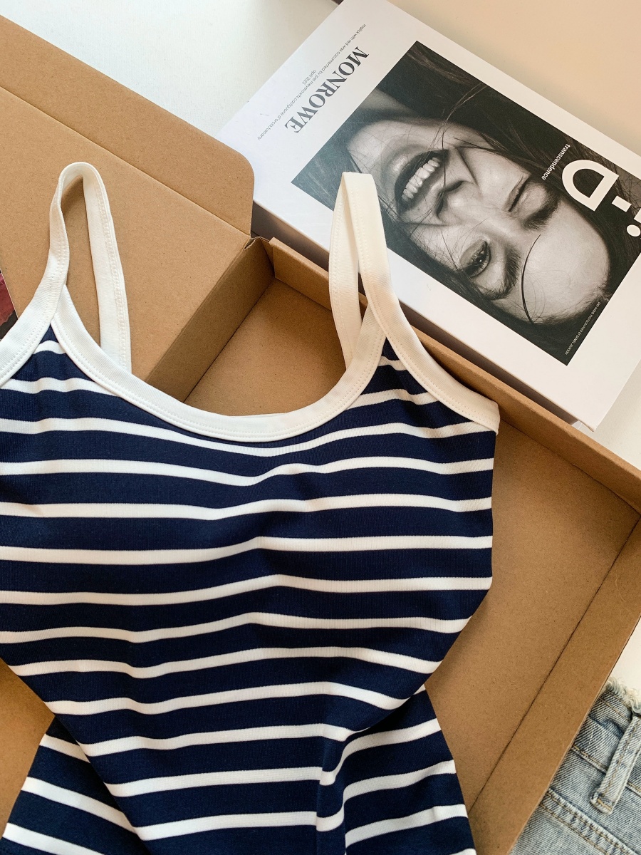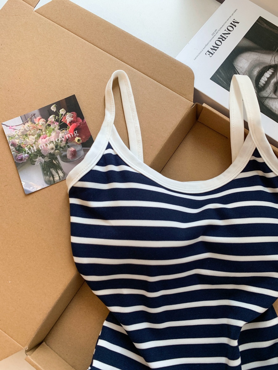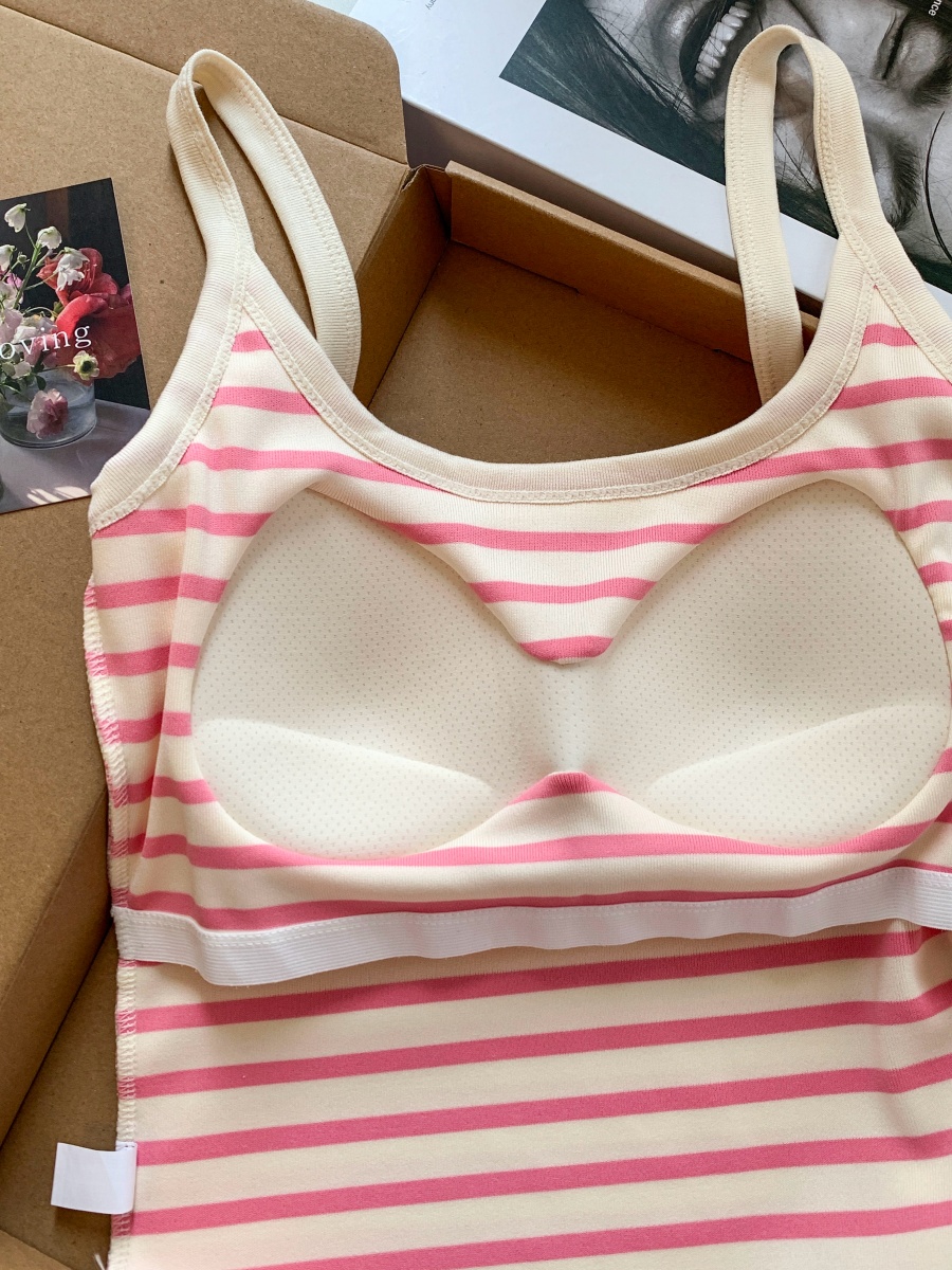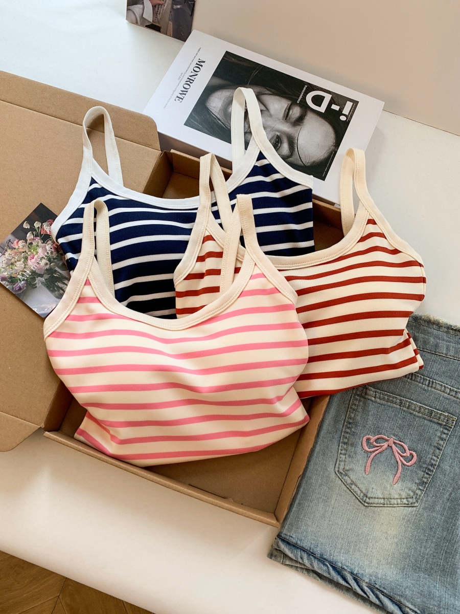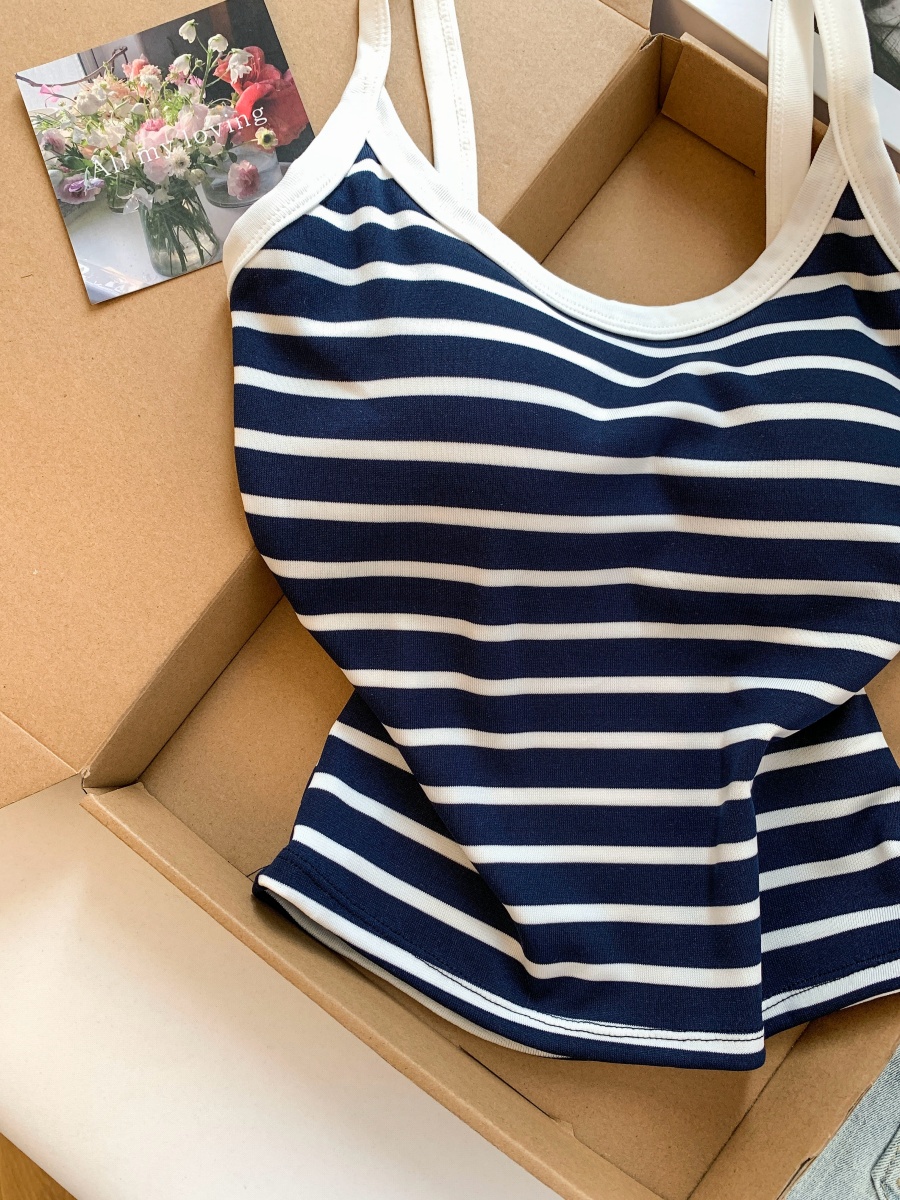 RY3477# 实拍~夏季条纹吊带背心女夏外穿无袖美背文胸一体内衣抹胸上衣