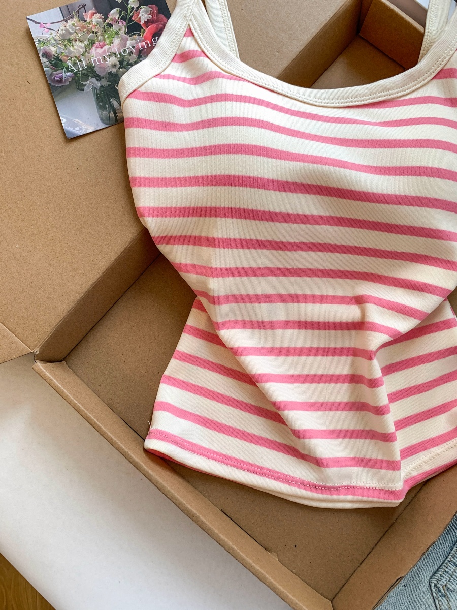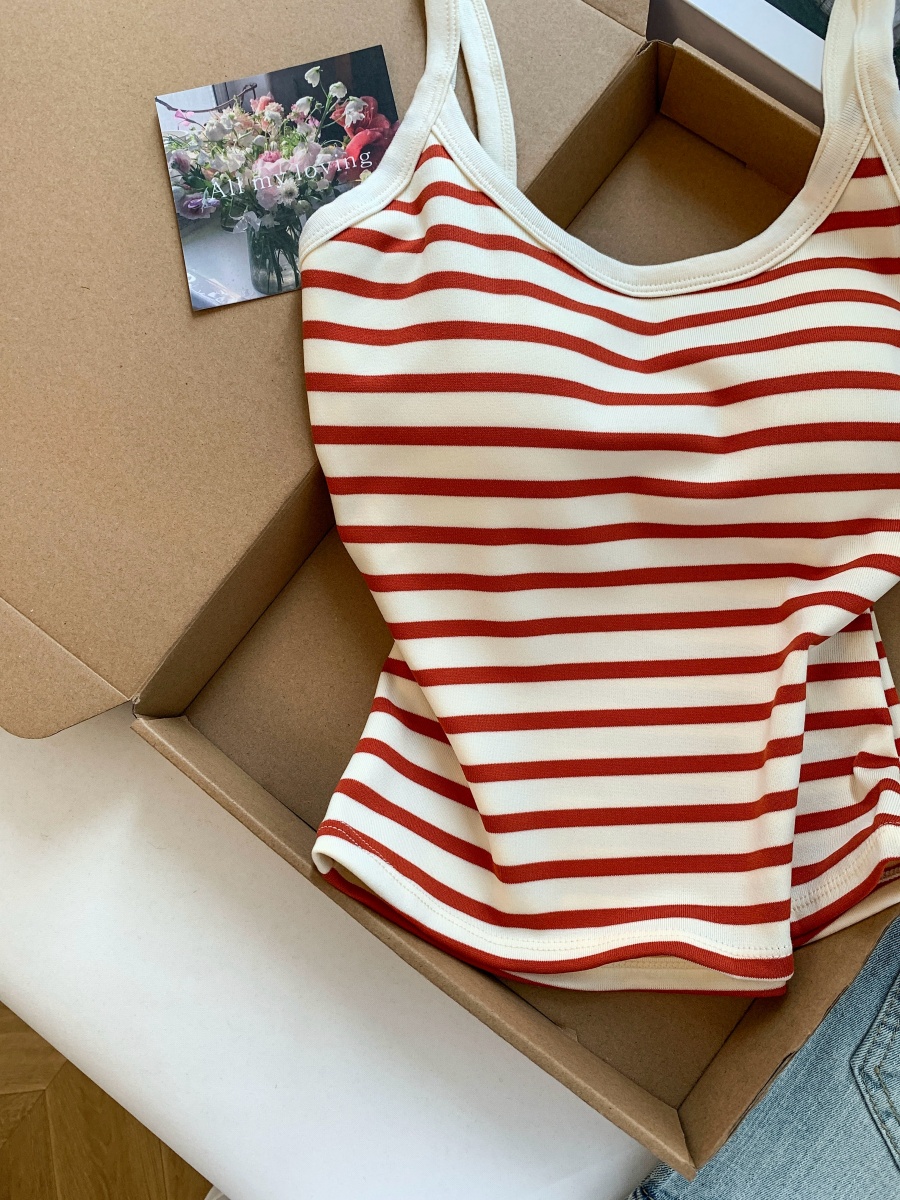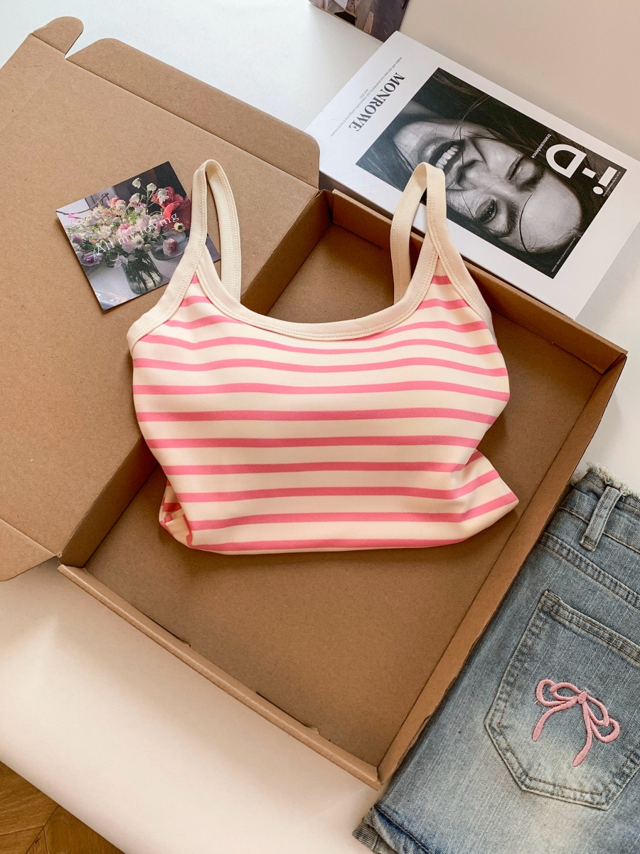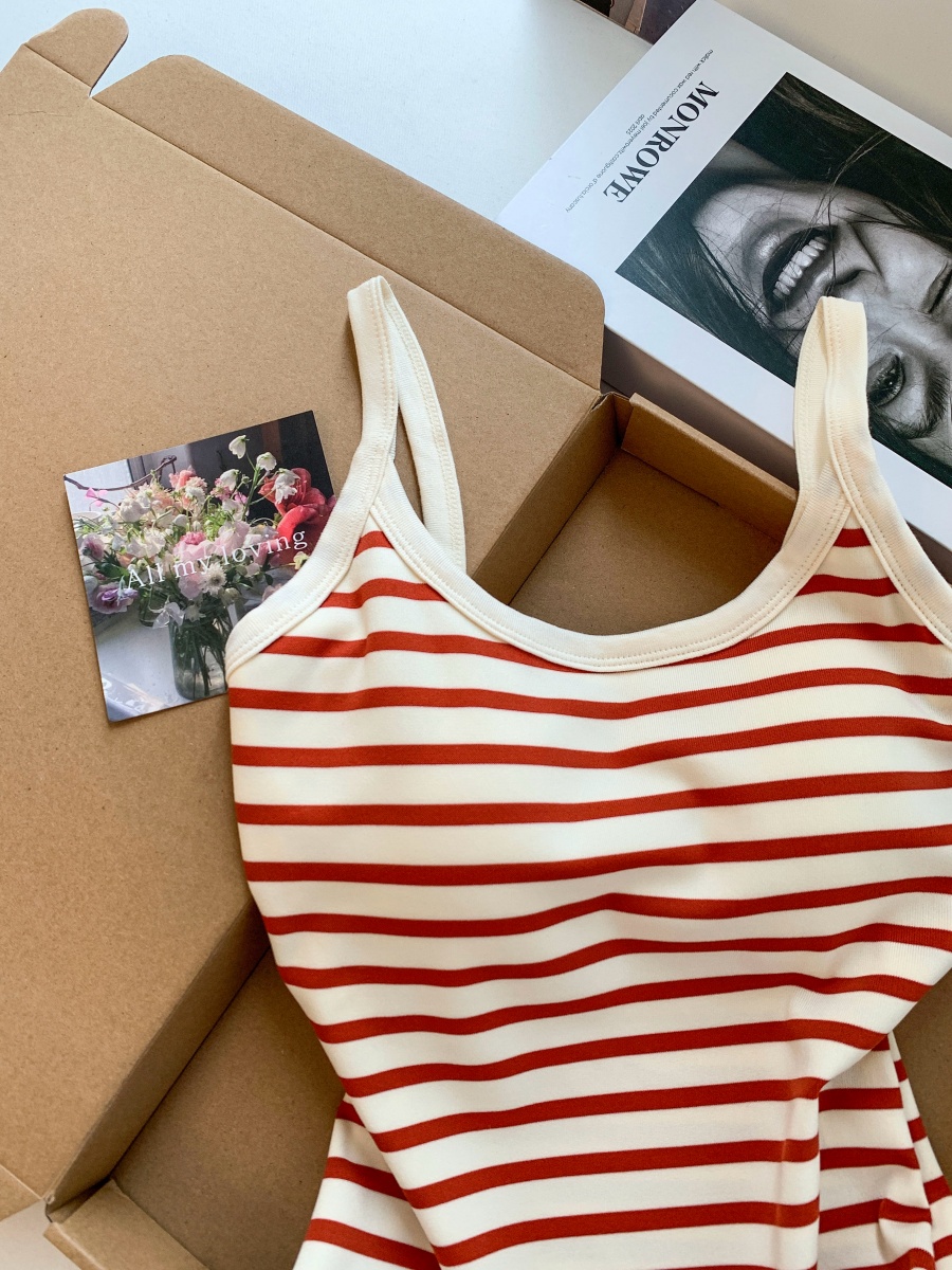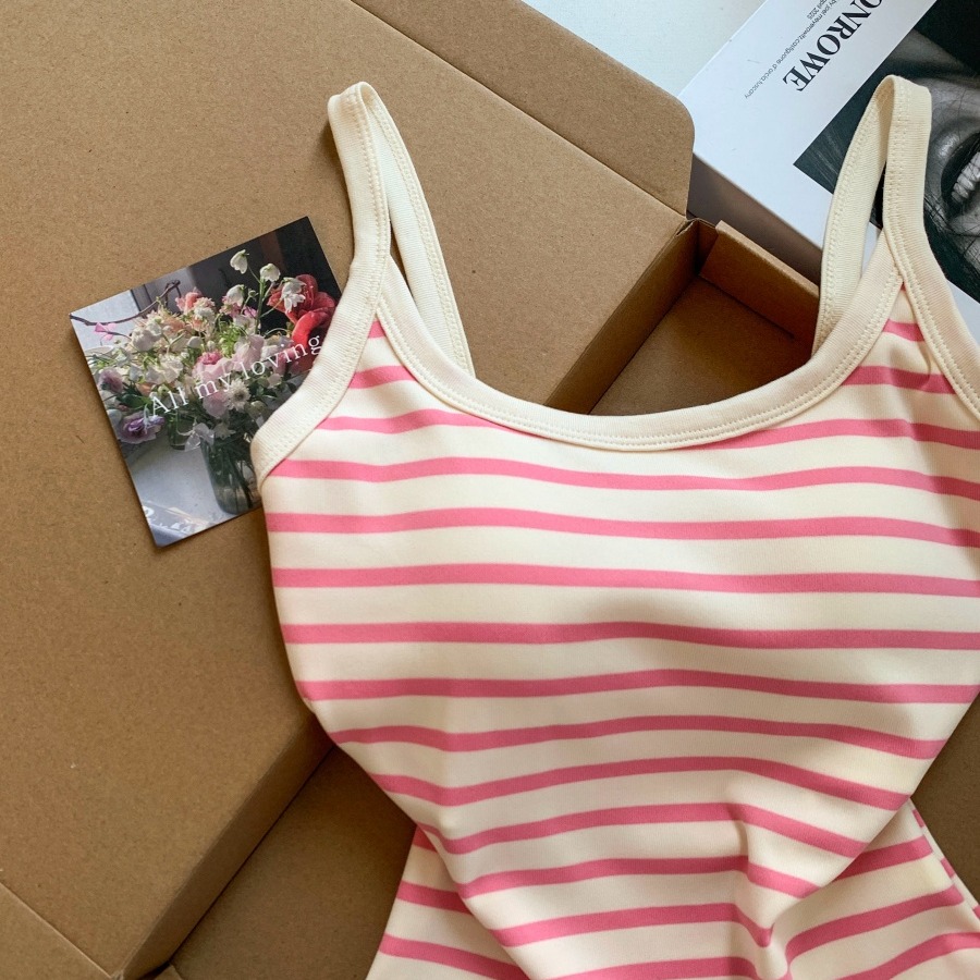 RY3477# 实拍~夏季条纹吊带背心女夏外穿无袖美背文胸一体内衣抹胸上衣