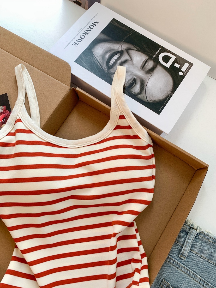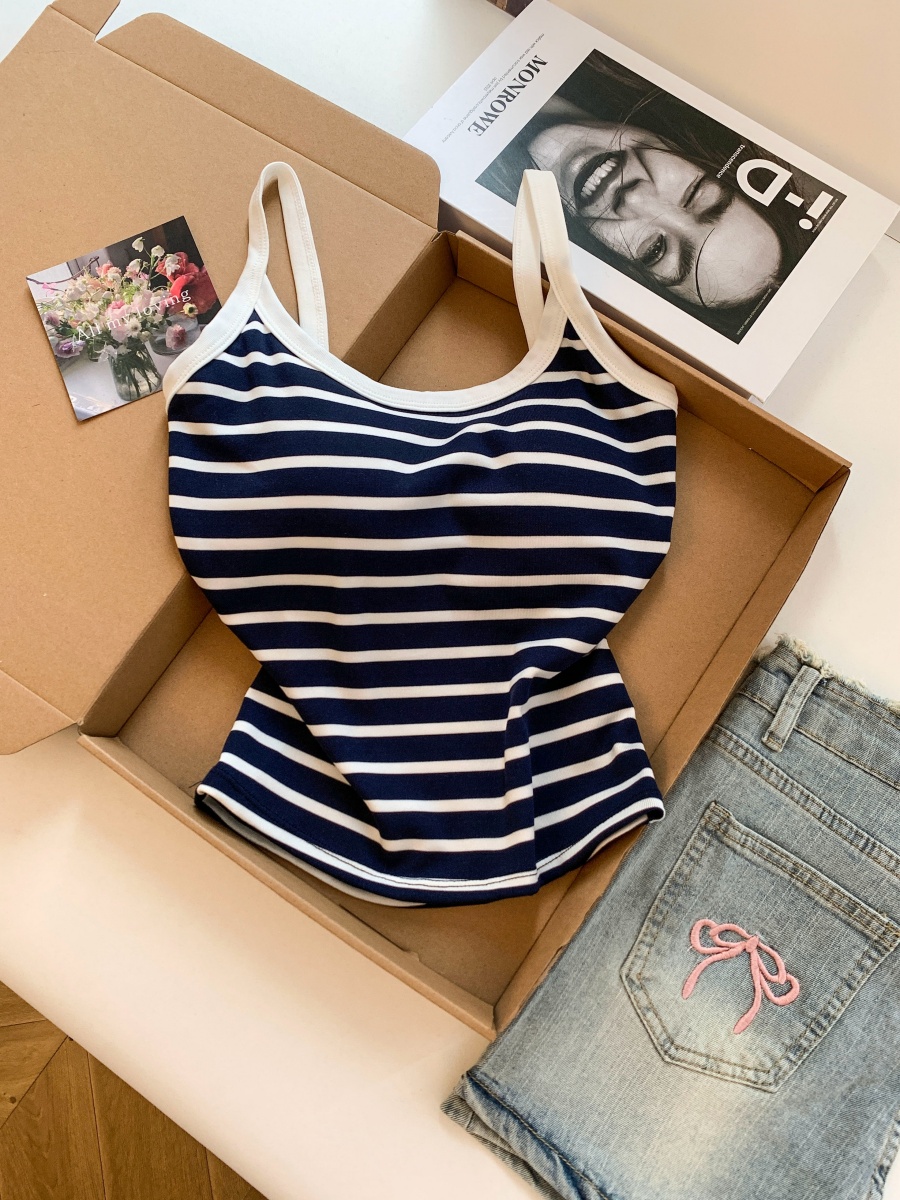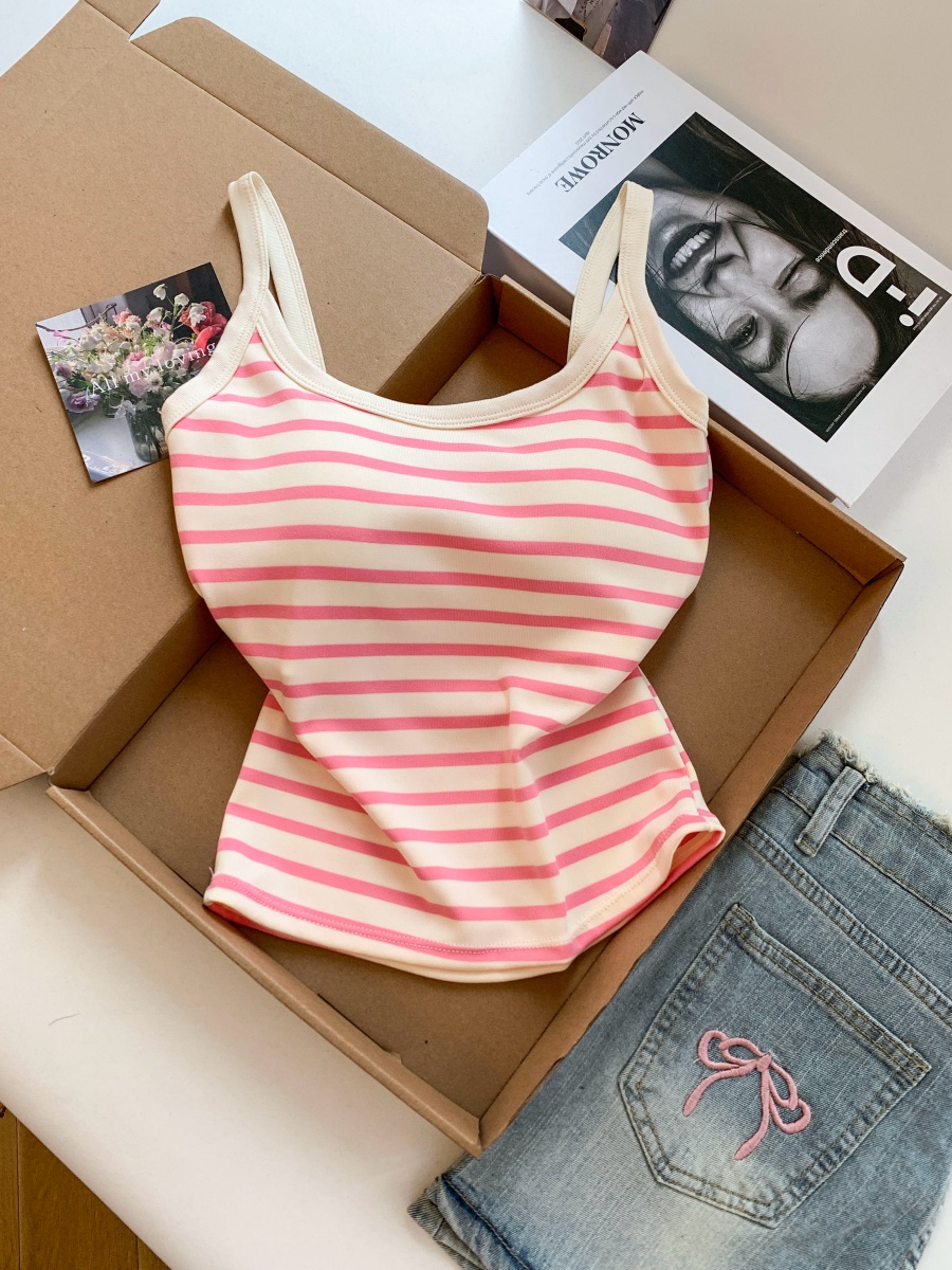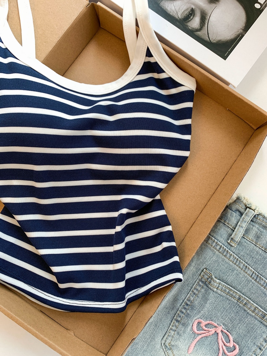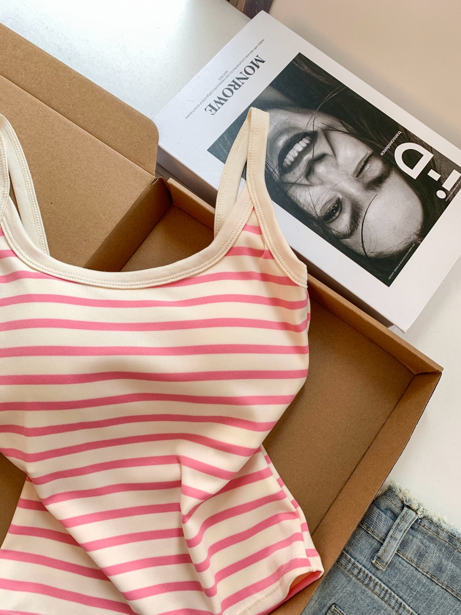 RY3477# 实拍~夏季条纹吊带背心女夏外穿无袖美背文胸一体内衣抹胸上衣