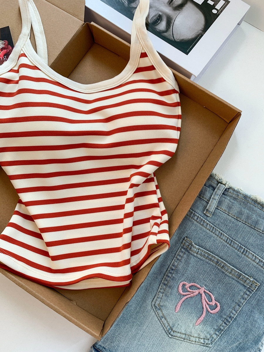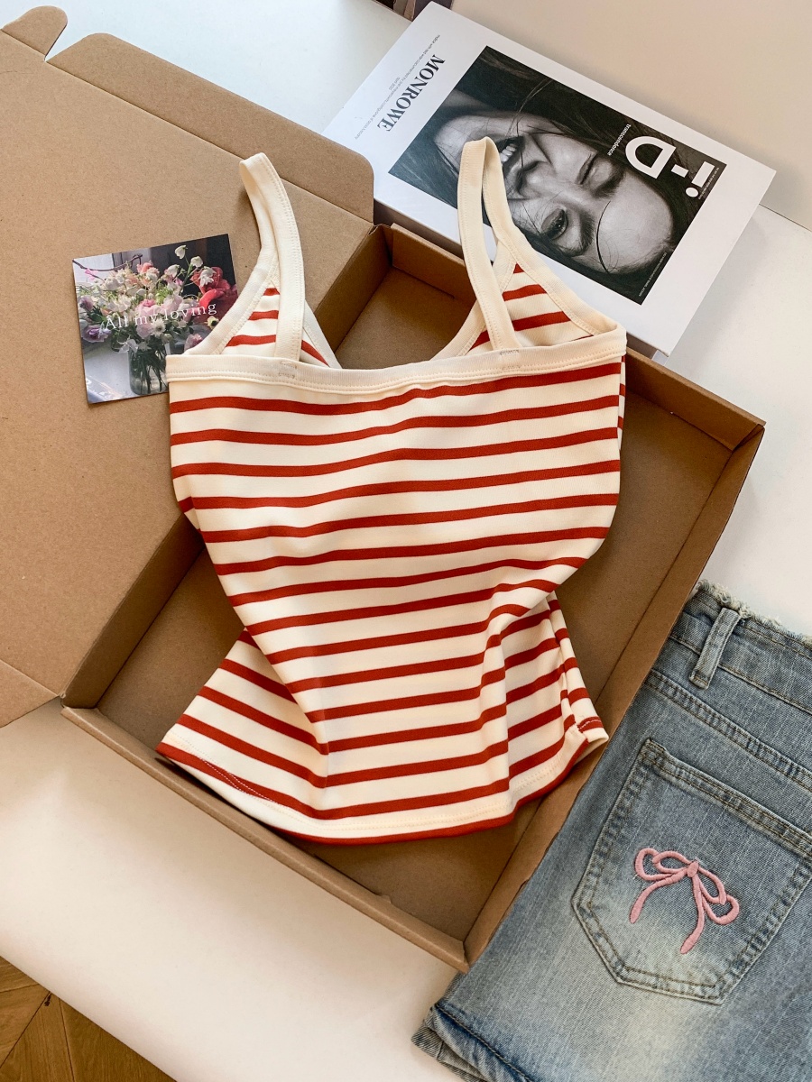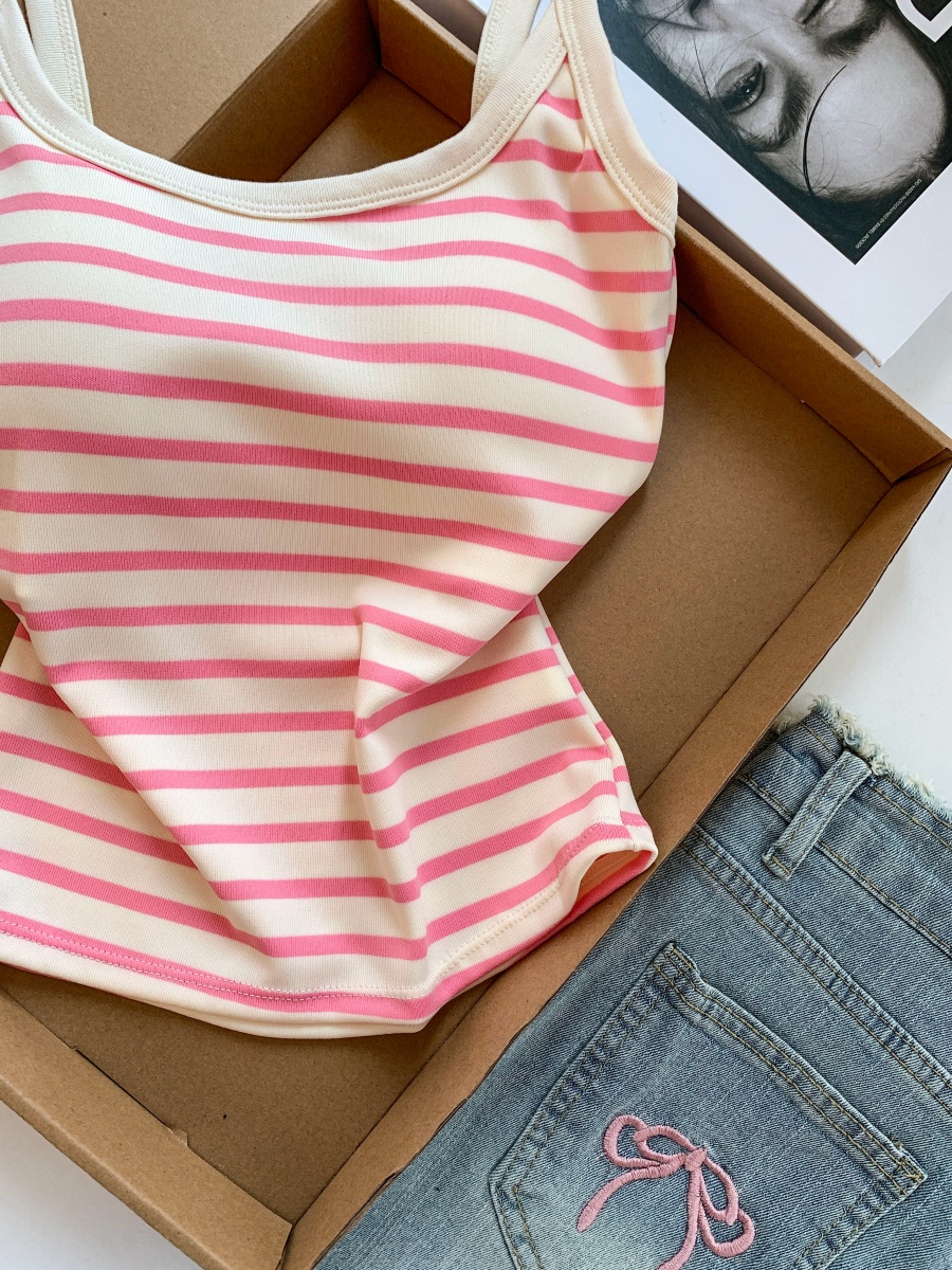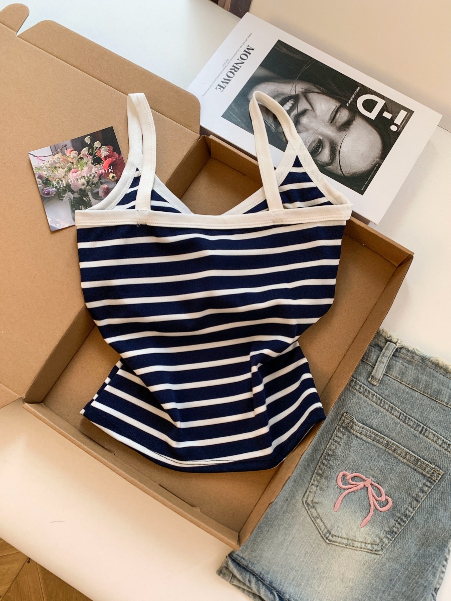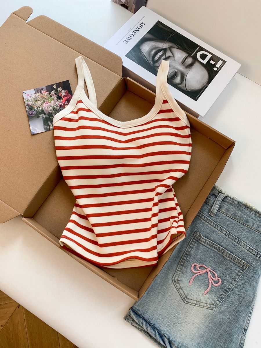 RY3477# 实拍~夏季条纹吊带背心女夏外穿无袖美背文胸一体内衣抹胸上衣