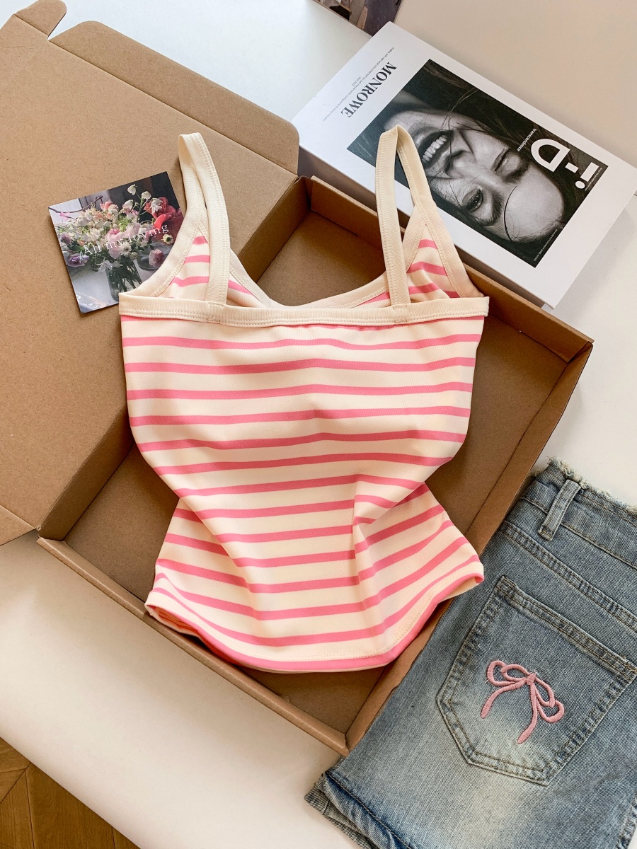 RY3476# 实拍 韩系方领 吊带背心女 夏季外穿带胸垫内搭显瘦抹胸 无...