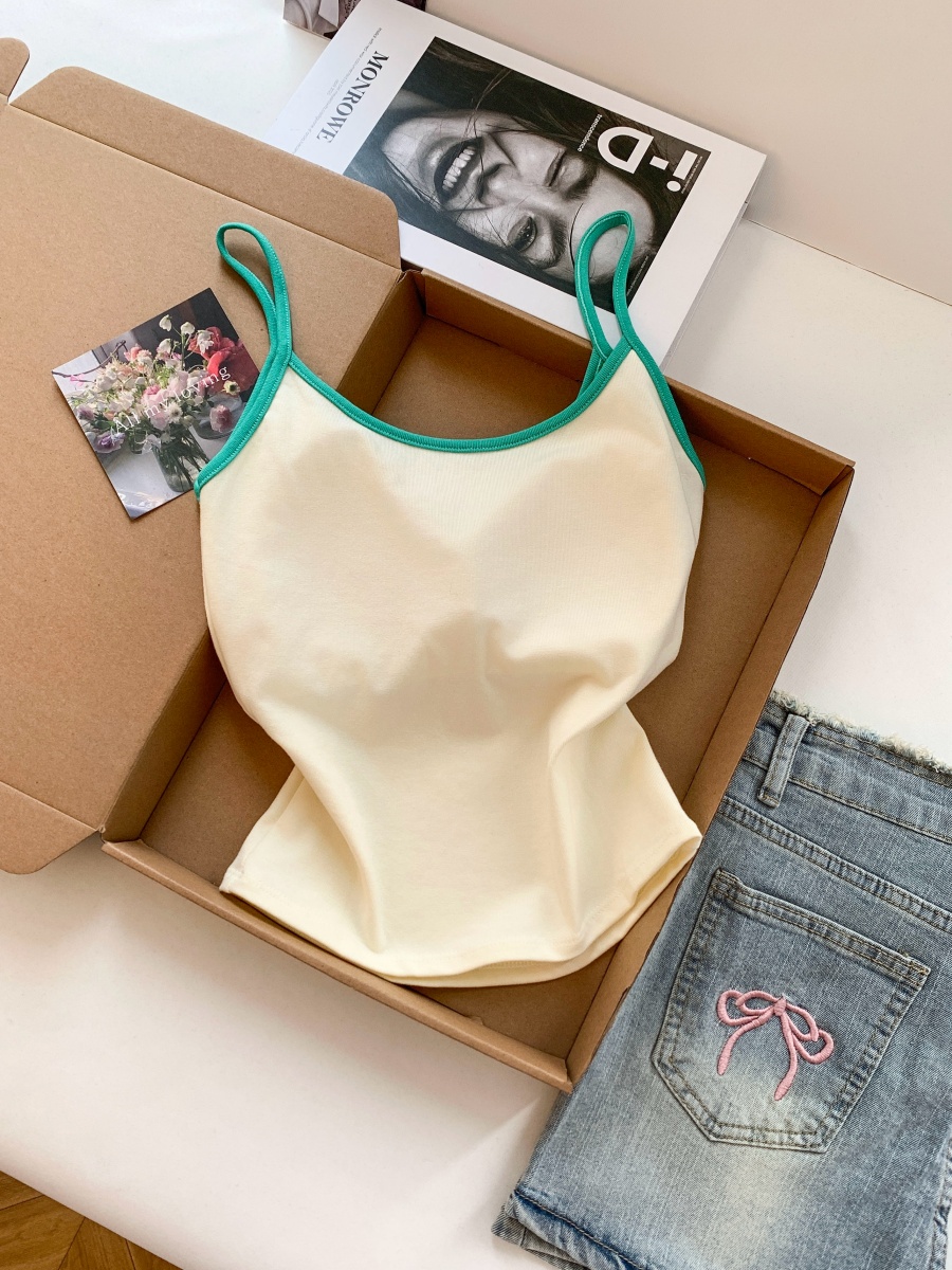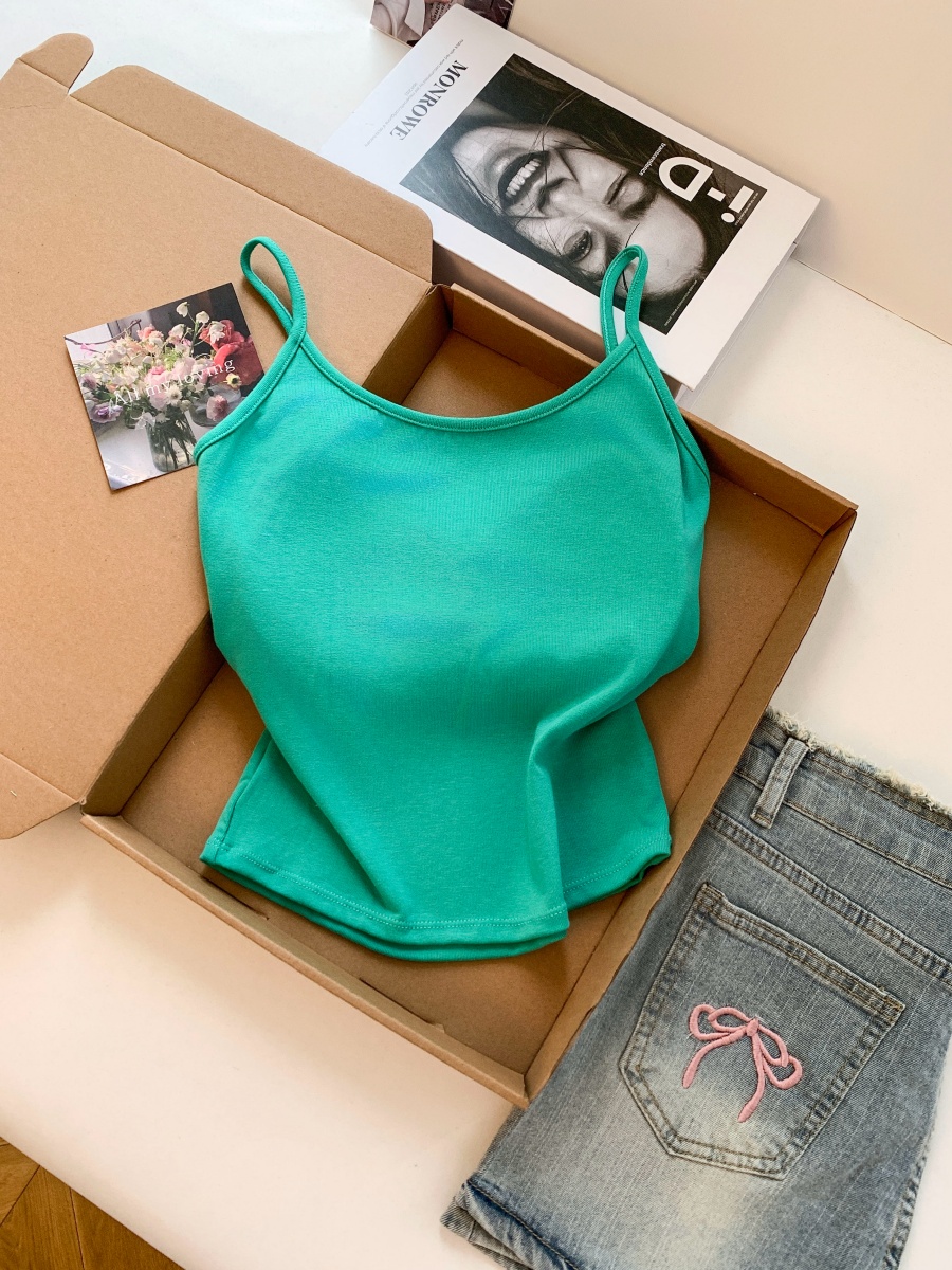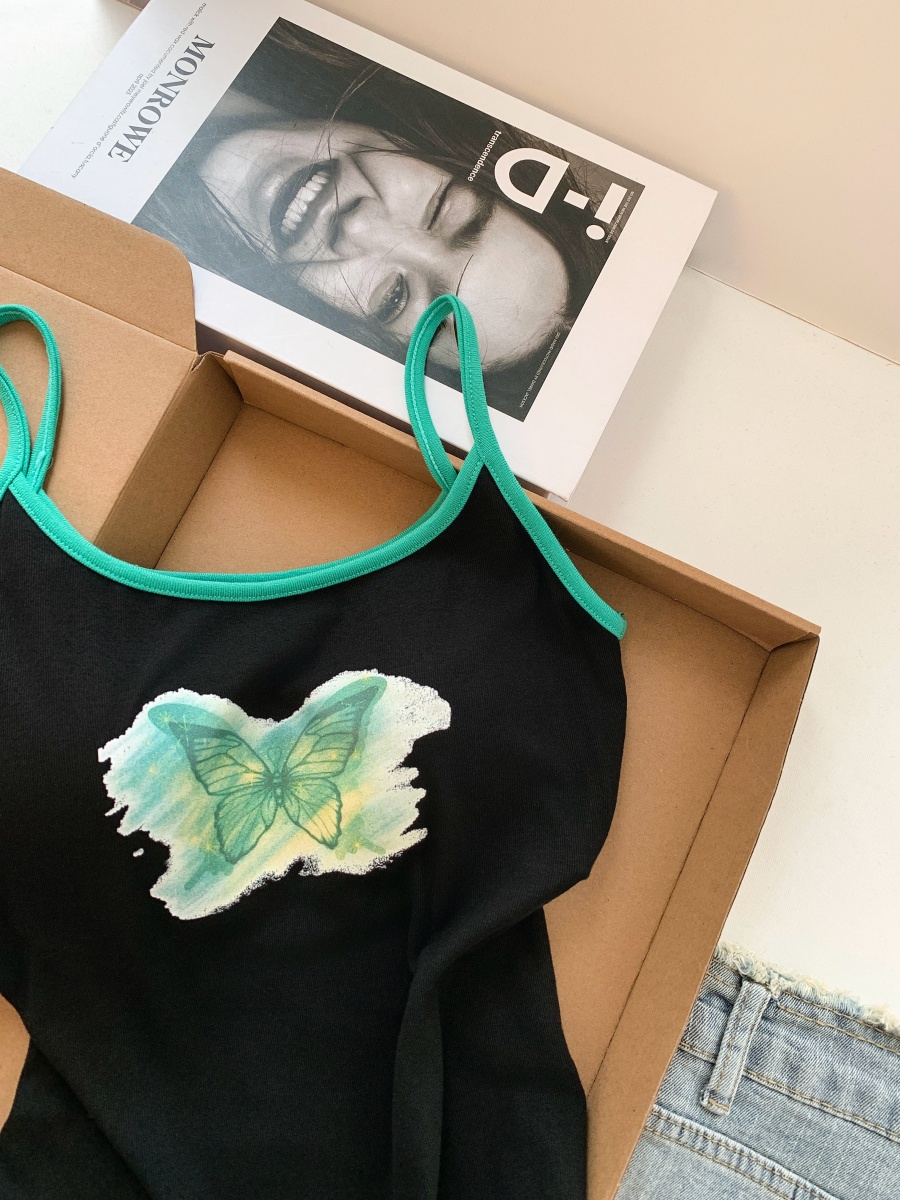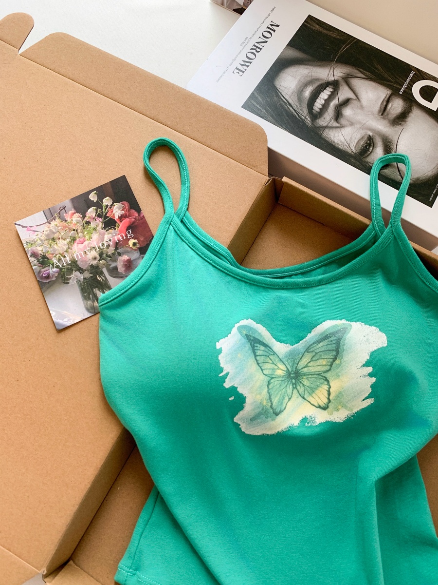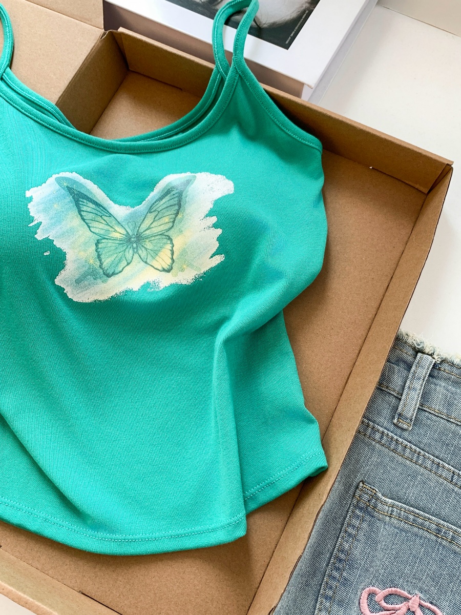 RY3478# 实拍~设计感甜辣妹蝴蝶印花背心女内搭夏季外穿带胸垫短款上衣
