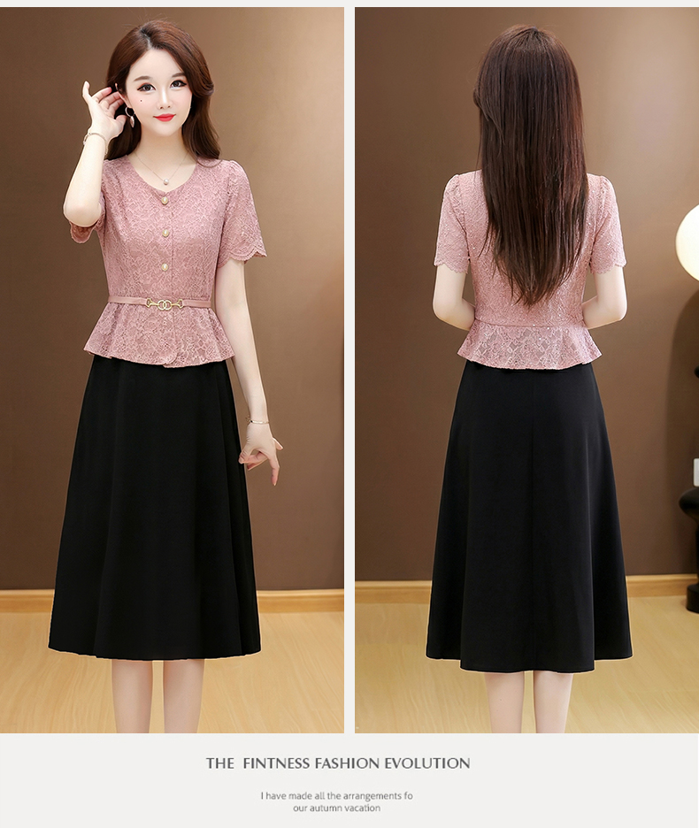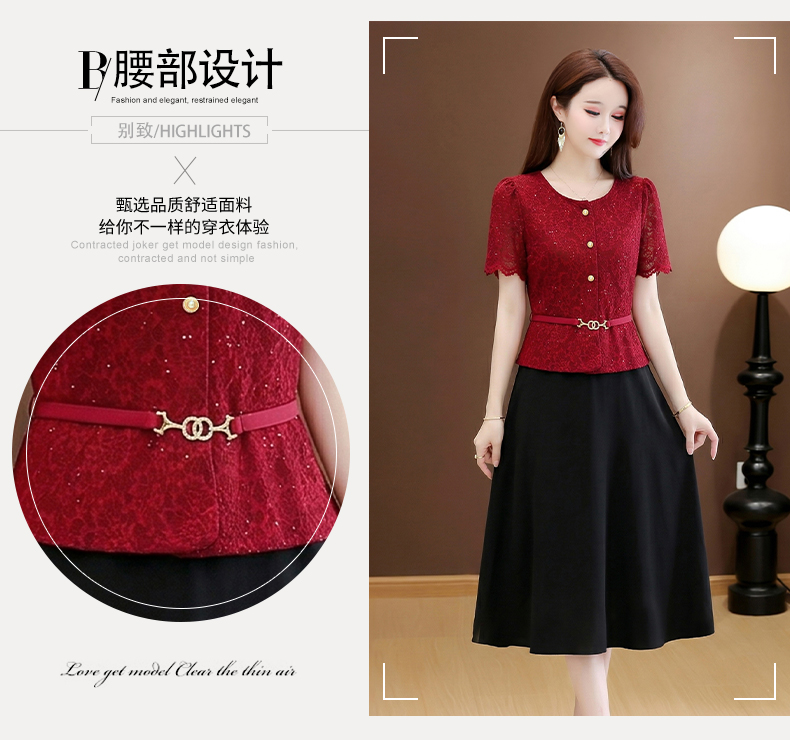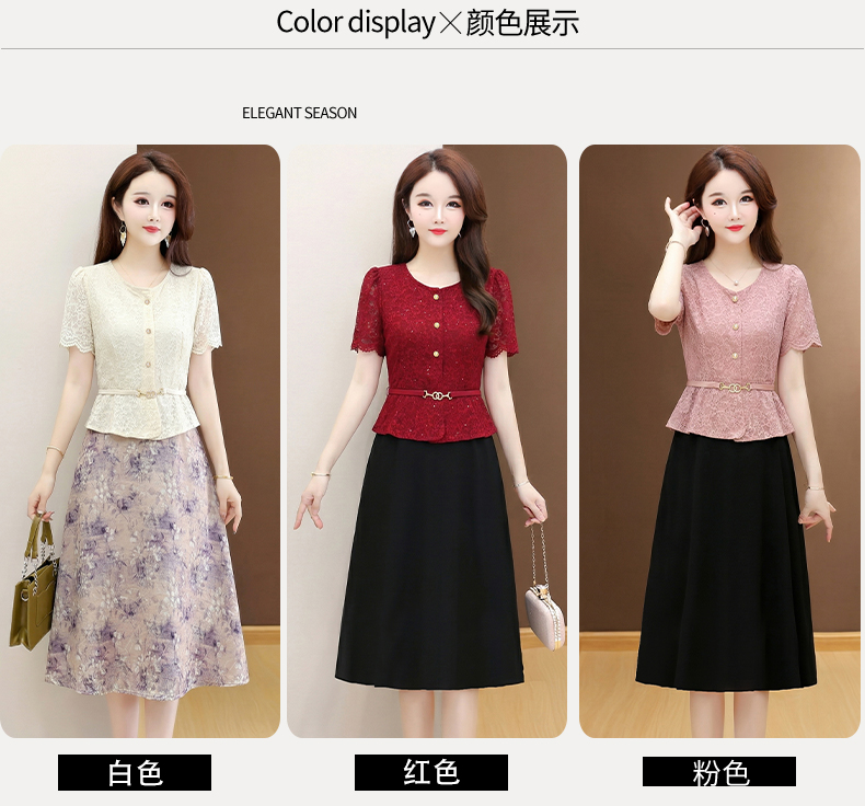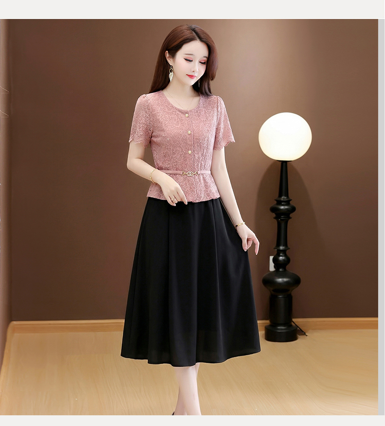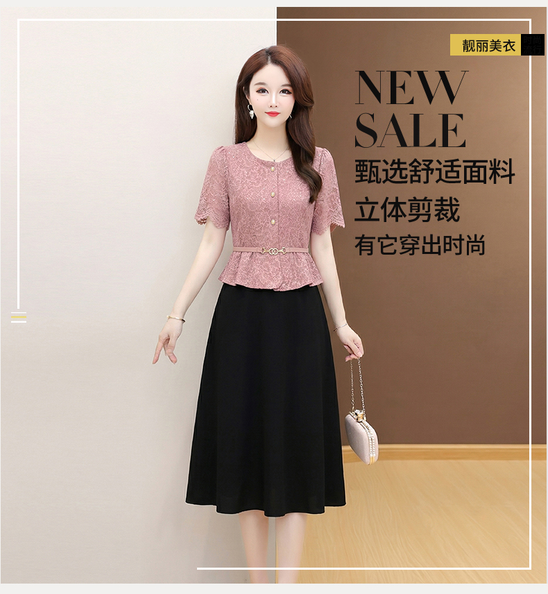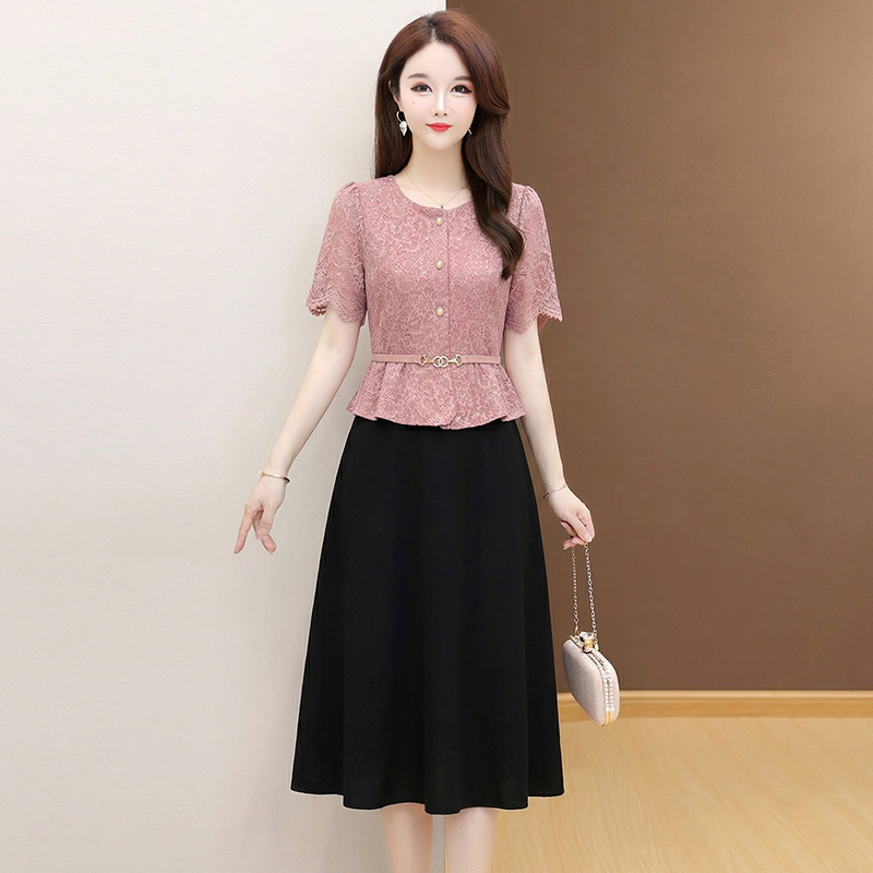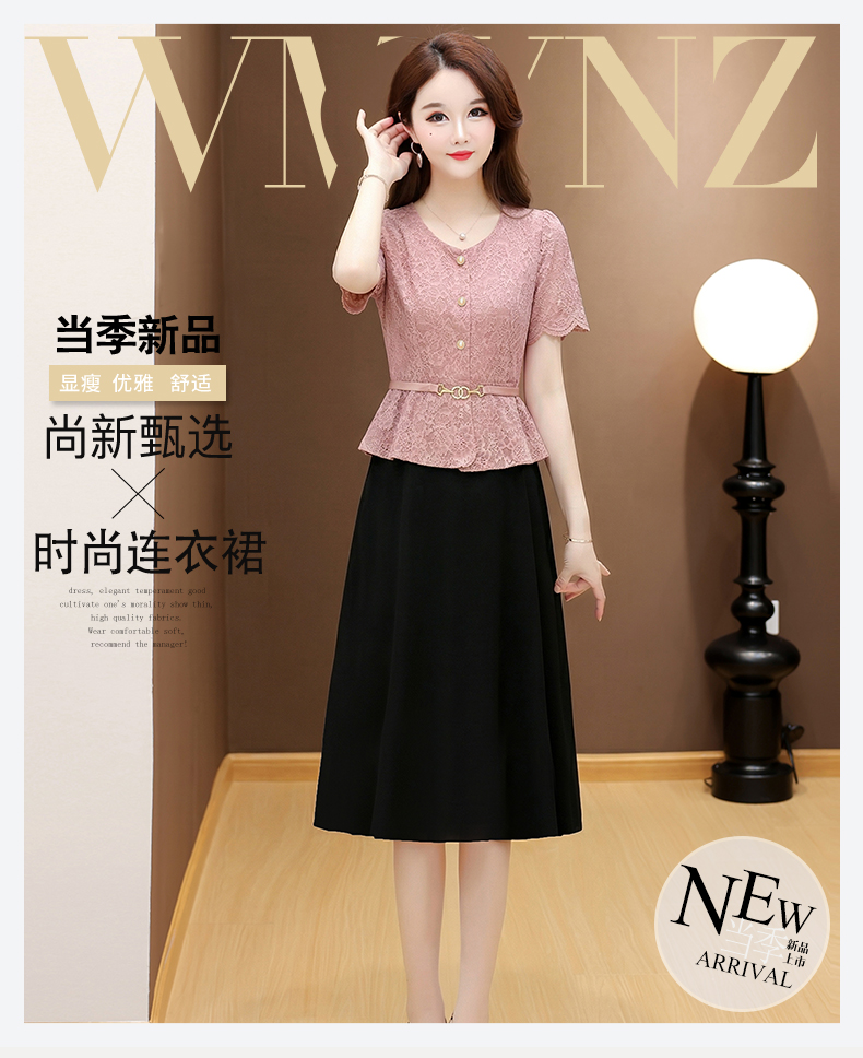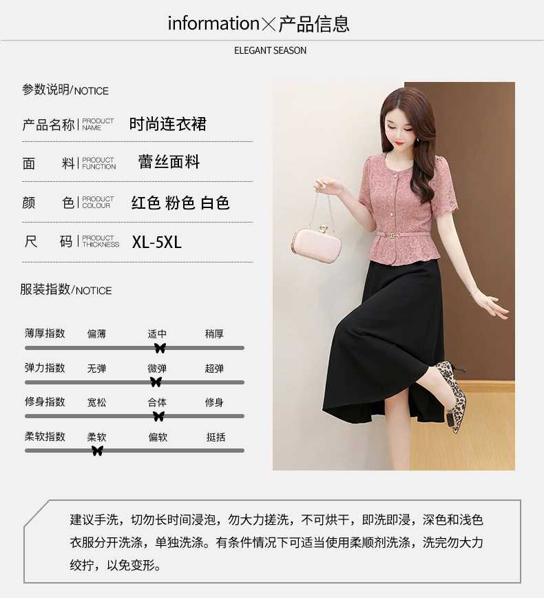 RY3486# 实拍有货 20256夏季新款大码短袖蕾丝连衣裙收腰显瘦洋气中长款