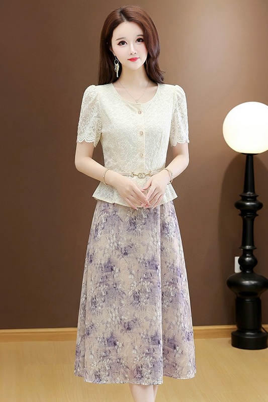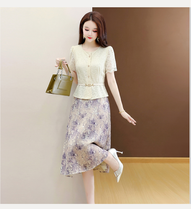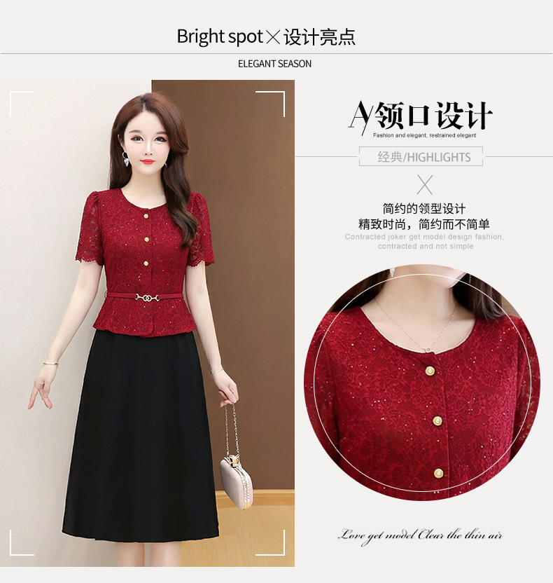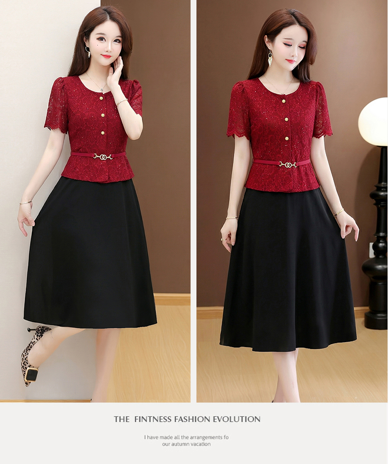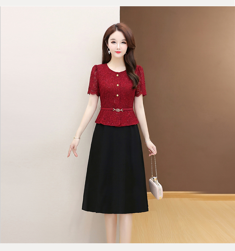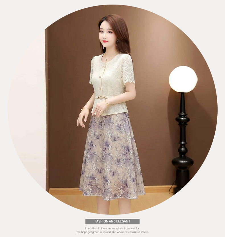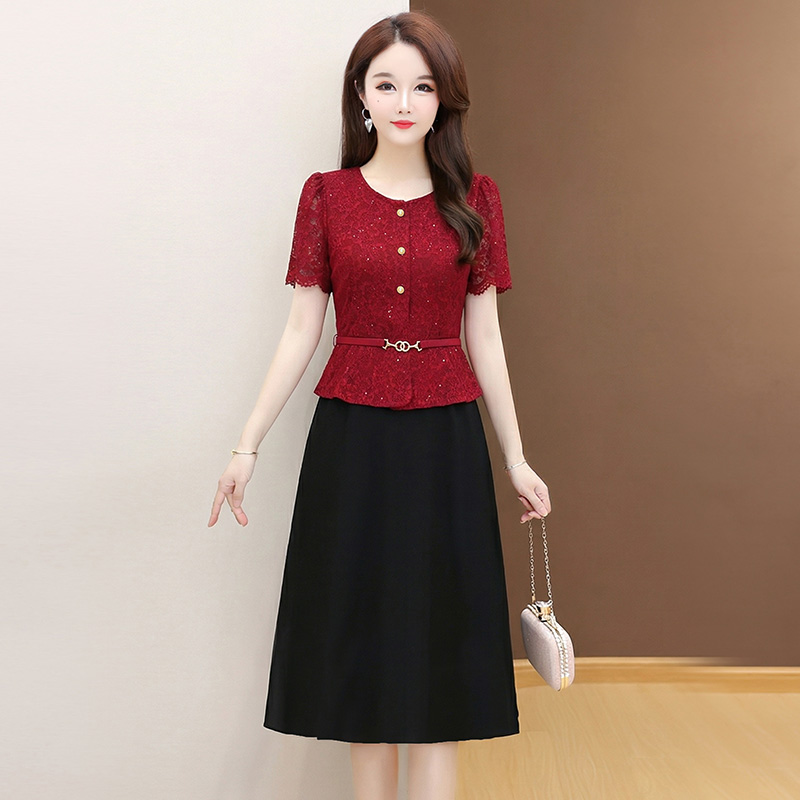 RY3486# 实拍有货 20256夏季新款大码短袖蕾丝连衣裙收腰显瘦洋气中长款