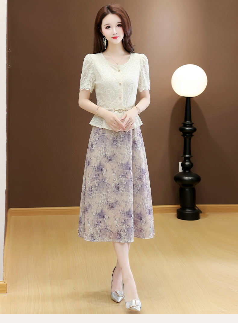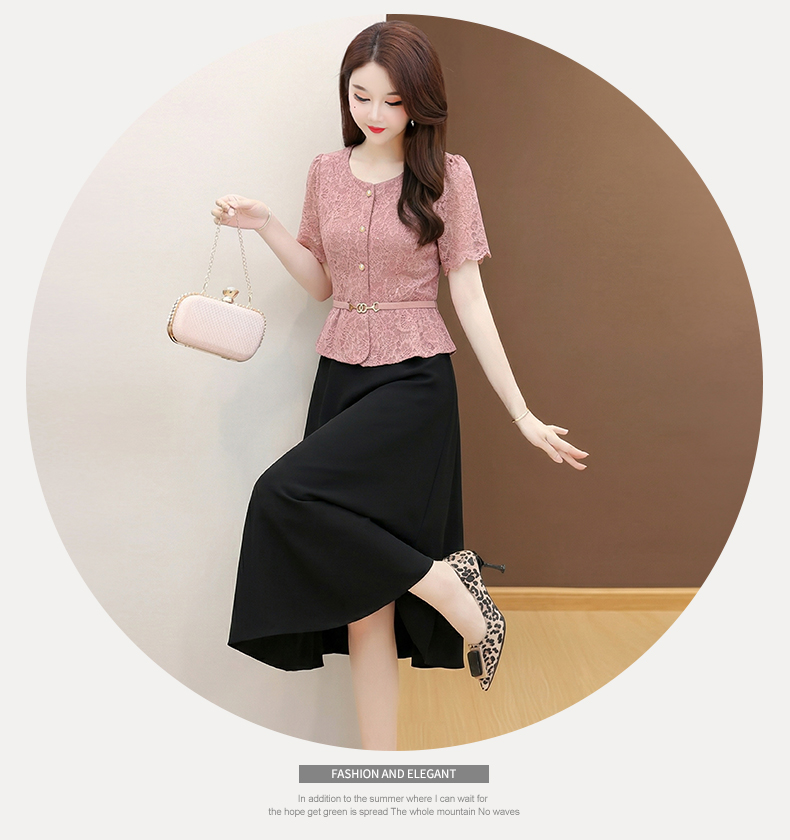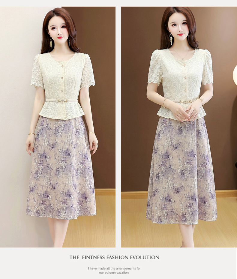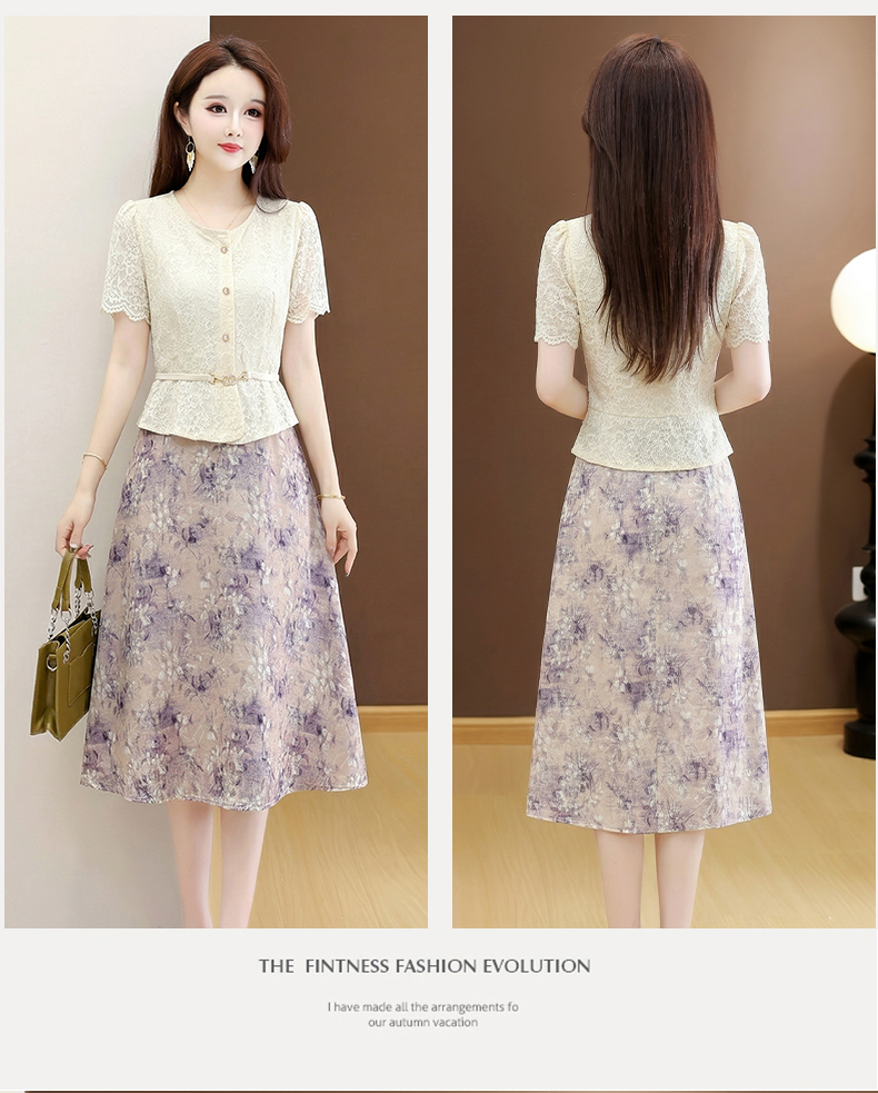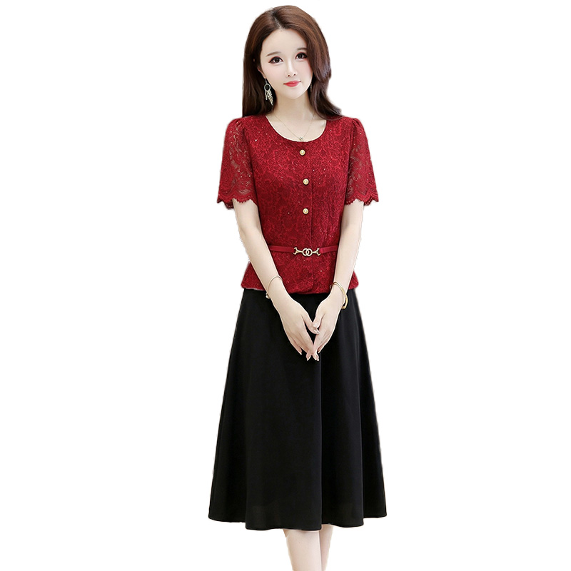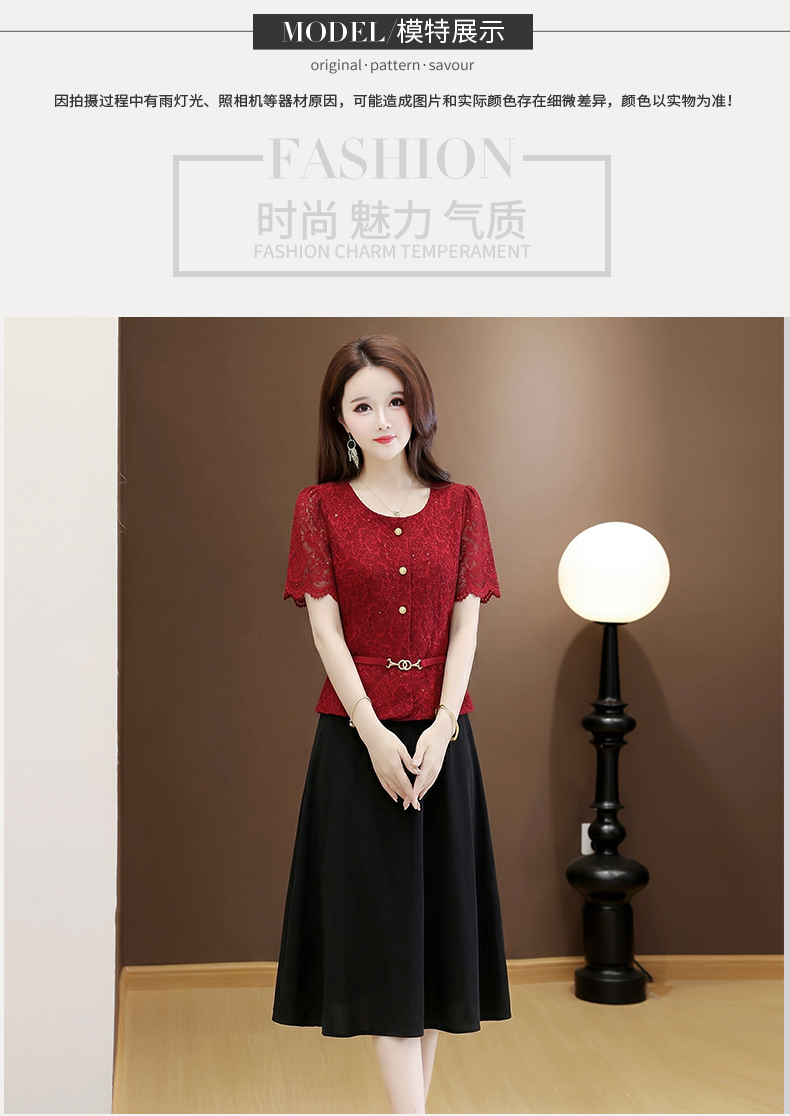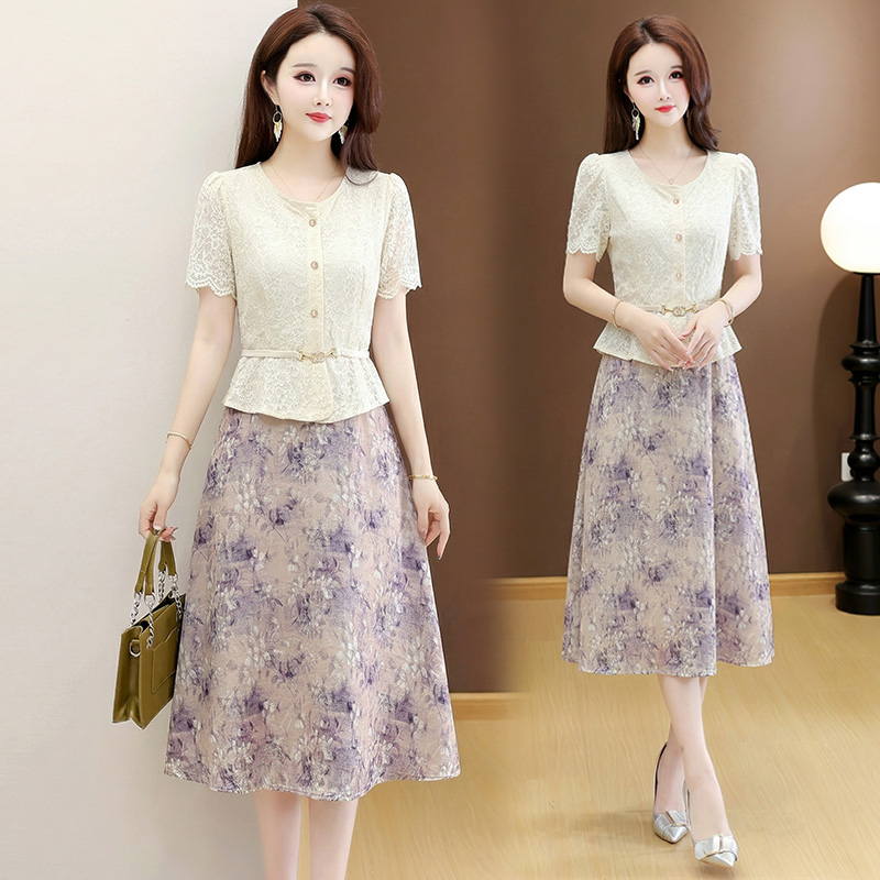 RY3486# 实拍有货 20256夏季新款大码短袖蕾丝连衣裙收腰显瘦洋气中长款