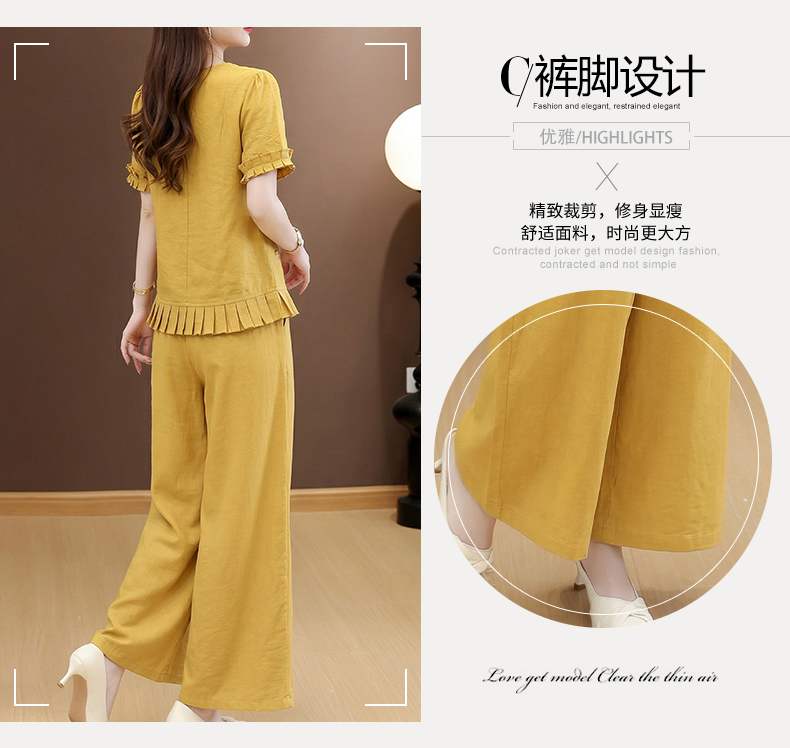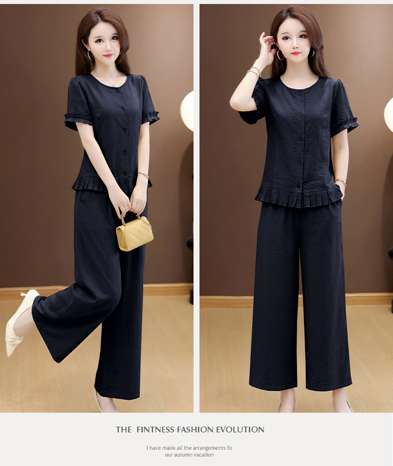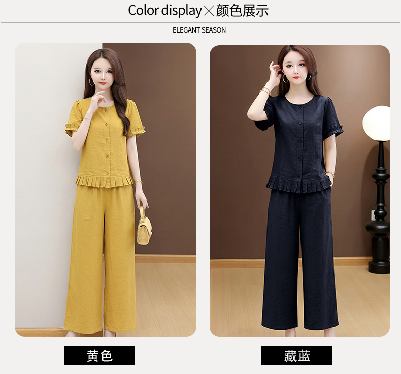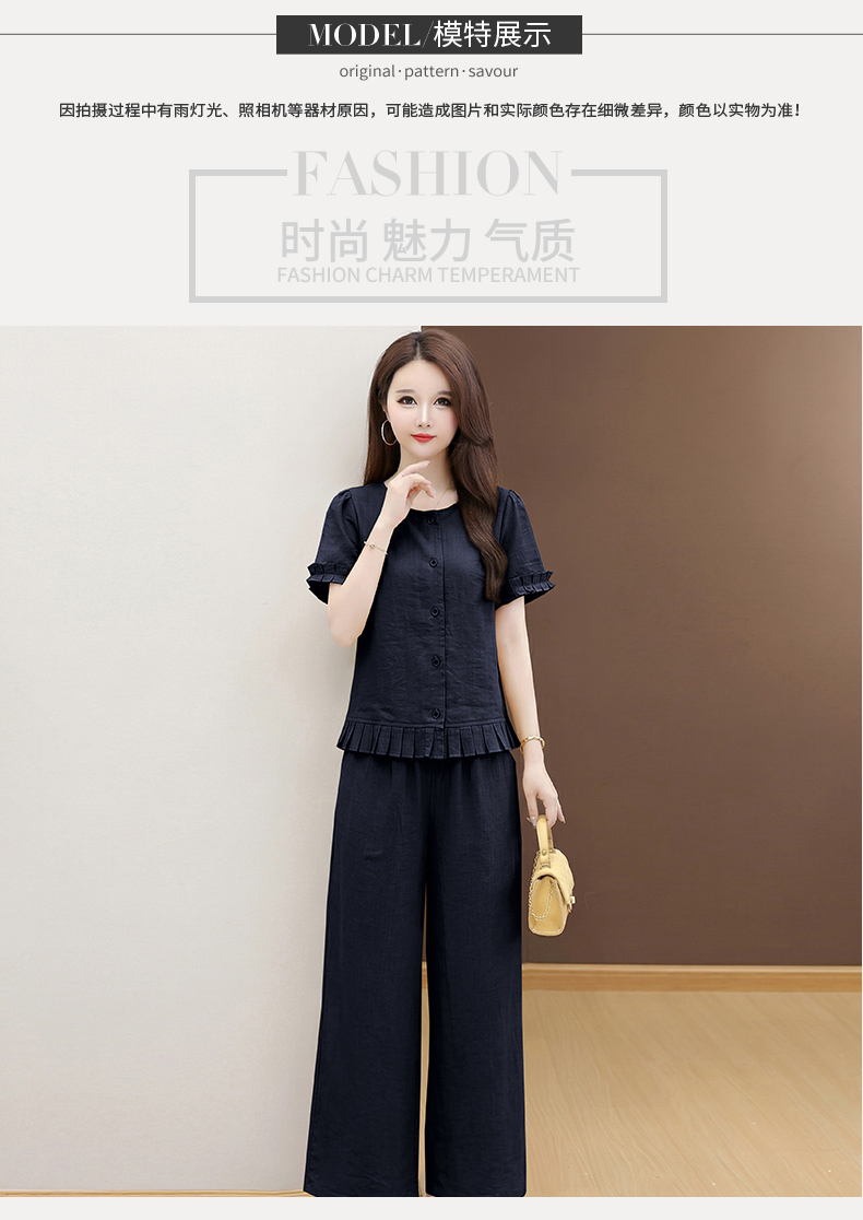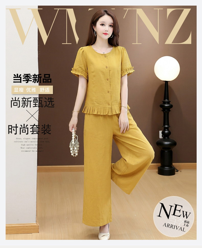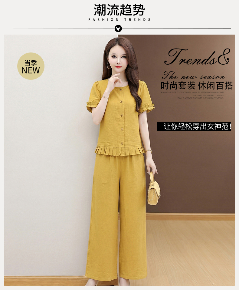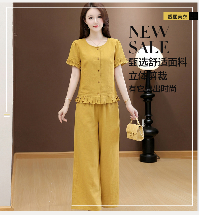 RY3487# 实拍有货 2026夏季新款大码套装时尚减龄洋气显瘦大方上衣阔腿裤