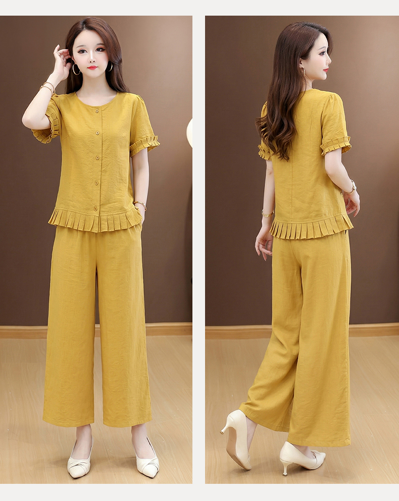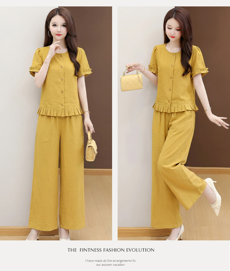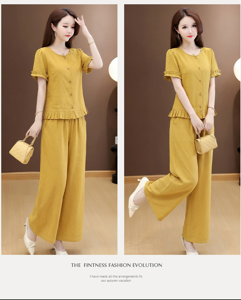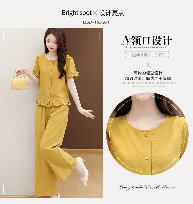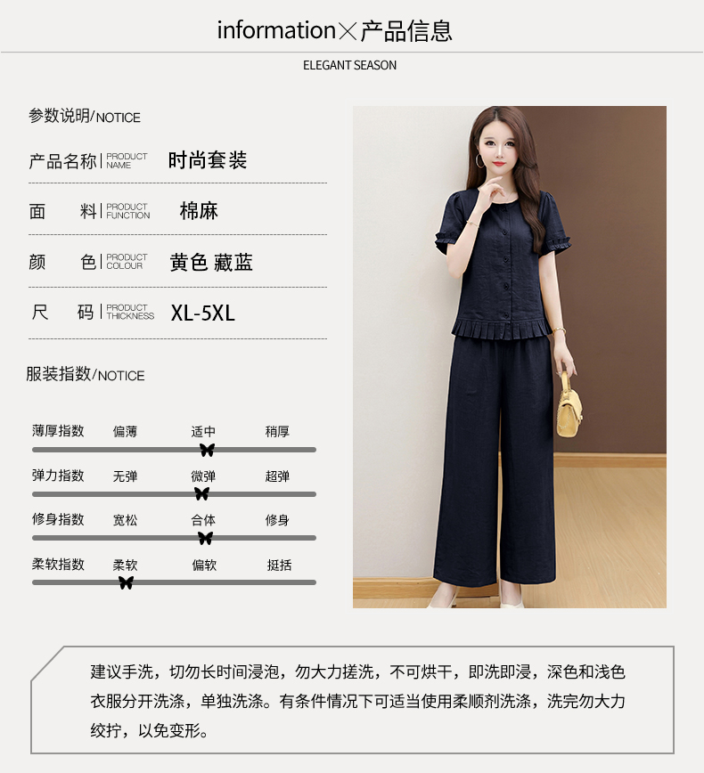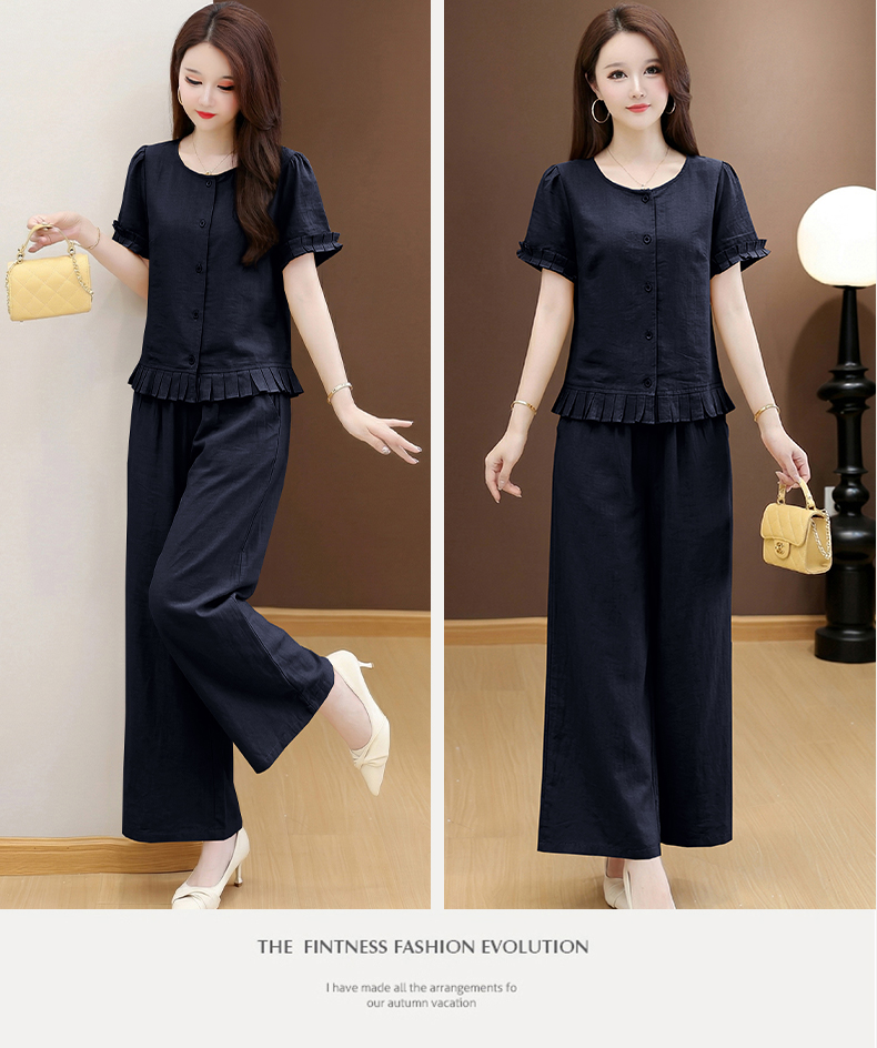 RY3487# 实拍有货 2026夏季新款大码套装时尚减龄洋气显瘦大方上衣阔腿裤