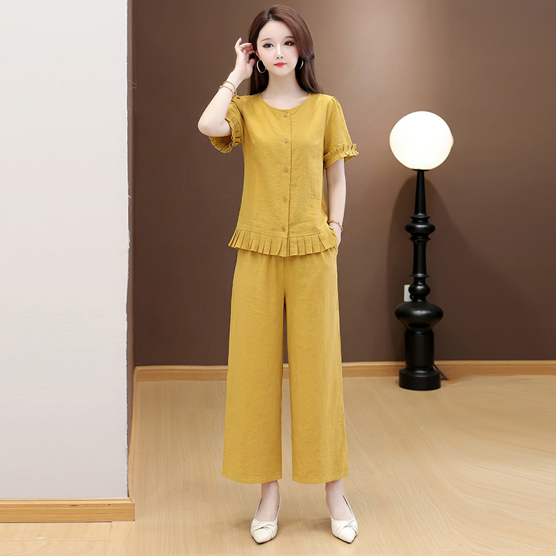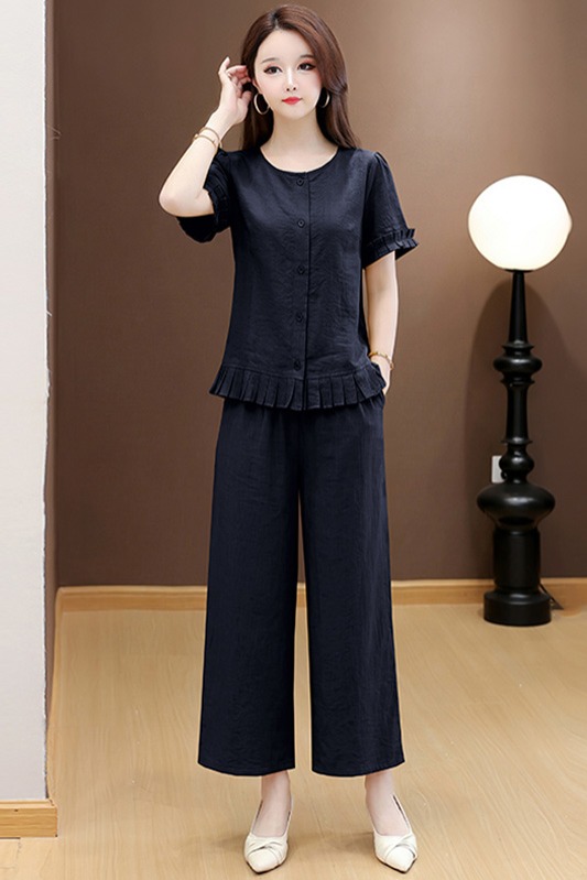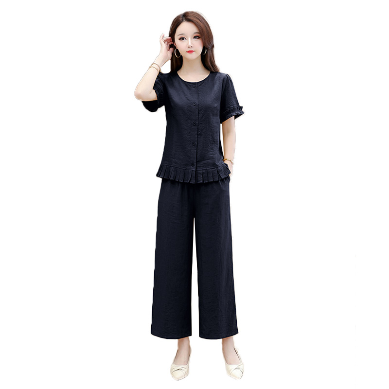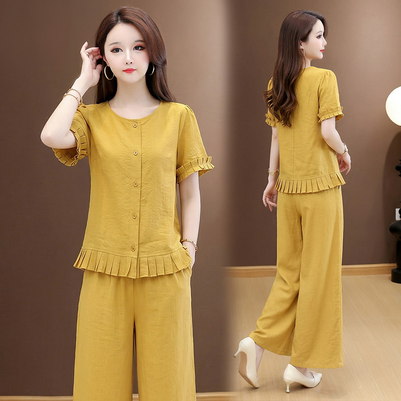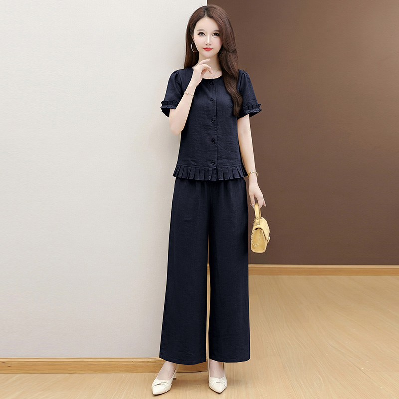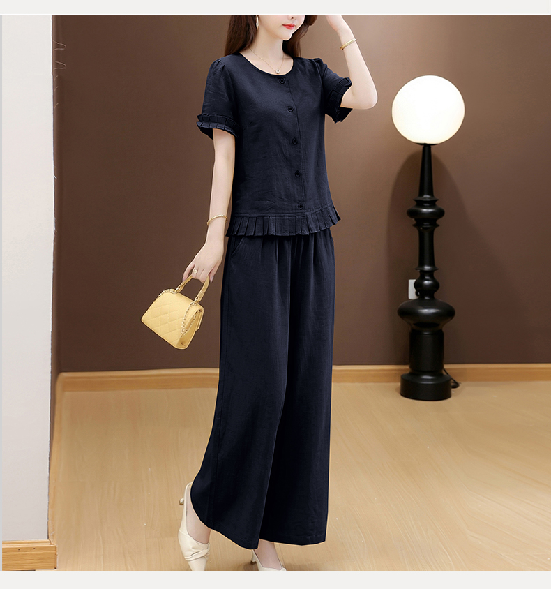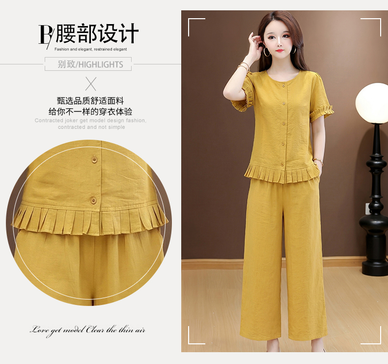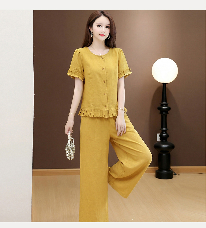RY3487# 实拍有货 2026夏季新款大码套装时尚减龄洋气显瘦大方上衣阔腿裤