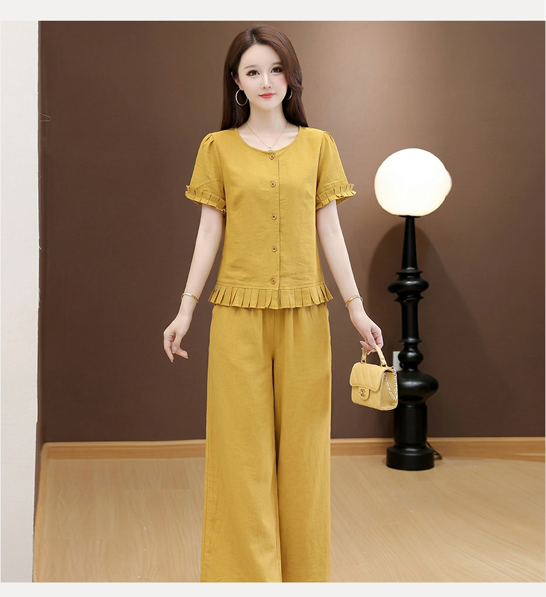 RY3494# 实拍有货 2026夏季新款宽松连衣裙棉麻妈妈套装新中式套裤...