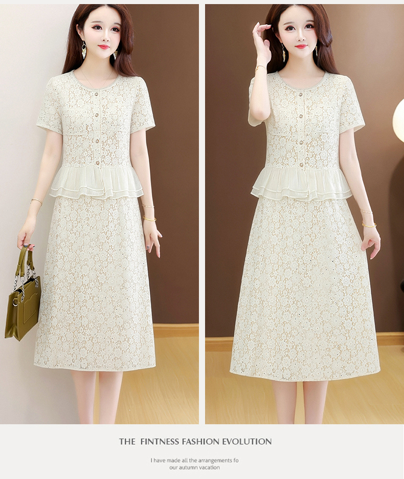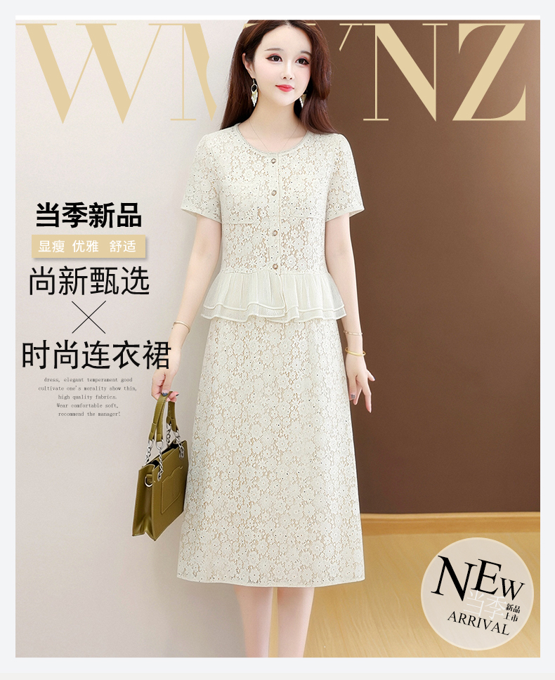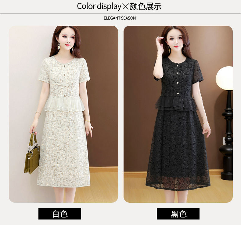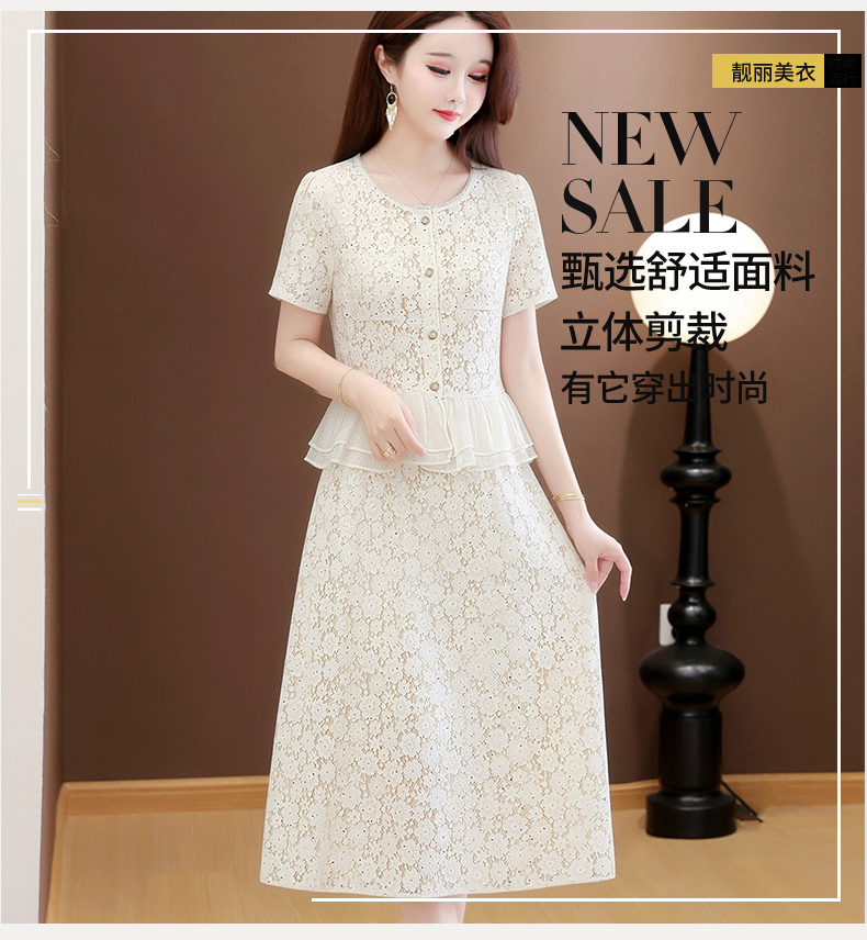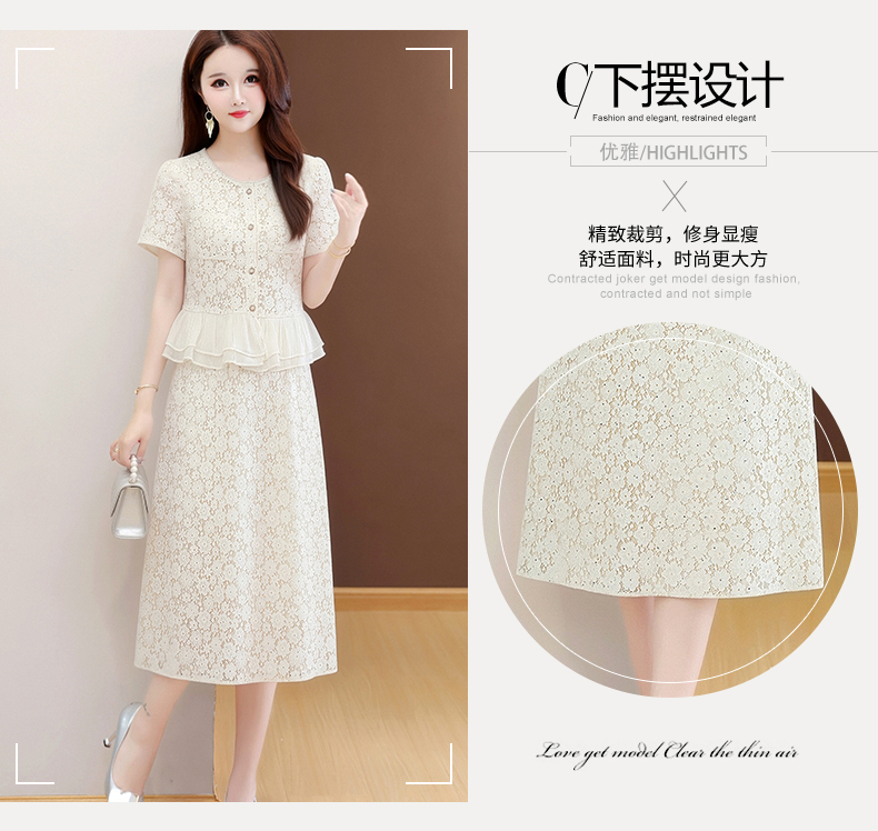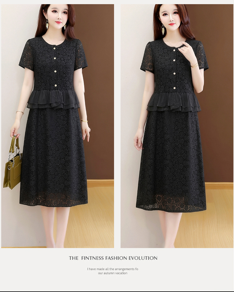 RY3488# 实拍有货 202夏季新款大码短袖蕾丝裙子时尚洋气减龄包臀裙