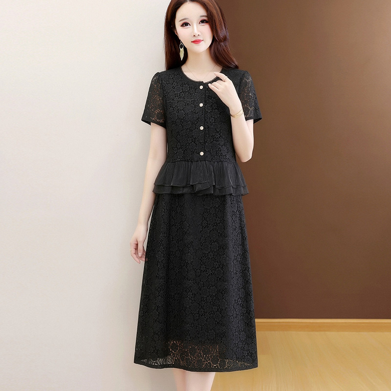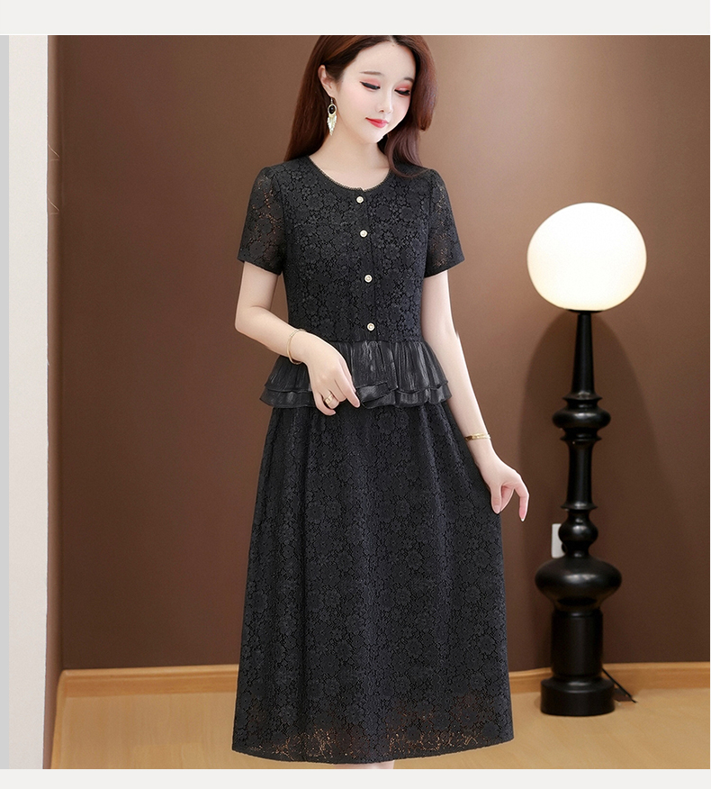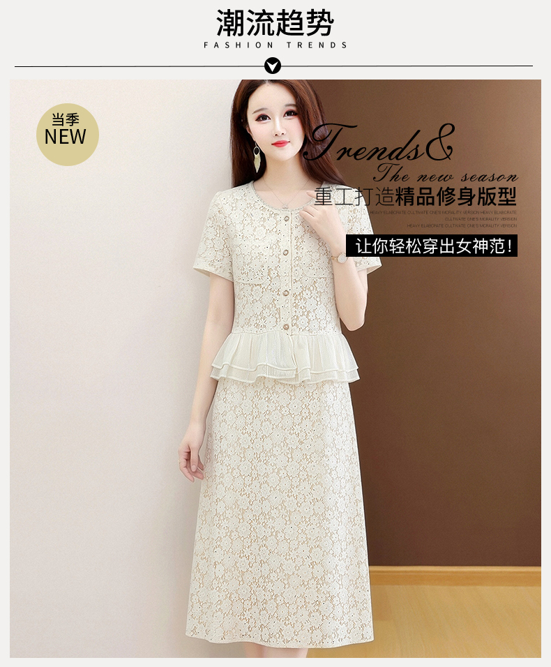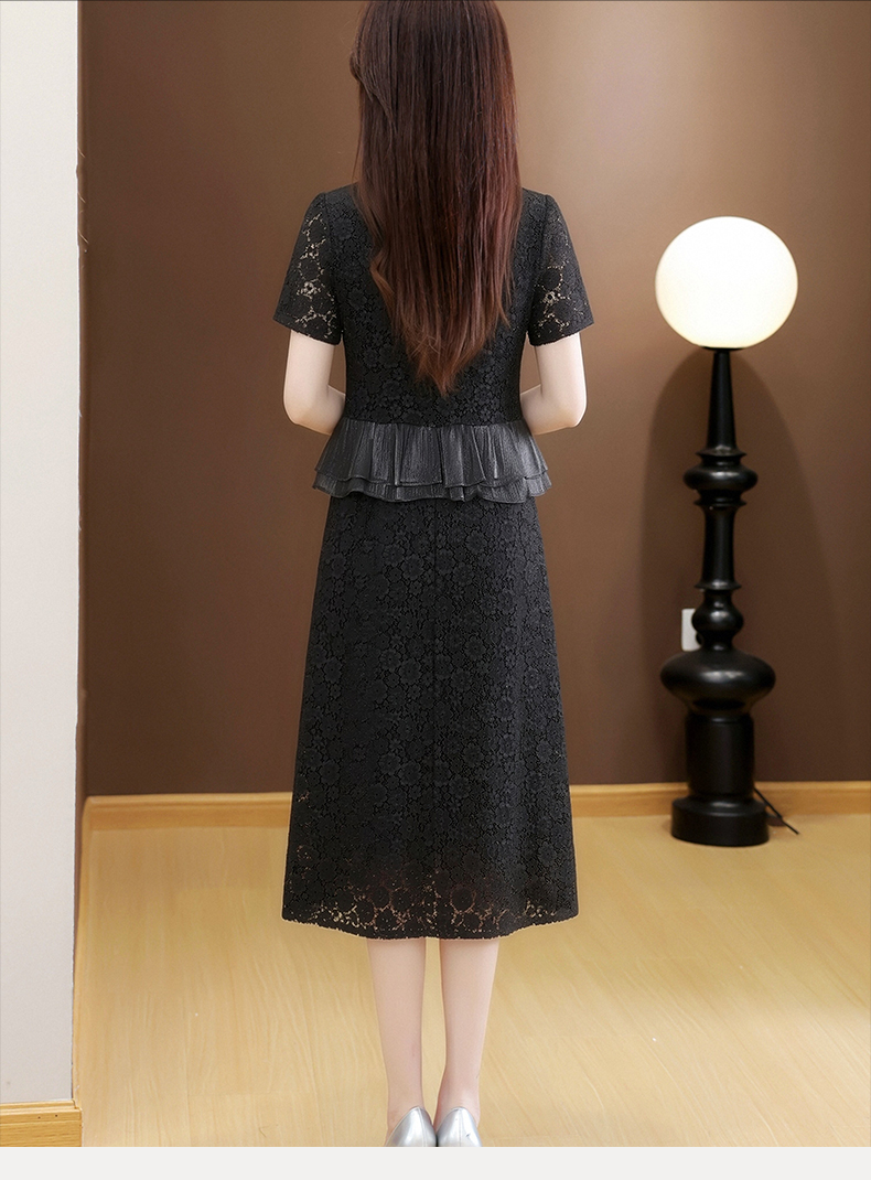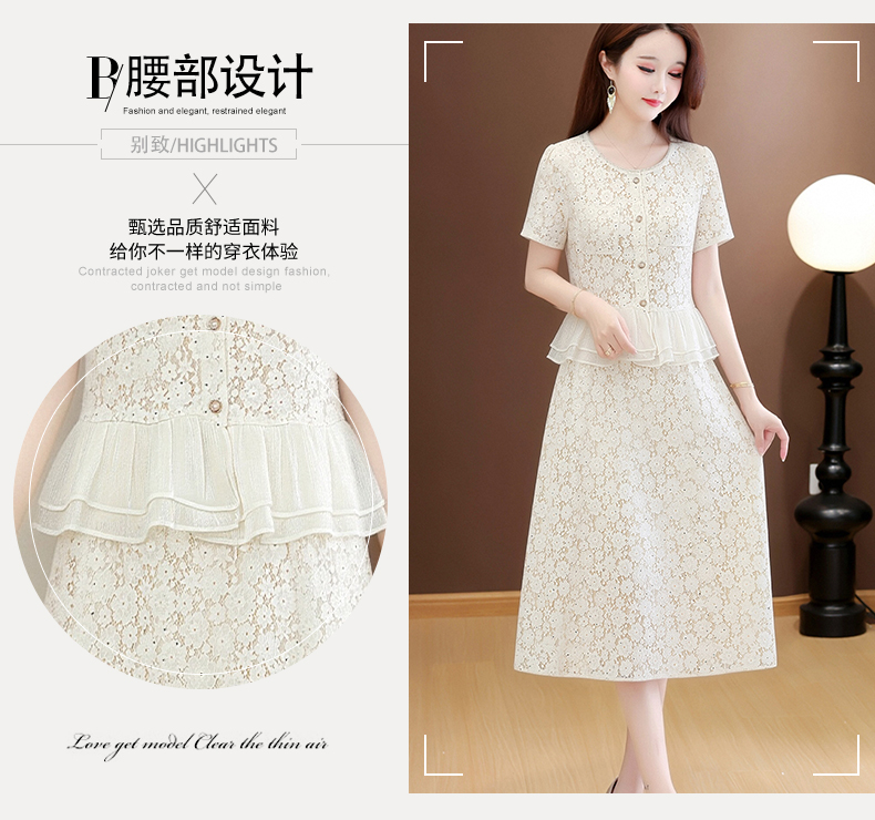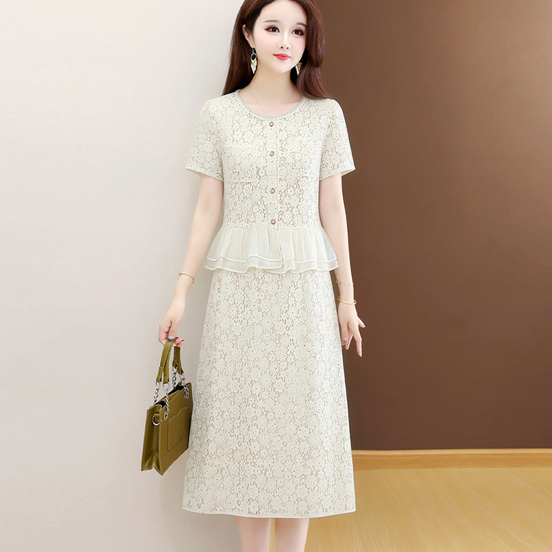 RY3488# 实拍有货 202夏季新款大码短袖蕾丝裙子时尚洋气减龄包臀裙