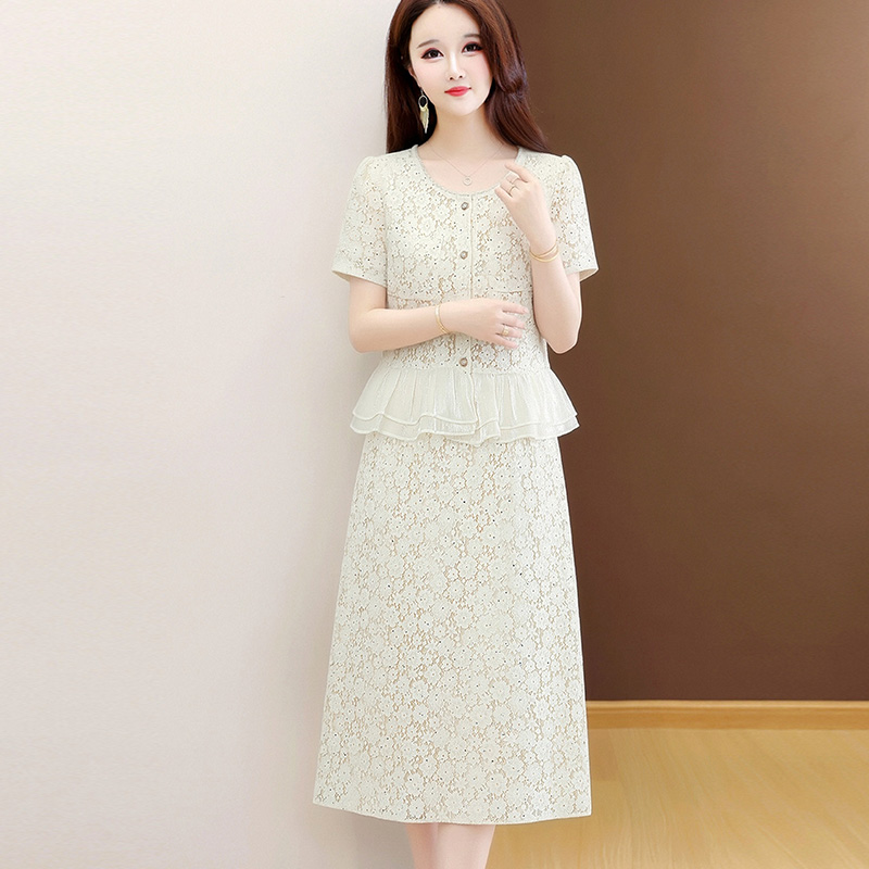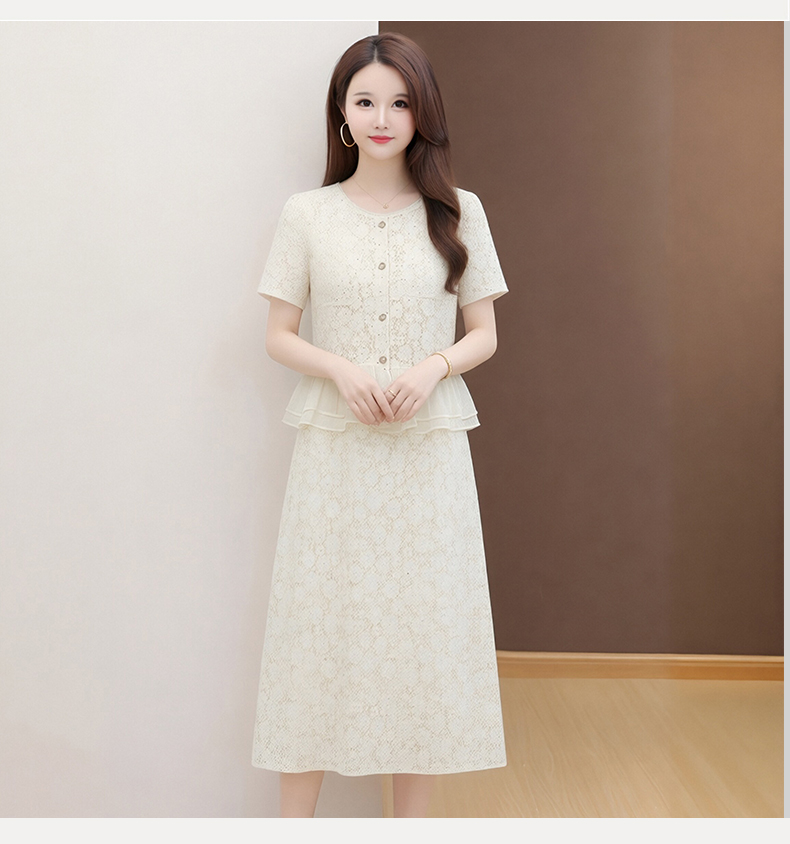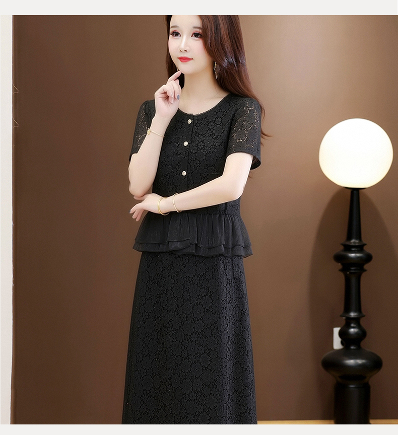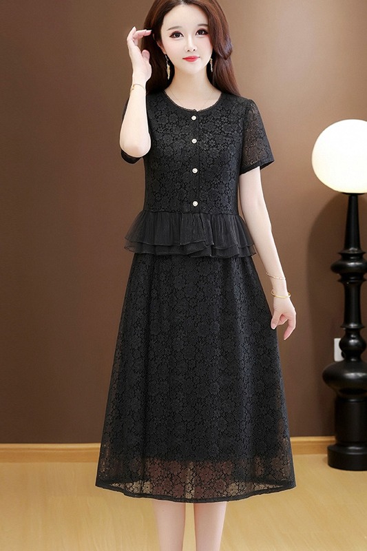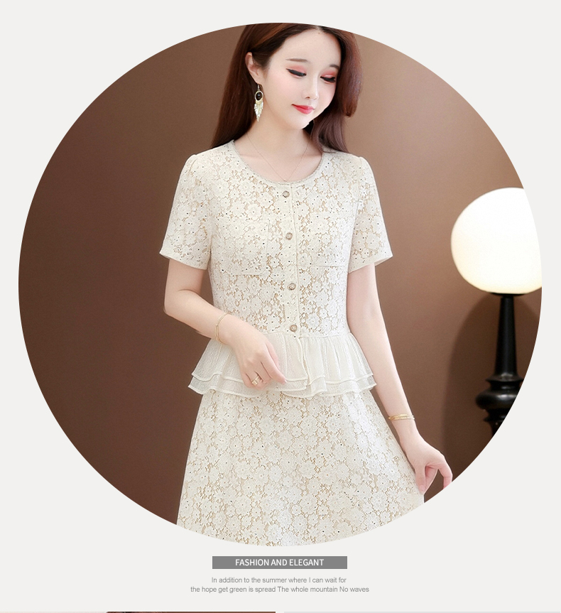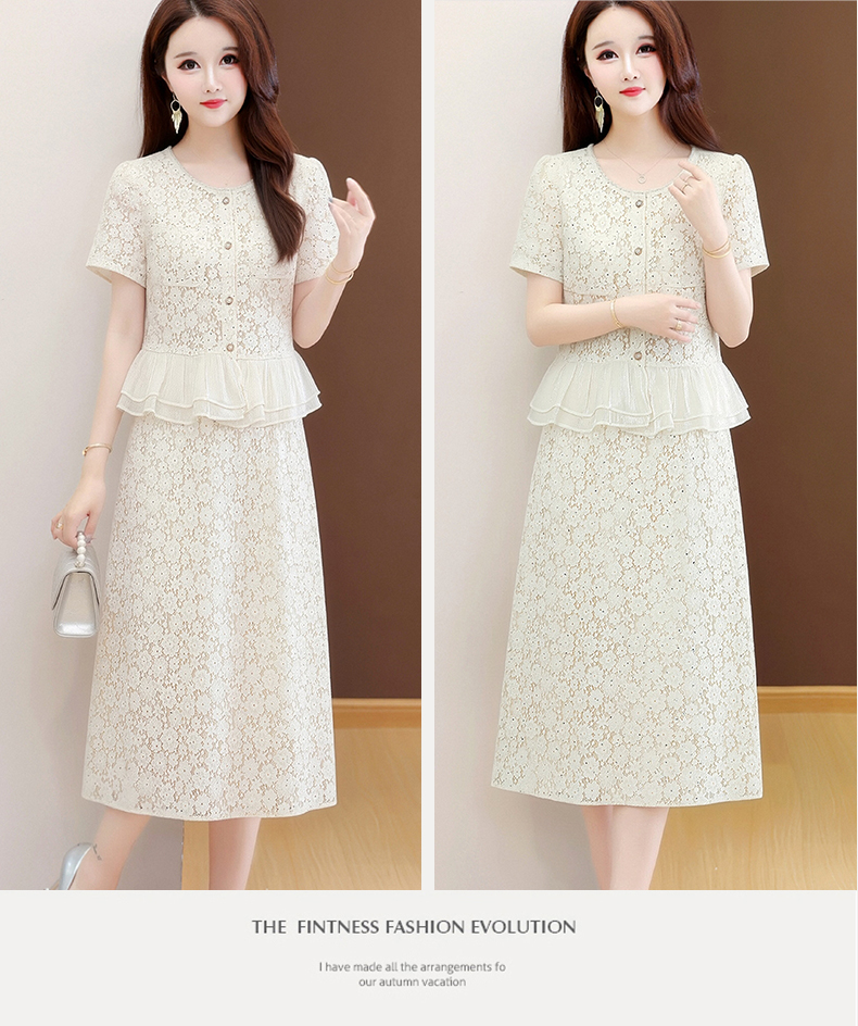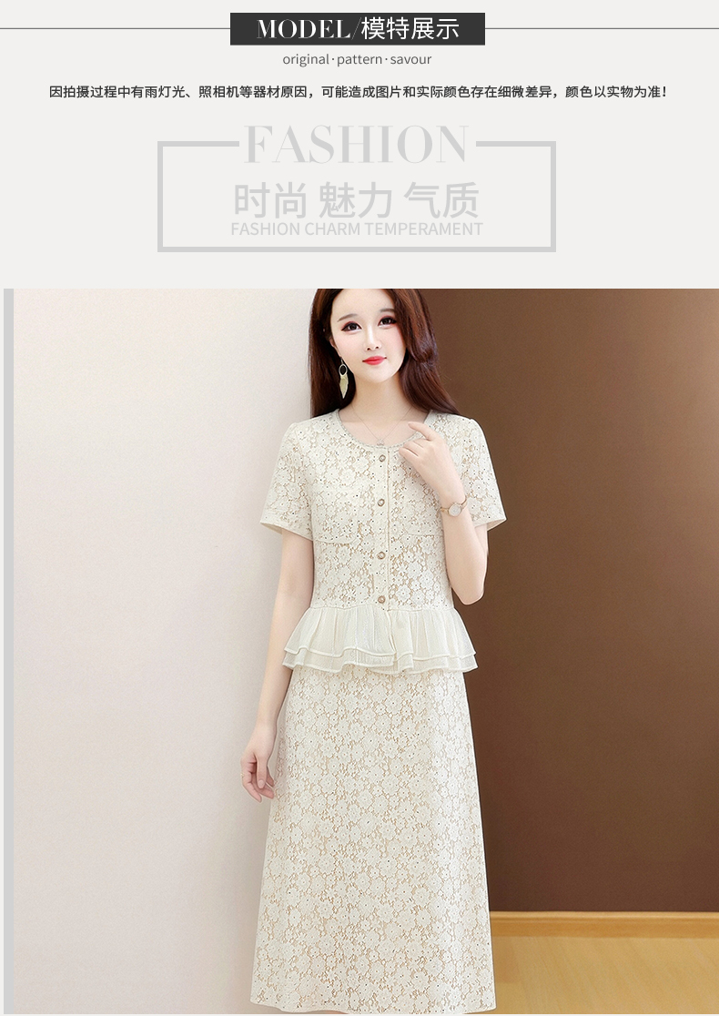 RY3488# 实拍有货 202夏季新款大码短袖蕾丝裙子时尚洋气减龄包臀裙