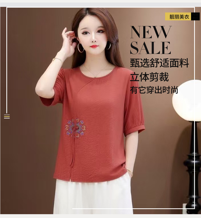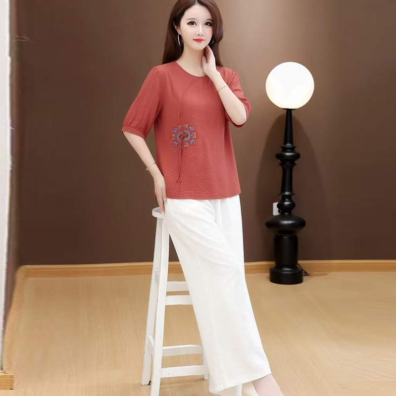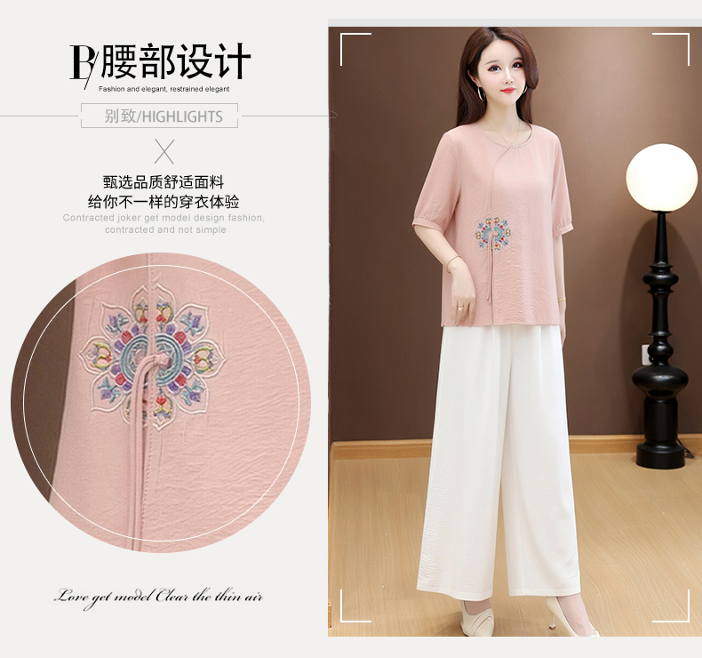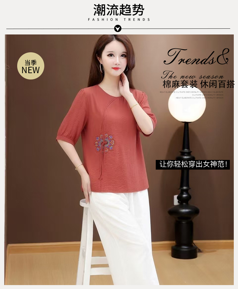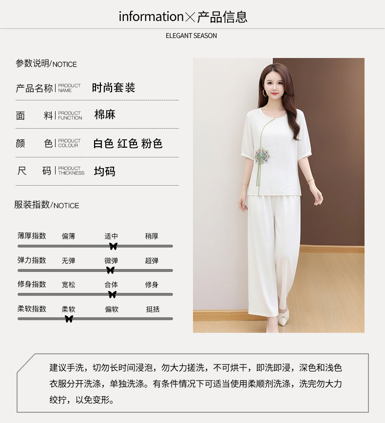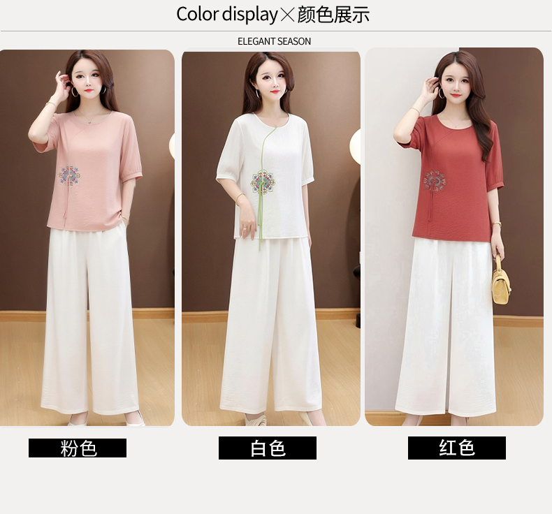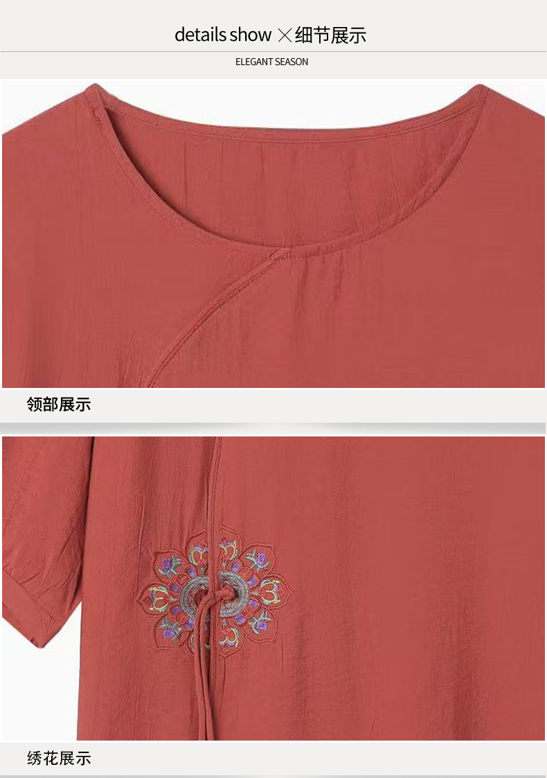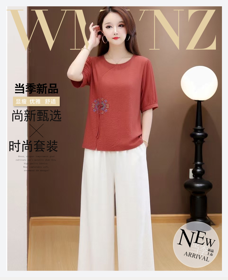 RY3494# 实拍有货 2026夏季新款宽松连衣裙棉麻妈妈套装新中式套裤透气