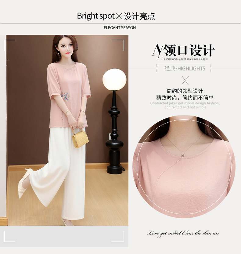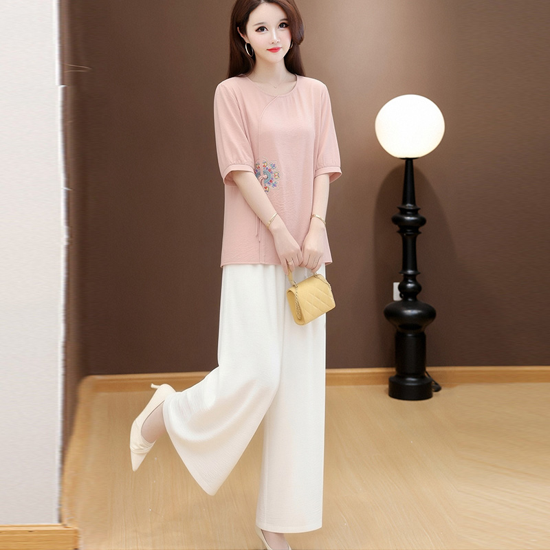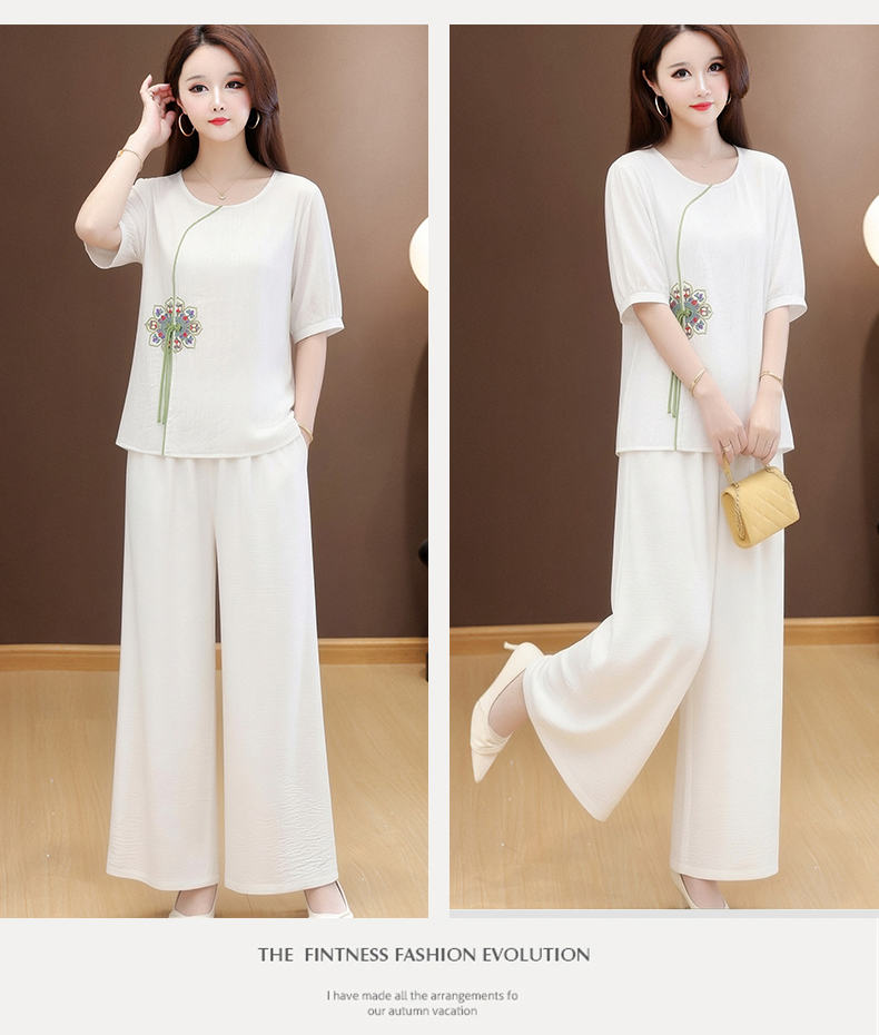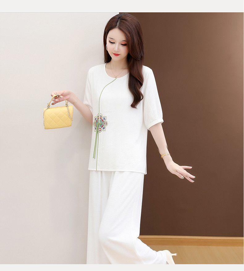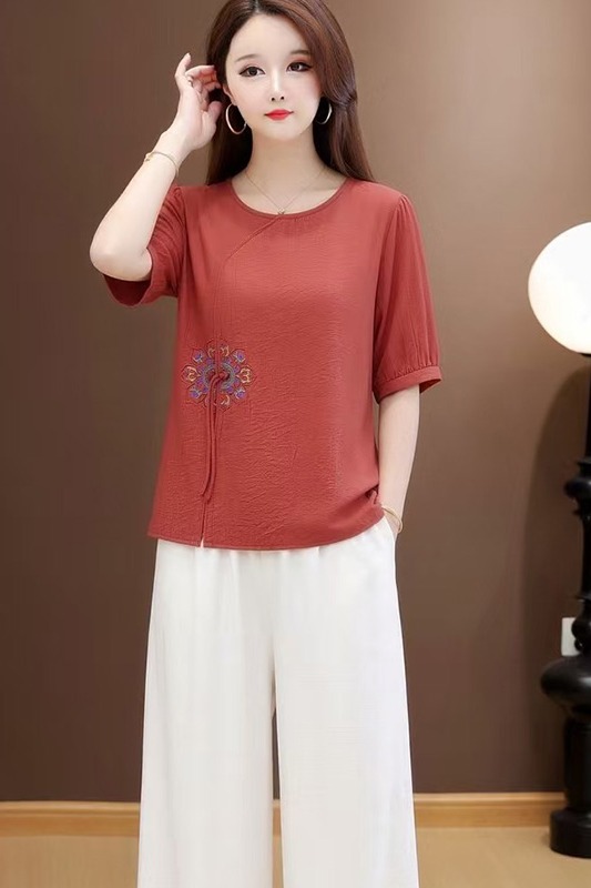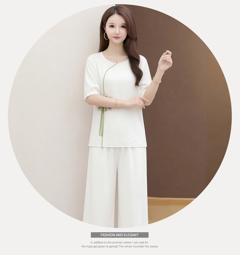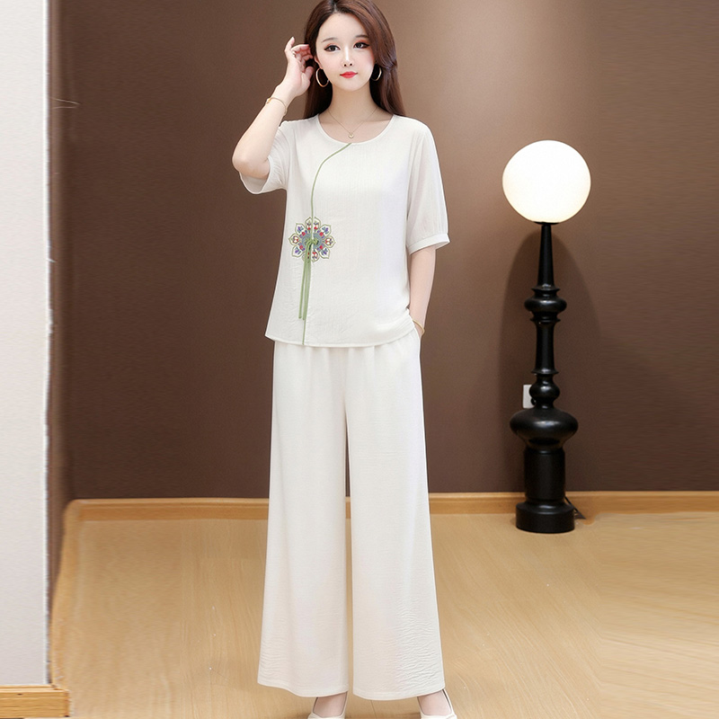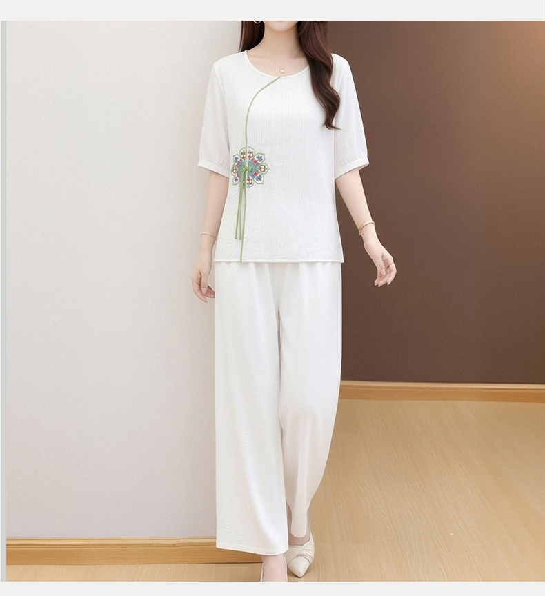 RY3494# 实拍有货 2026夏季新款宽松连衣裙棉麻妈妈套装新中式套裤透气